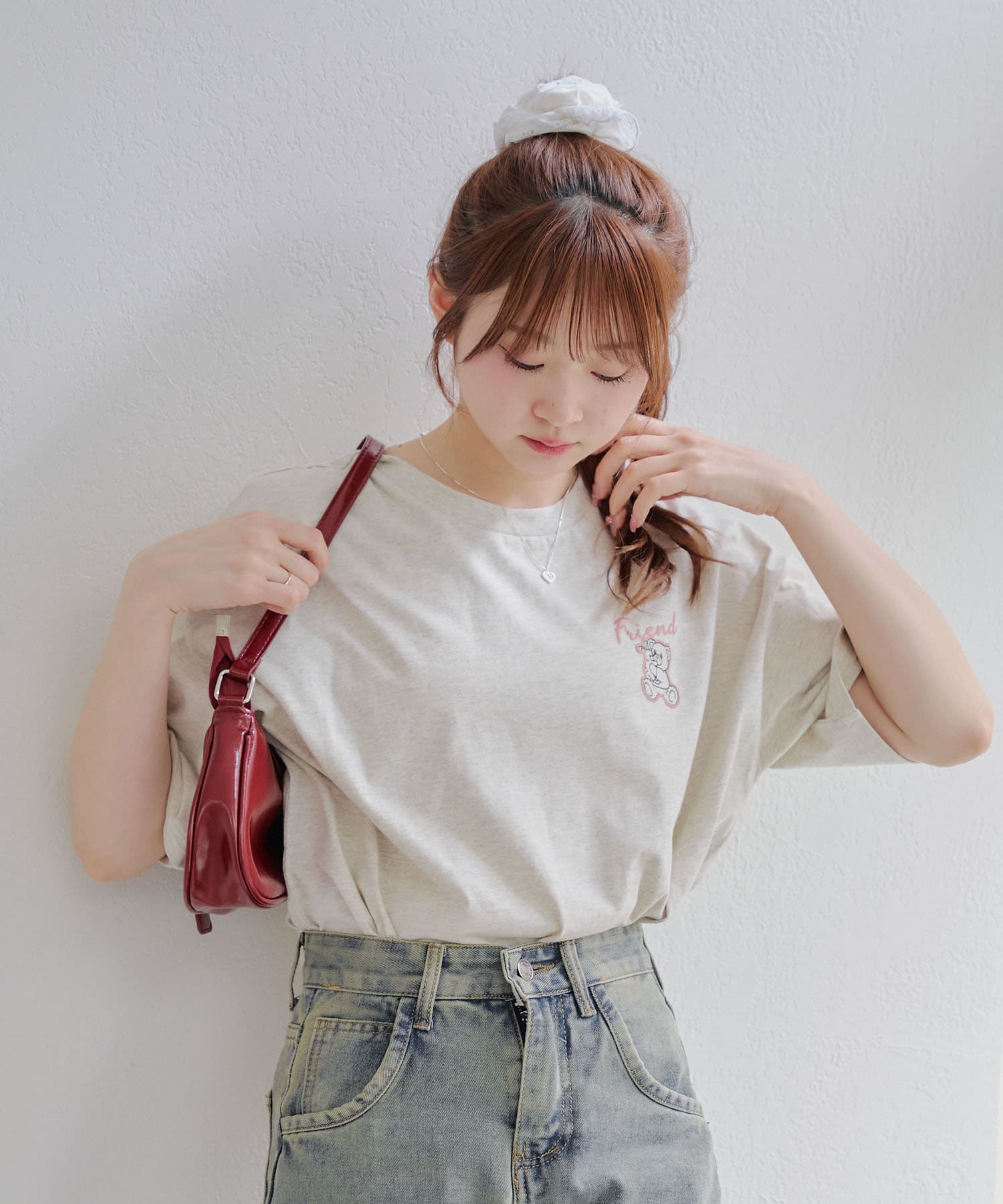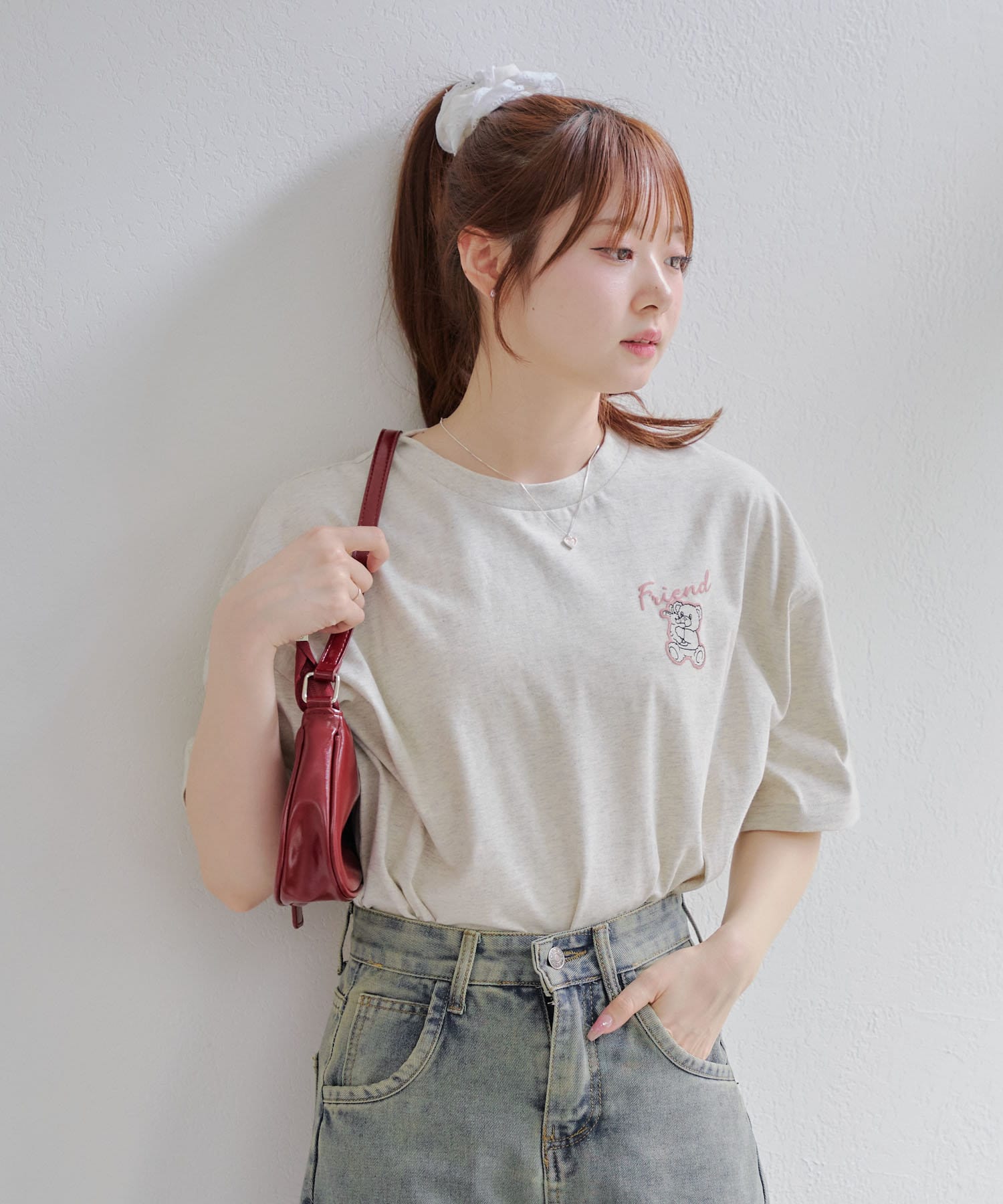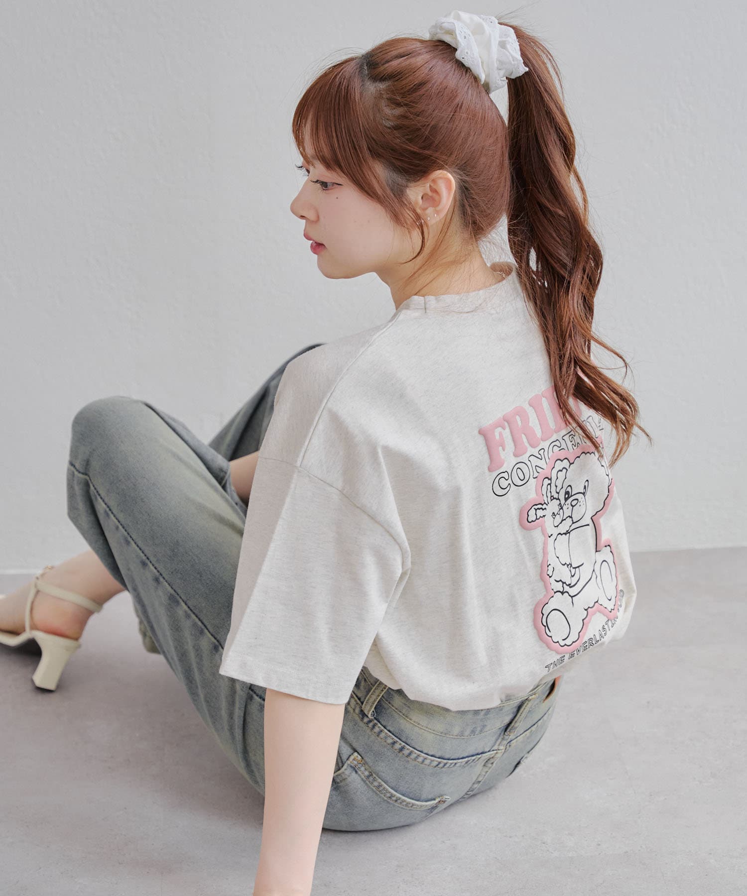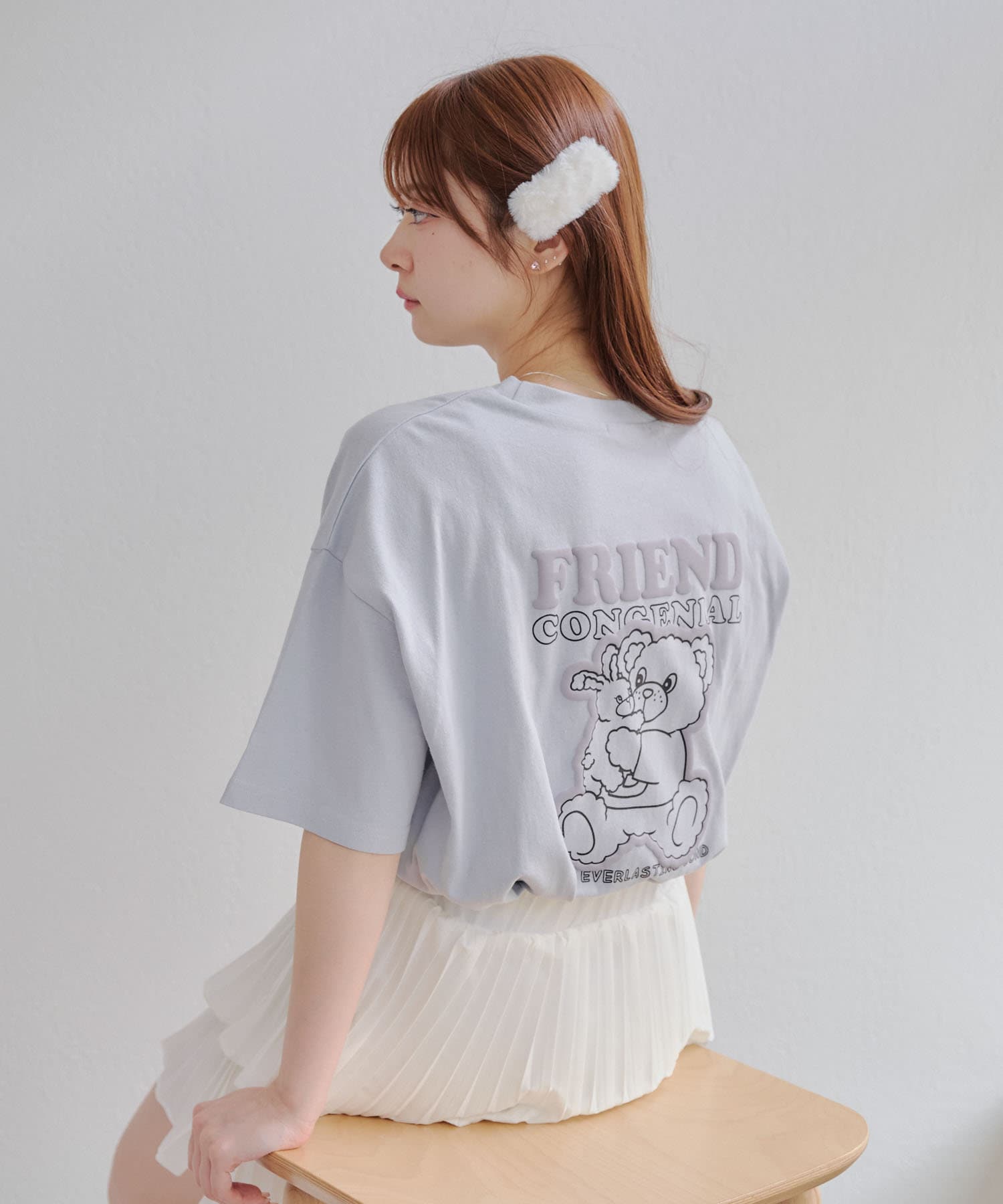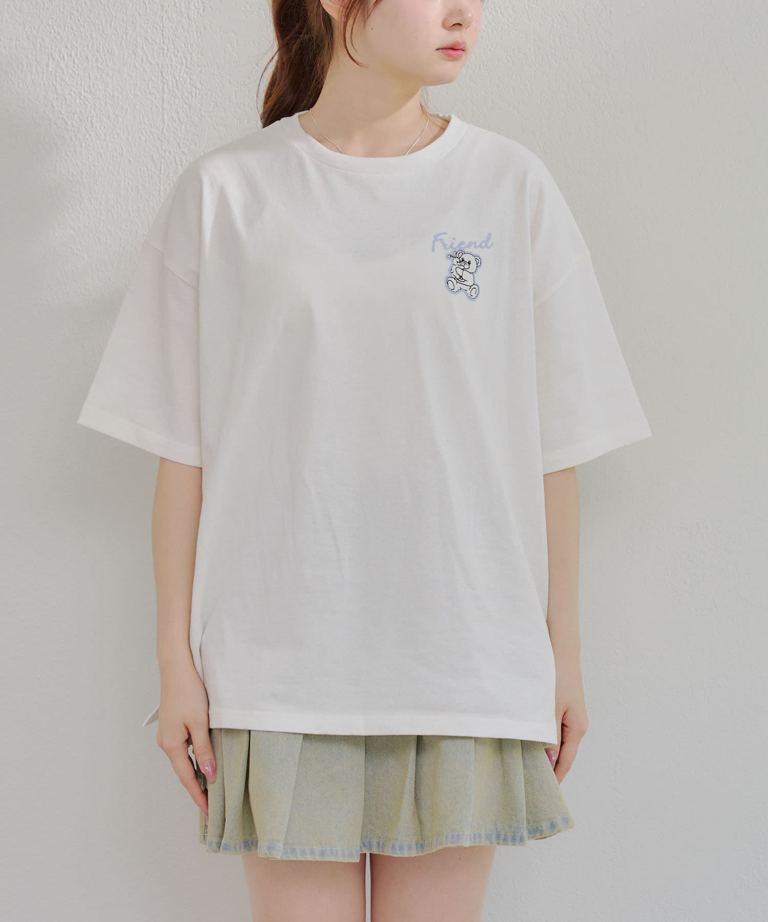 ・くまとうさぎがプリントされた可愛らしいTシャツ