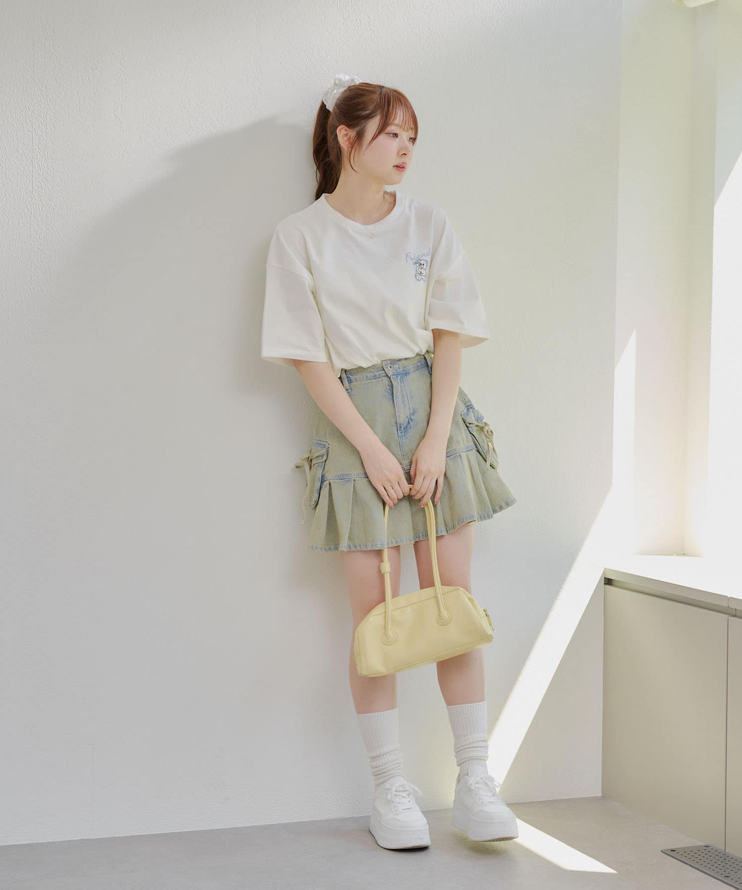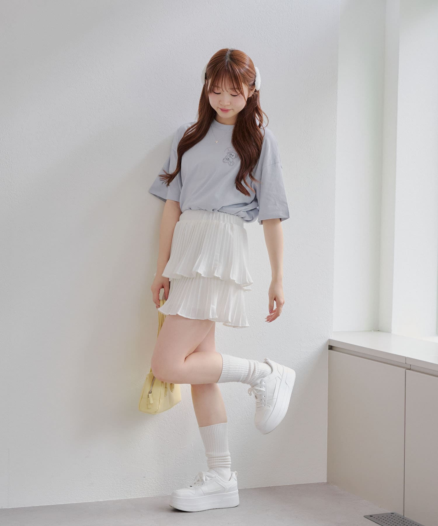 ・ミニボトムス合わせでガーリーに着こなすのが◎