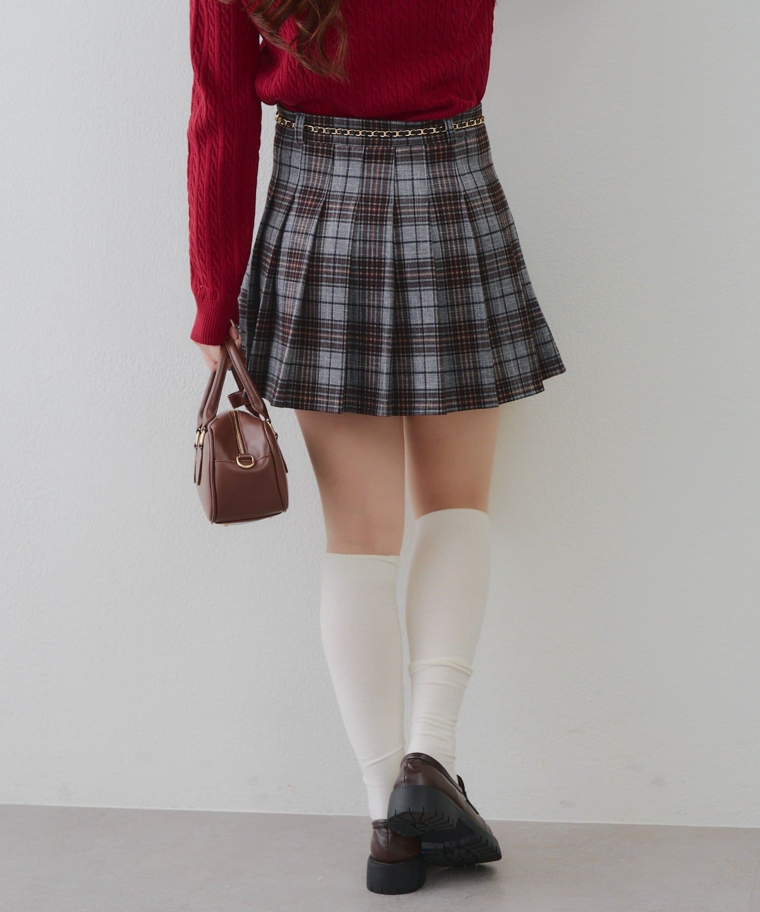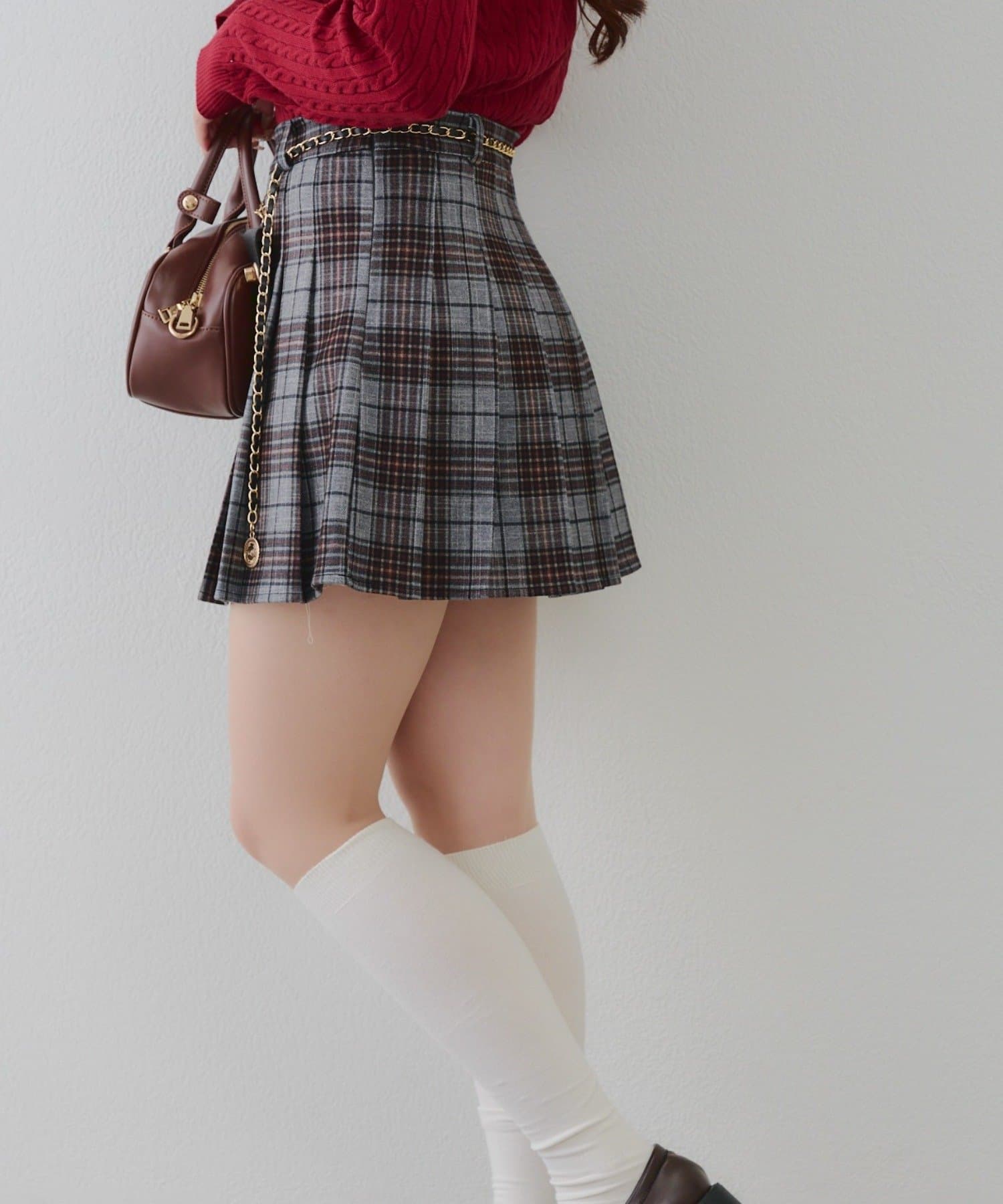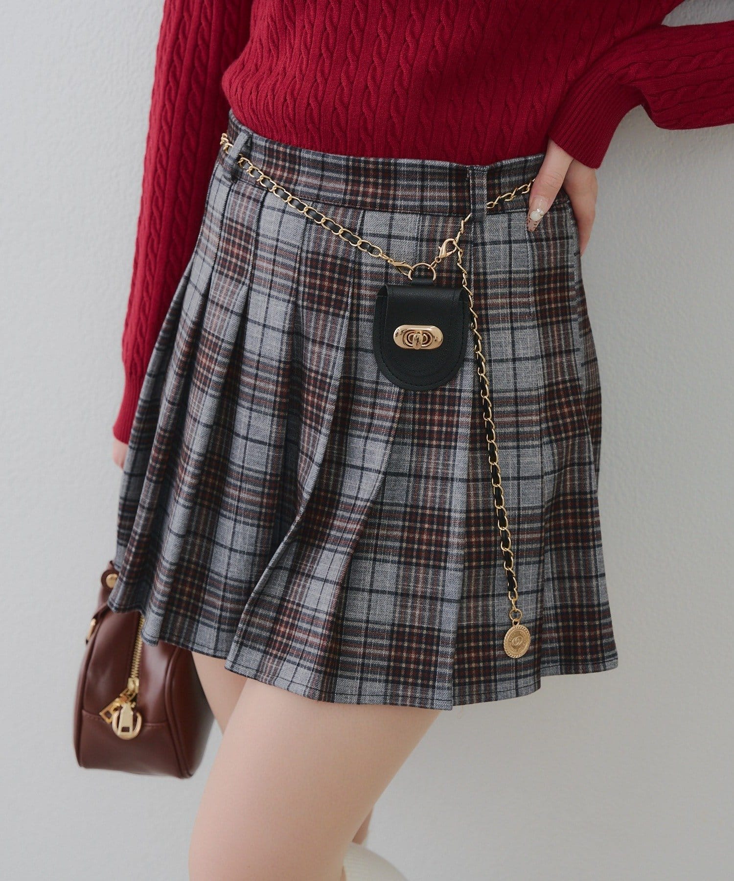 秋チェックで着映える【RMAF】チャーム付プリーツミニスカート