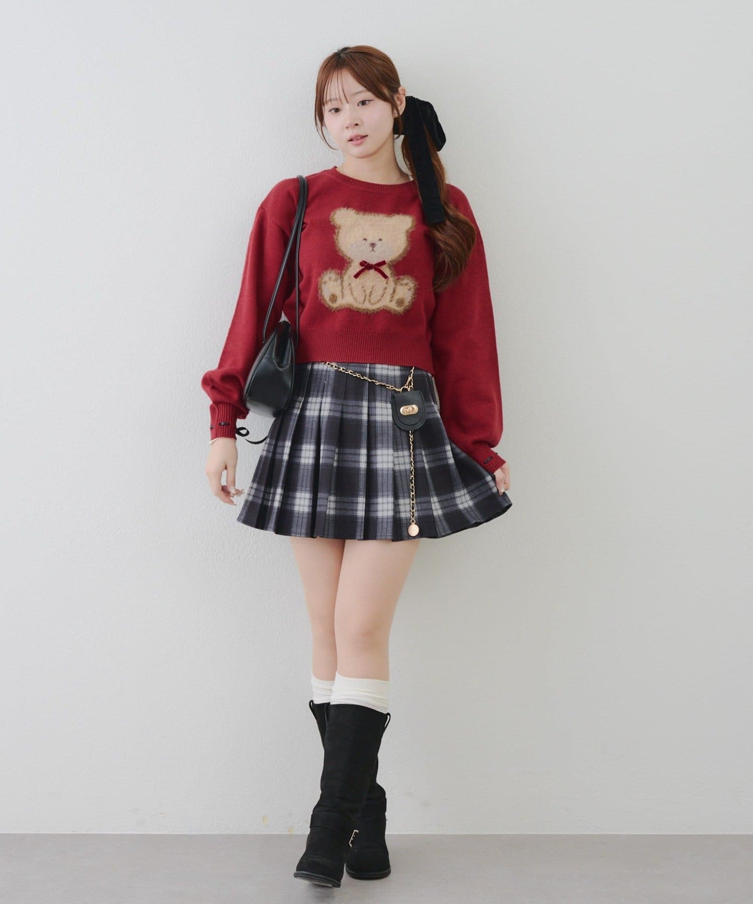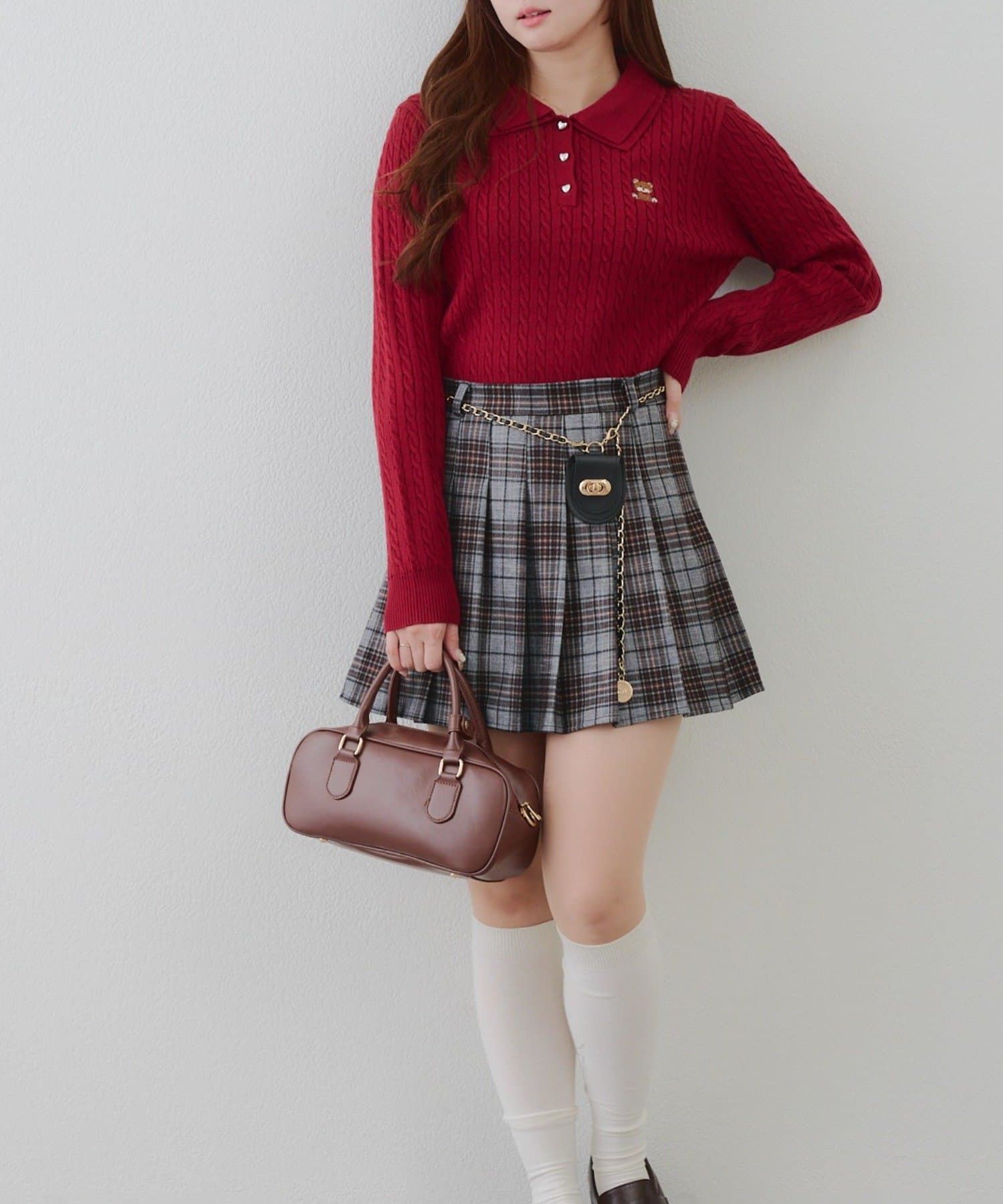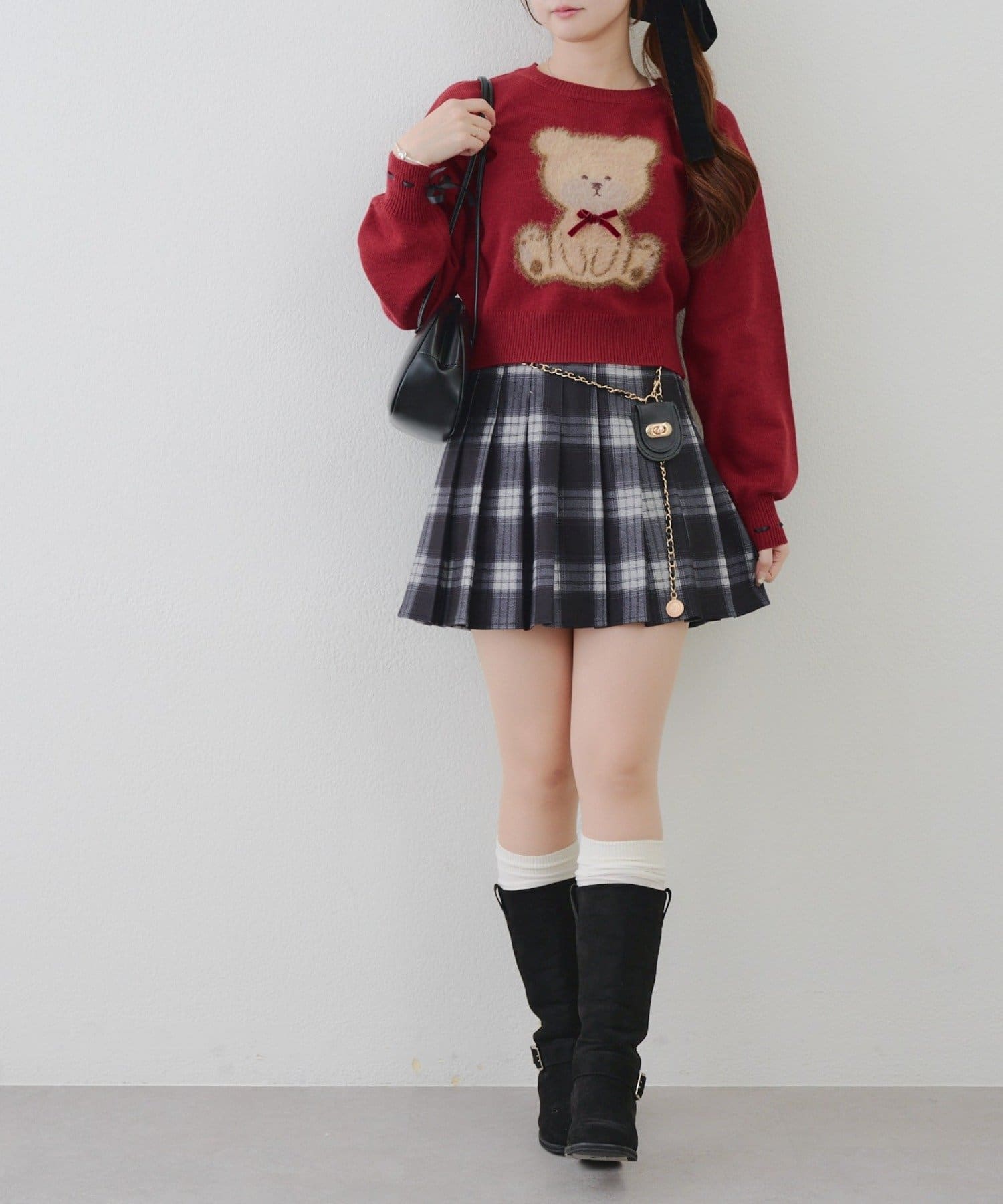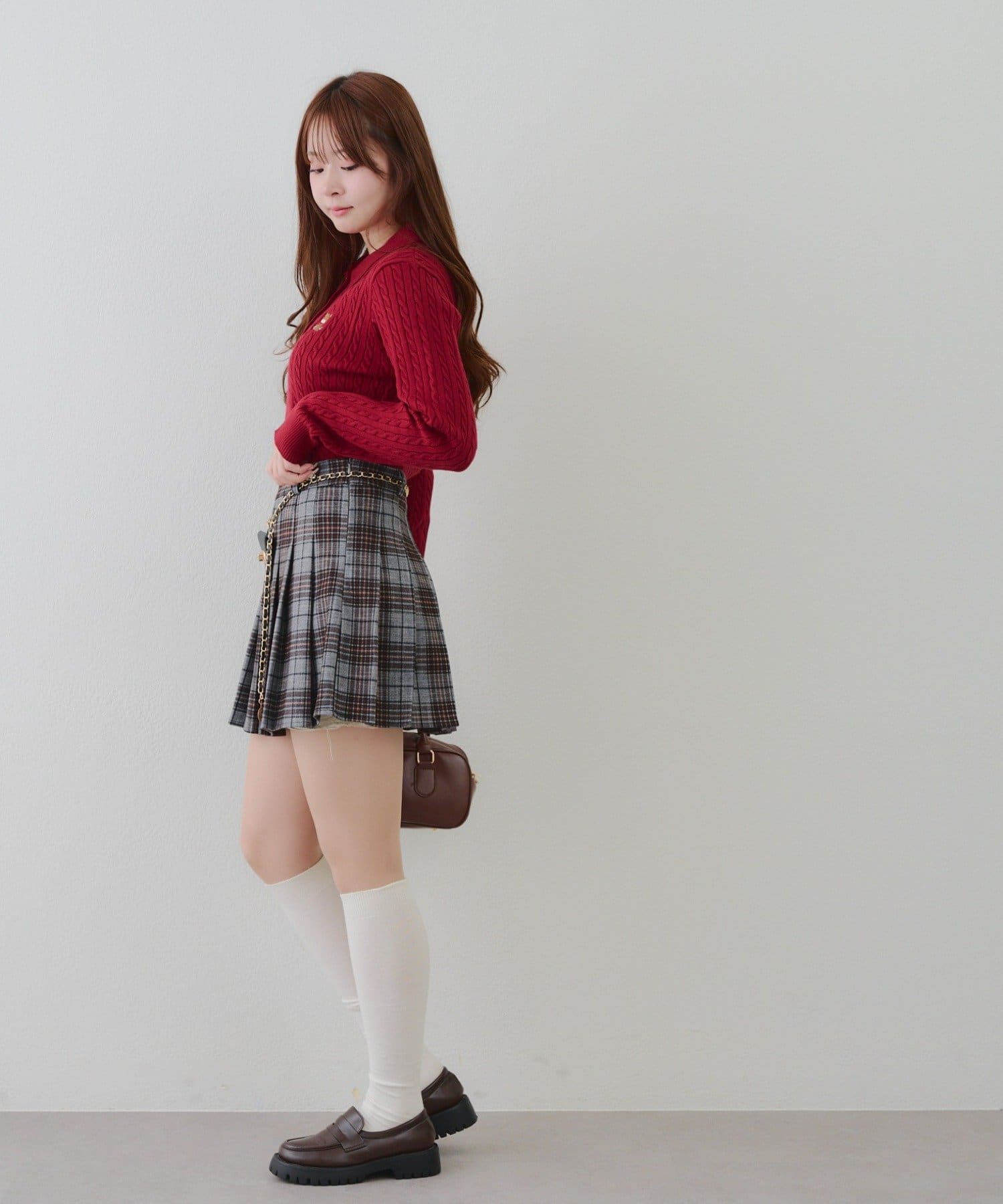 秋チェックで着映える【RMAF】チャーム付プリーツミニスカート