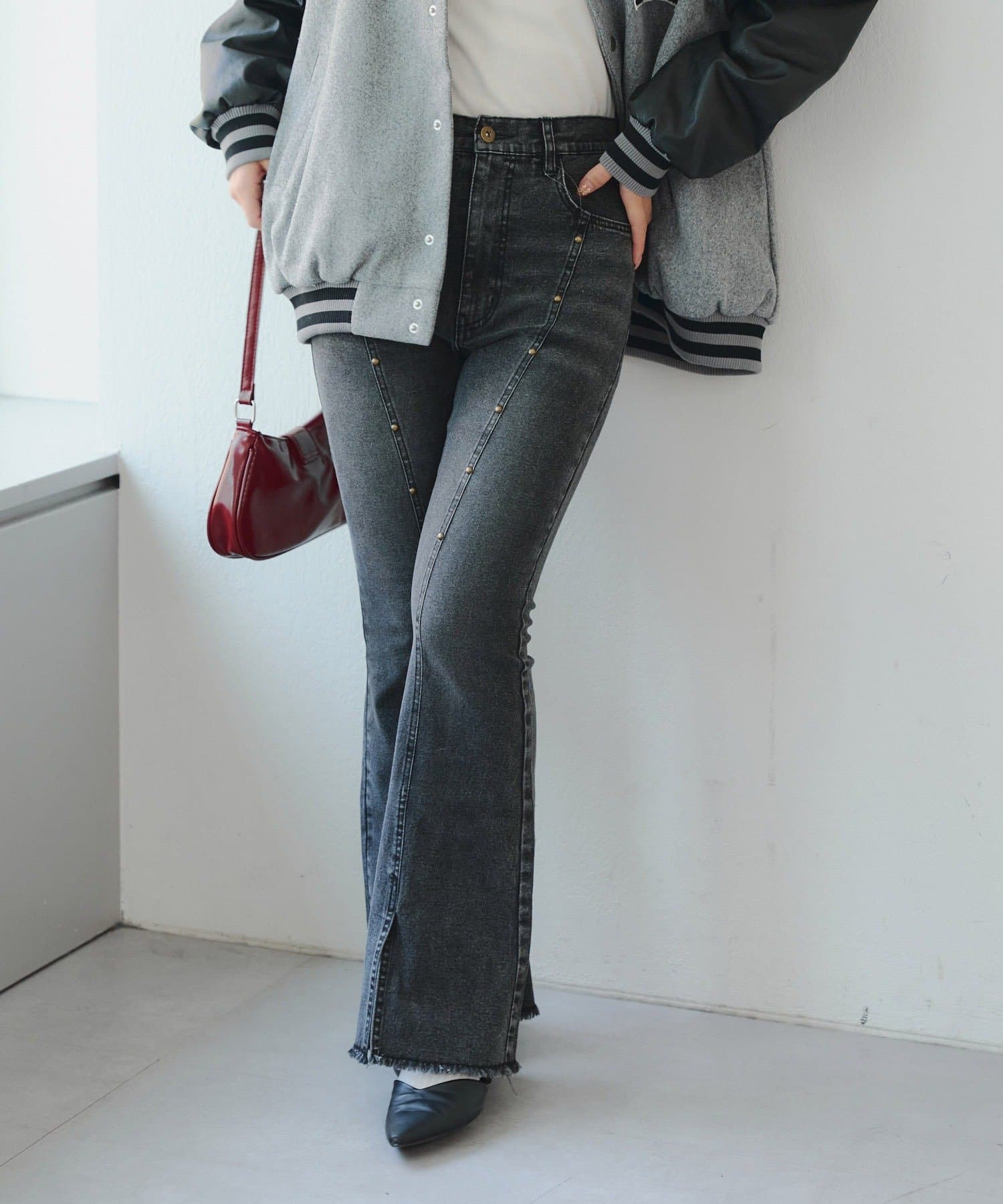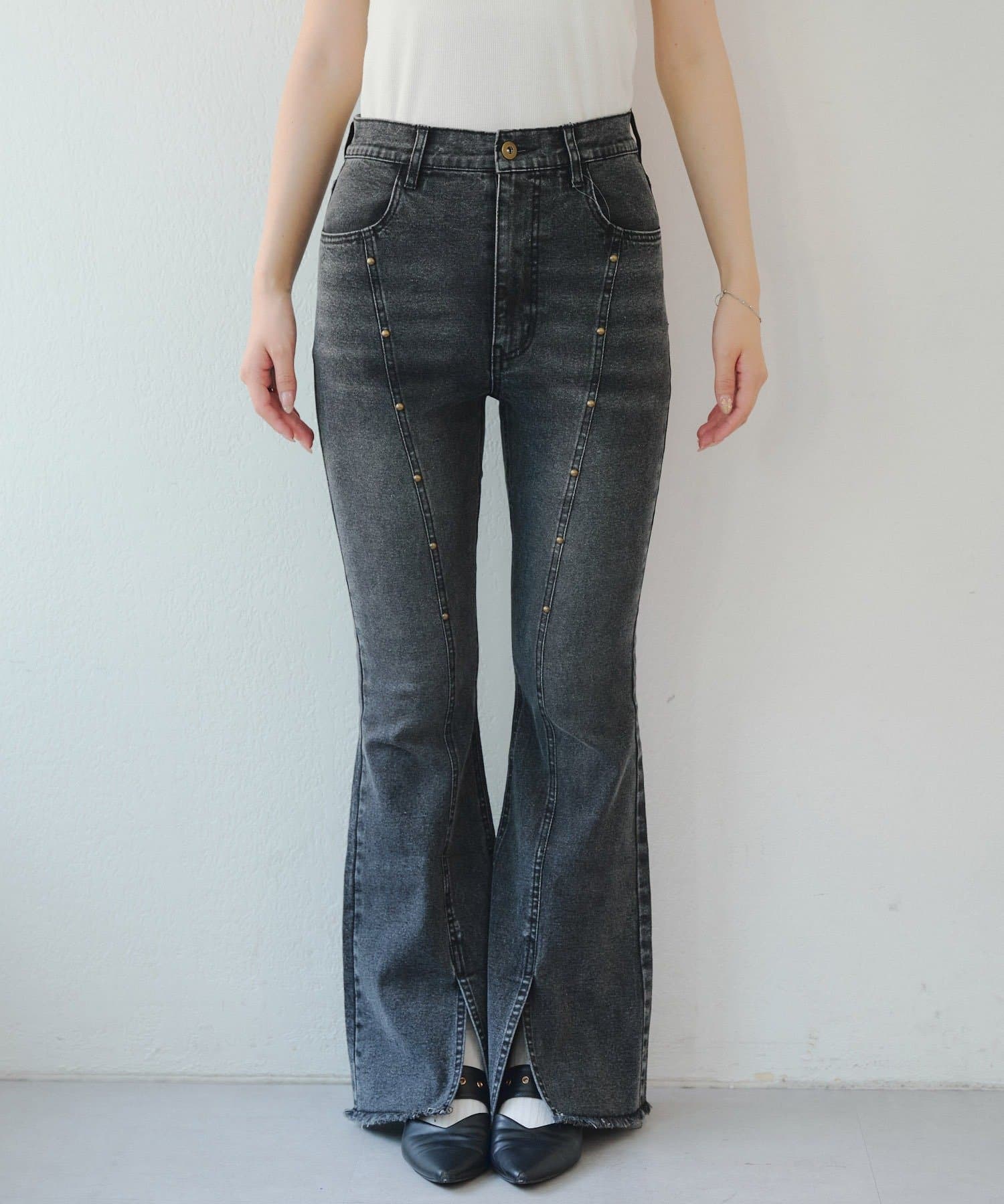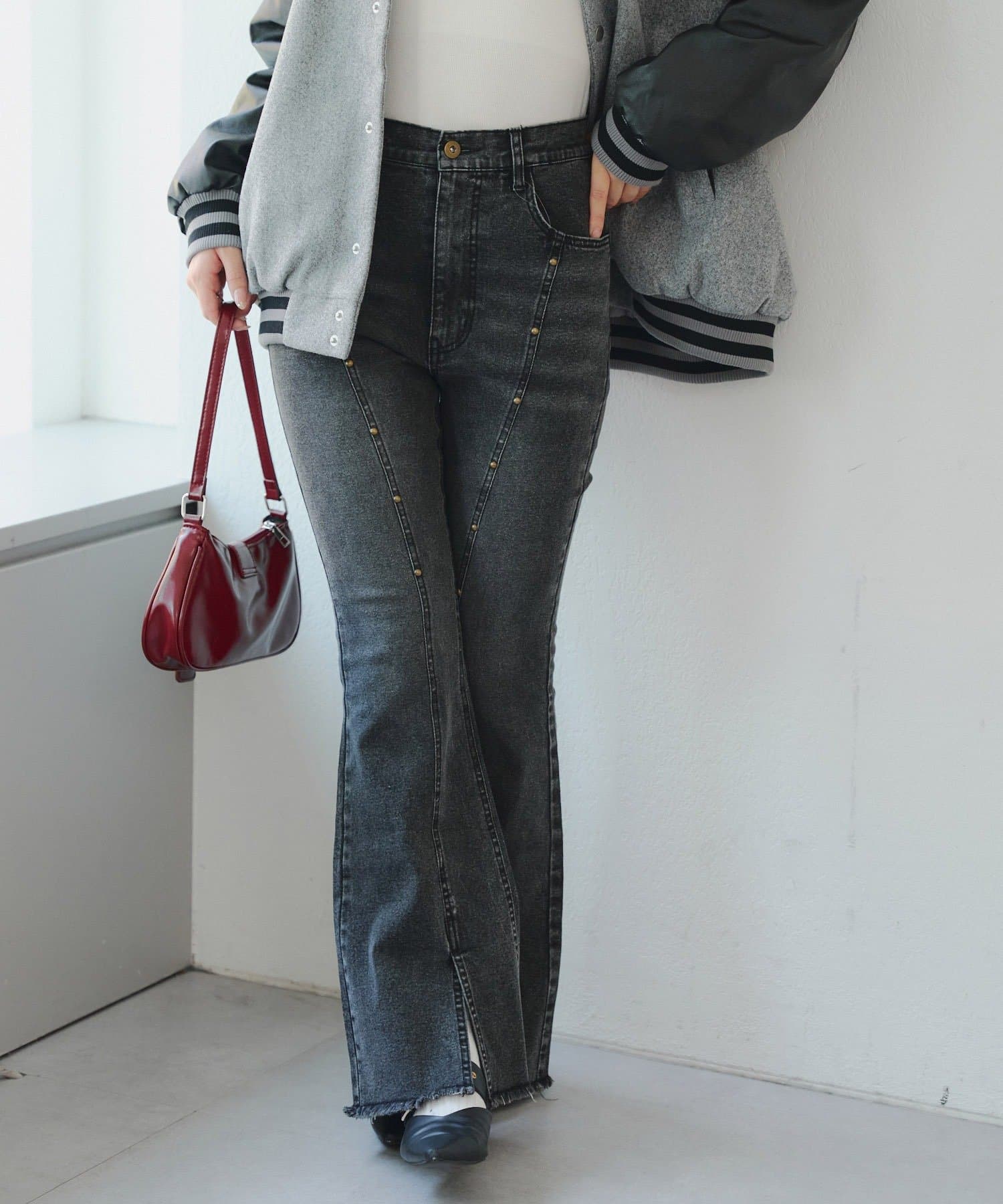 ・フロントのスタッズとスリットが大人っぽい美脚デニム