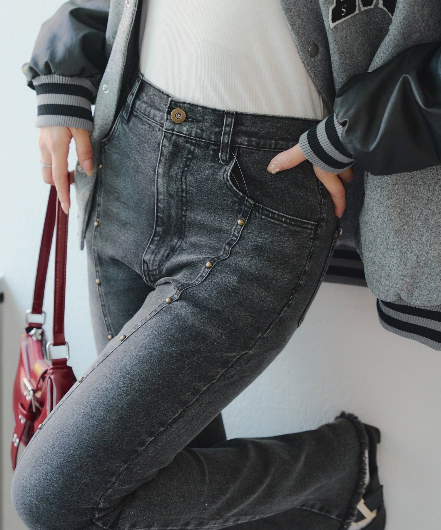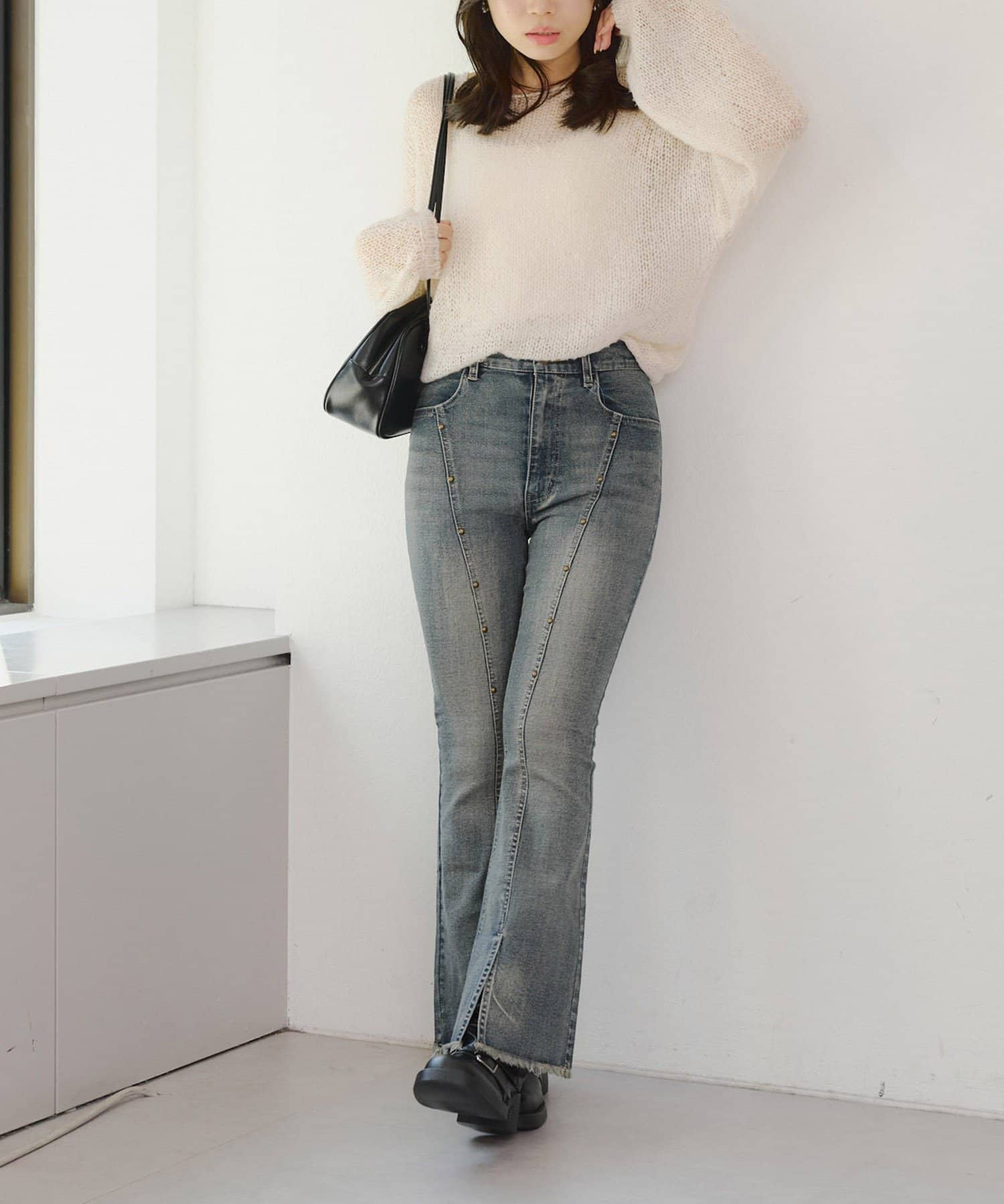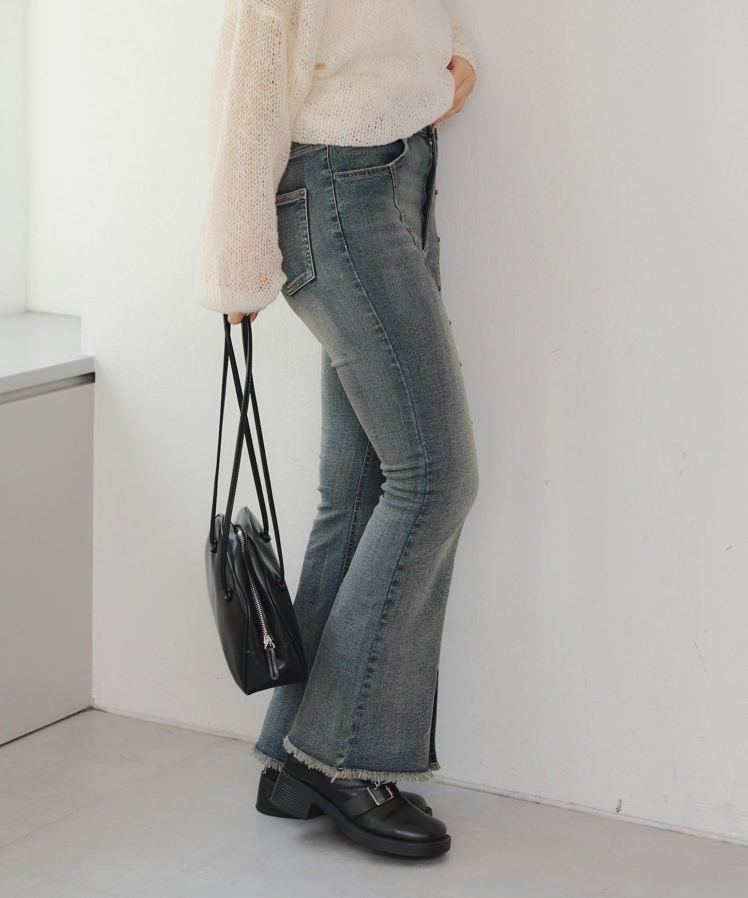 ・フロントのスタッズとスリットが大人っぽい美脚デニム