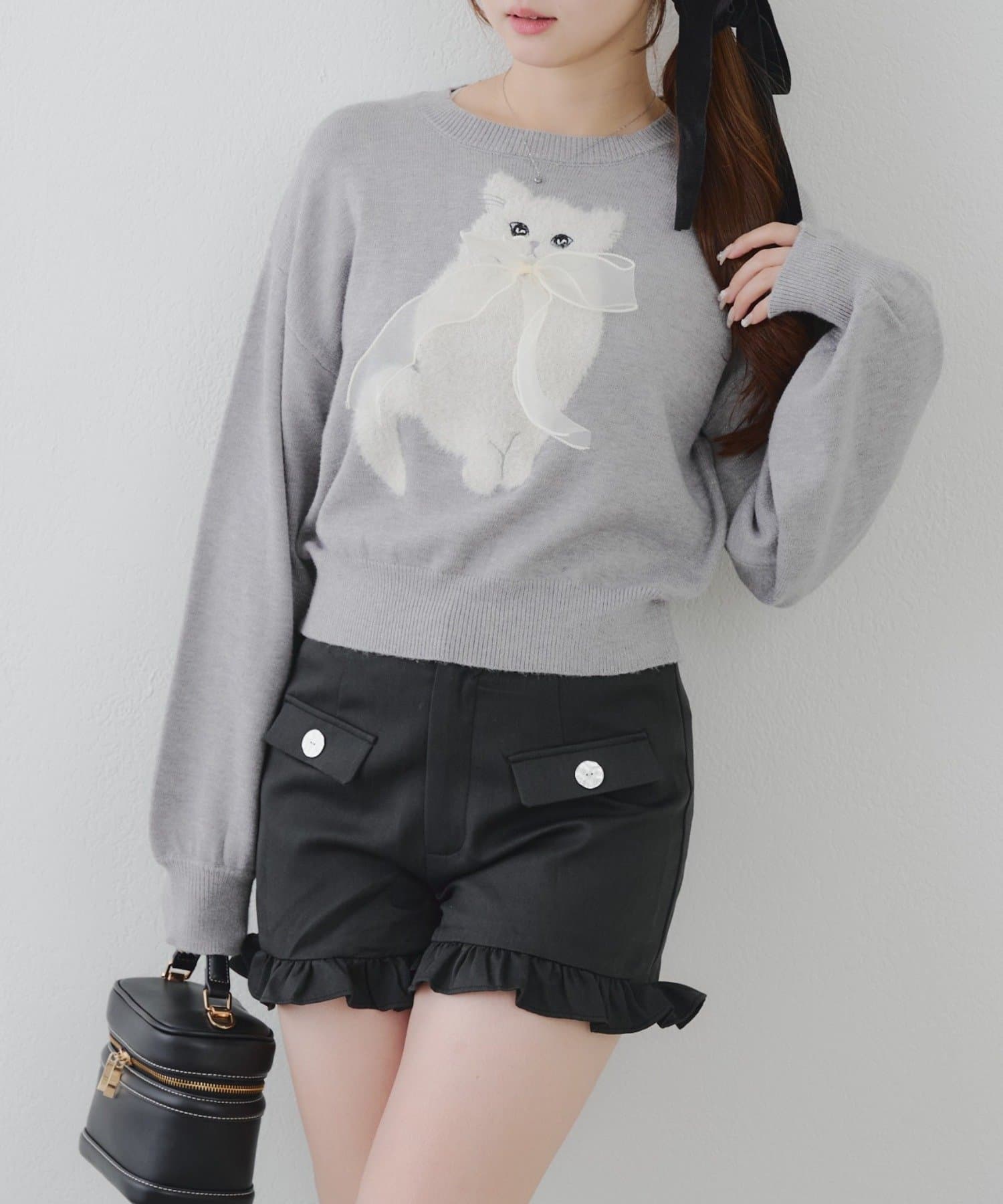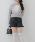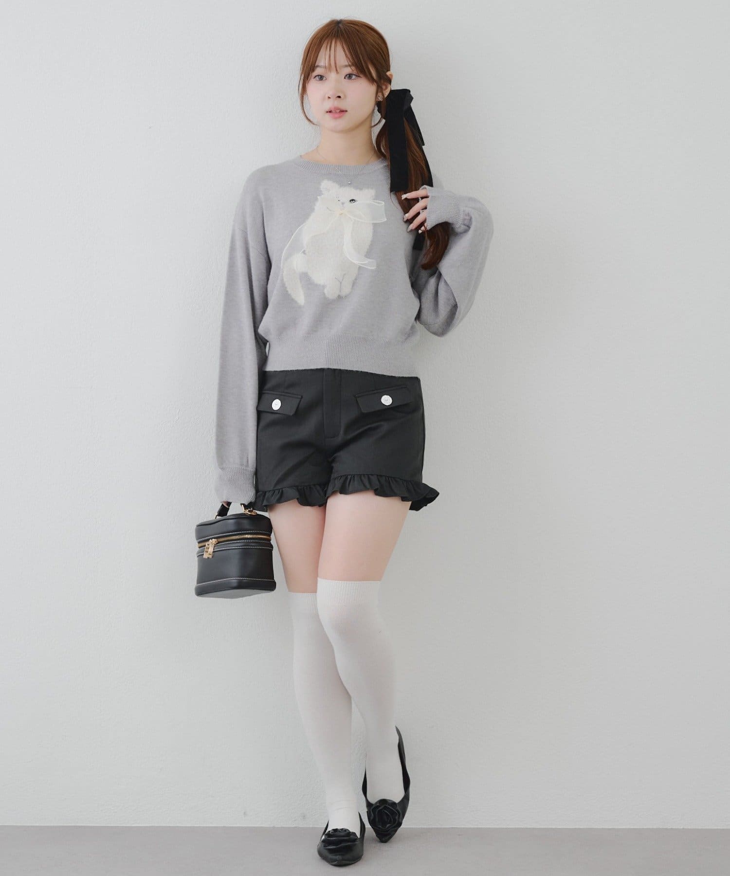 ・オーバーシルエットのニットから裾フリルをチラ見せさせるスタイリングも◎
