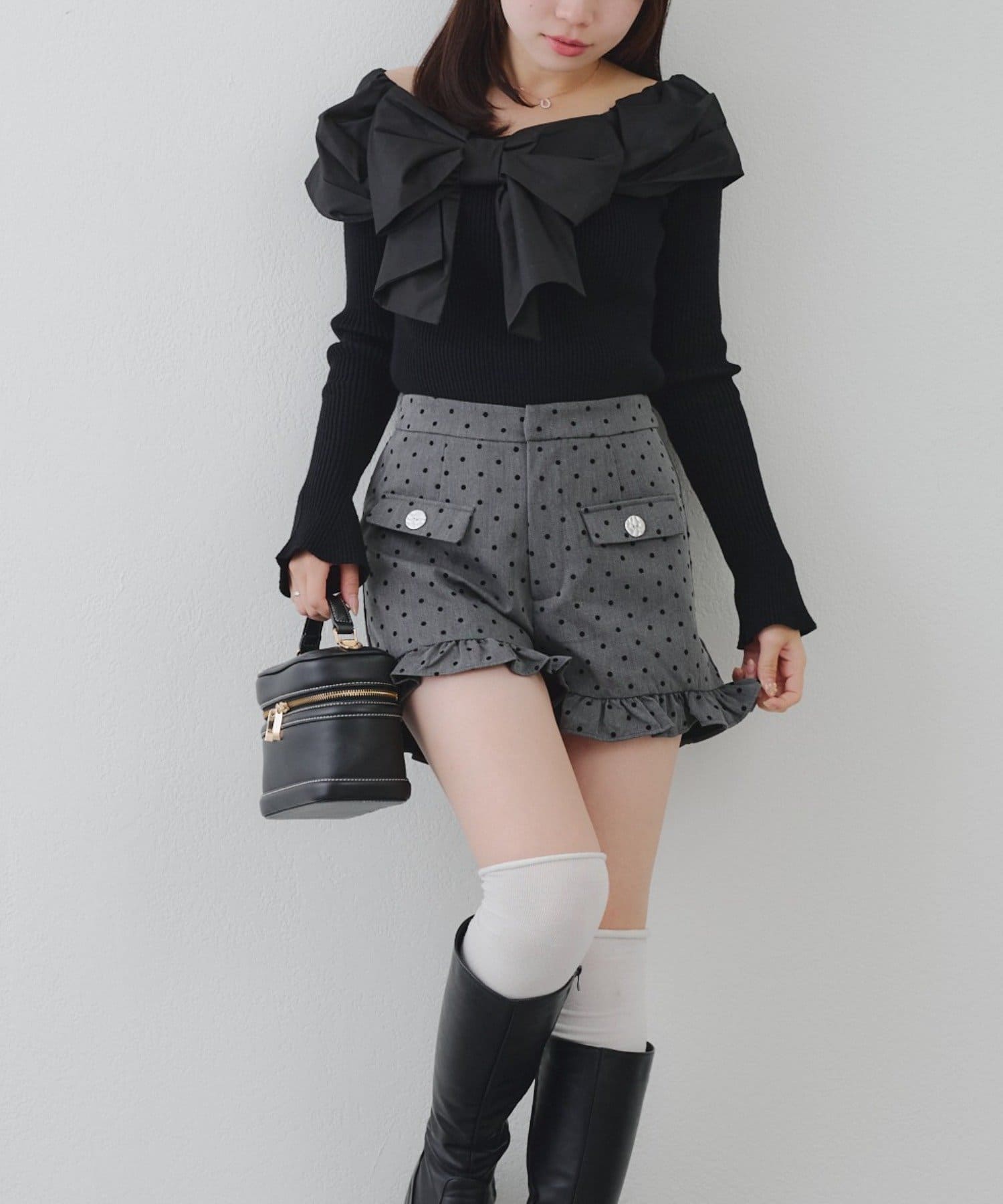 ・コンパクトな丈感で脚長効果がありつつも裾のフリルで太ももカバーも◎