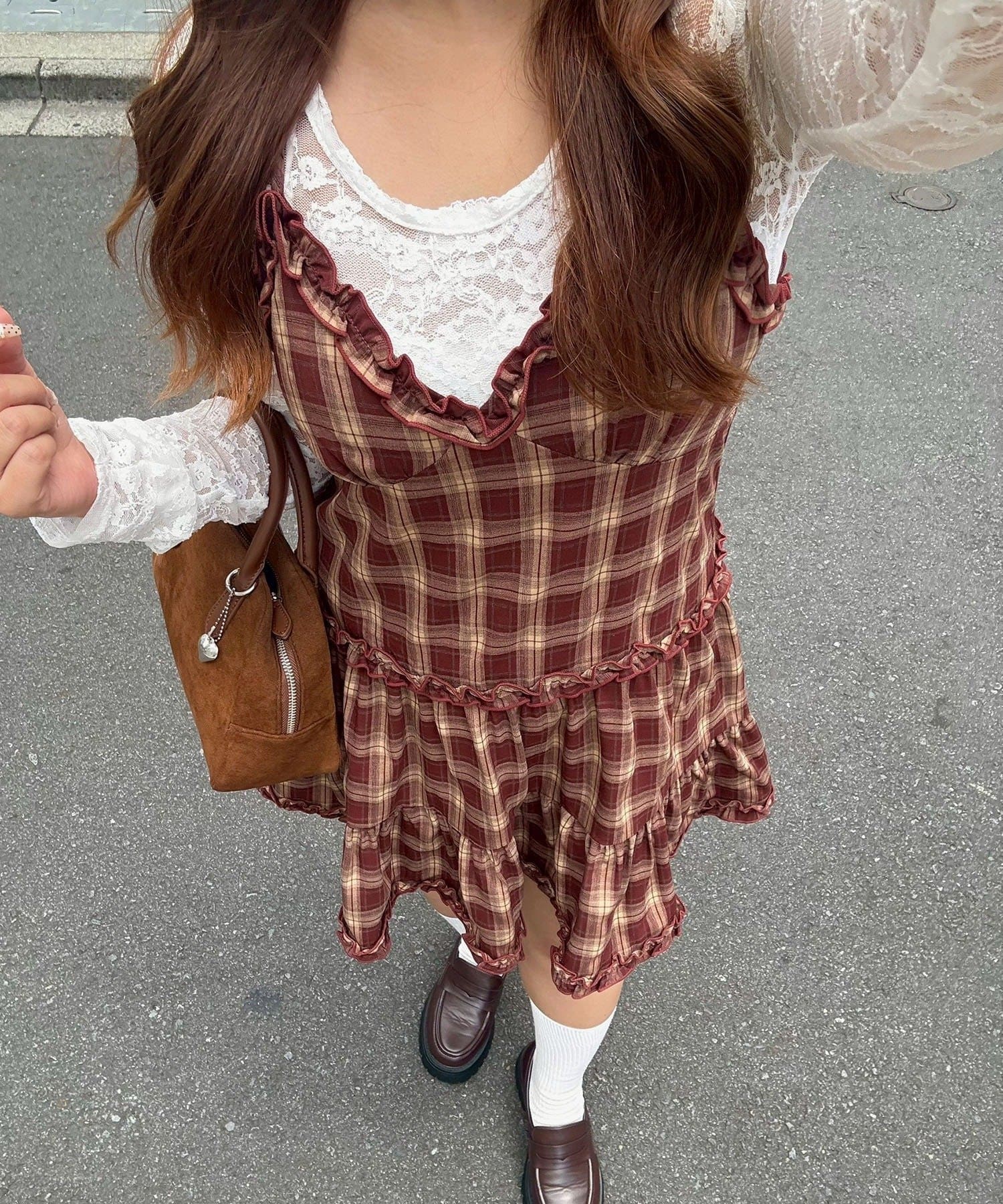 トレンドitem【RMAF】チェックティアードキャミチュニック