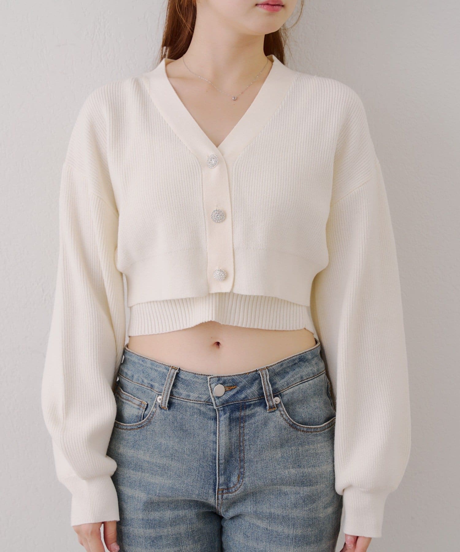 生地は丁度よくしっかりしてて上のカーディガンは胸下よりちょっと下あたりまでの丈感です!