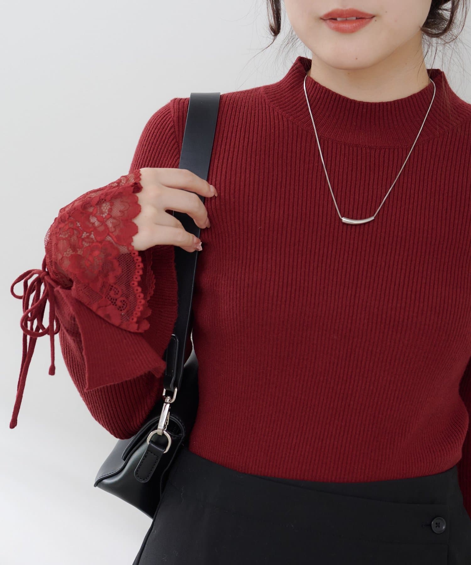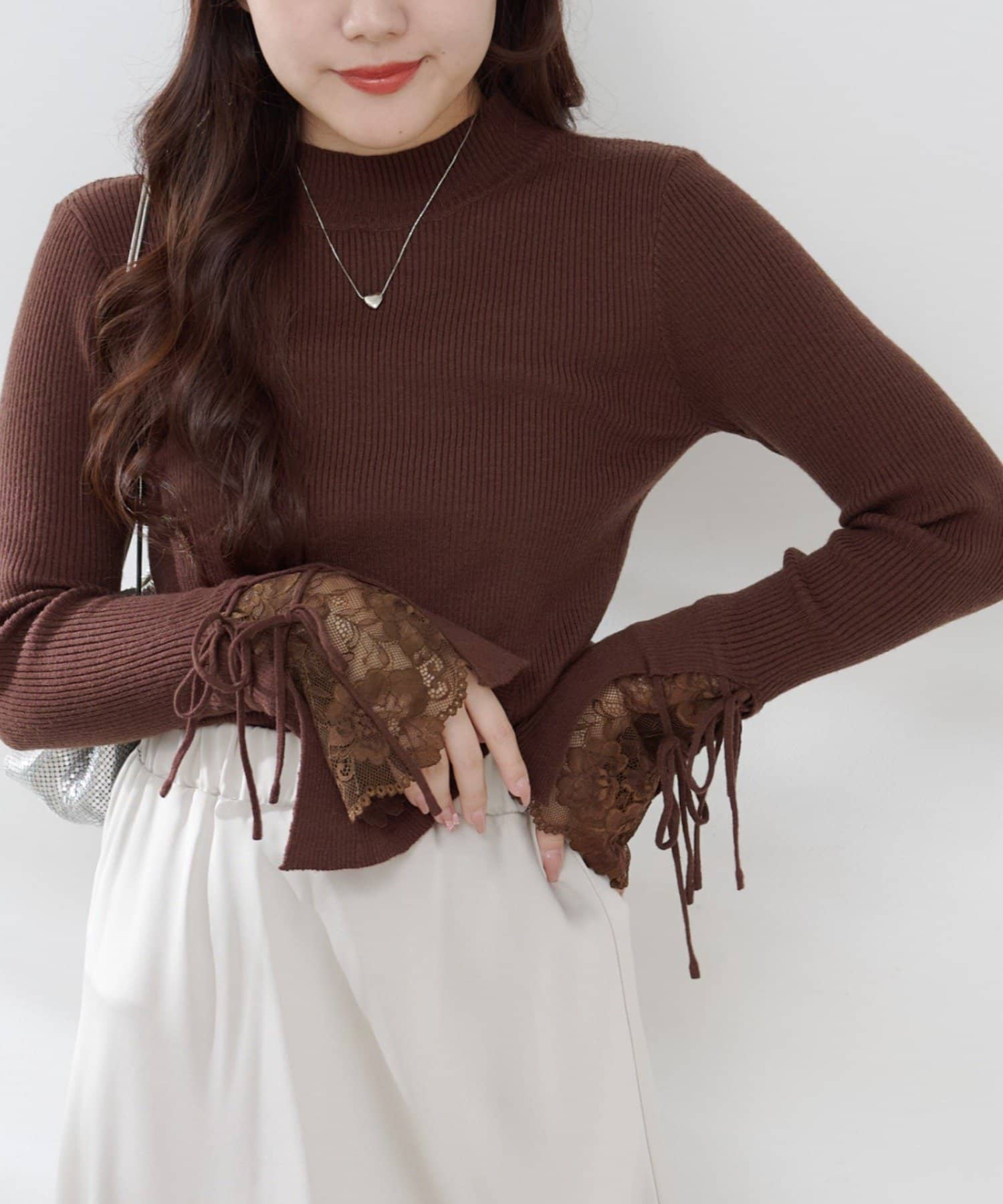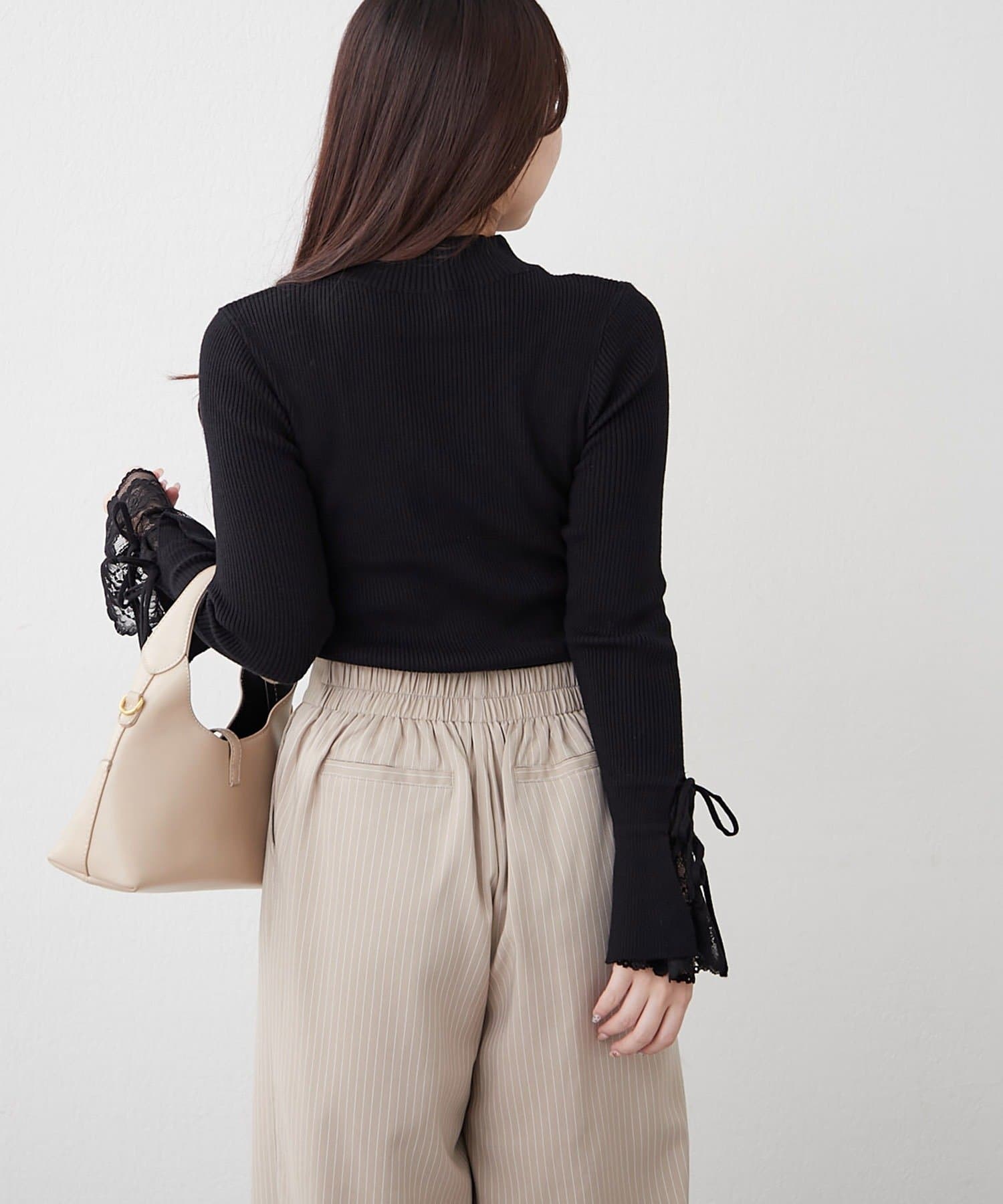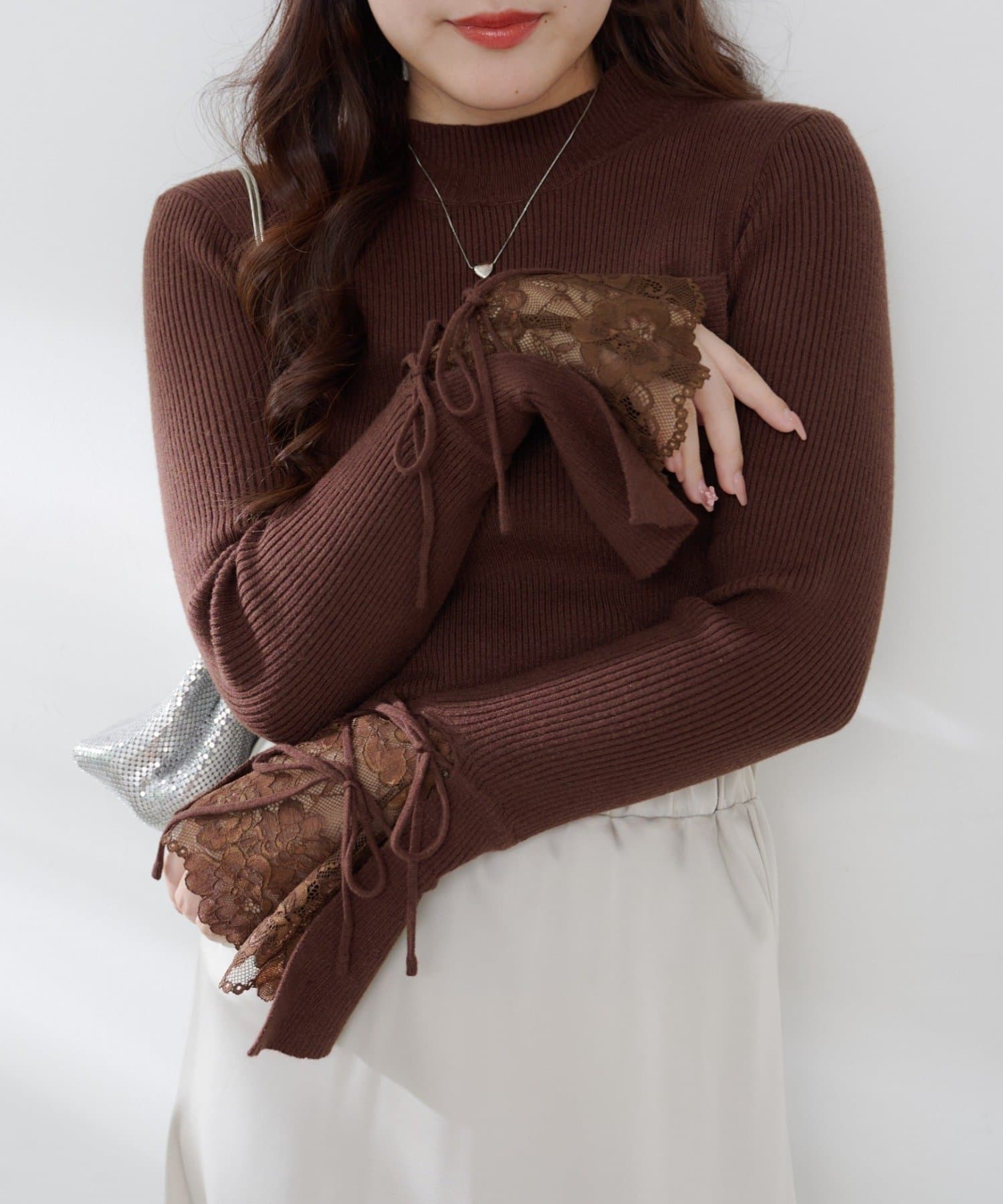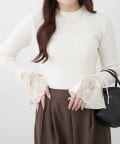 【6色展開】手元まで華やかに可愛く。袖レース&リボンニットトップス