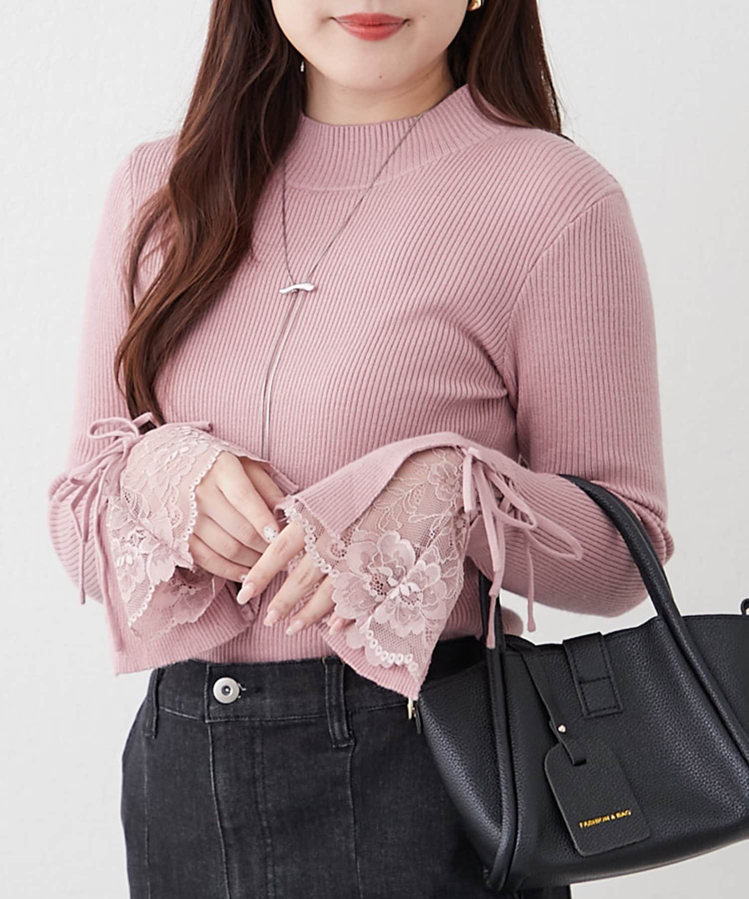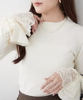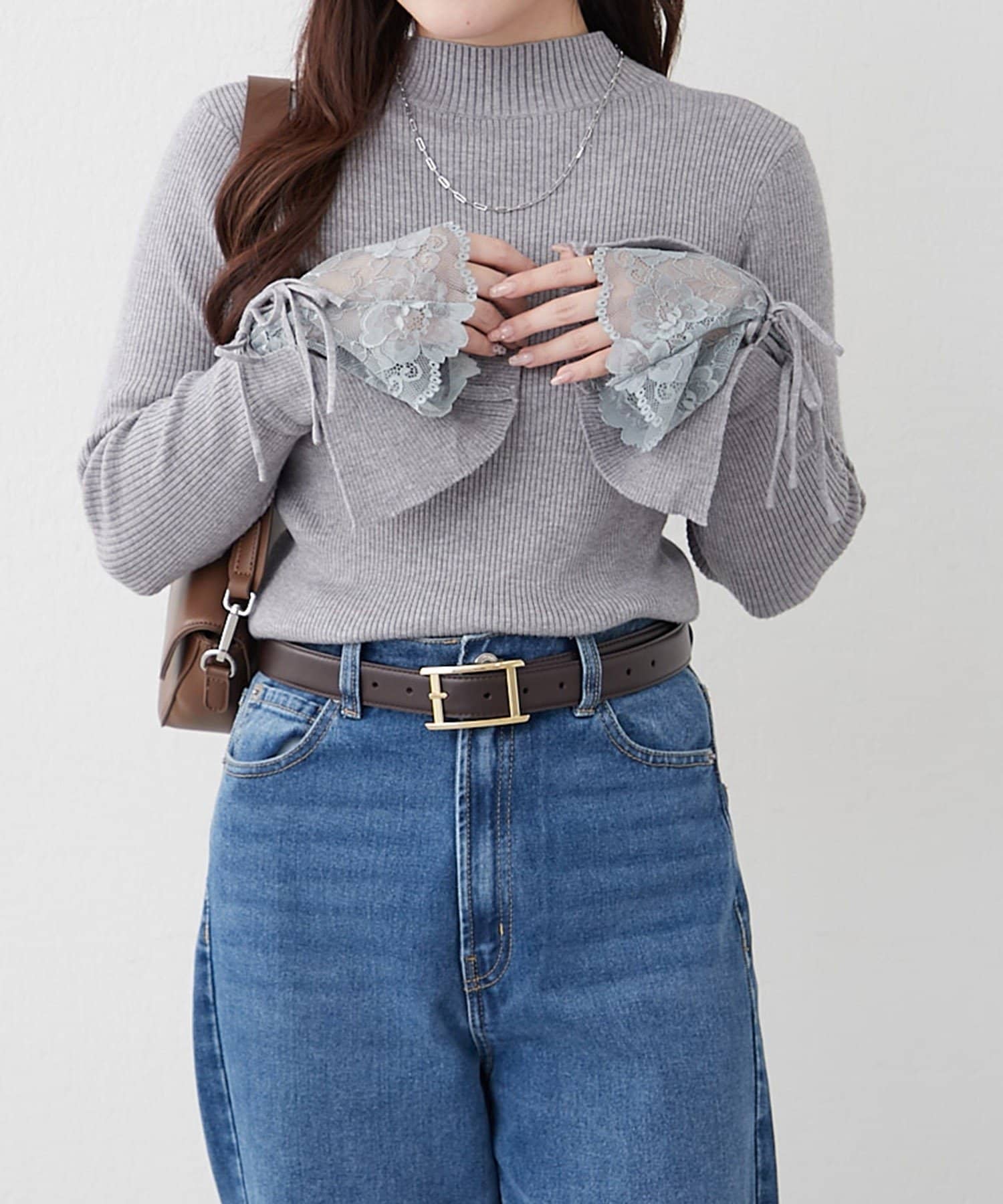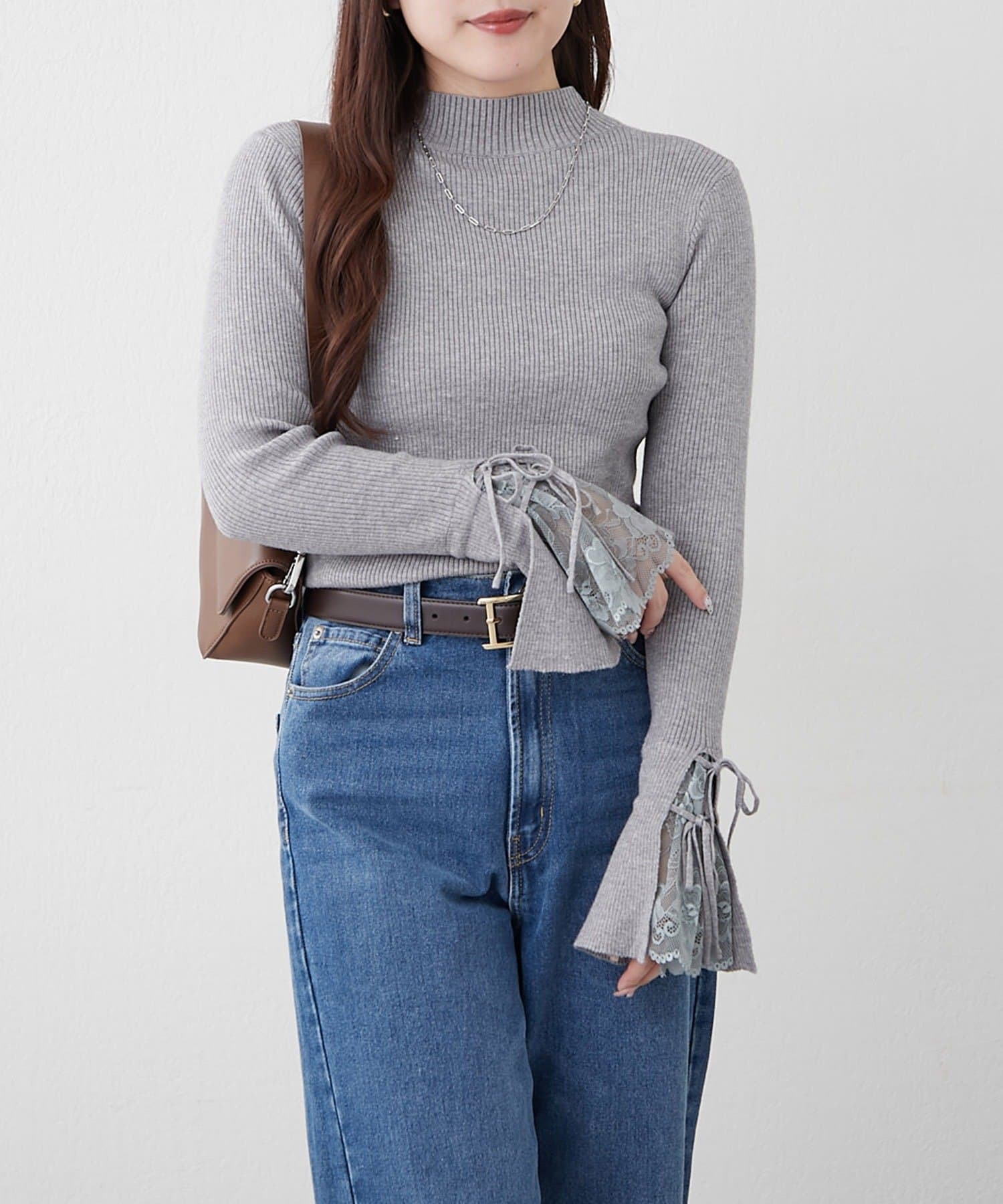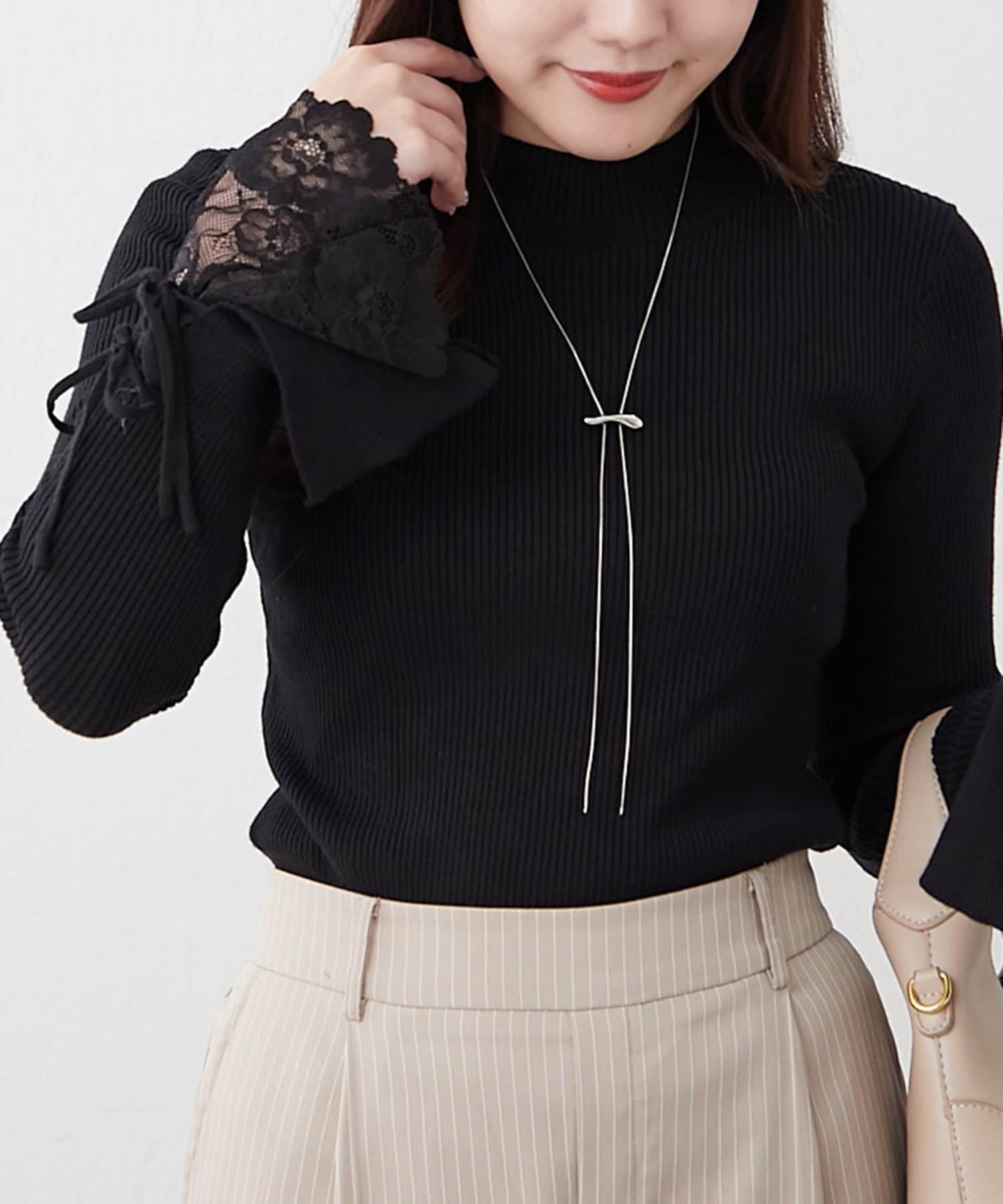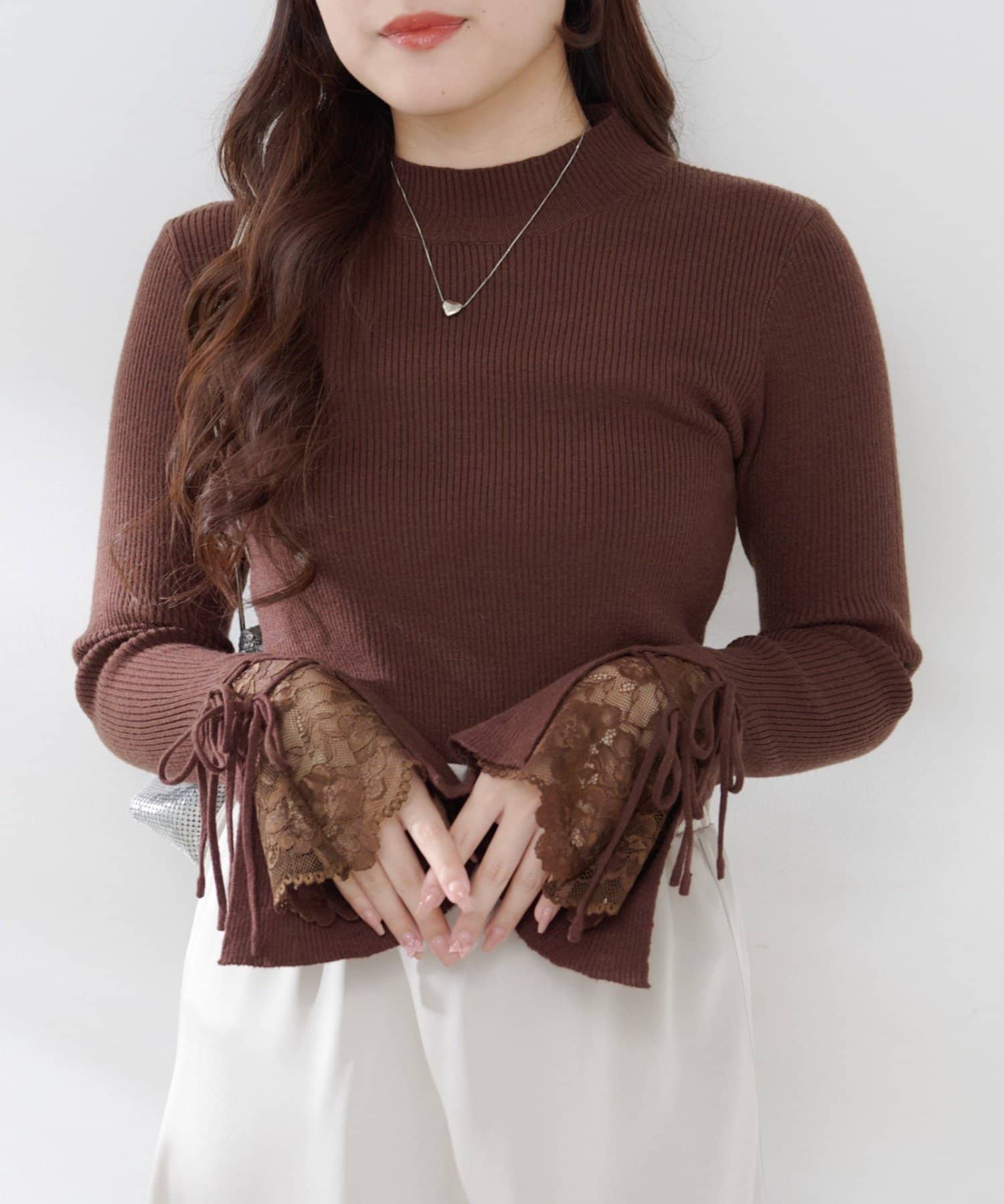【6色展開】手元まで華やかに可愛く。袖レース&リボンニットトップス