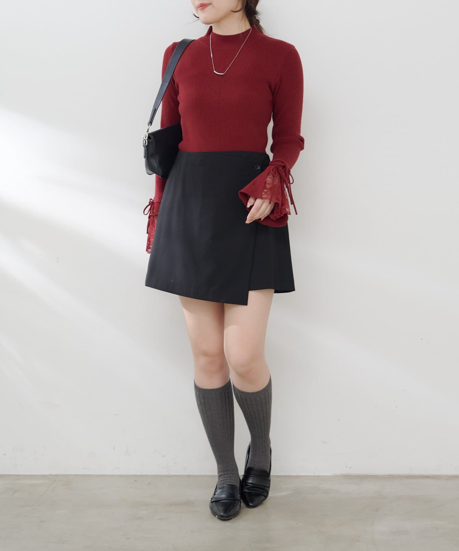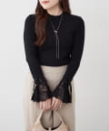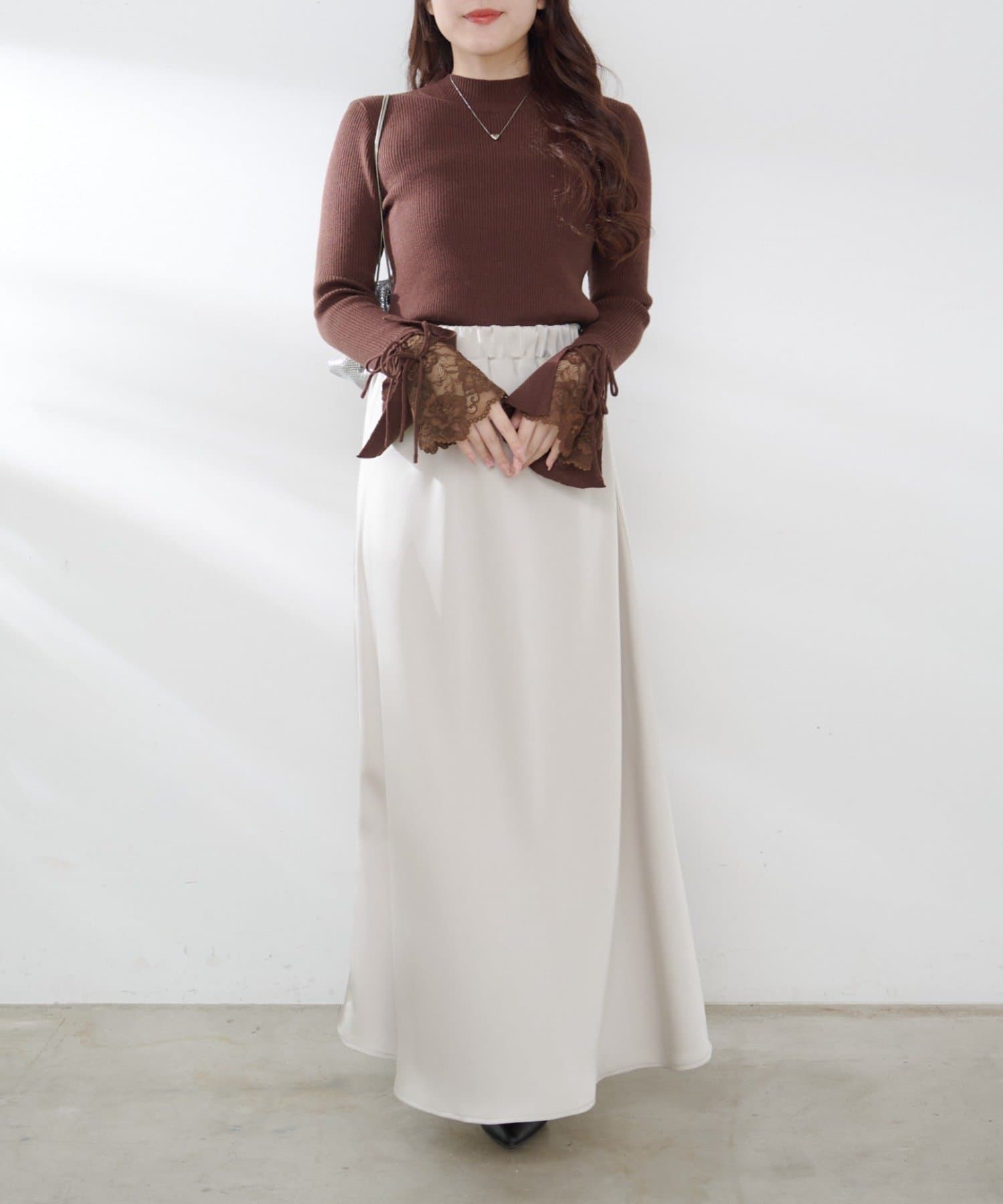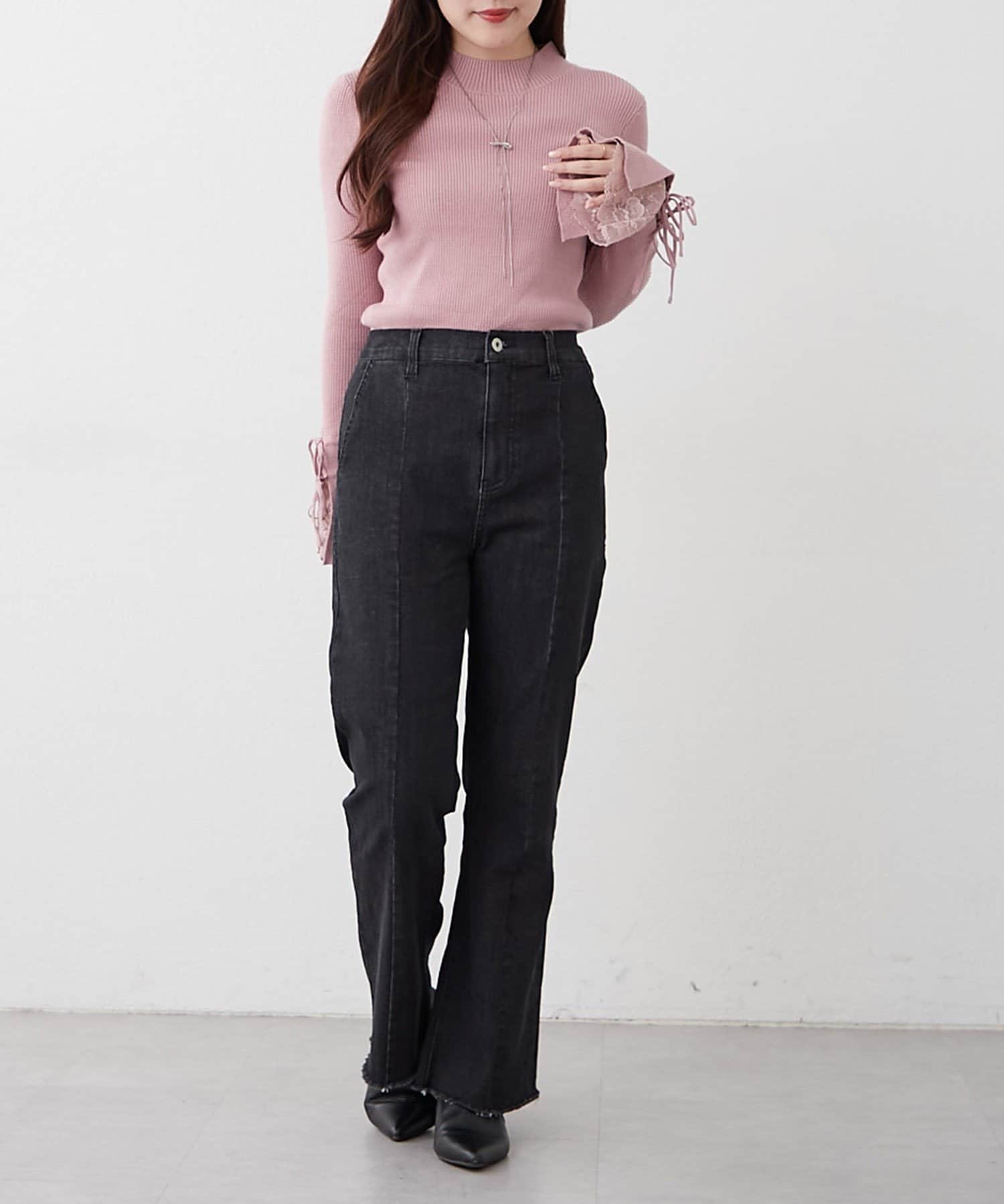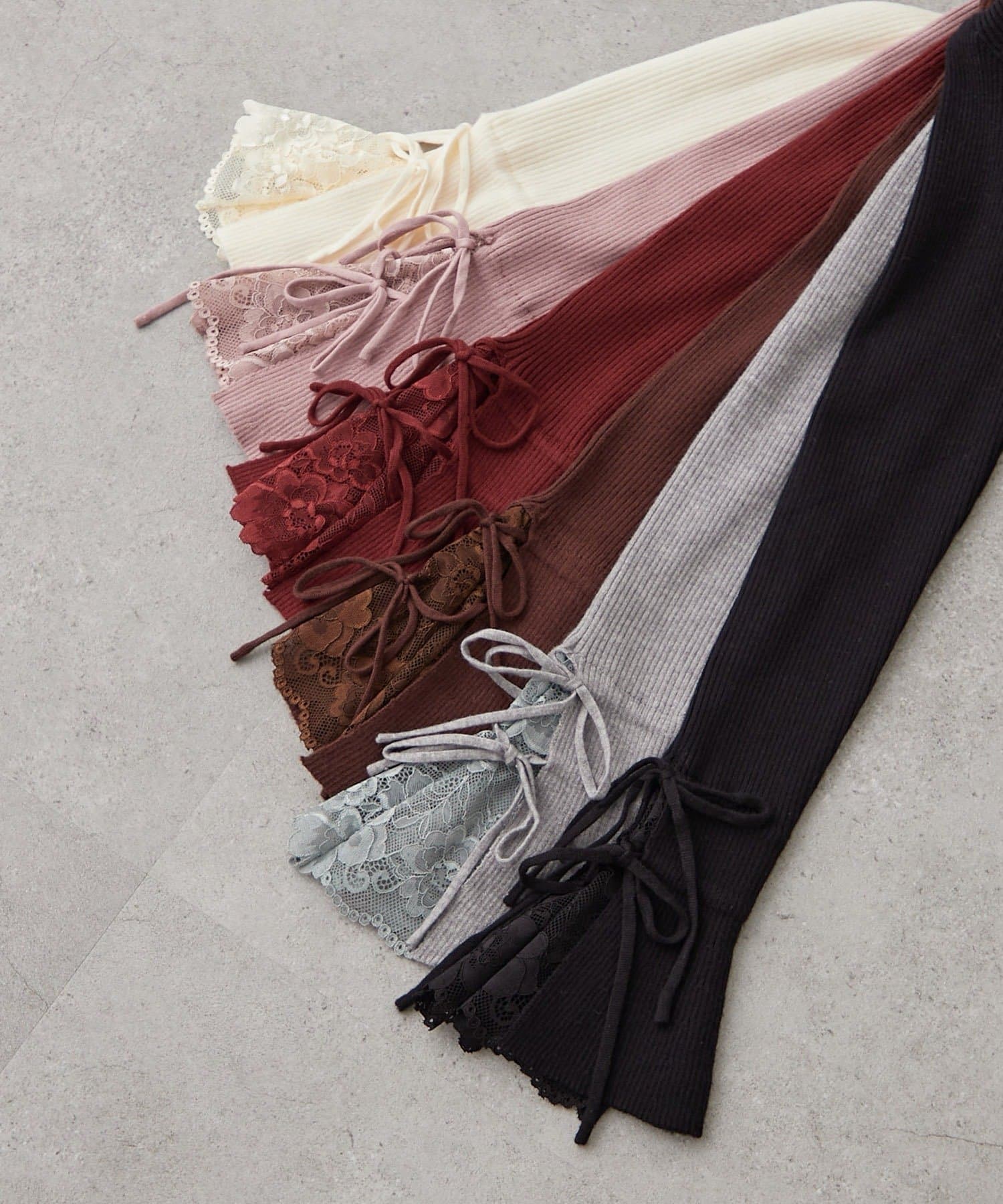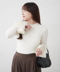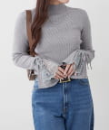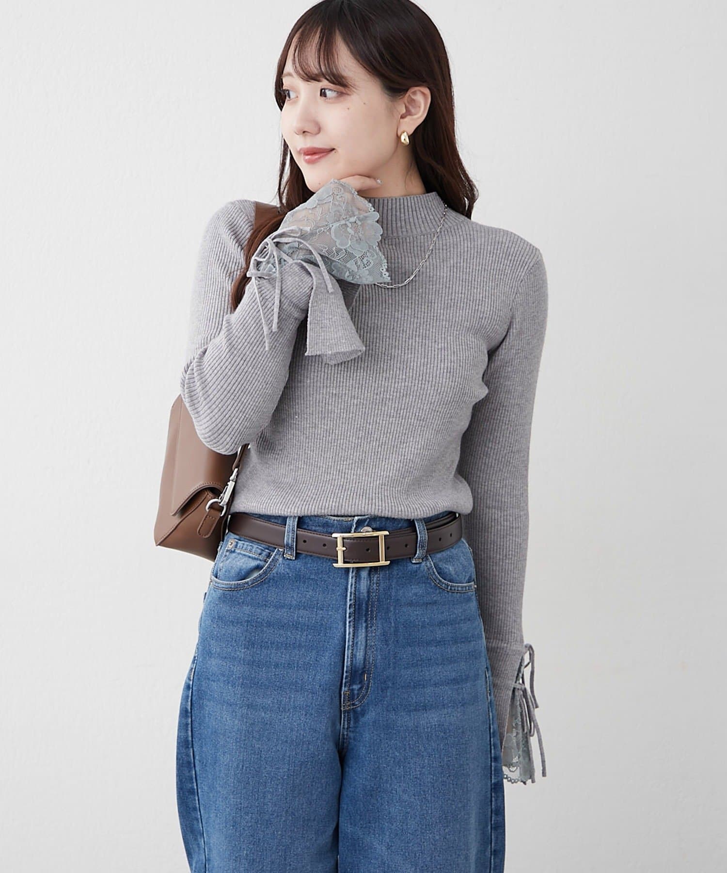 【6色展開】手元まで華やかに可愛く。袖レース&リボンニットトップス