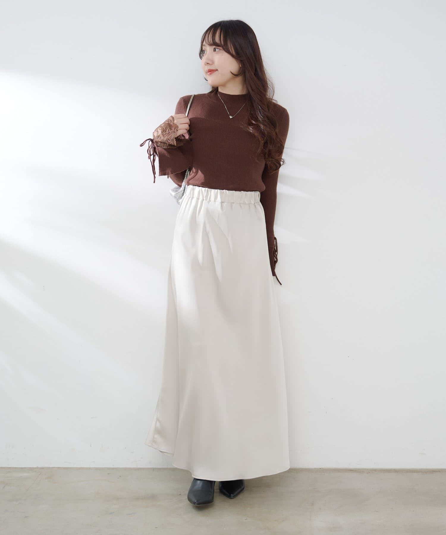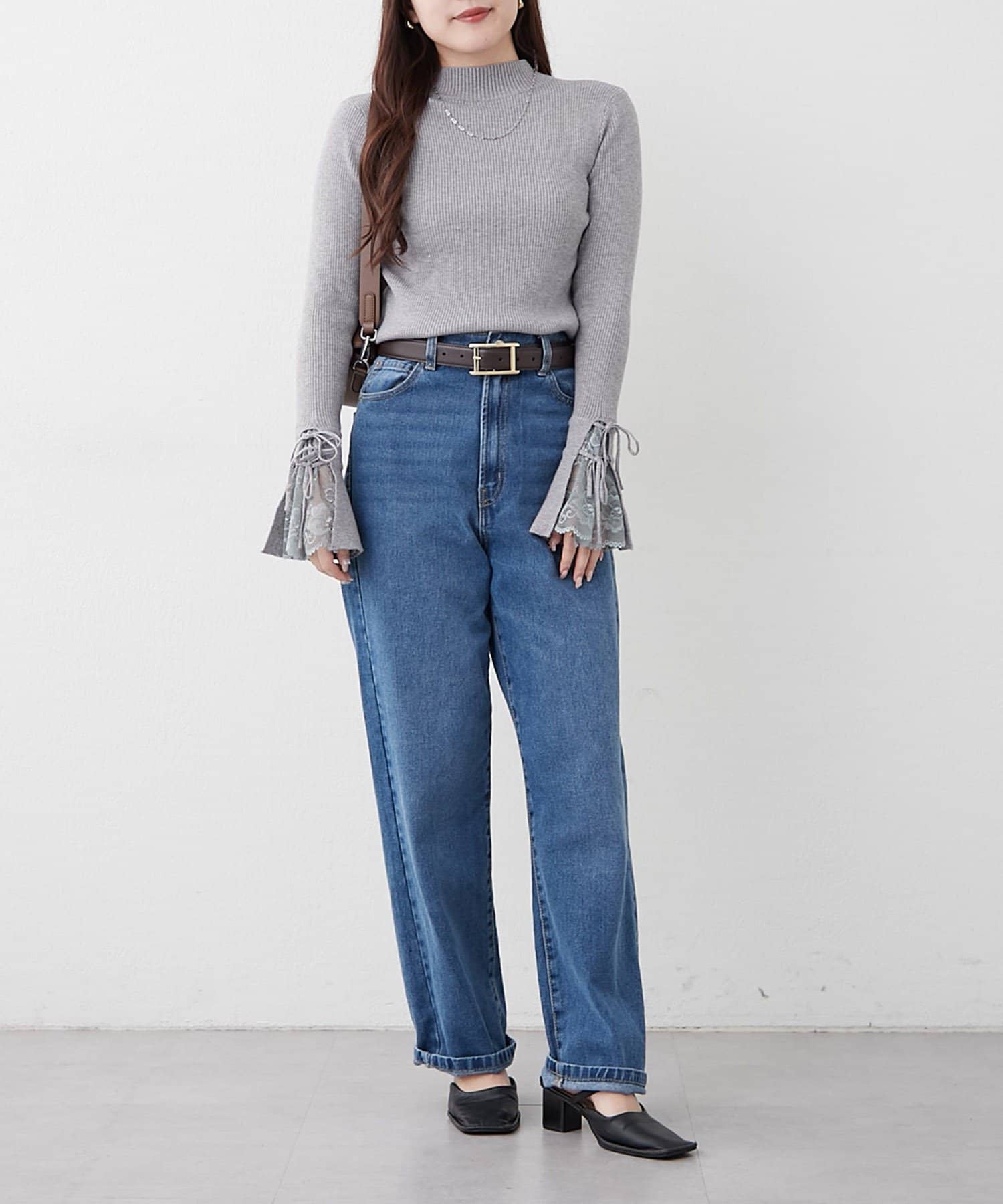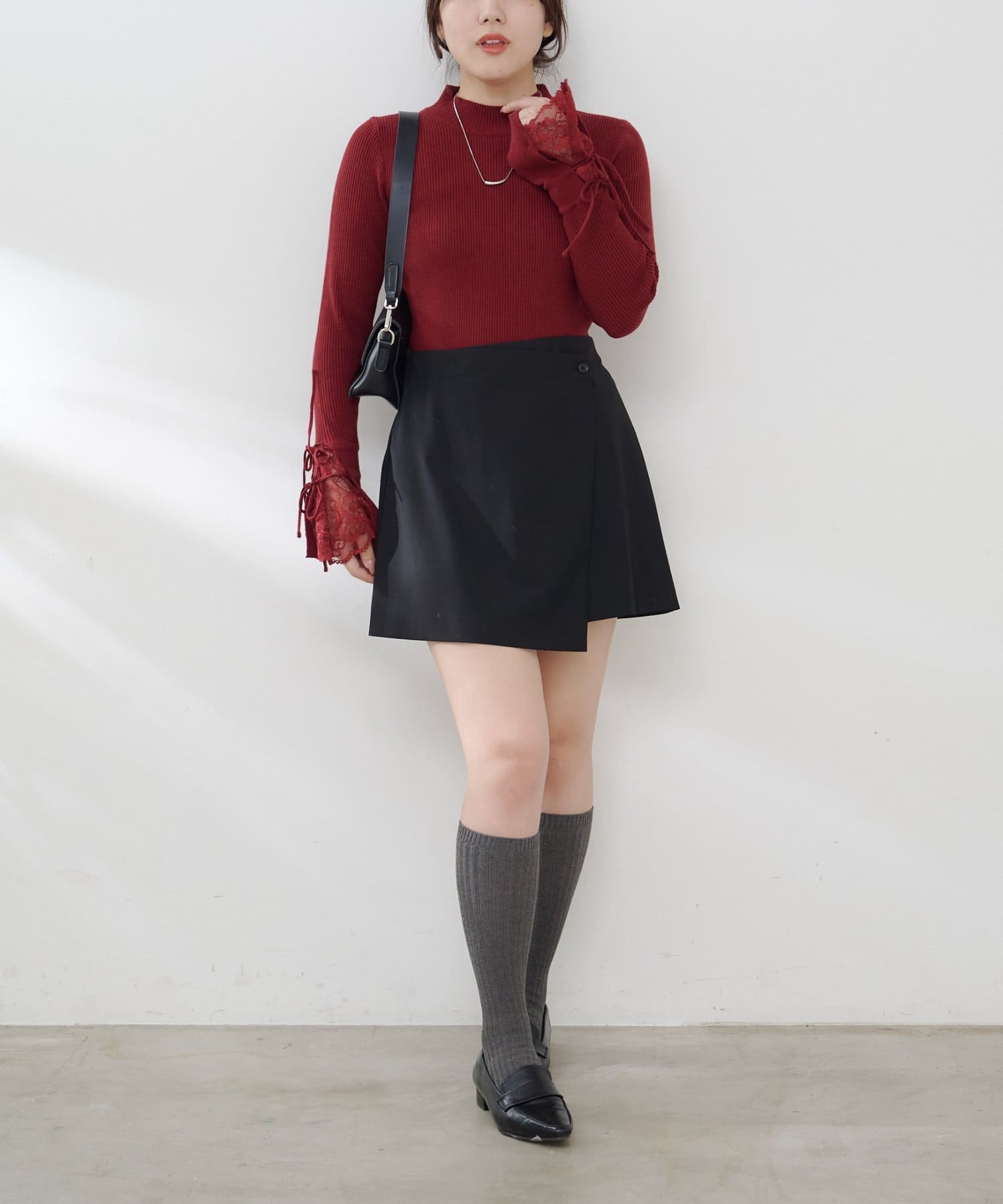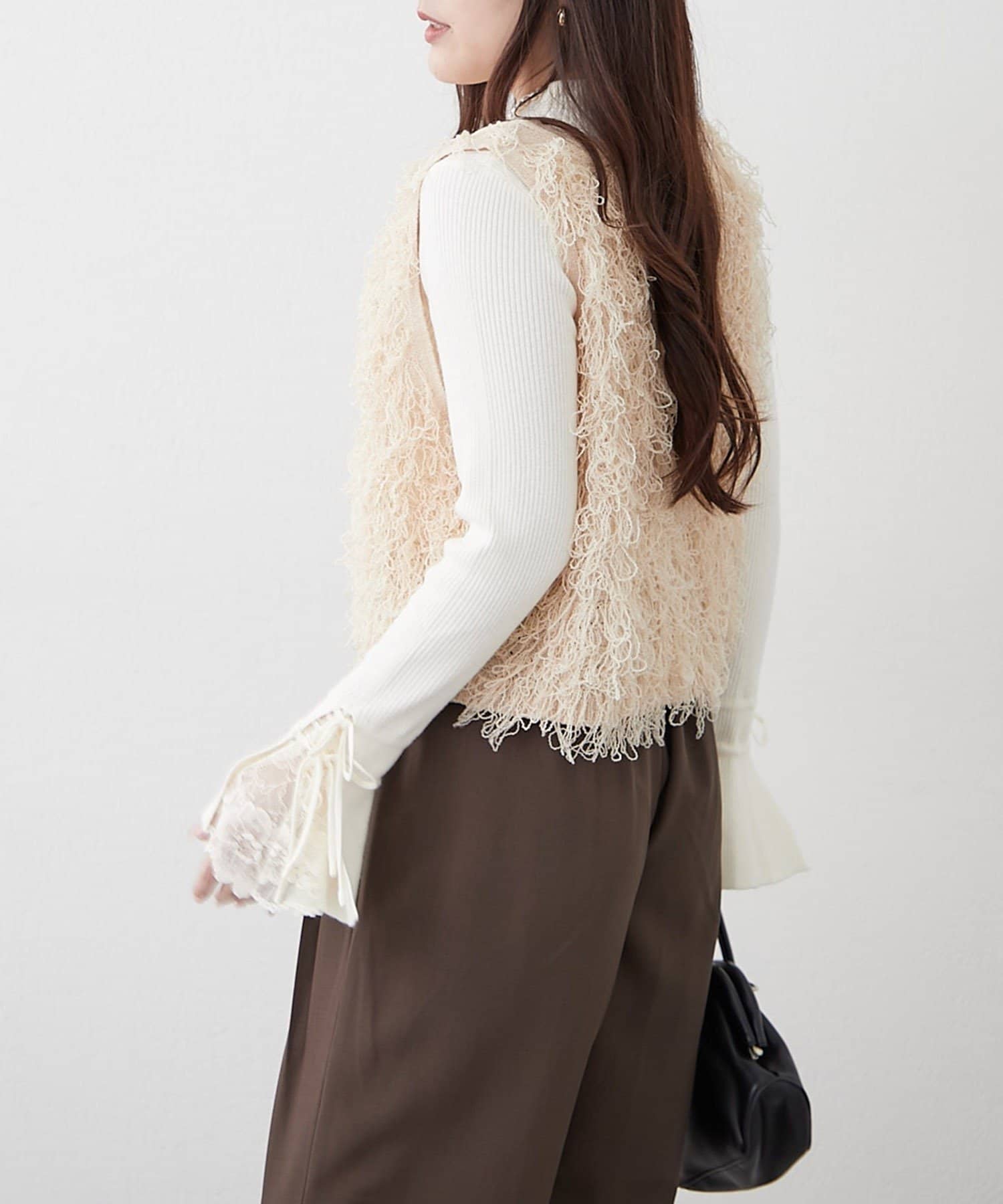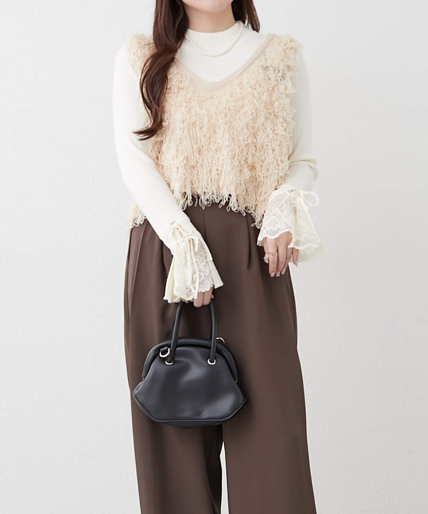 【6色展開】手元まで華やかに可愛く。袖レース&リボンニットトップス