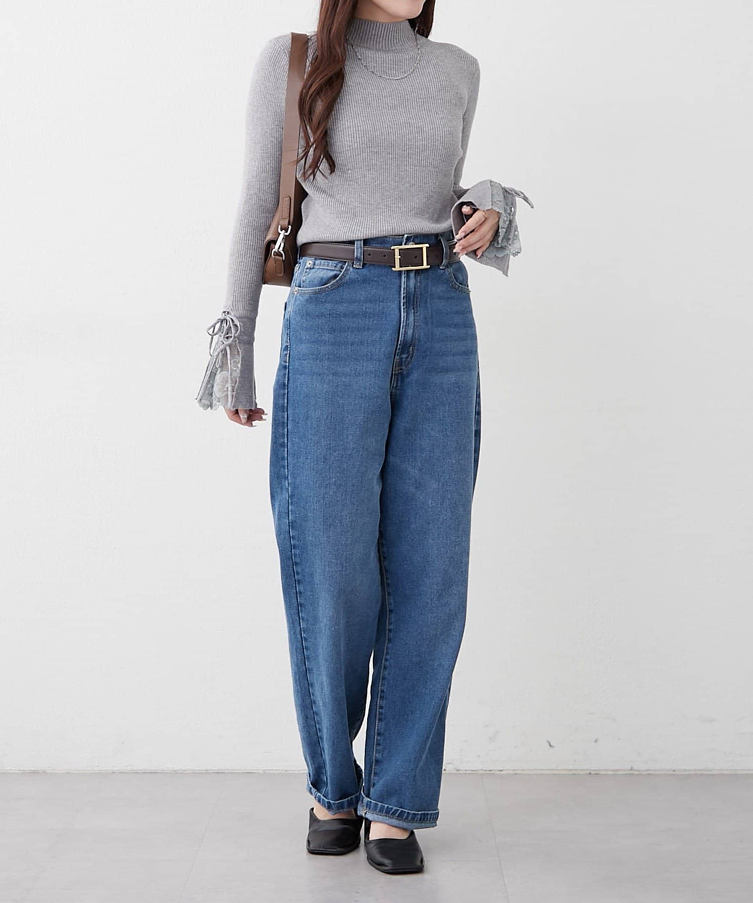 ・デニムパンツ合わせは大人カジュアルなスタイリングに。