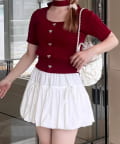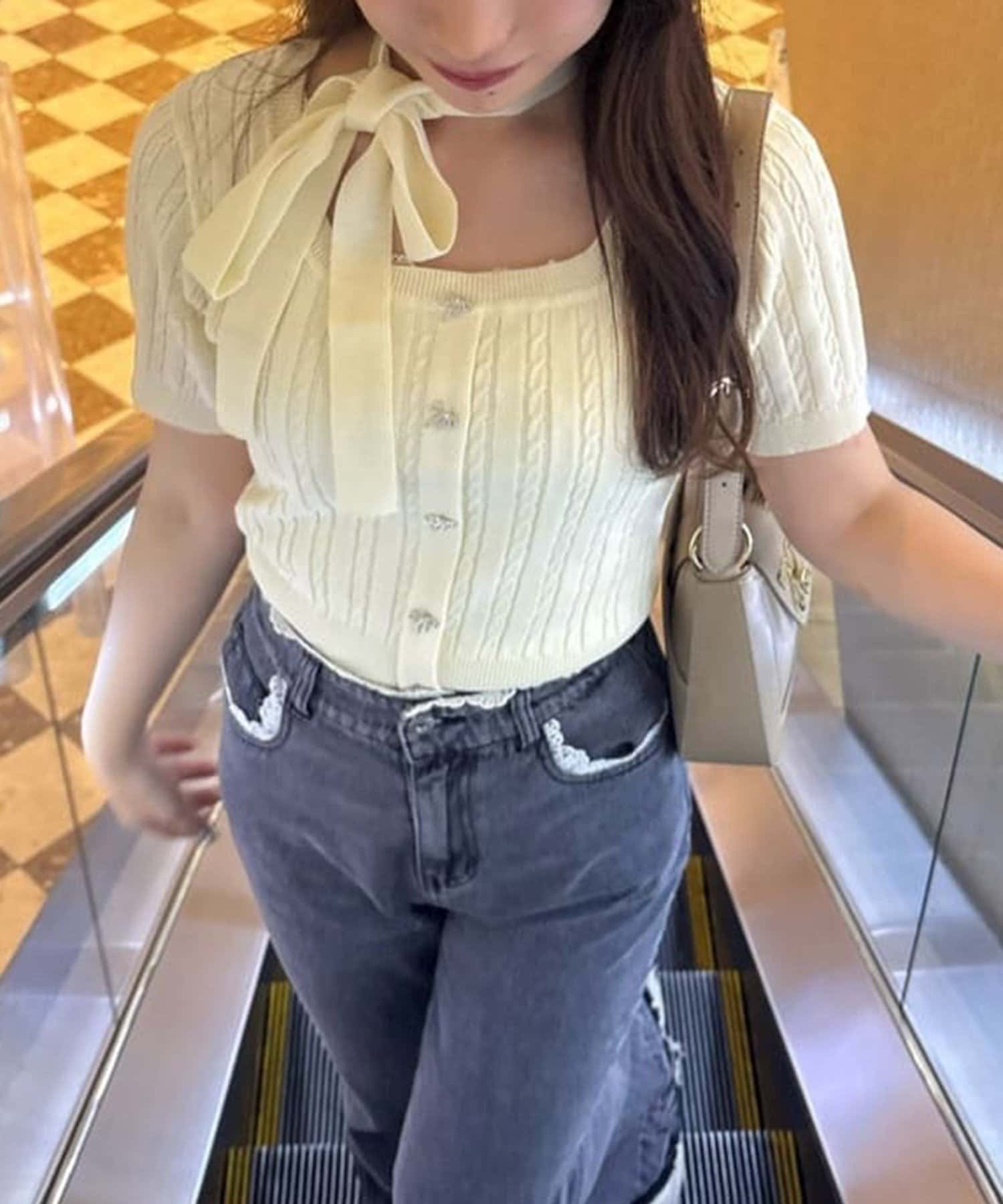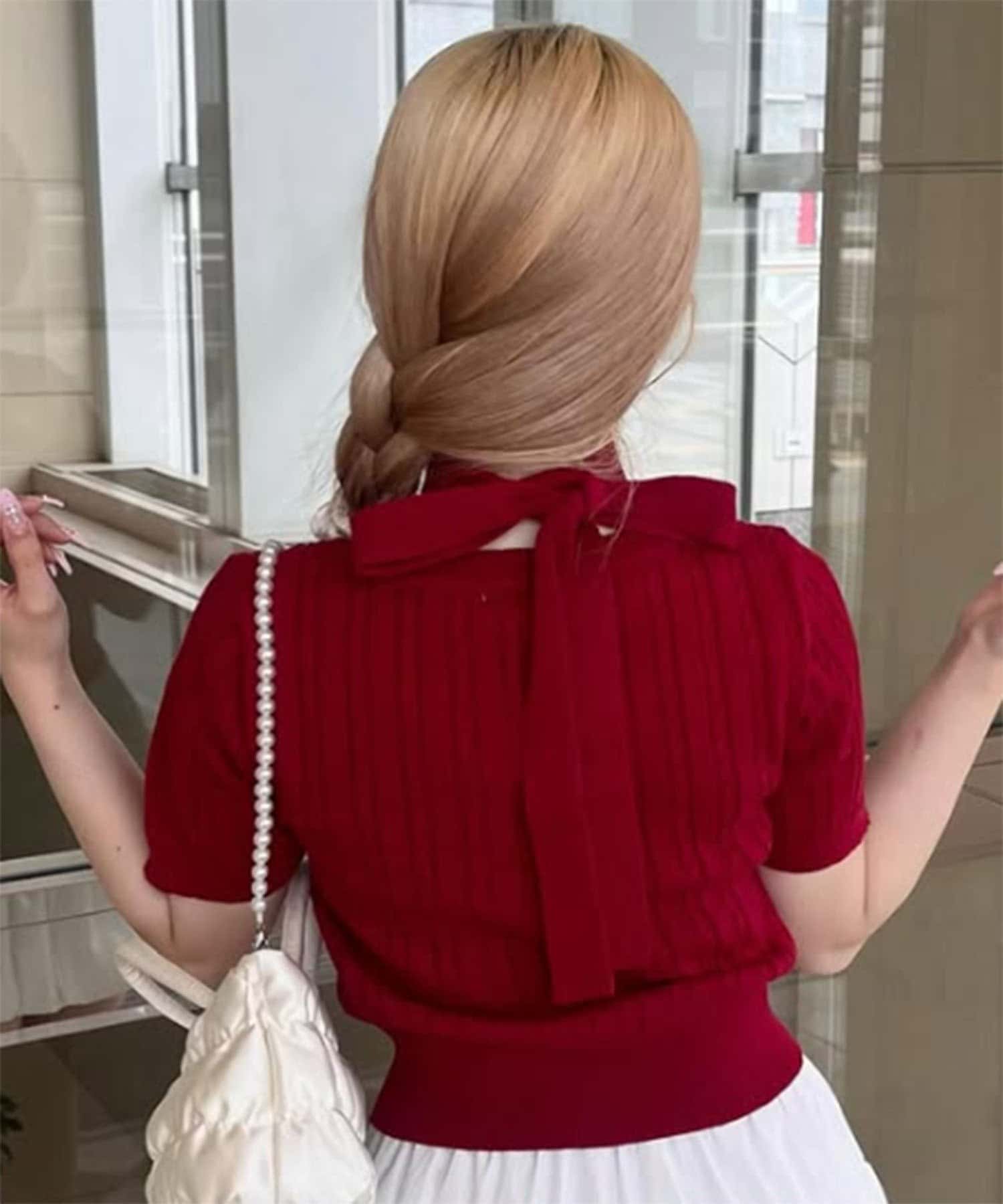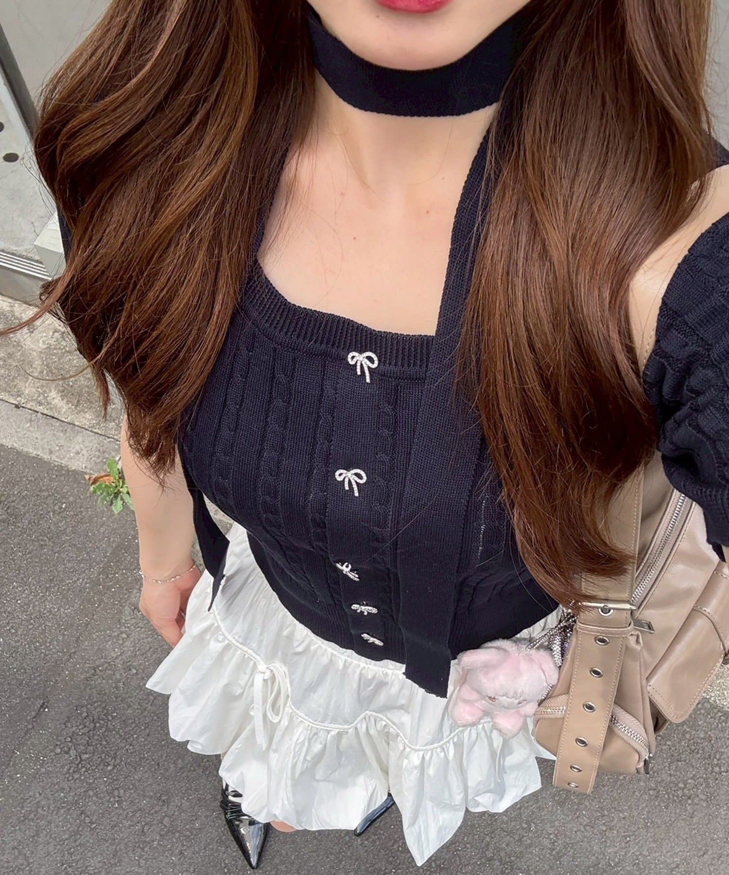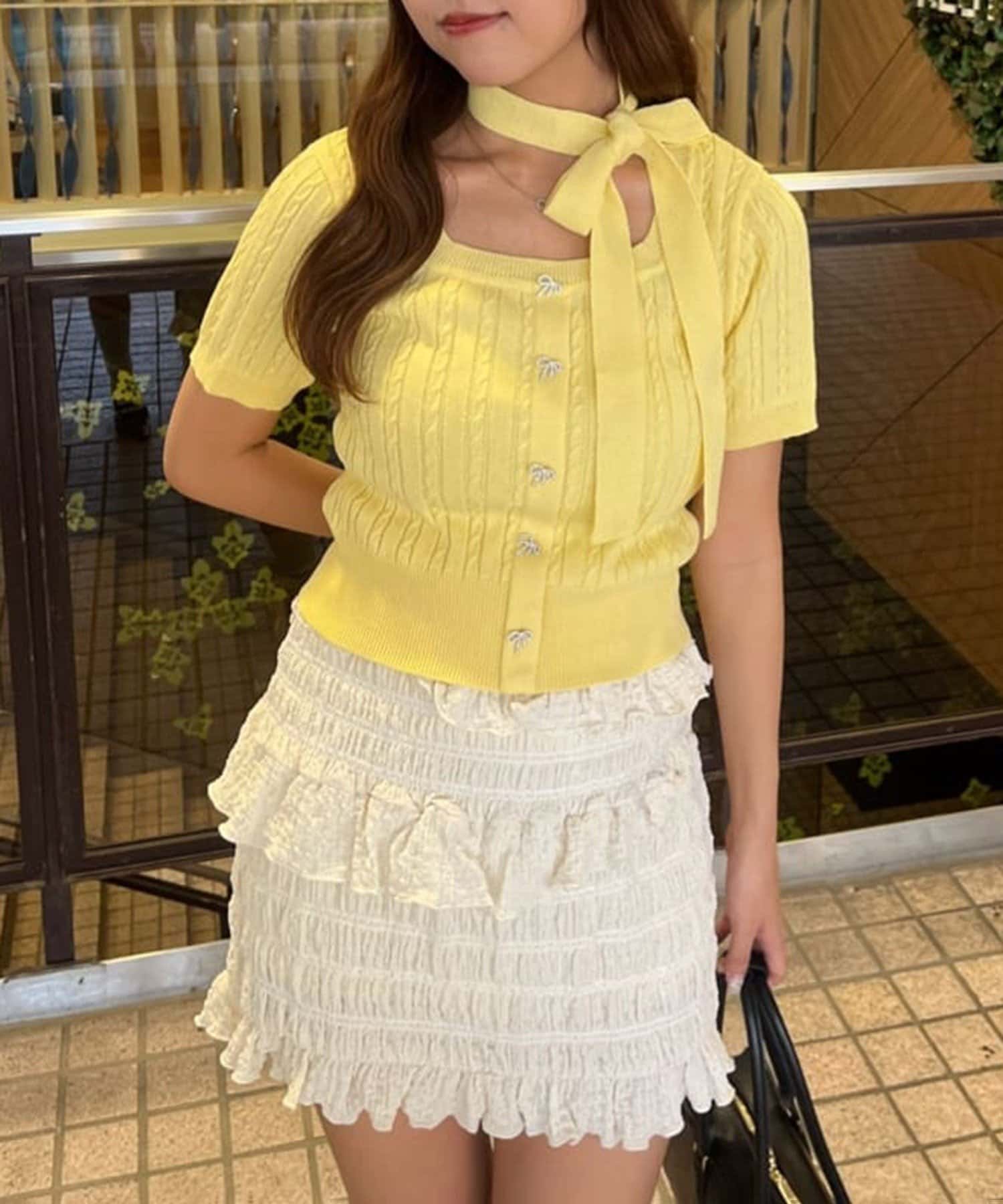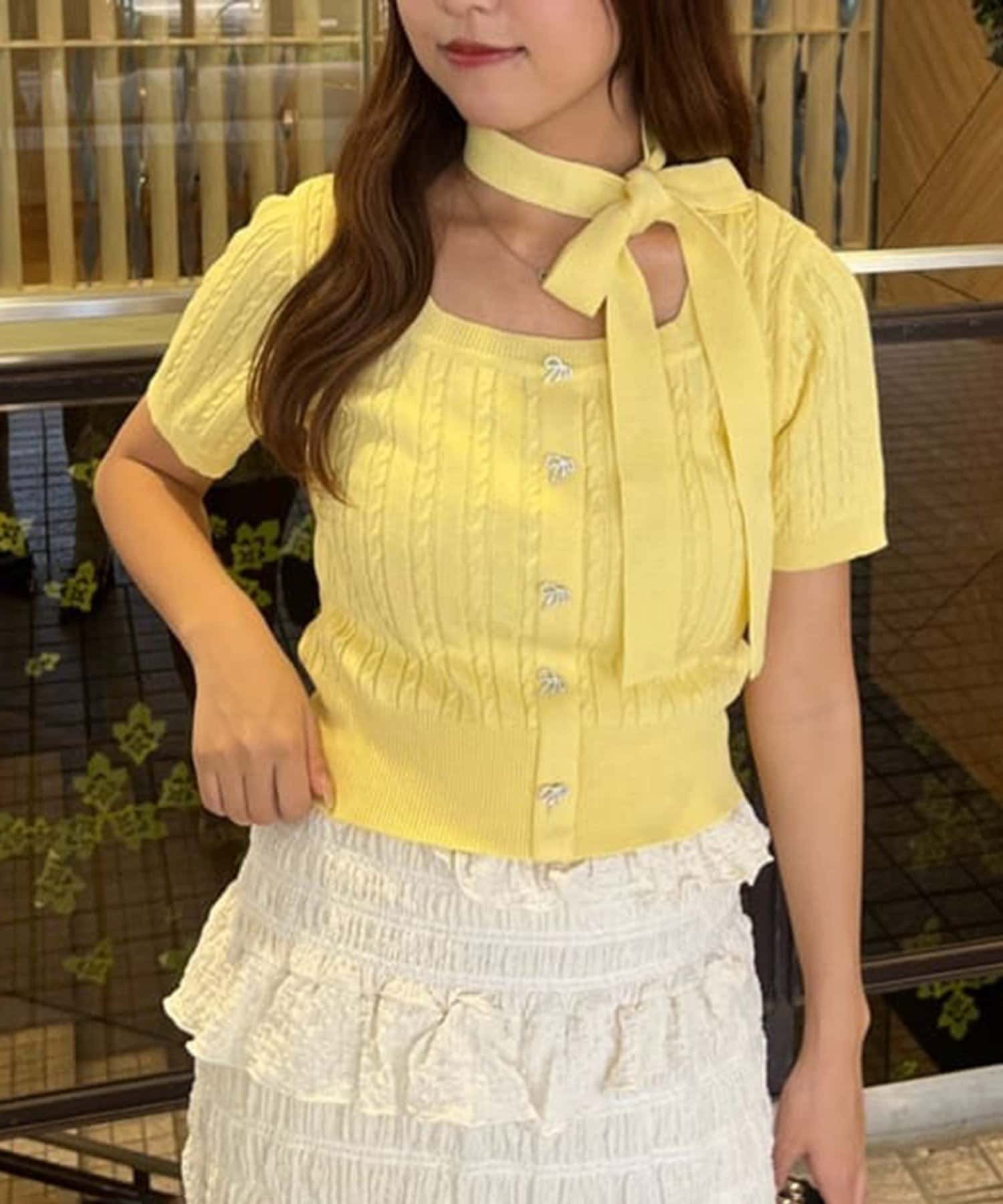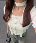 ・同素材のチョーカー付き♪旬な印象のショート丈トップス