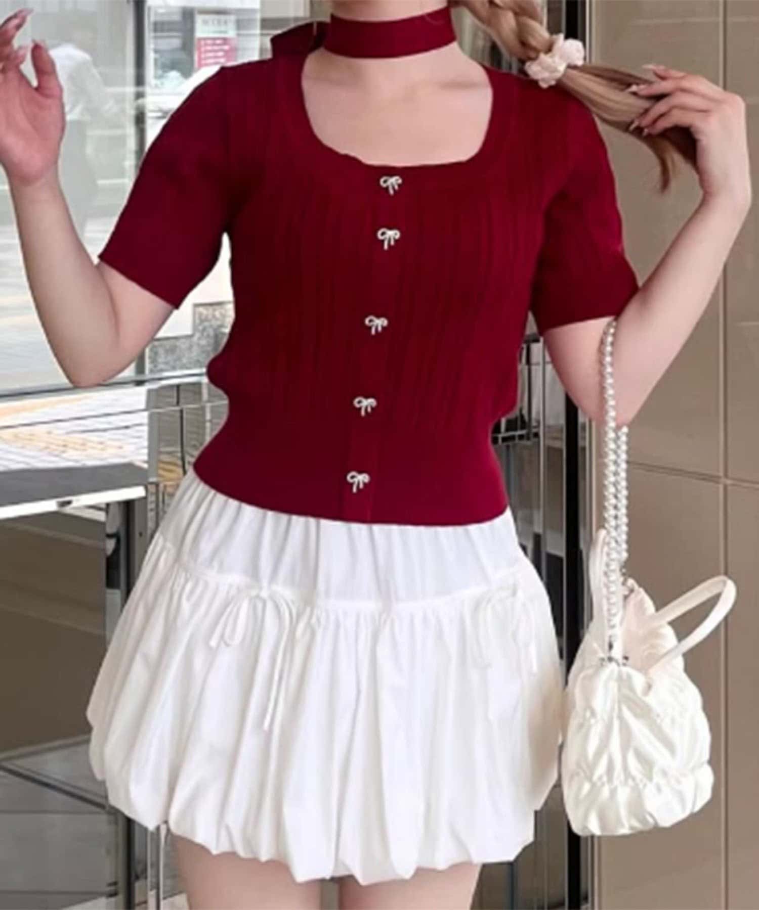・オススメは、バルーンミニスカート合わせのトレンドガーリーコーデ