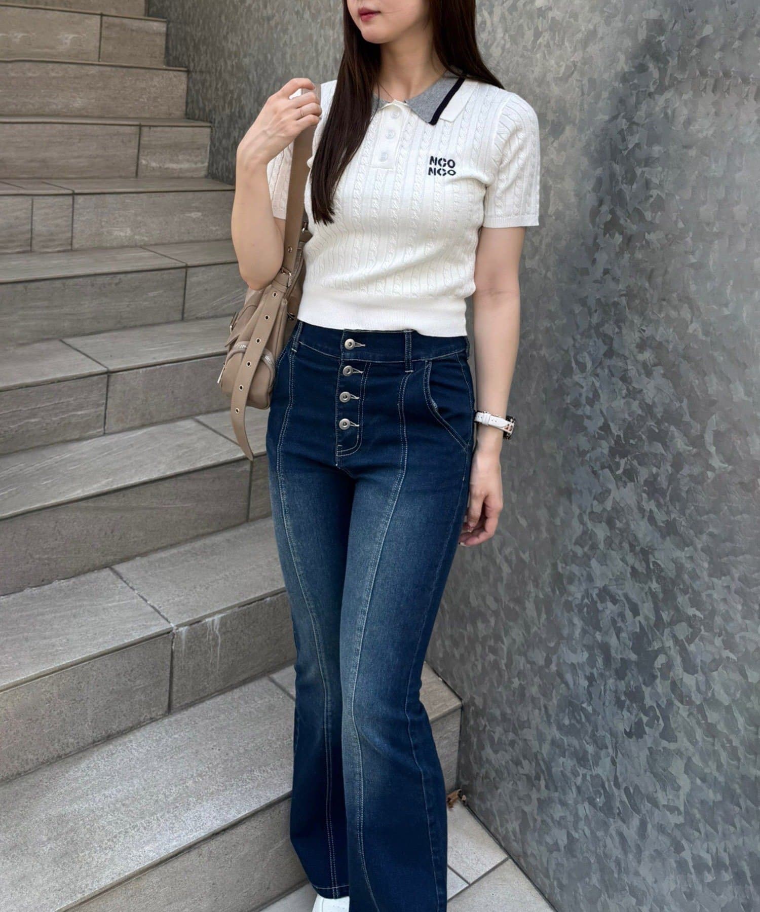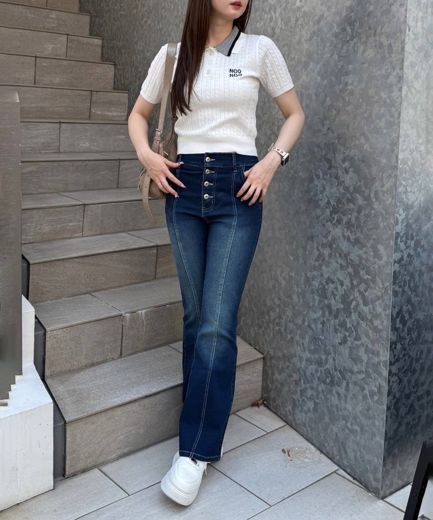 ・ハイウエストなデニムパンツでスタイルアップコーデがオススメ