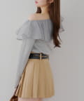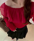 ・襟ぐりはゴムで作られているのでワンショルやオフショルでも着られます。