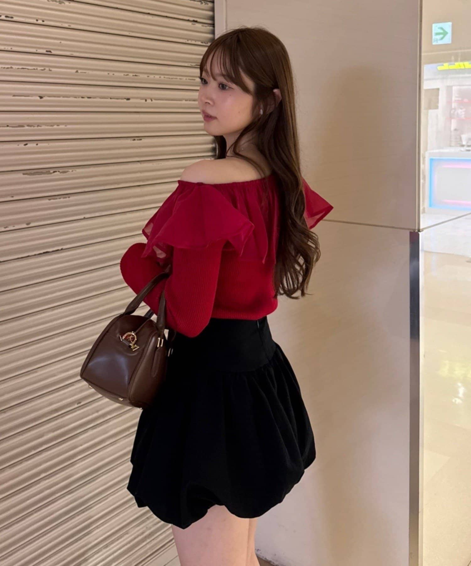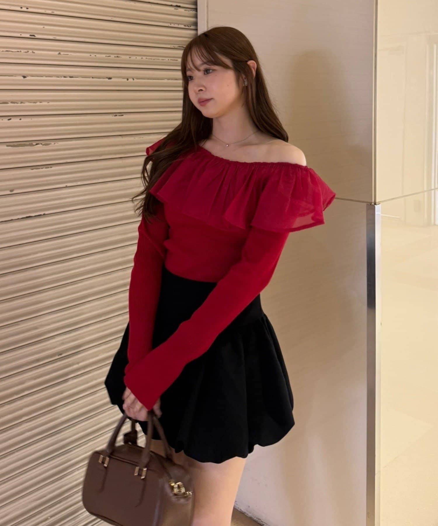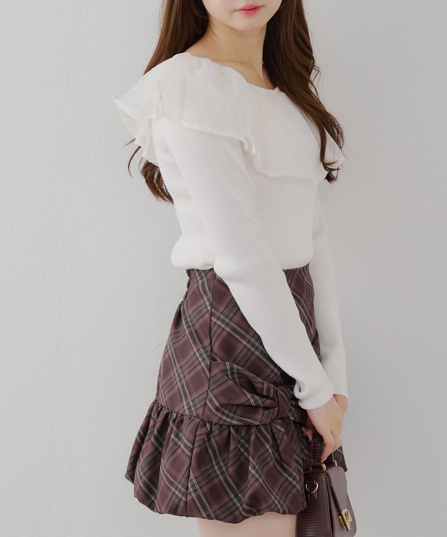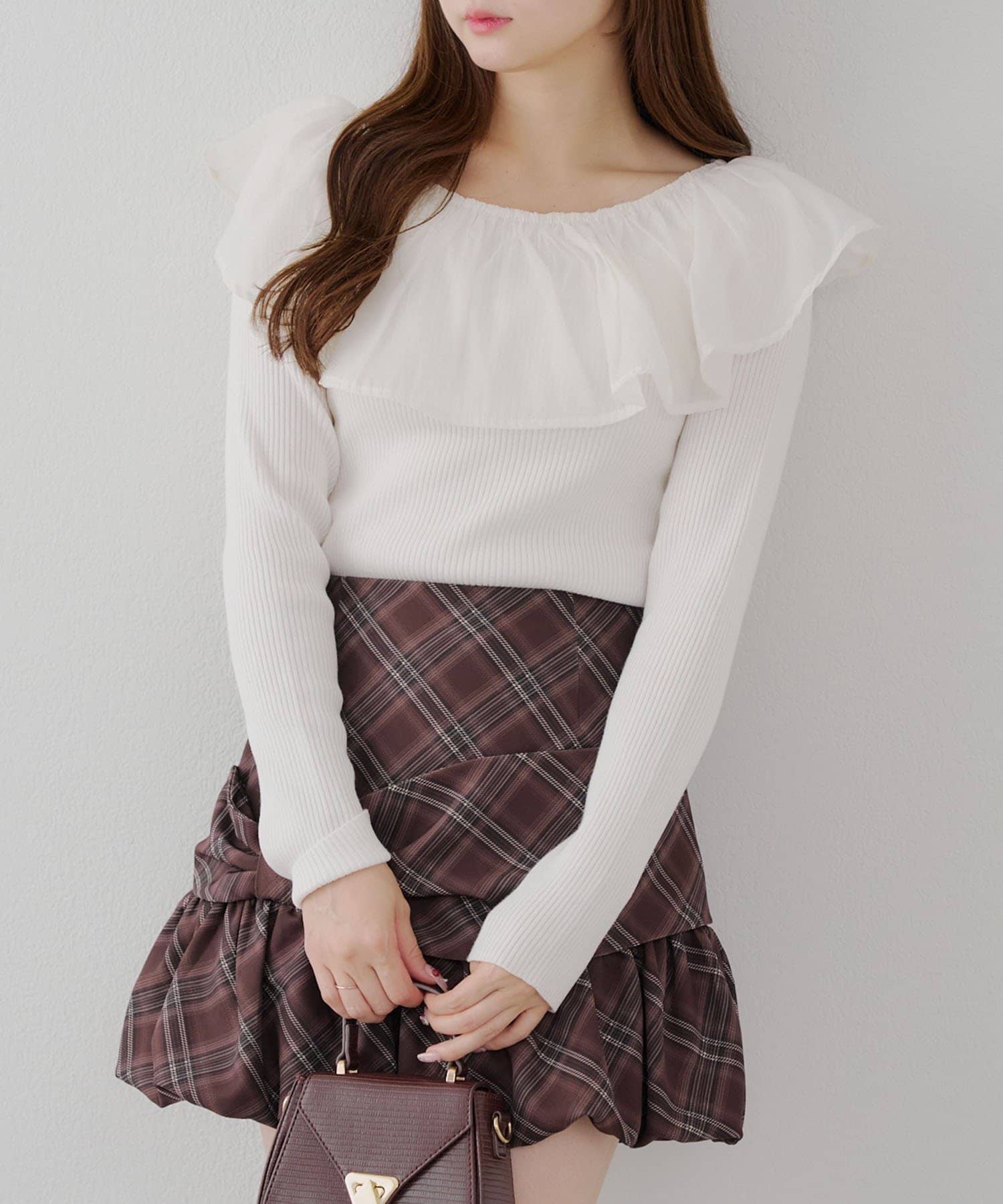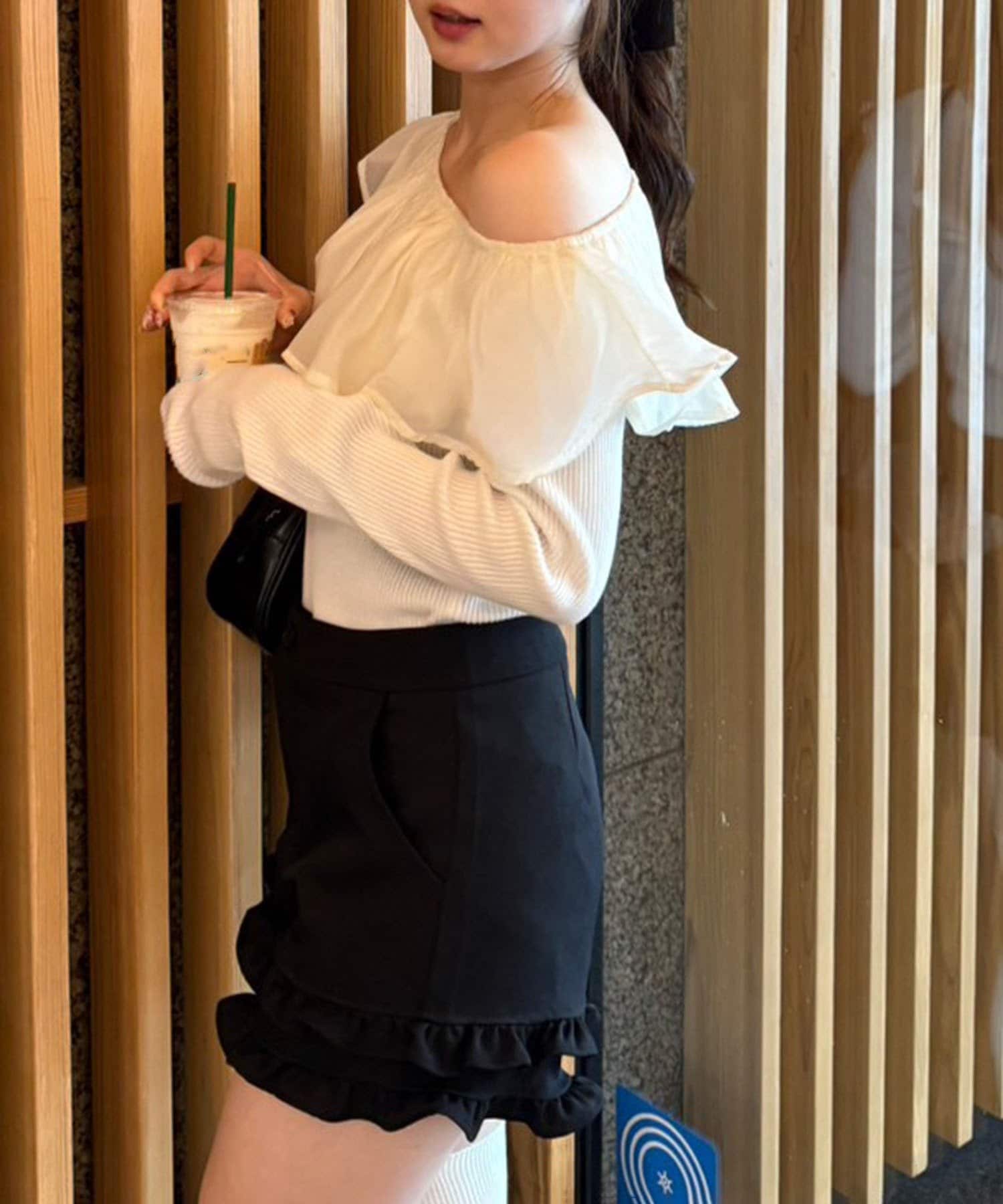 ・ニットとフリルは同色なので程よい存在感でコーデの主役に◎