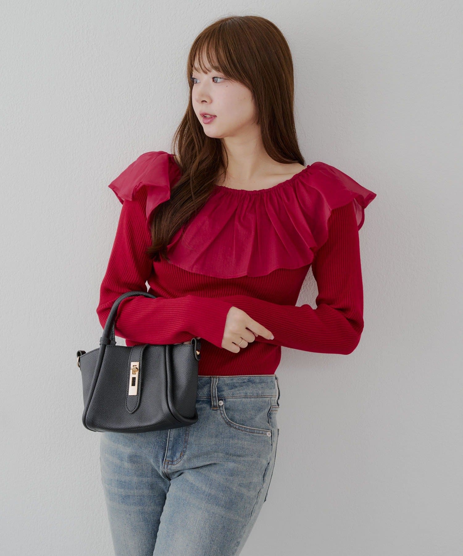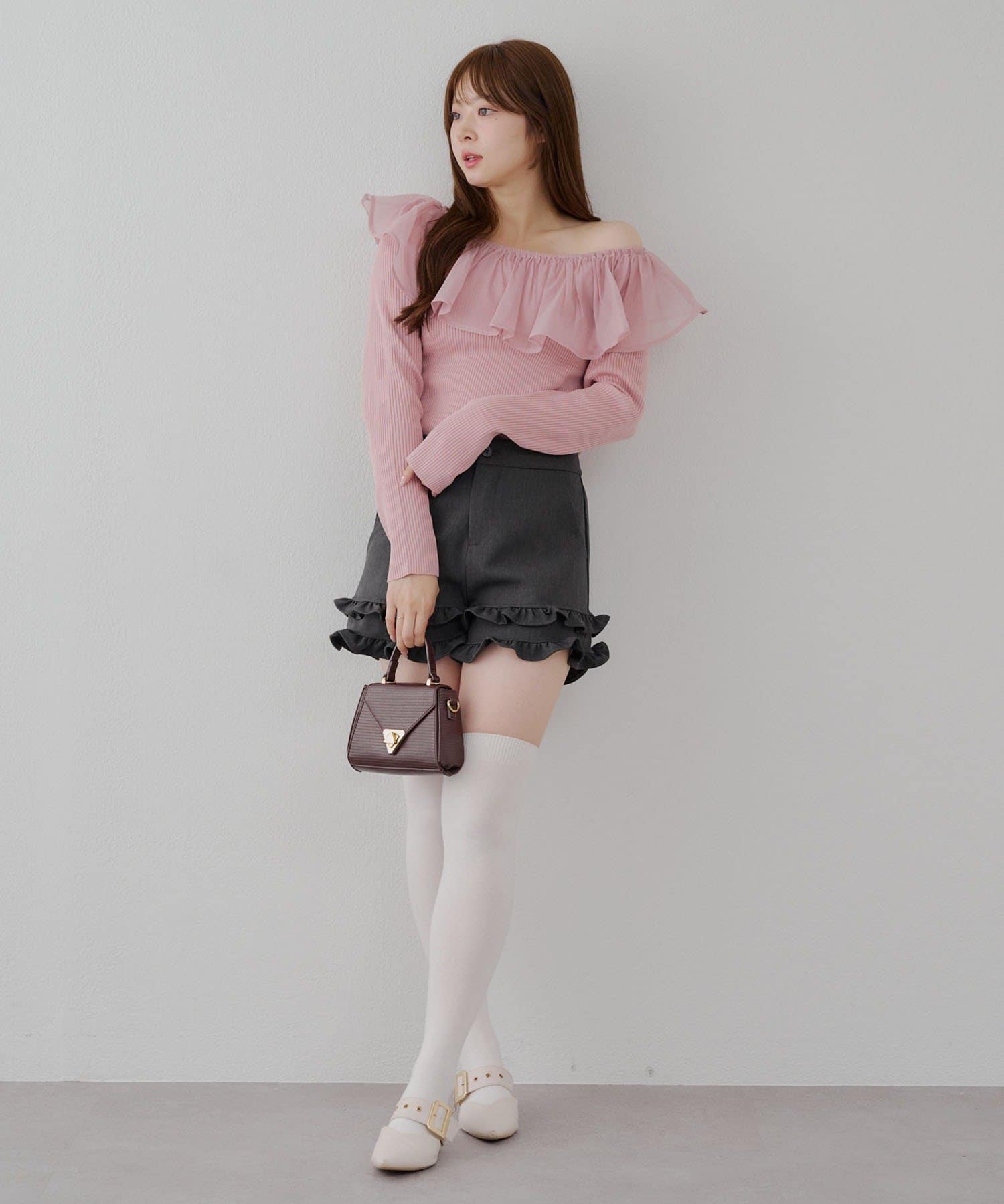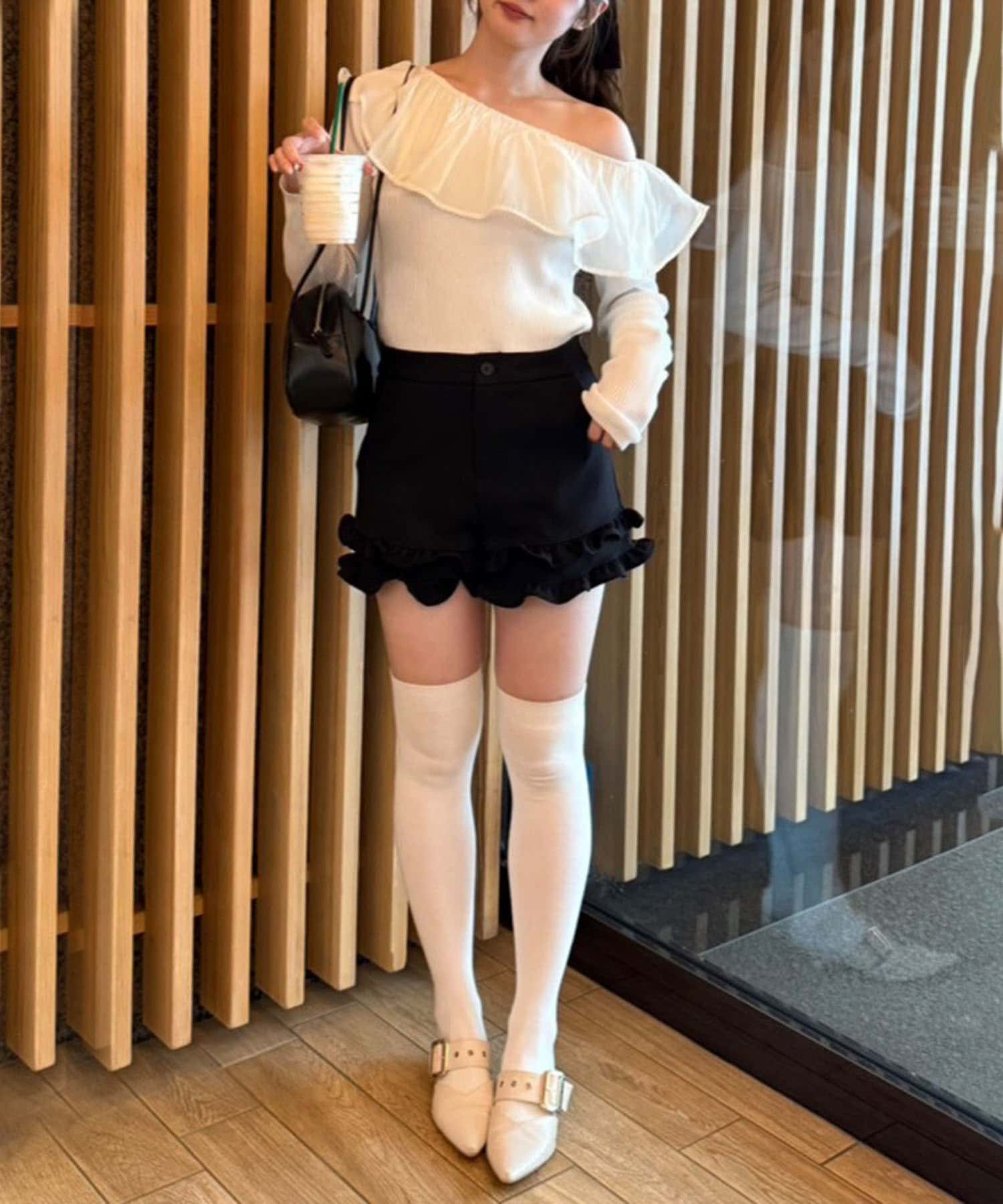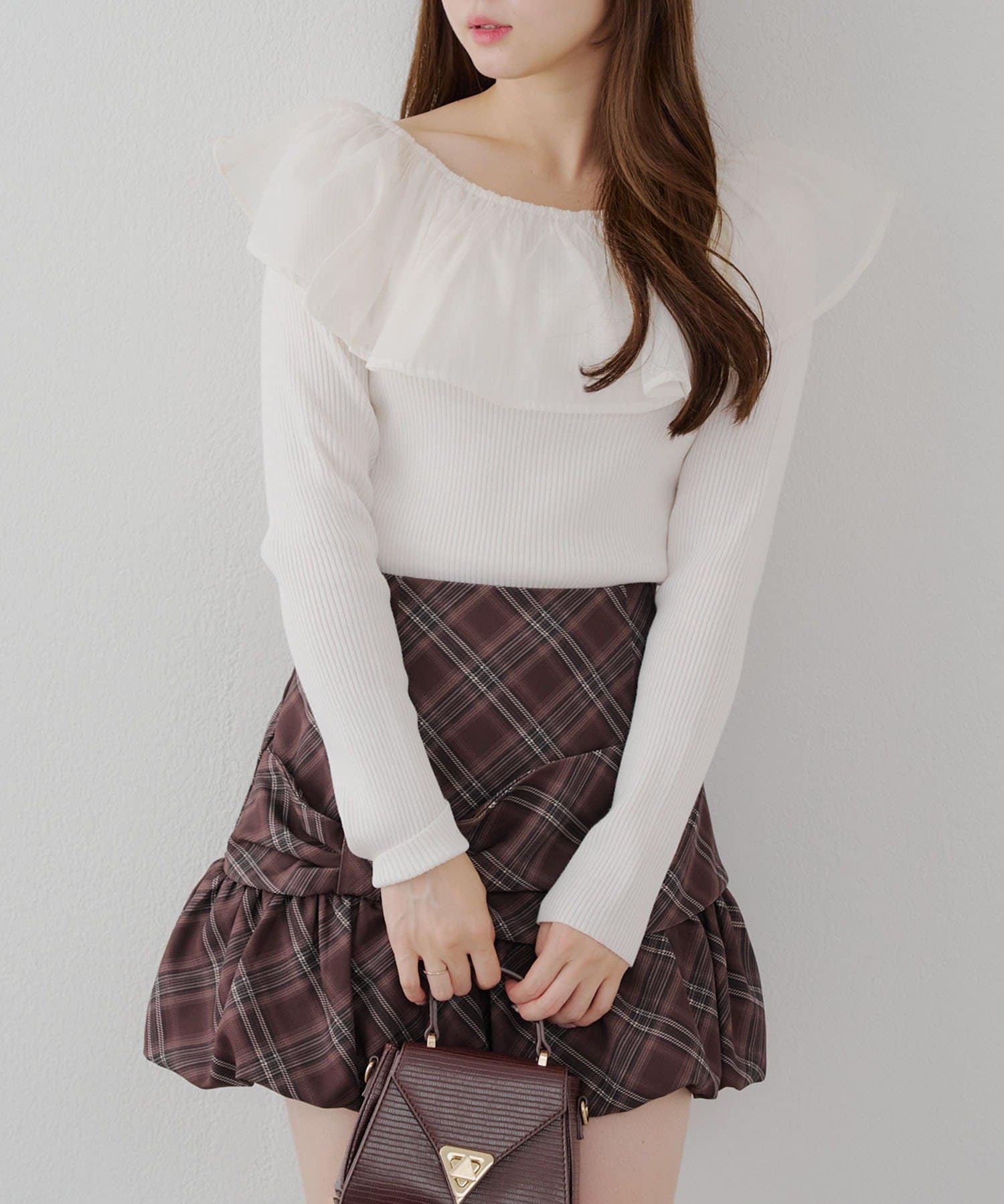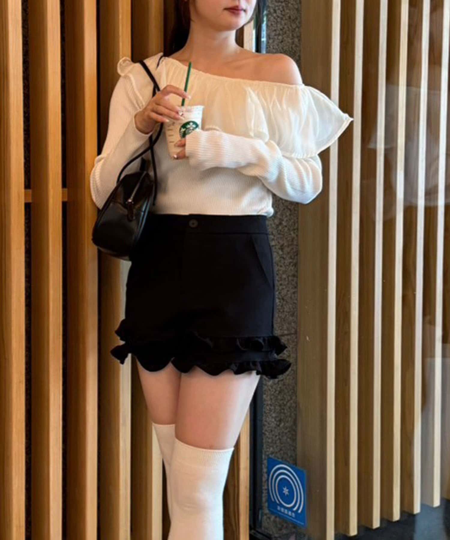 ・ニットとフリルは同色なので程よい存在感でコーデの主役に◎