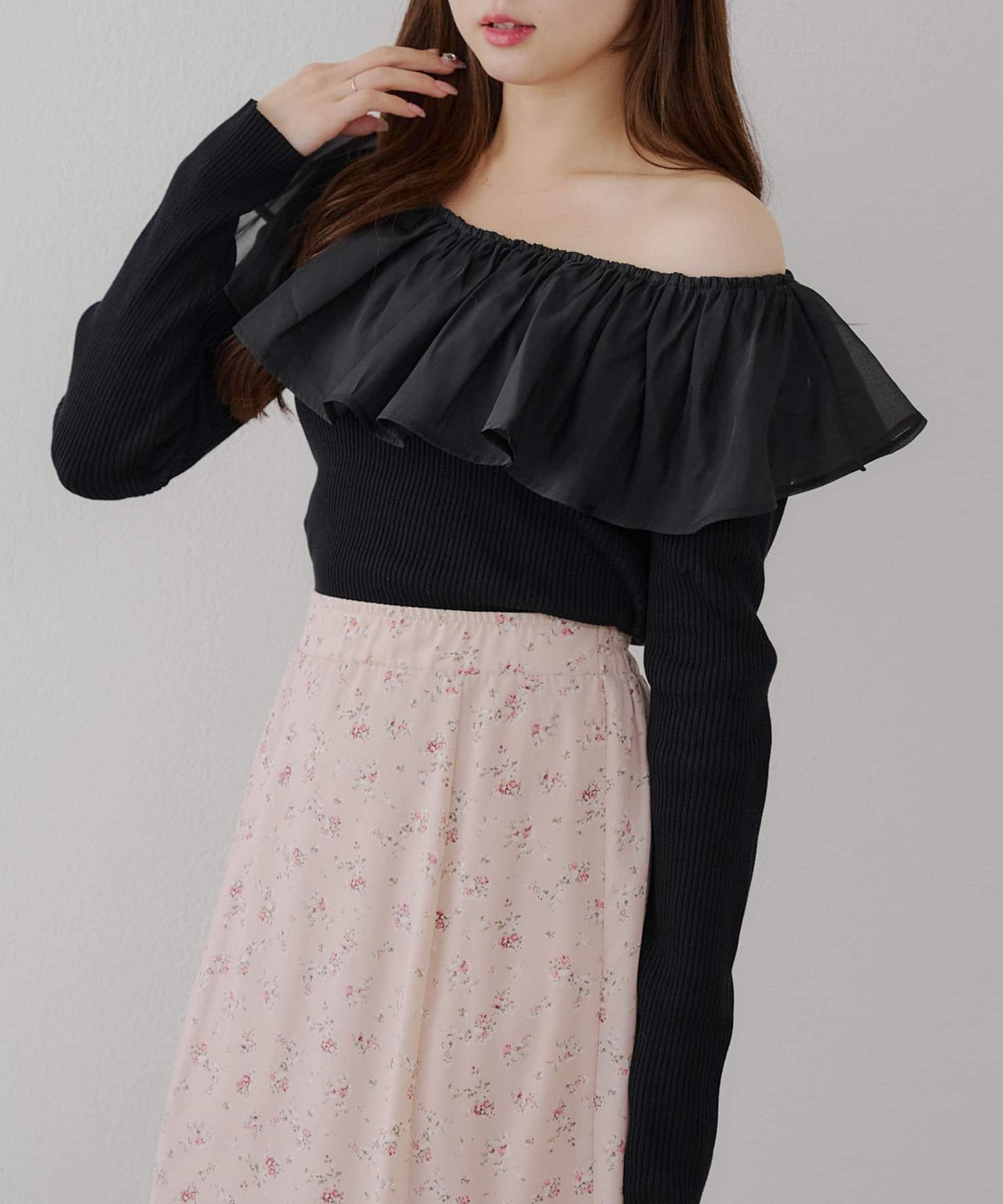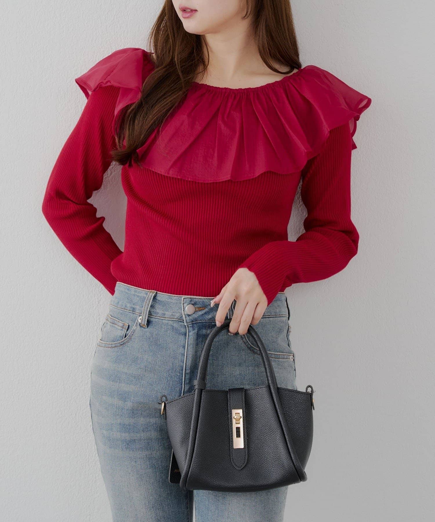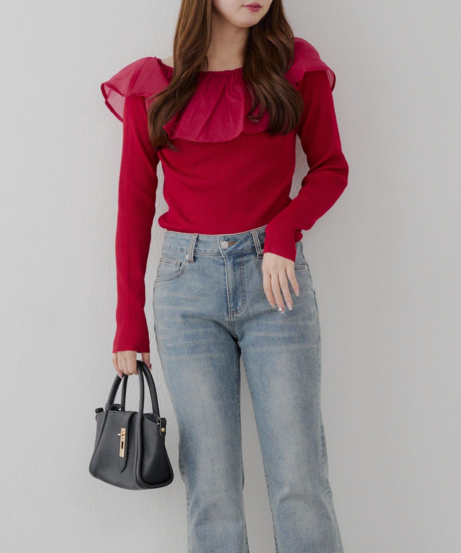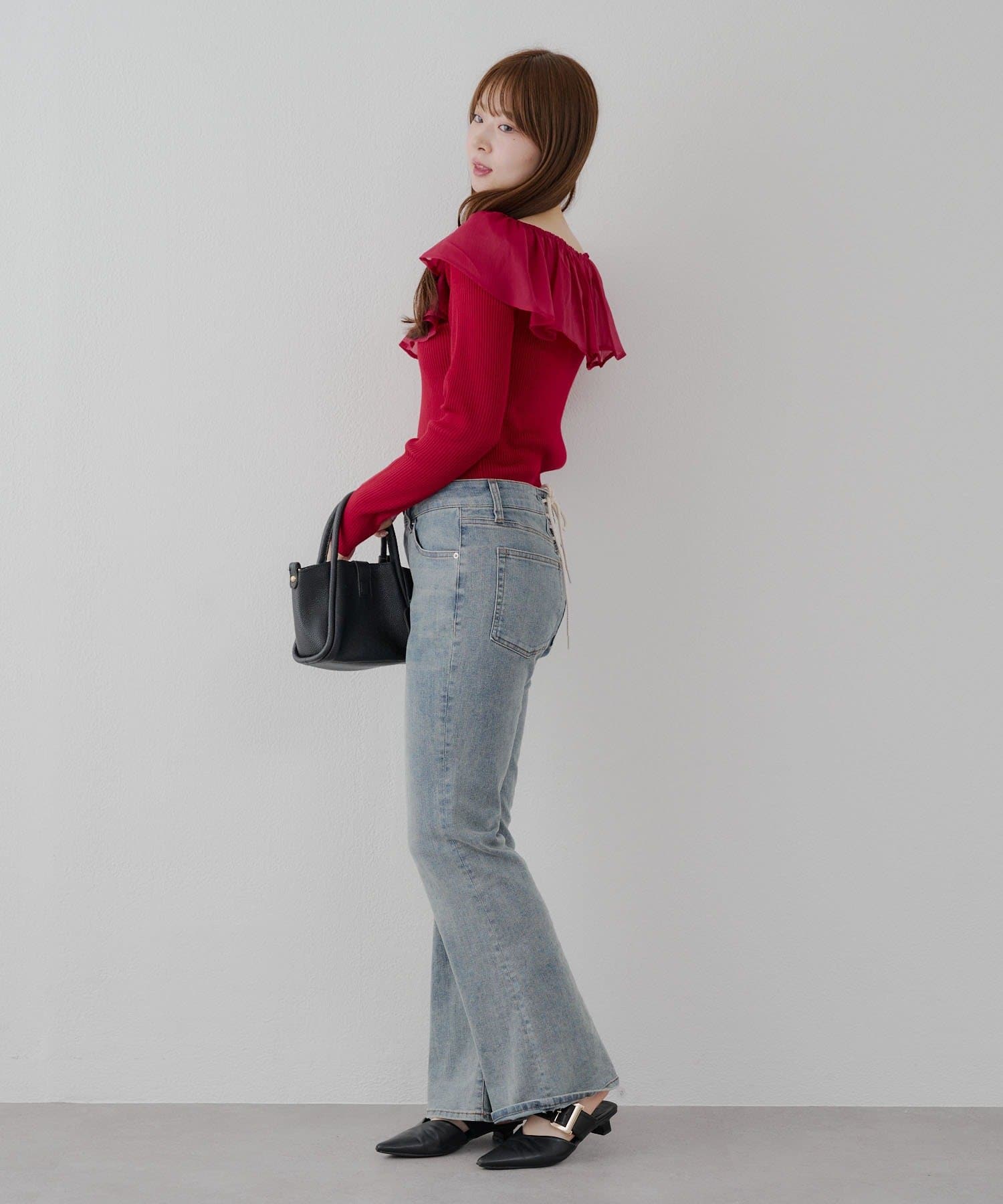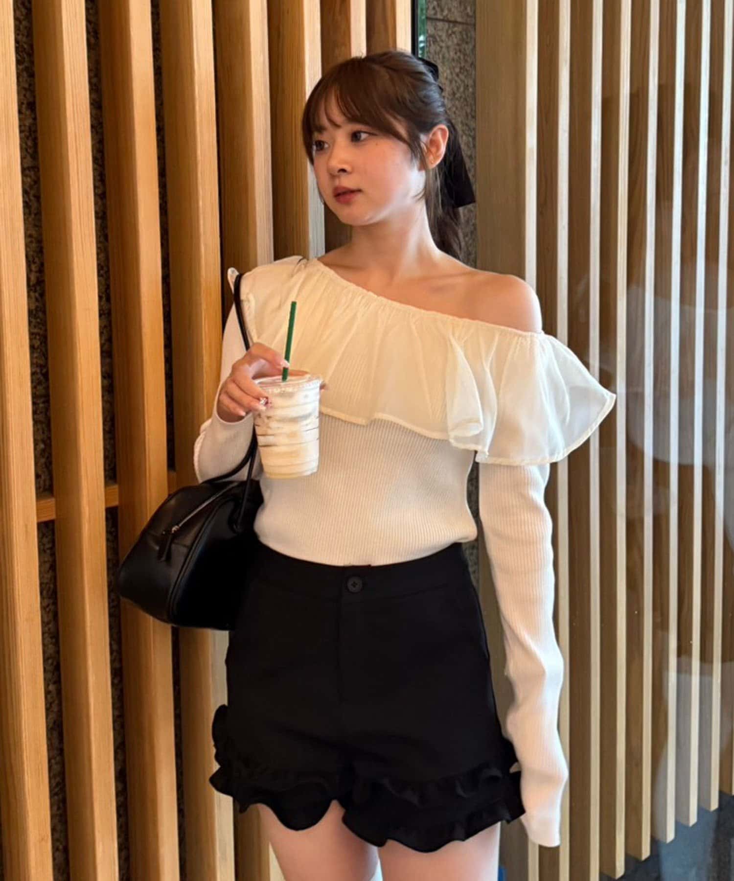 ・ニットとフリルは同色なので程よい存在感でコーデの主役に◎