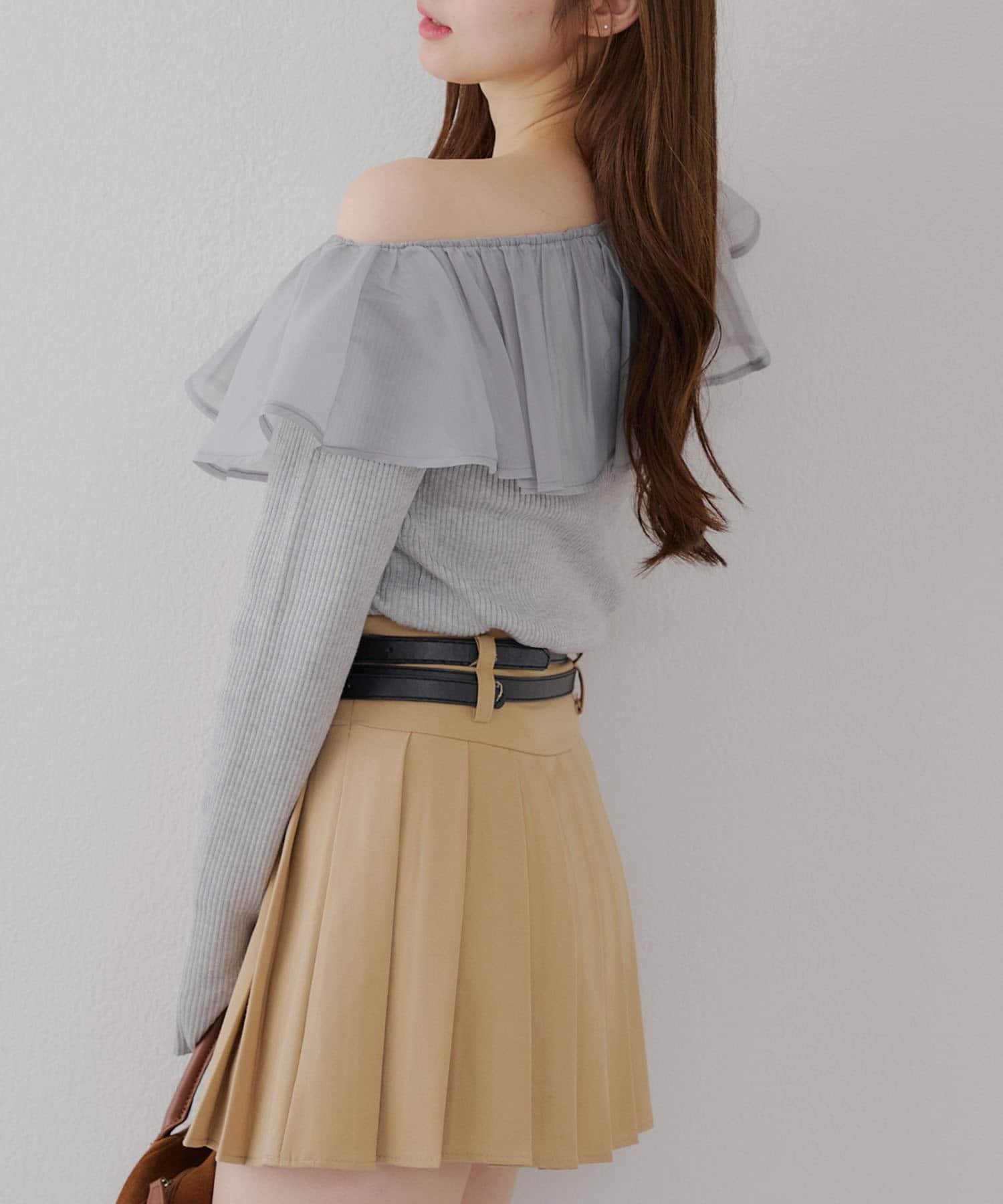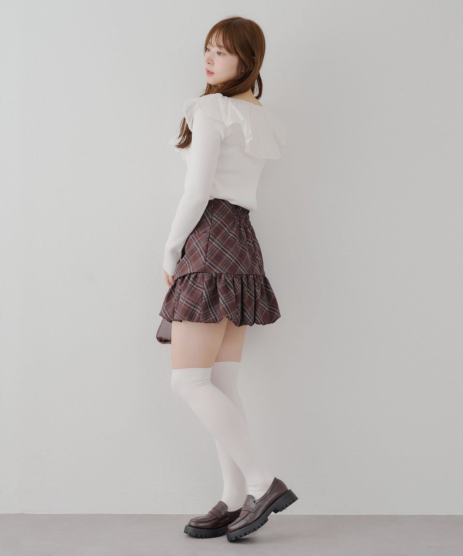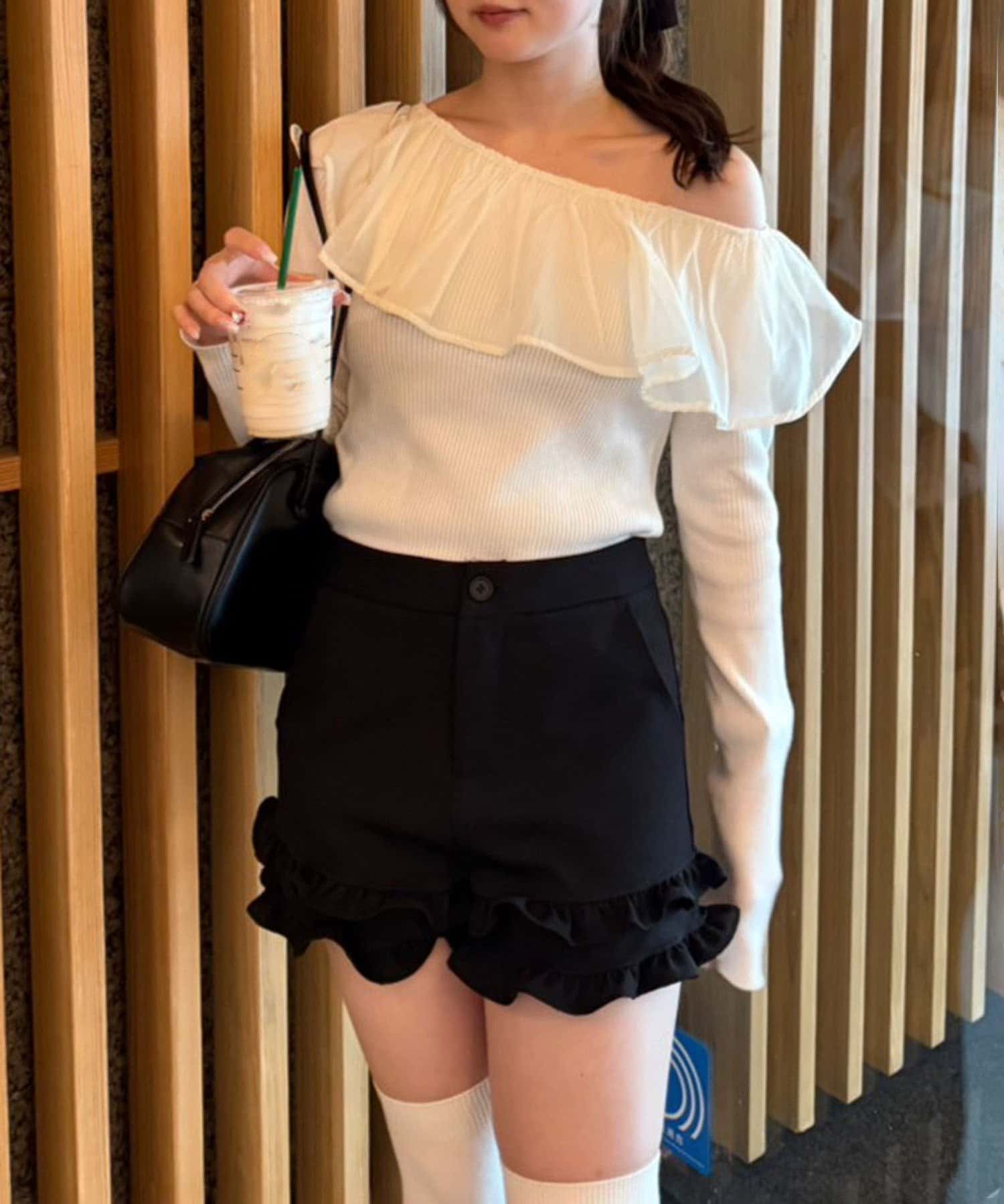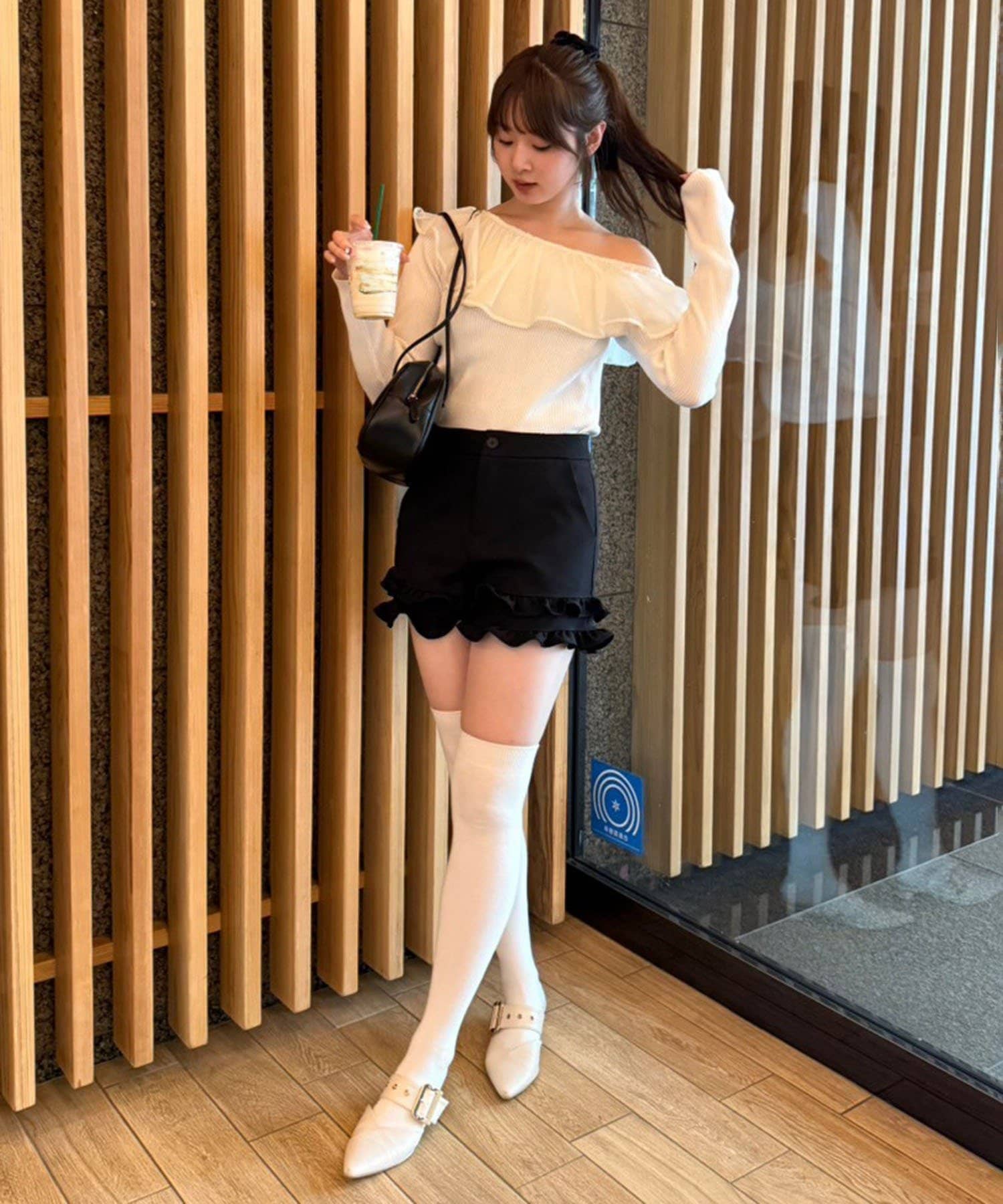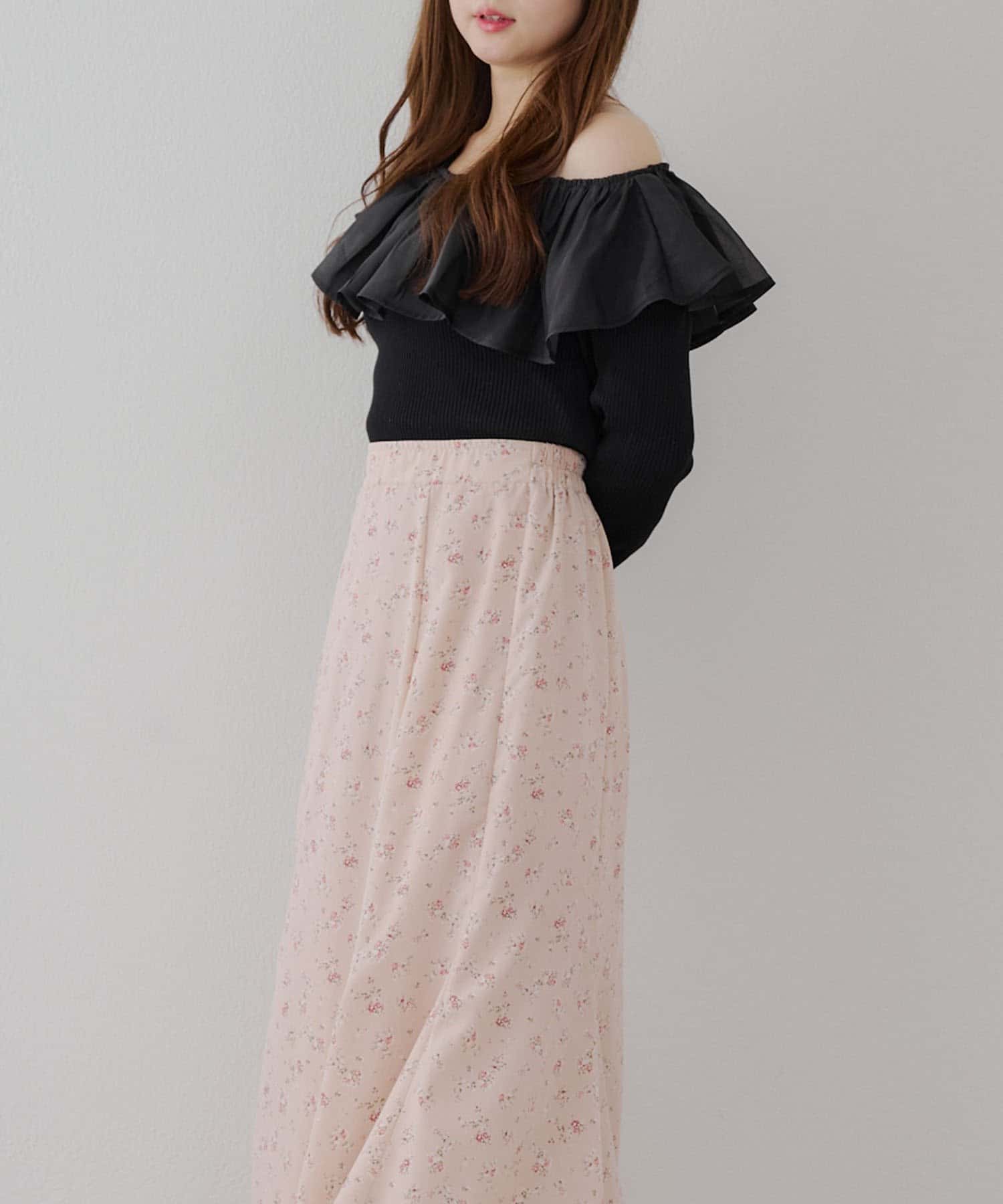 ・ニットとフリルは同色なので程よい存在感でコーデの主役に◎