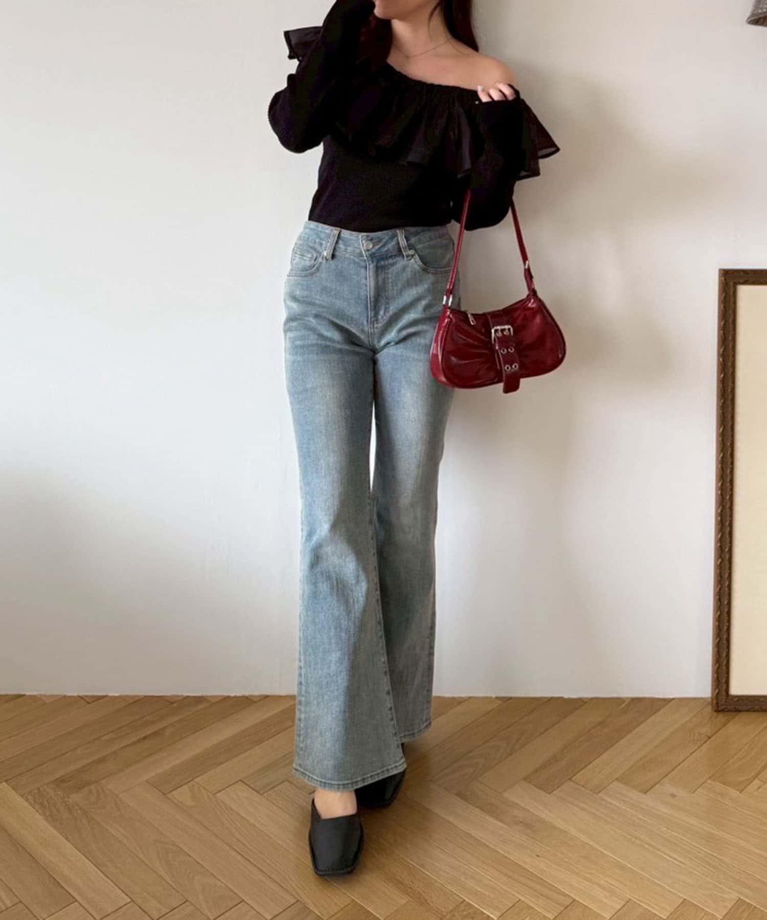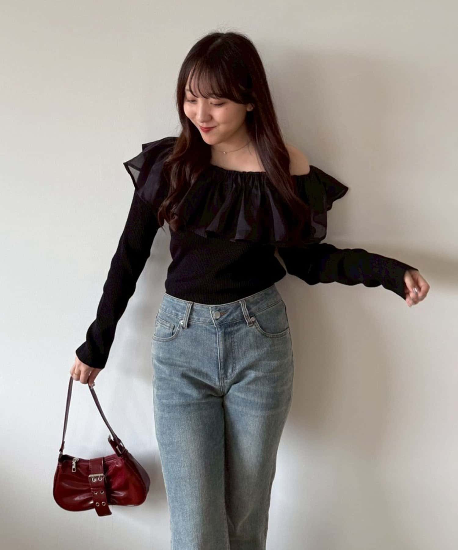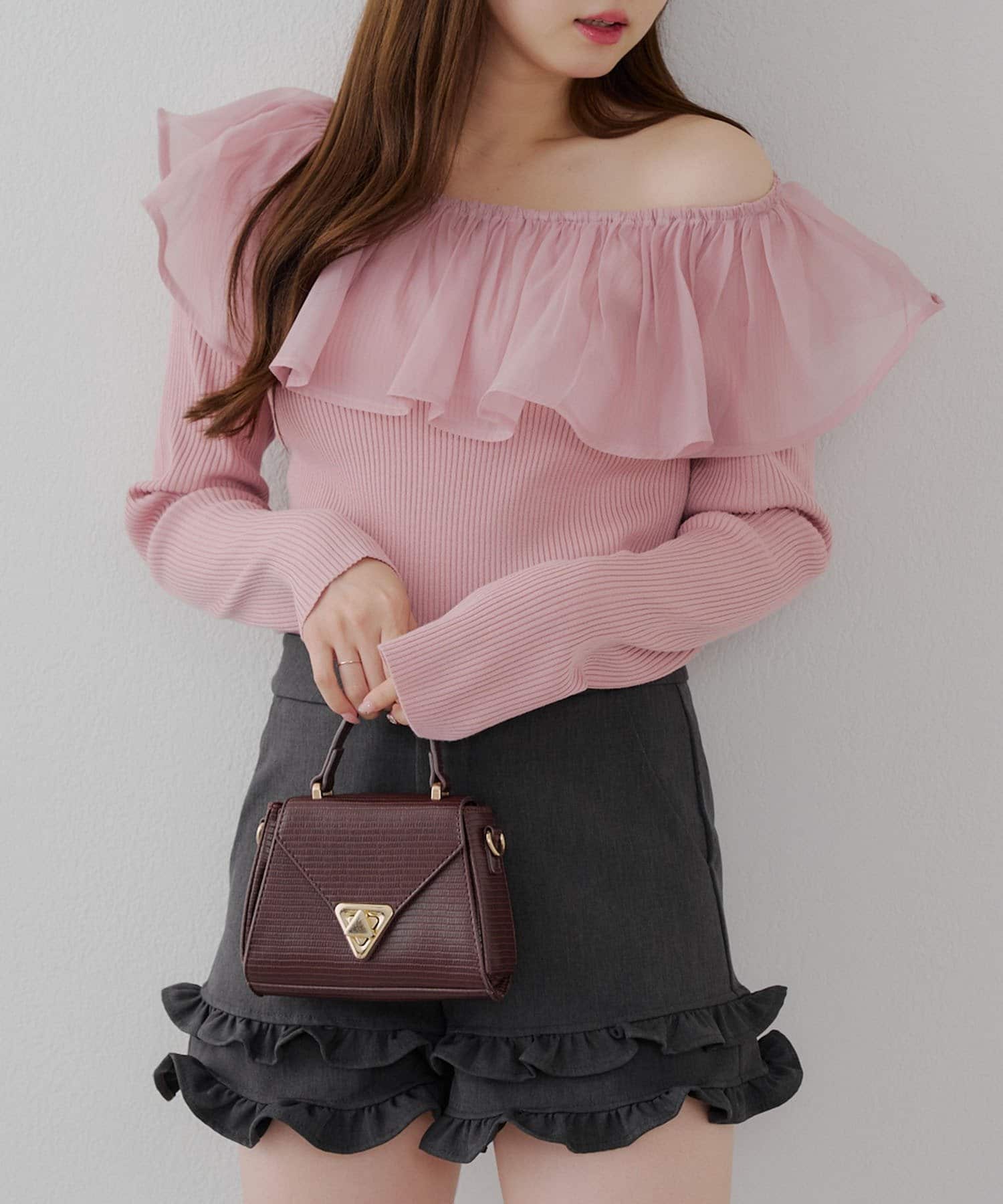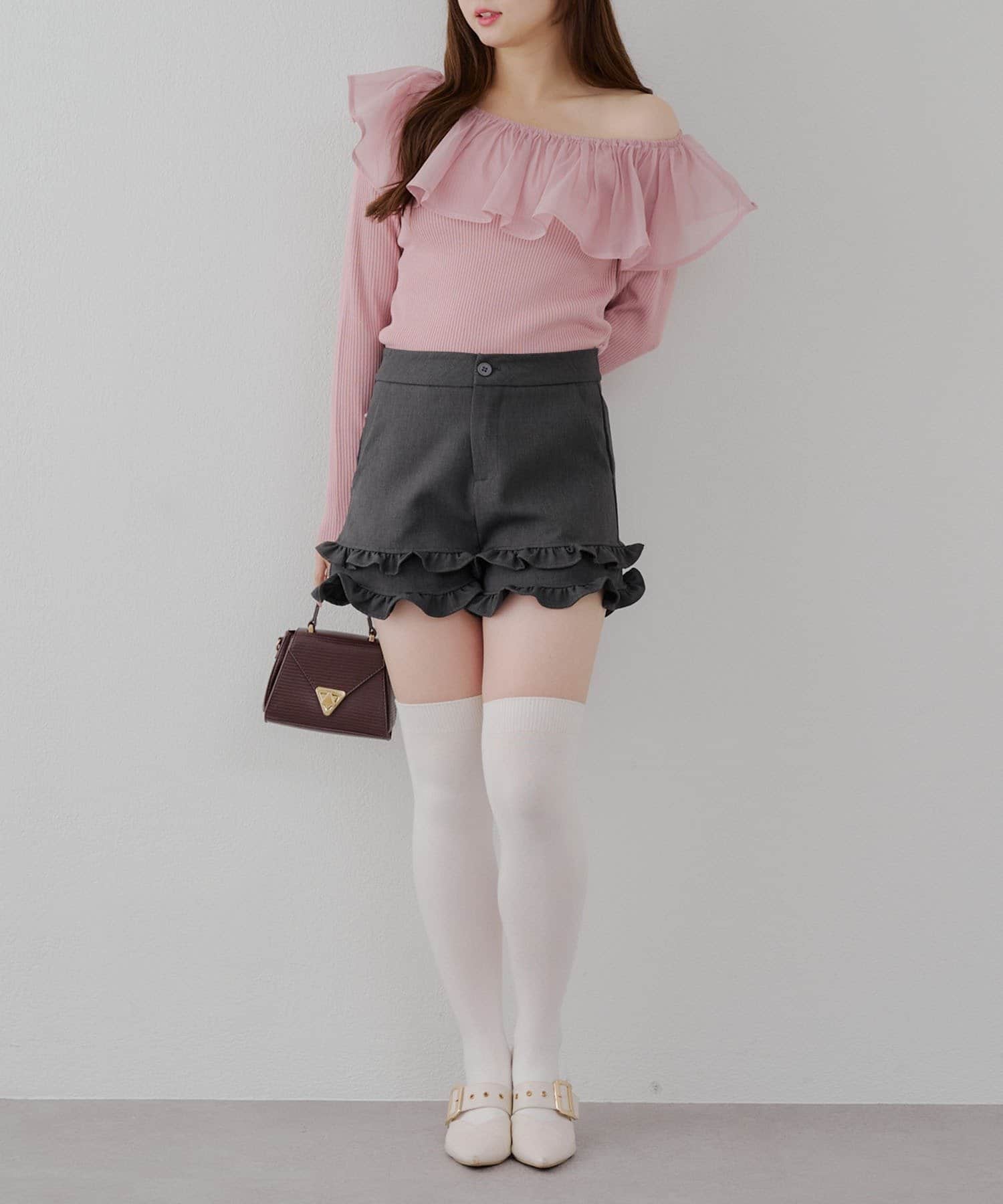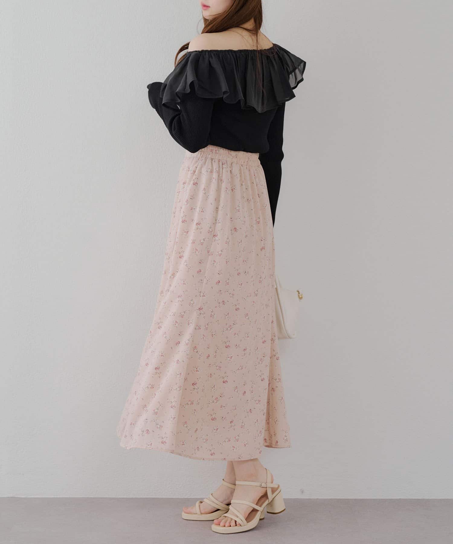 ・ニットとフリルは同色なので程よい存在感でコーデの主役に◎