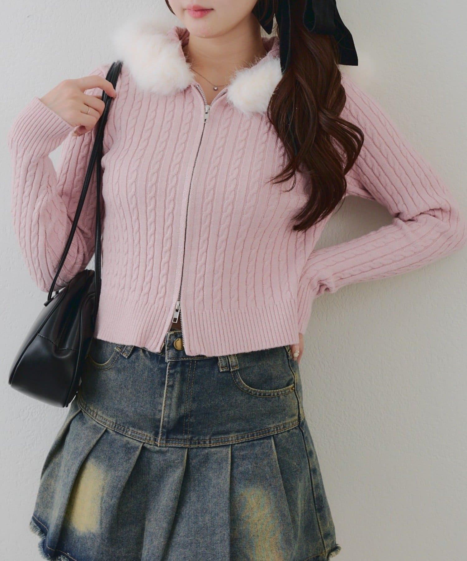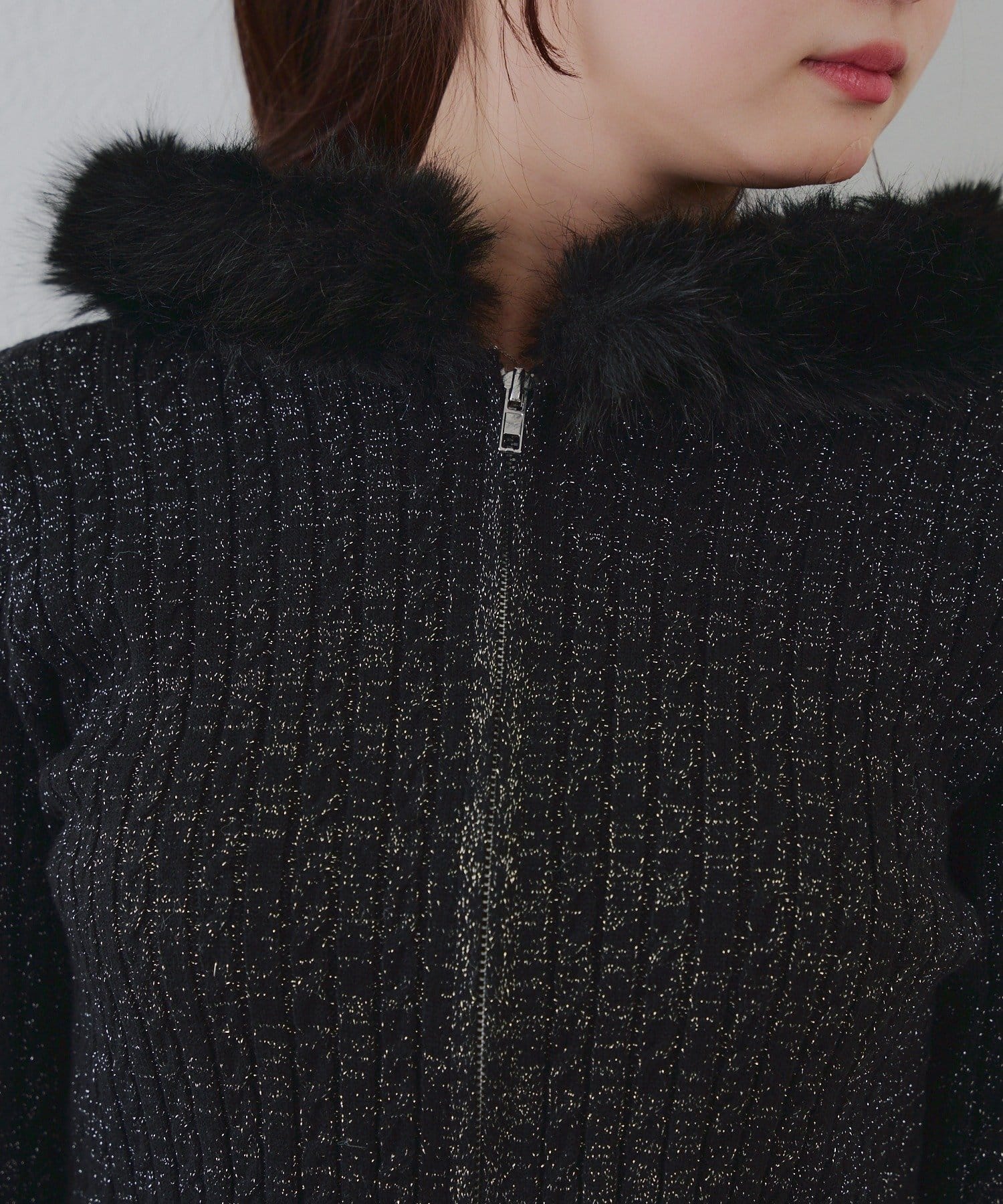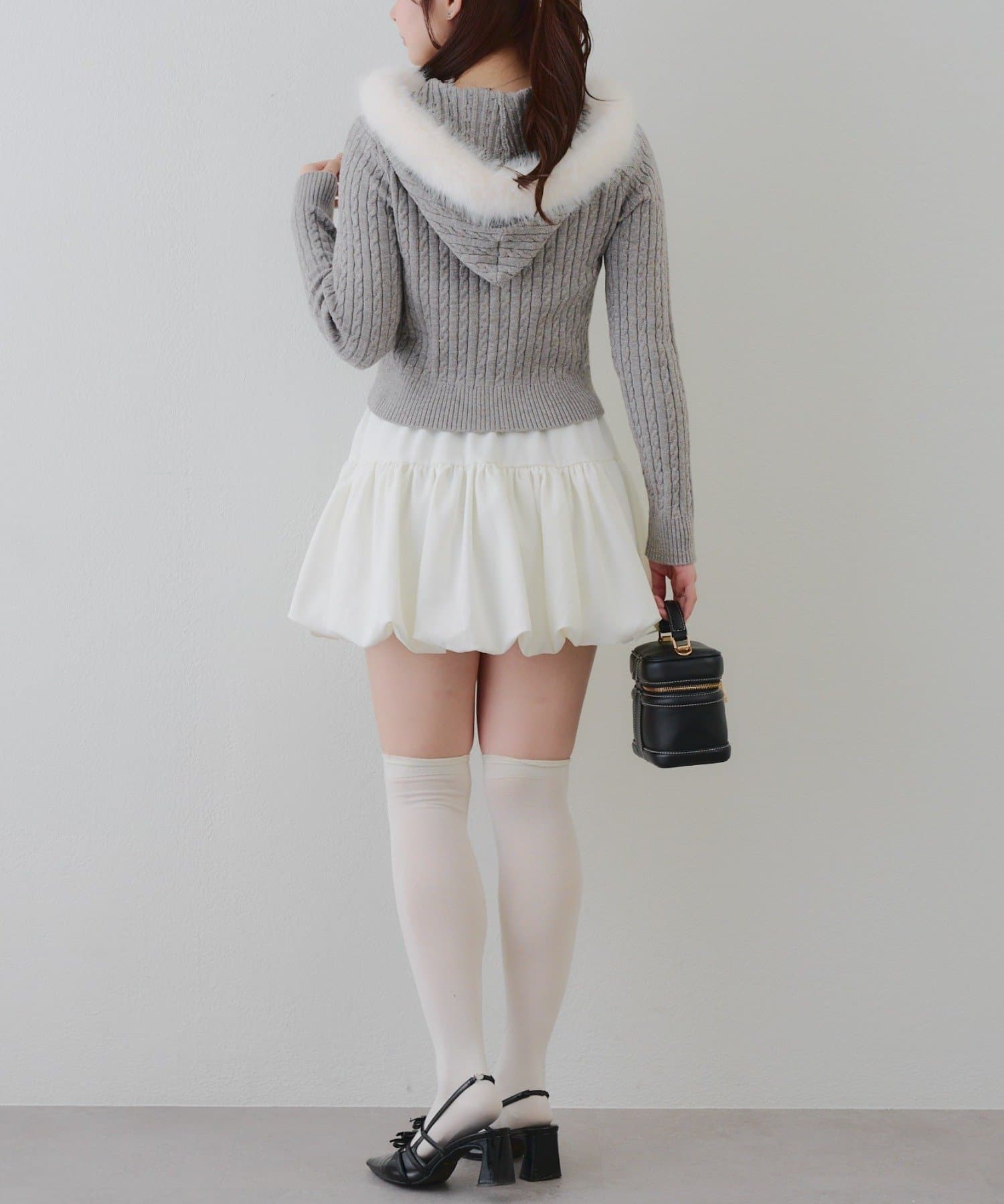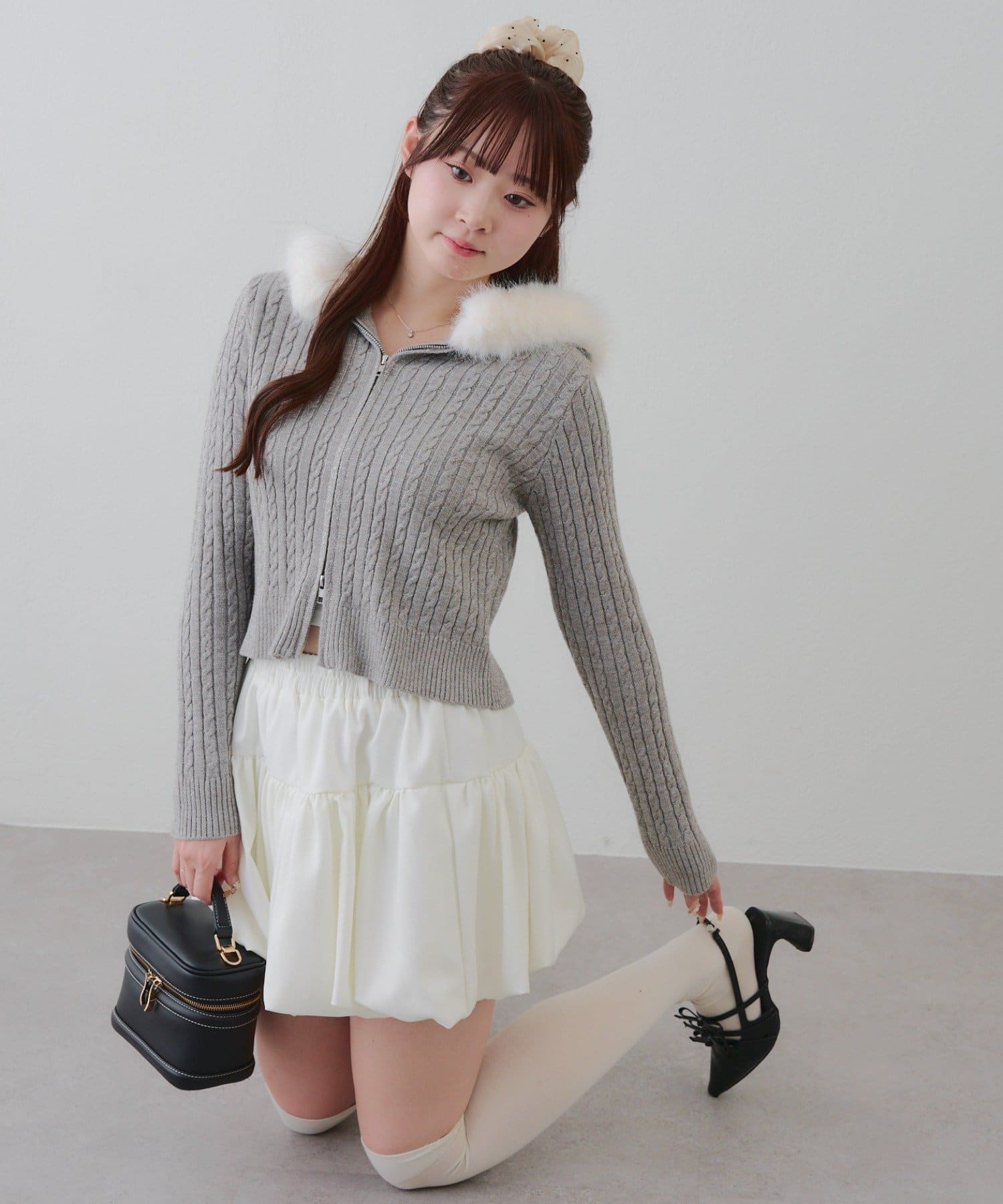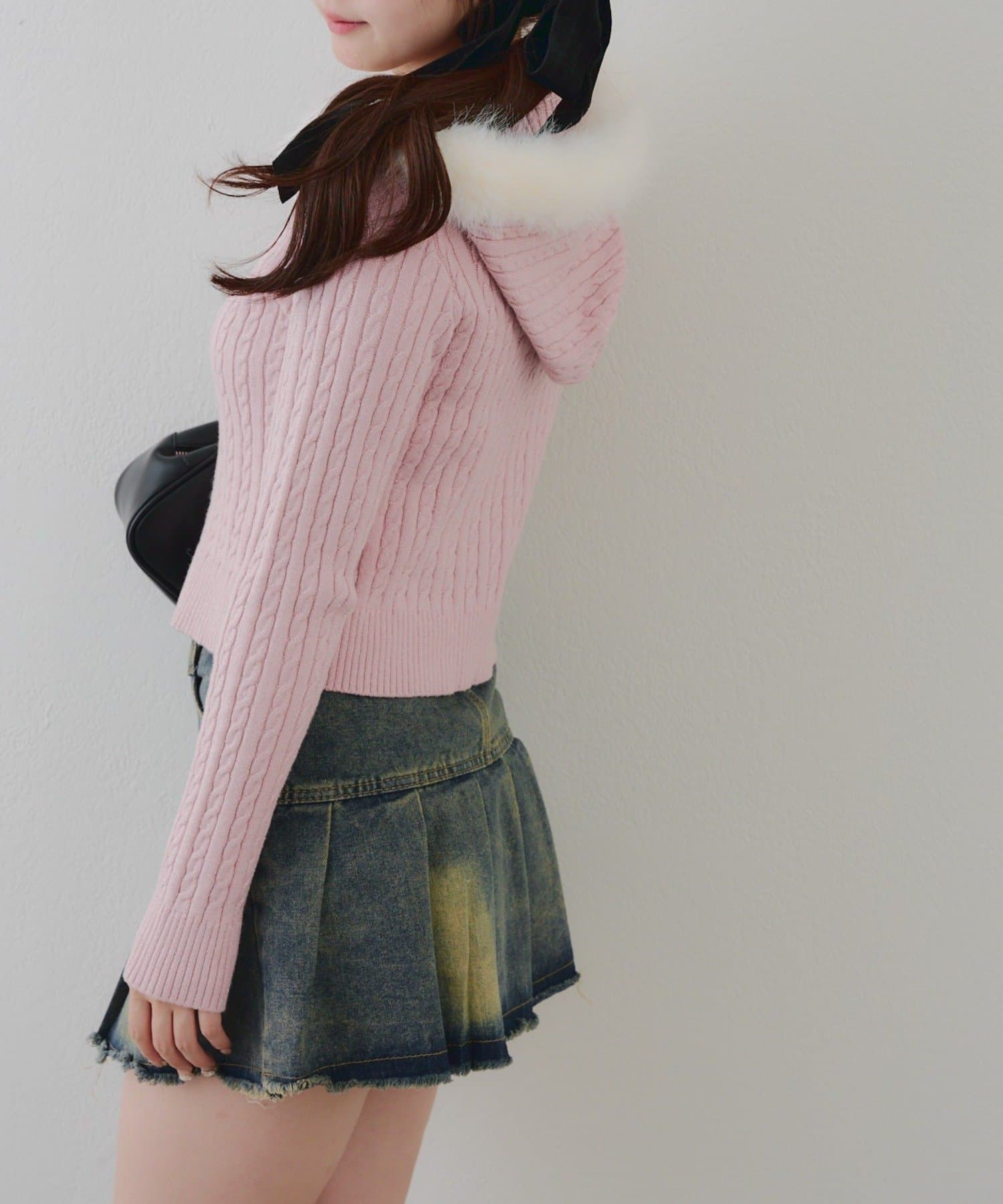 ・ケーブル編みとボリューム感のあるファーがシーズンムードを演出するパーカー
