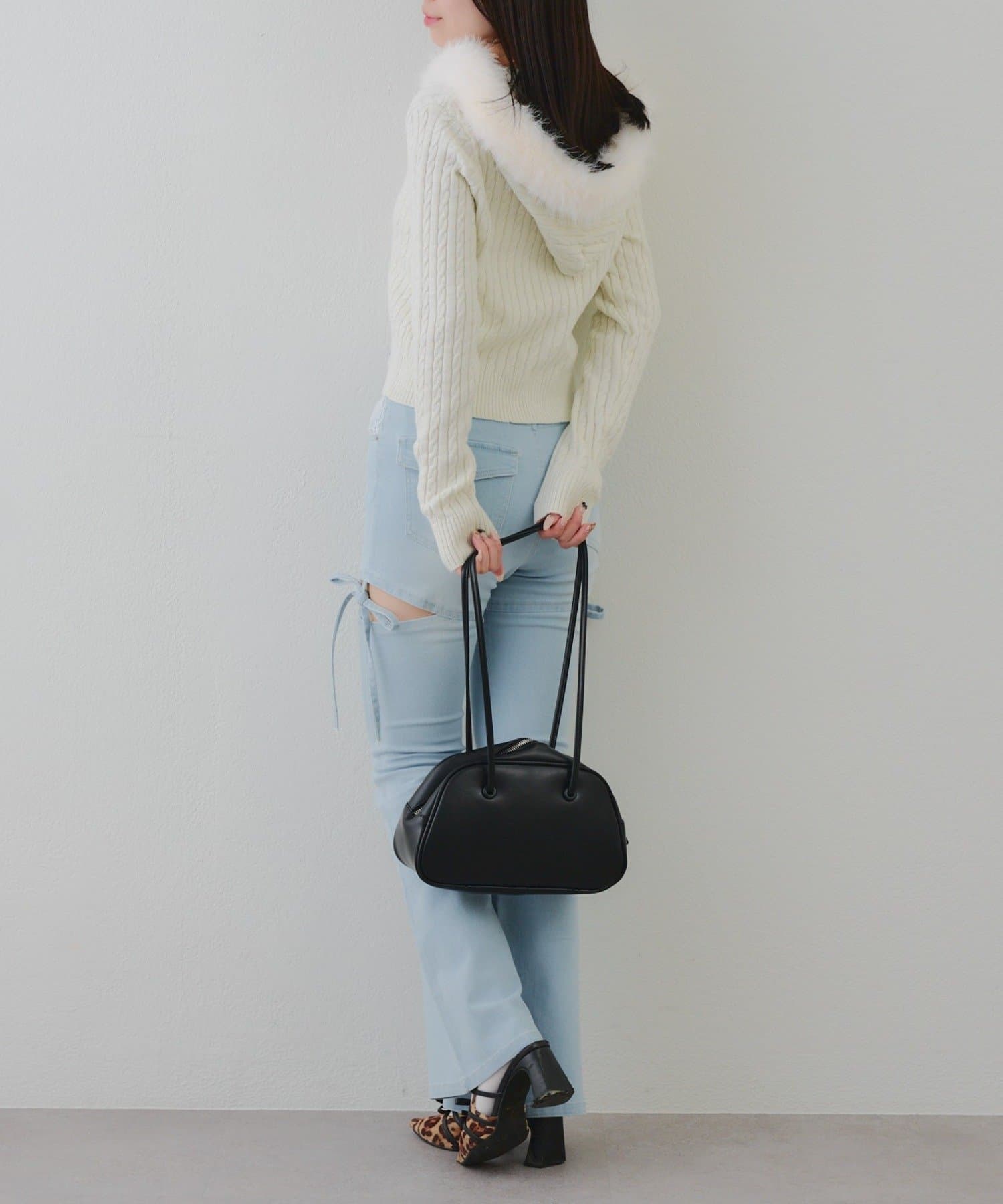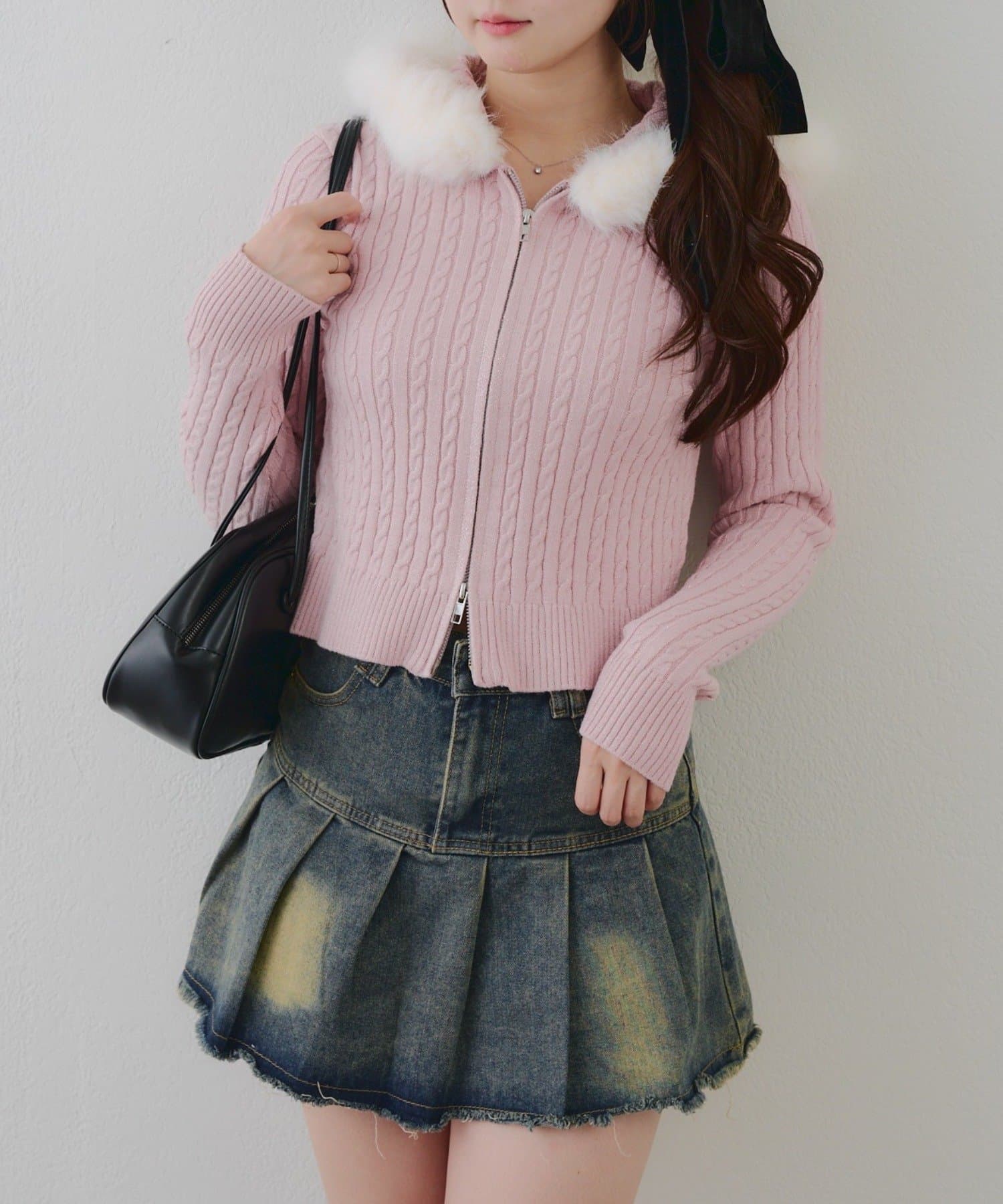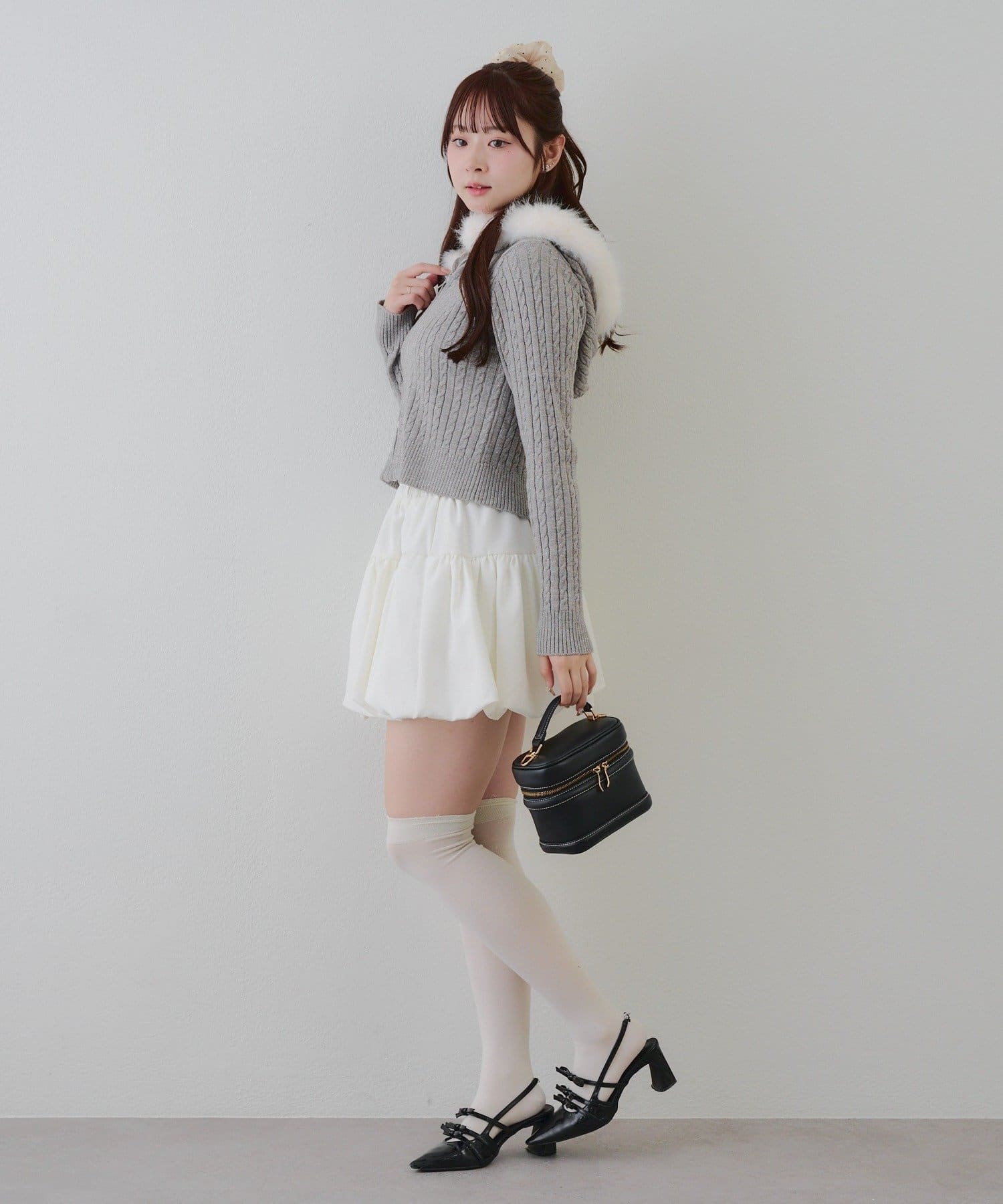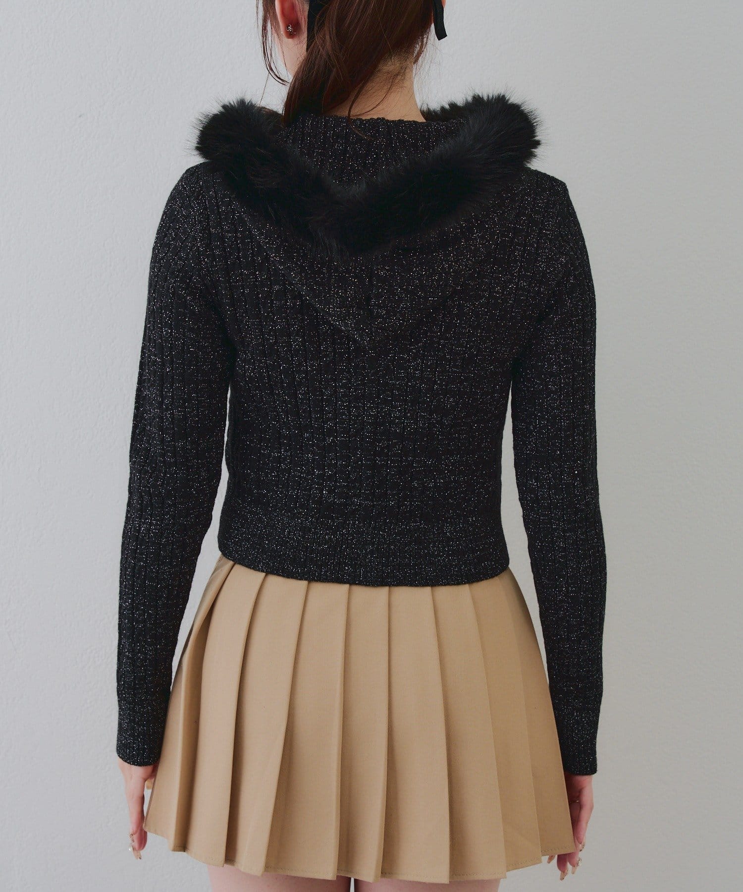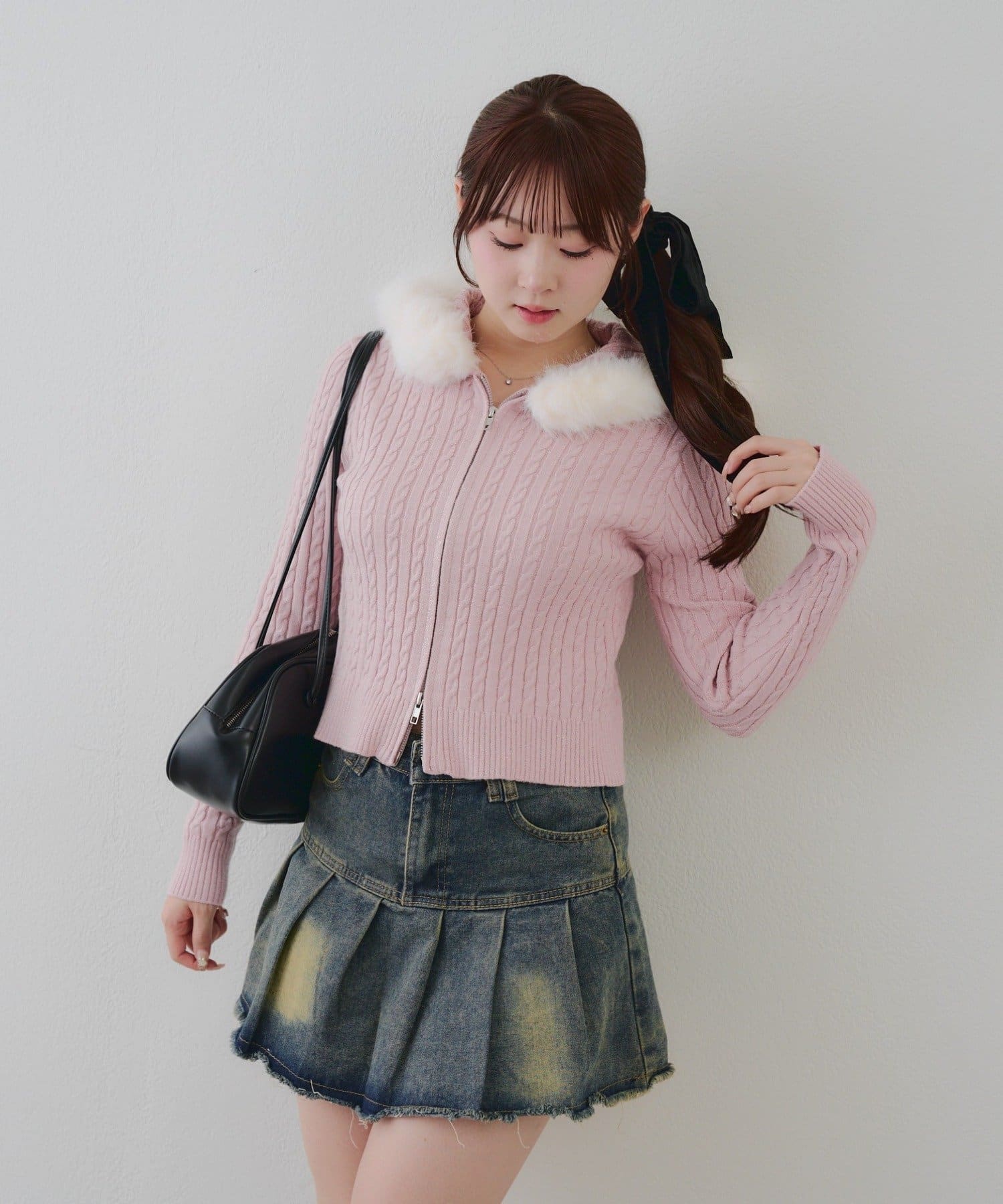・ケーブル編みとボリューム感のあるファーがシーズンムードを演出するパーカー