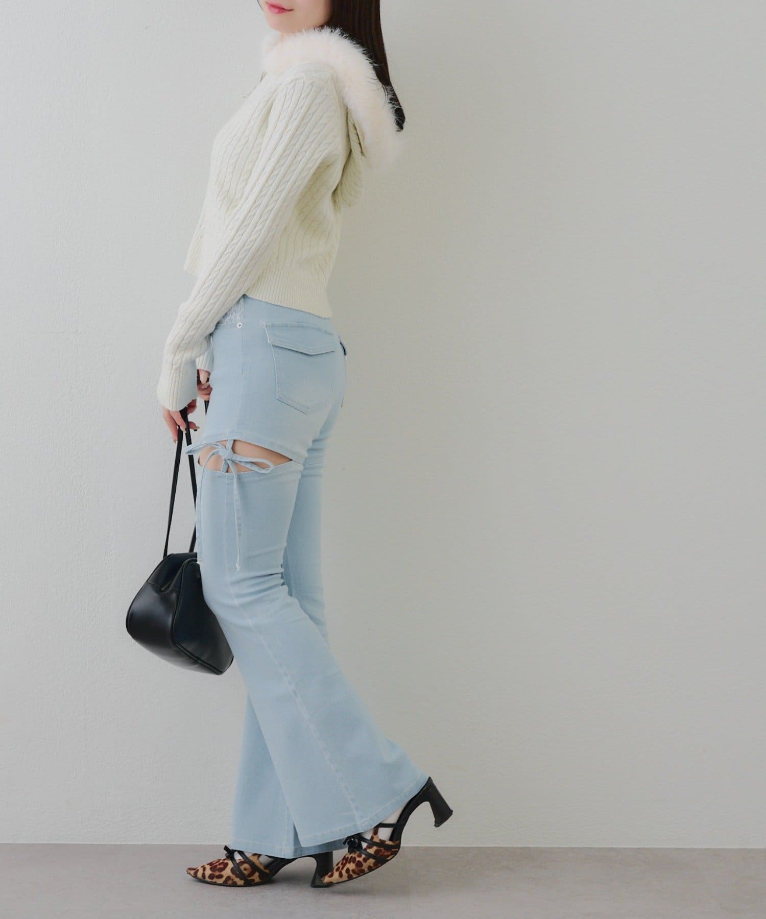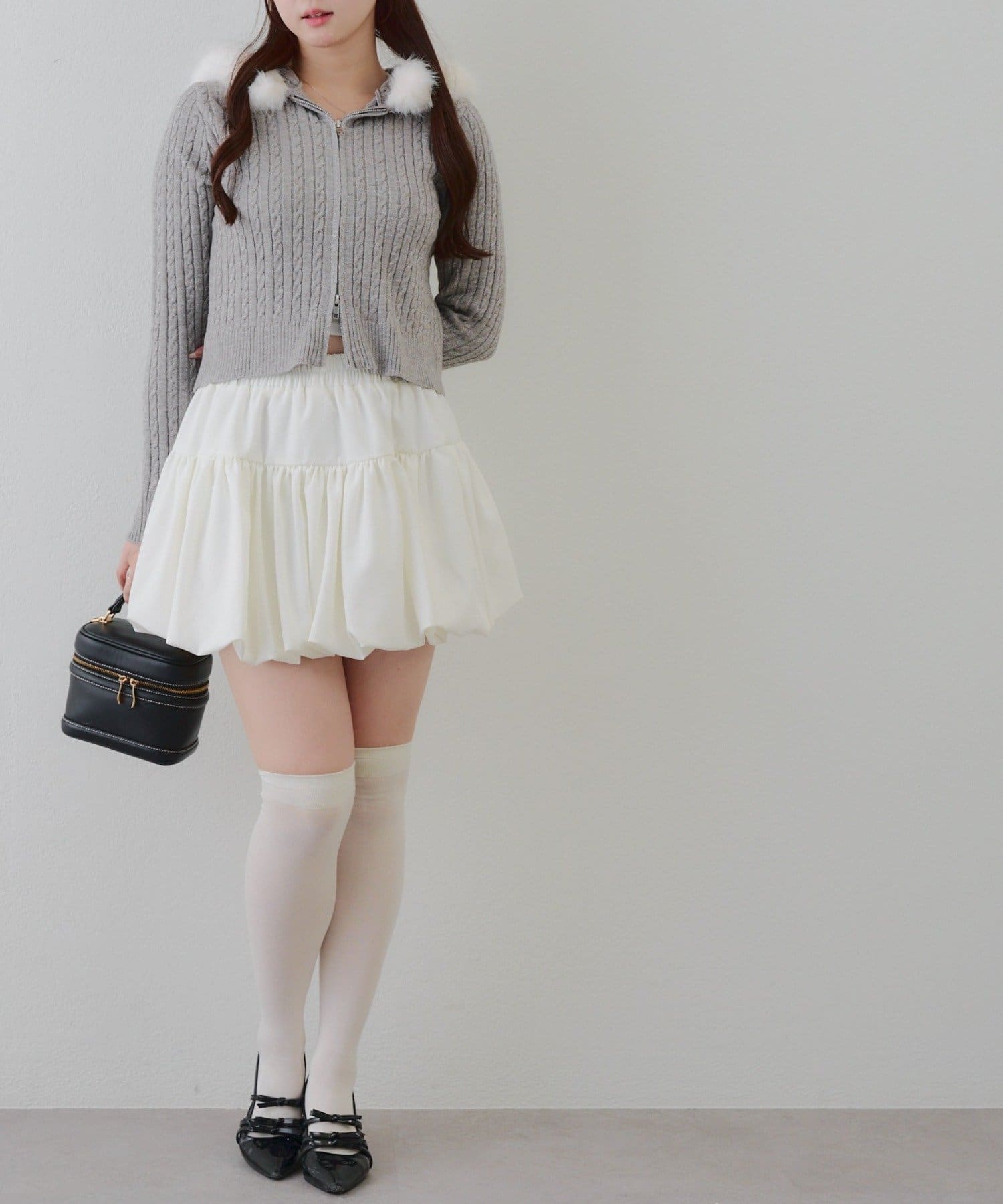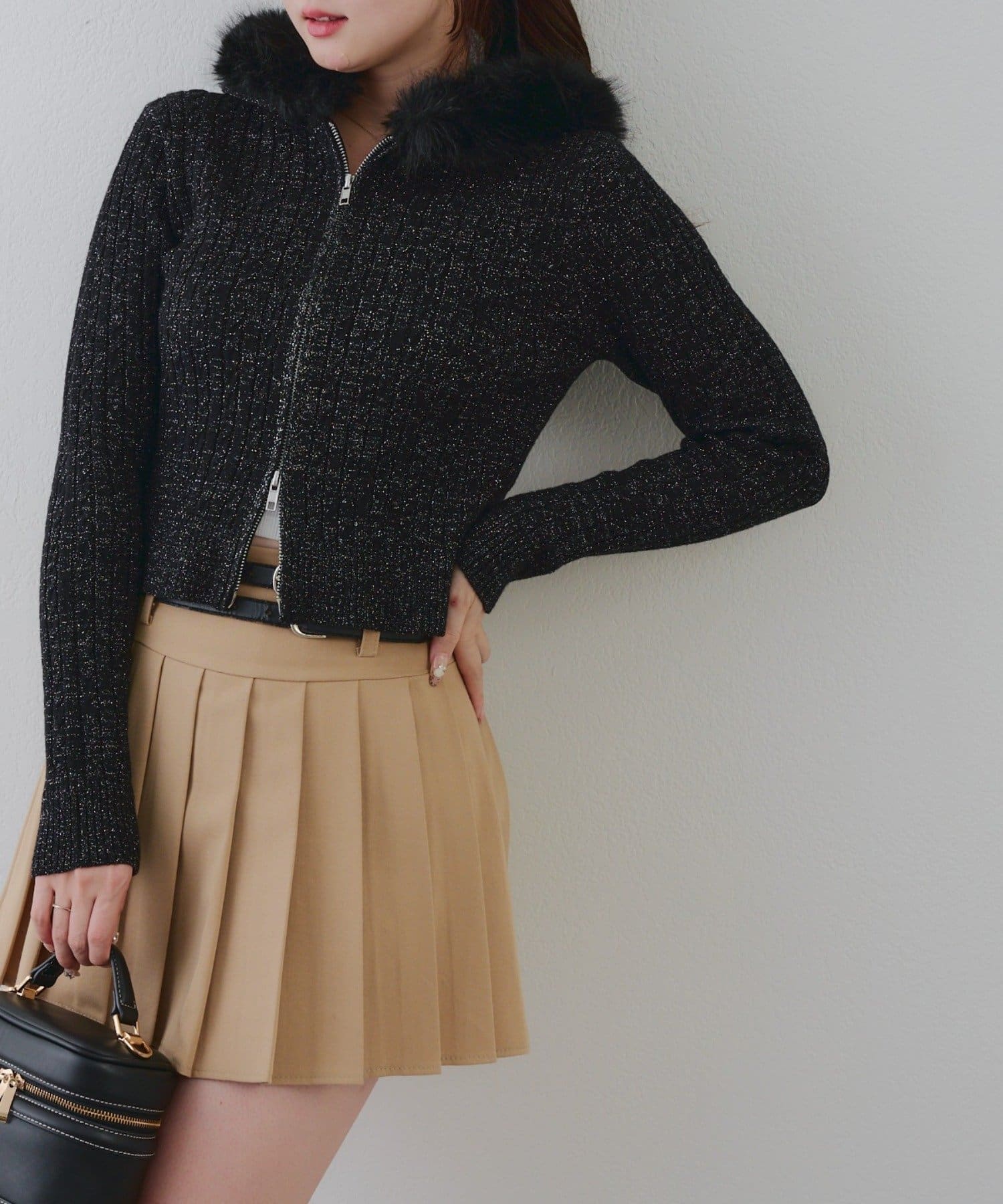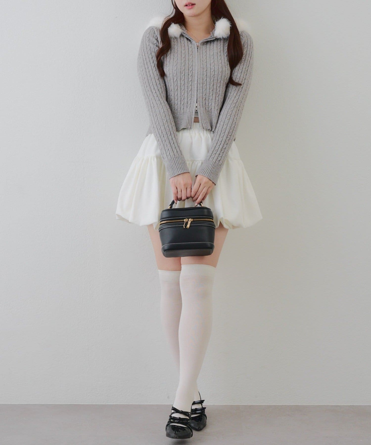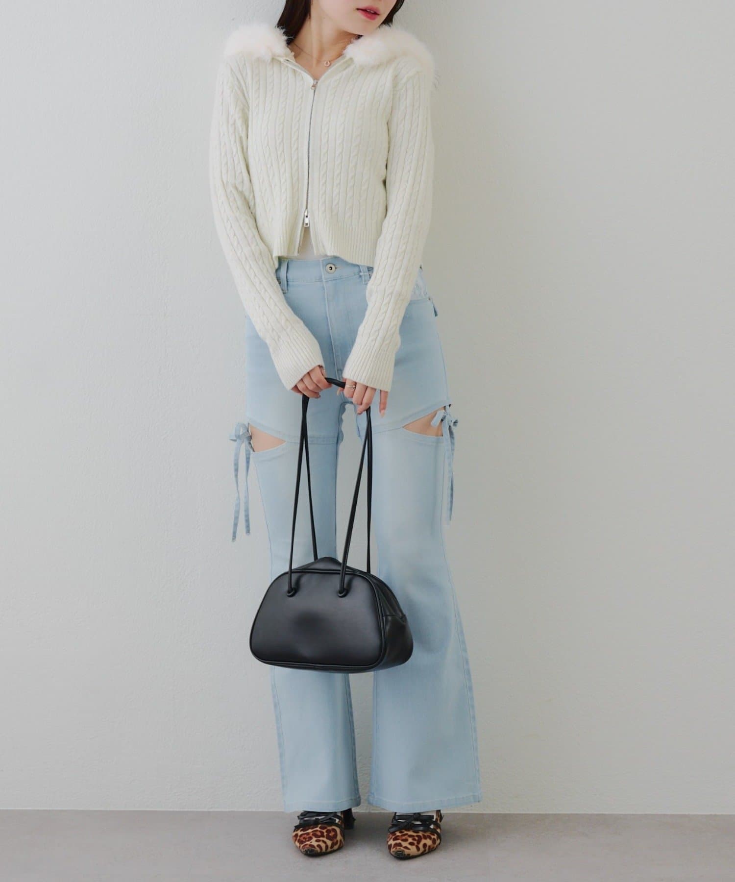 ・ケーブル編みとボリューム感のあるファーがシーズンムードを演出するパーカー