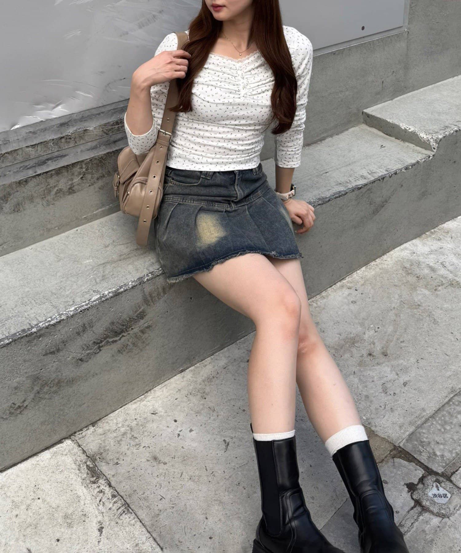 ・デニムやミニスカート合わせで韓国ガーリーな雰囲気が楽しめます!