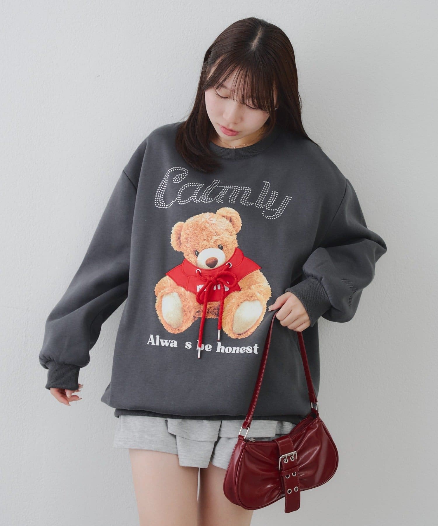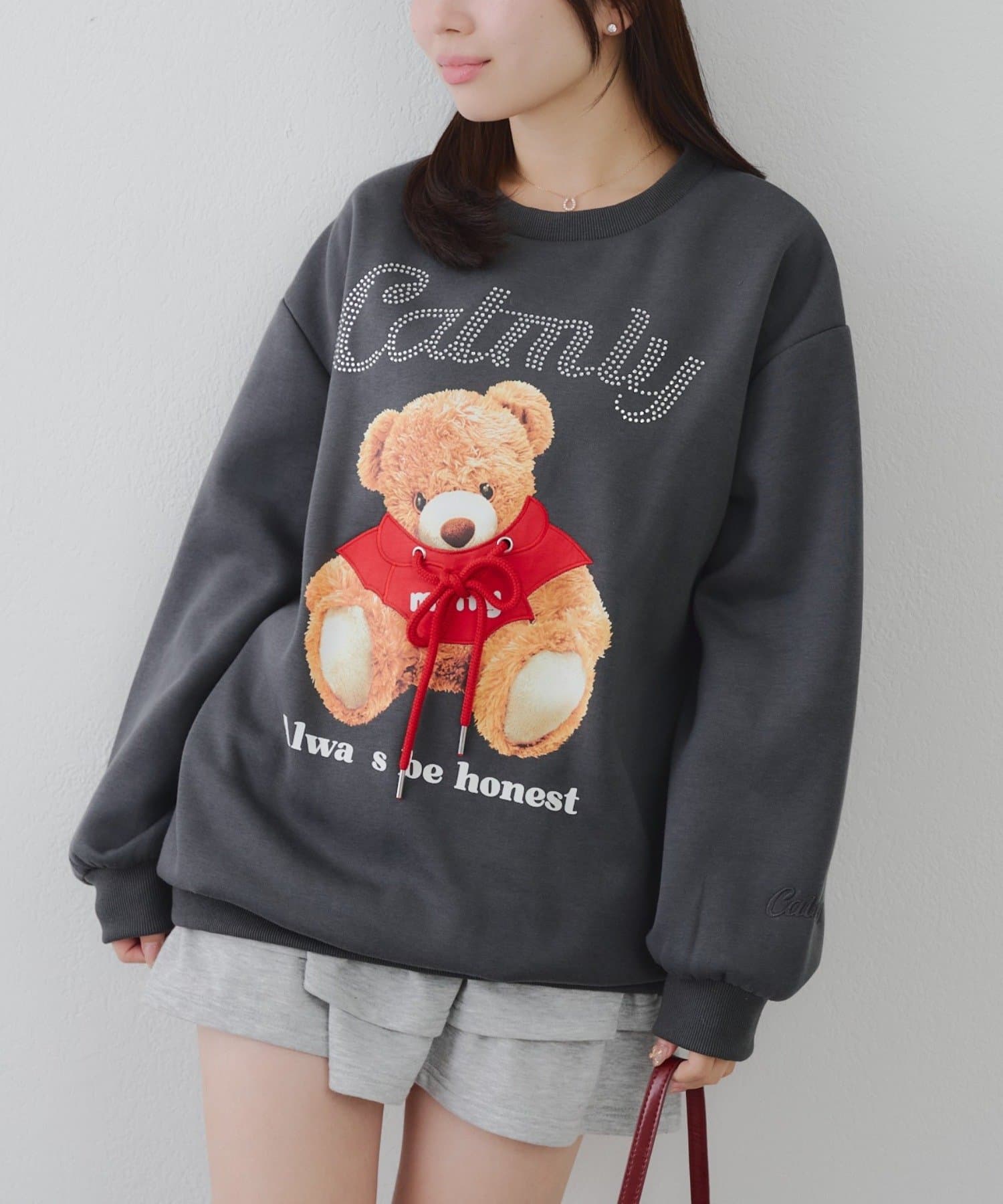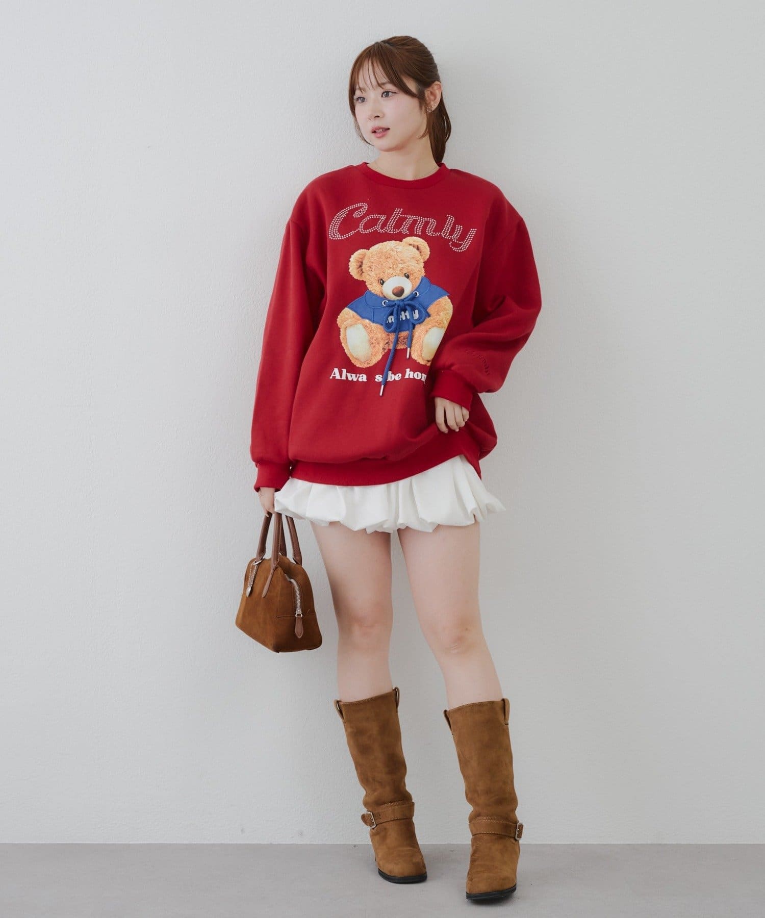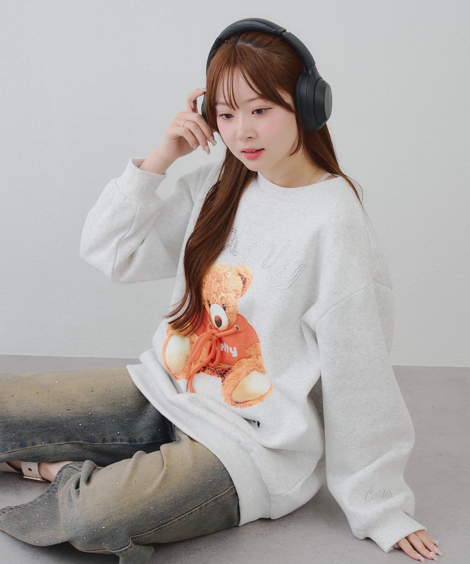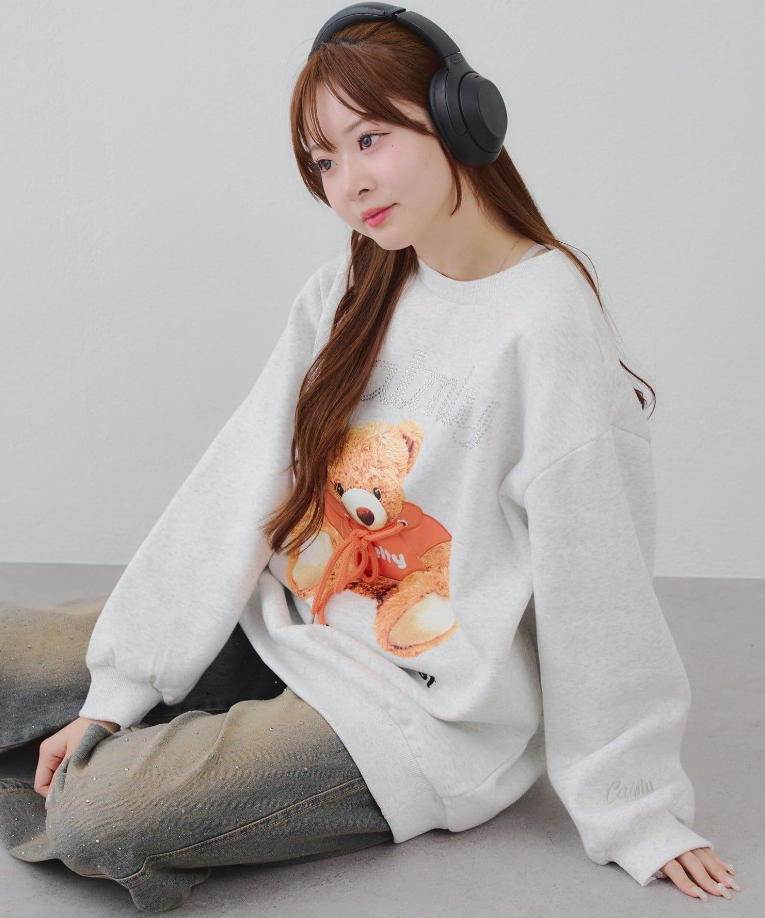 ・くまさんがほっこりした表情で癒されるゆったりしたBIGシルエットのスウェット。