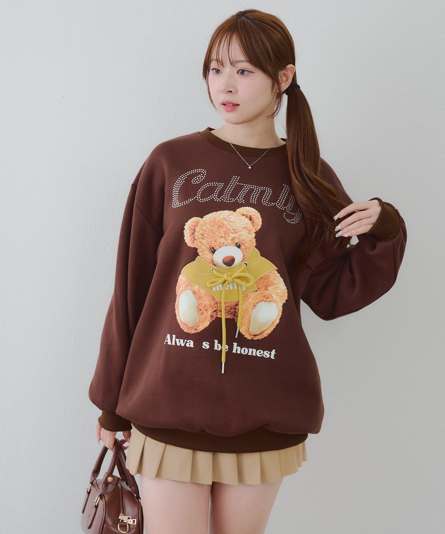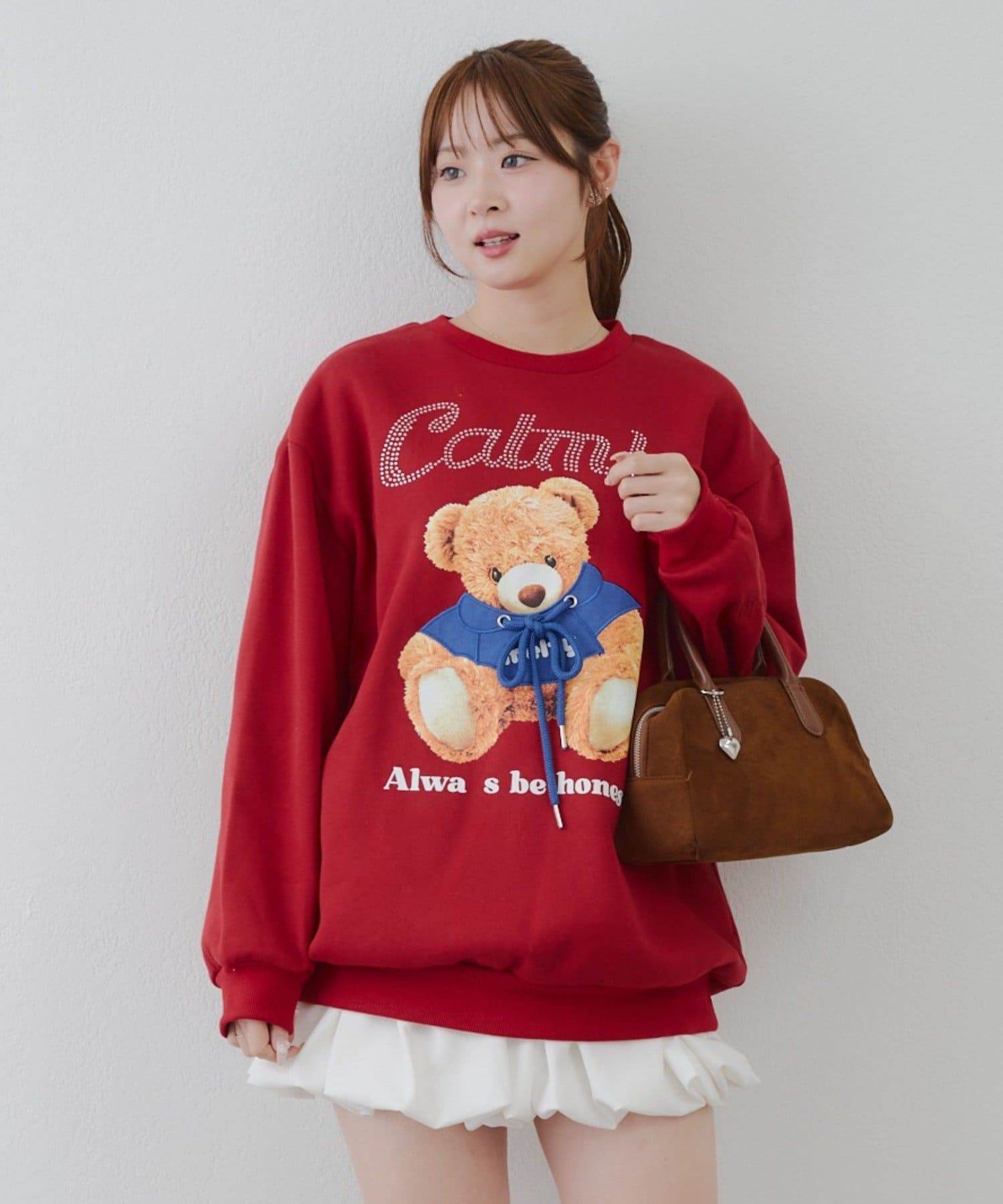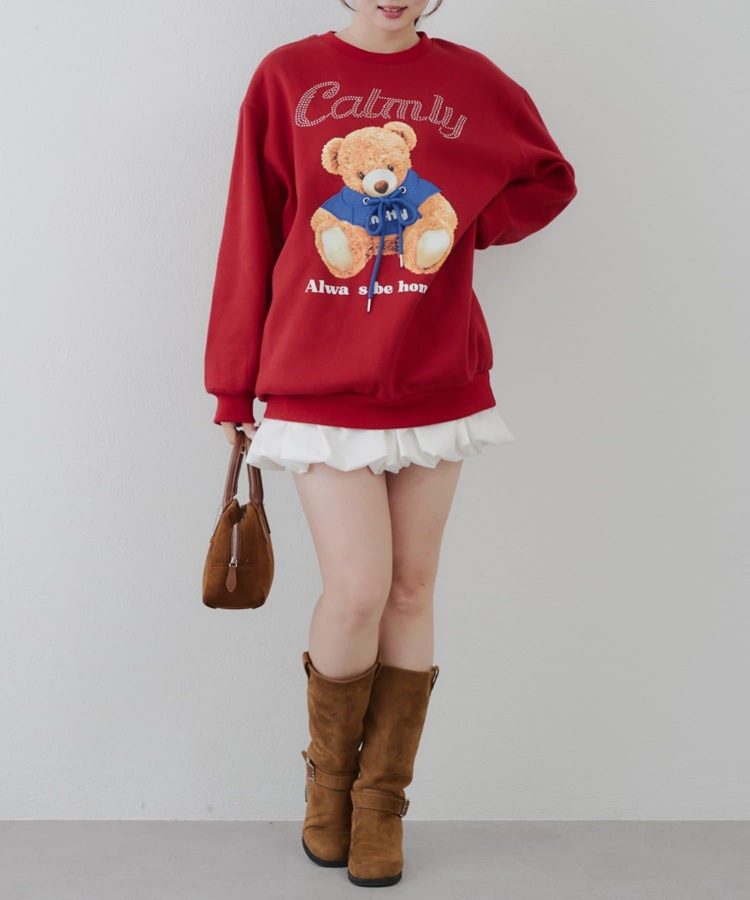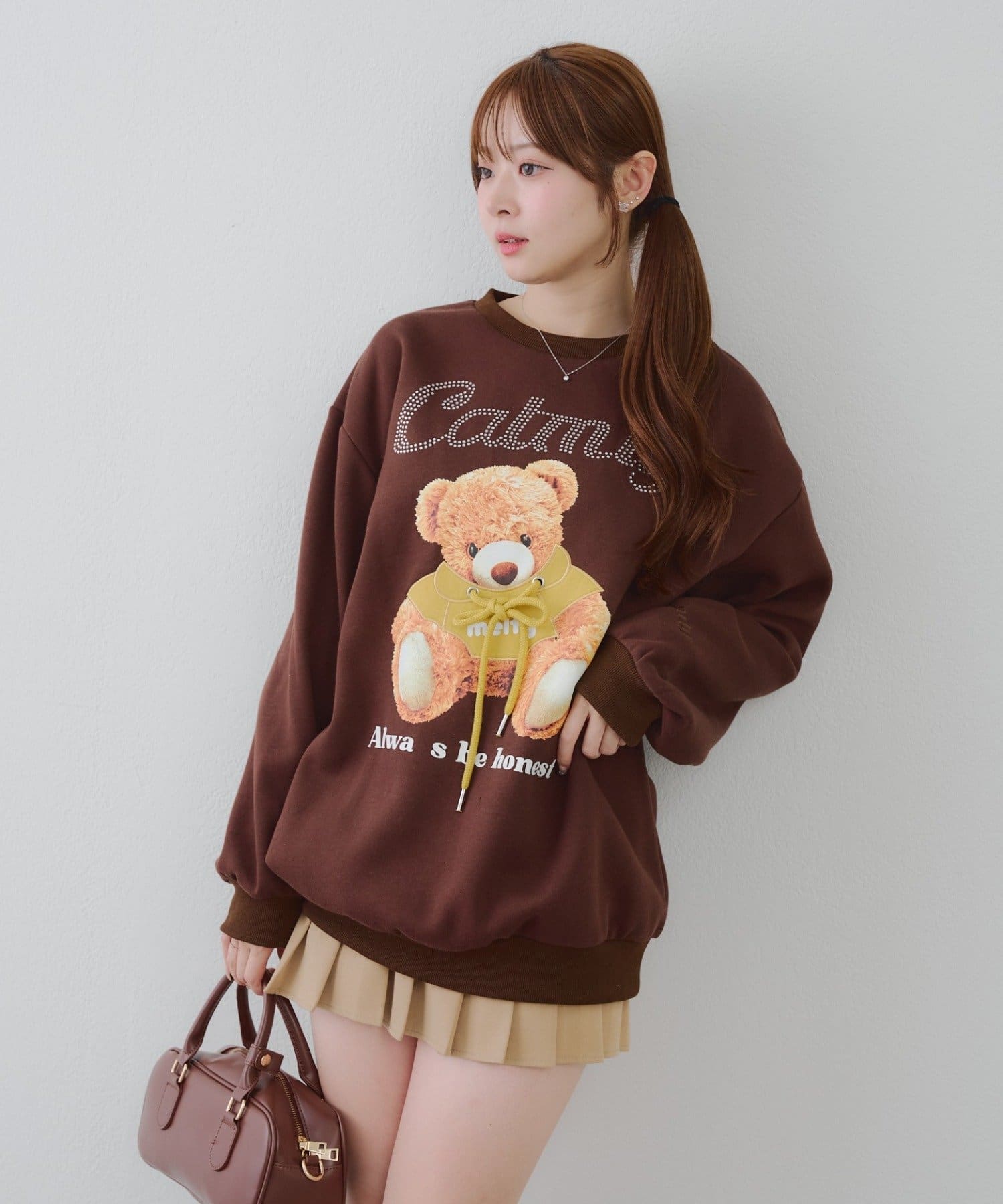 ・くまさんがほっこりした表情で癒されるゆったりしたBIGシルエットのスウェット。