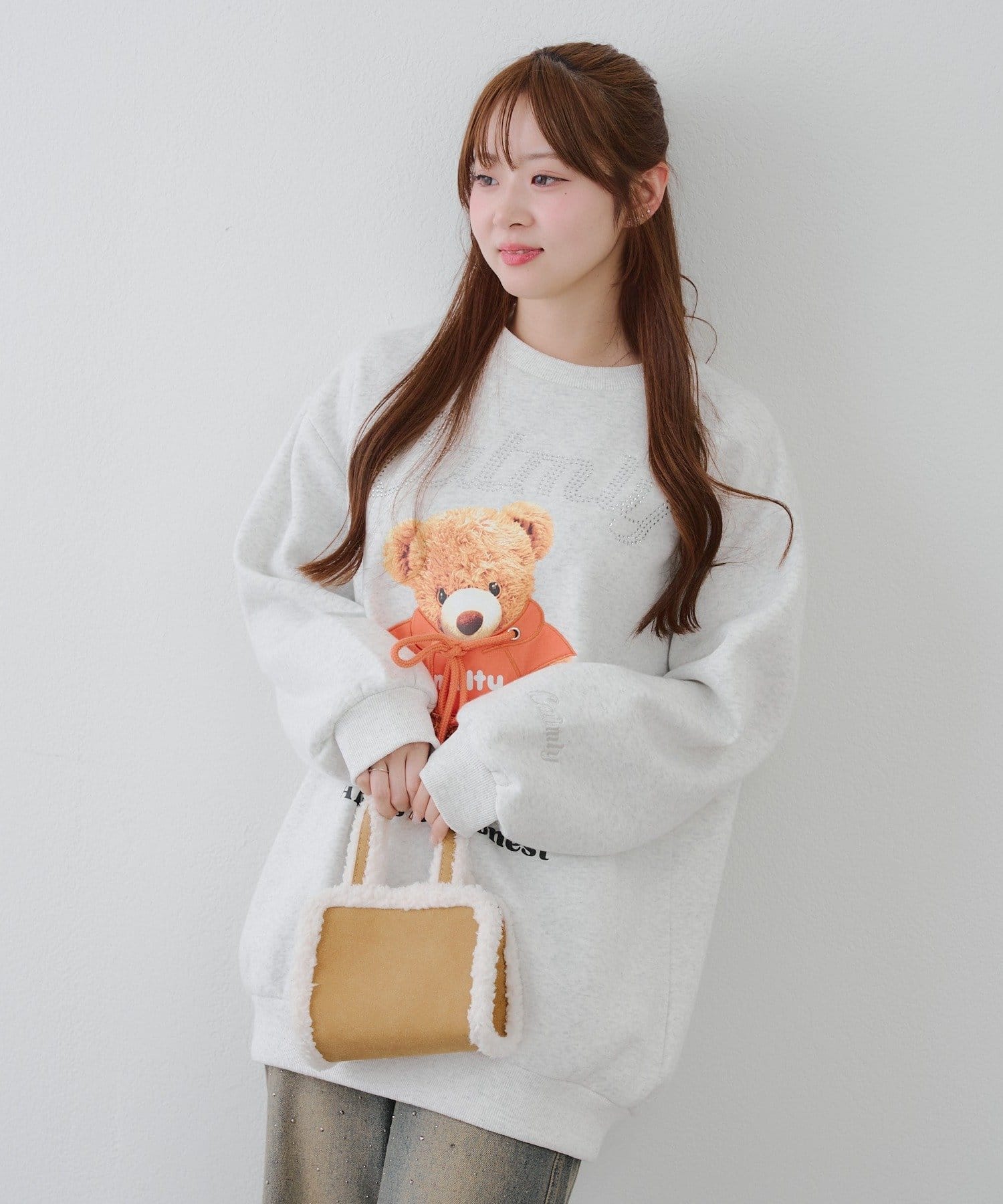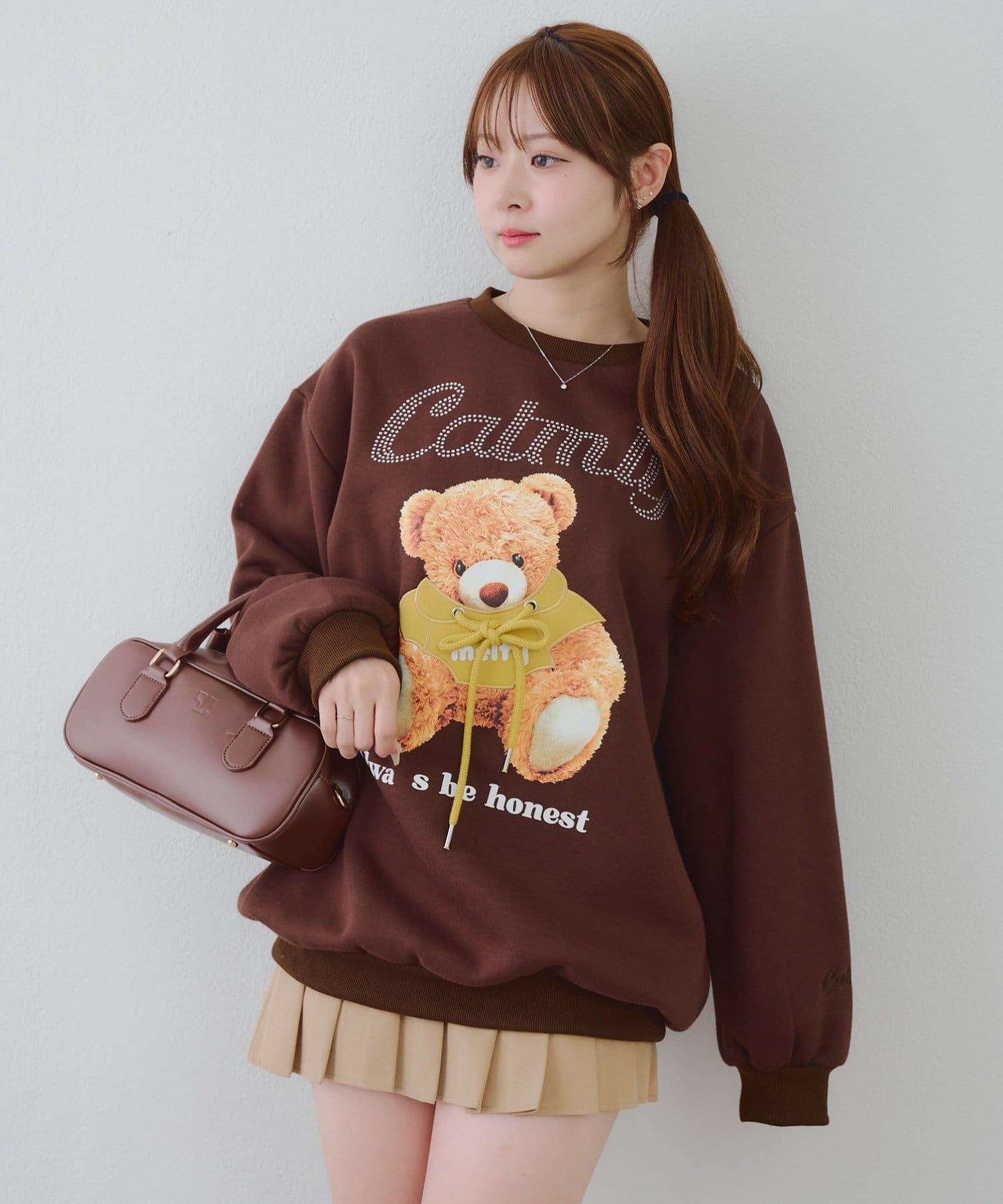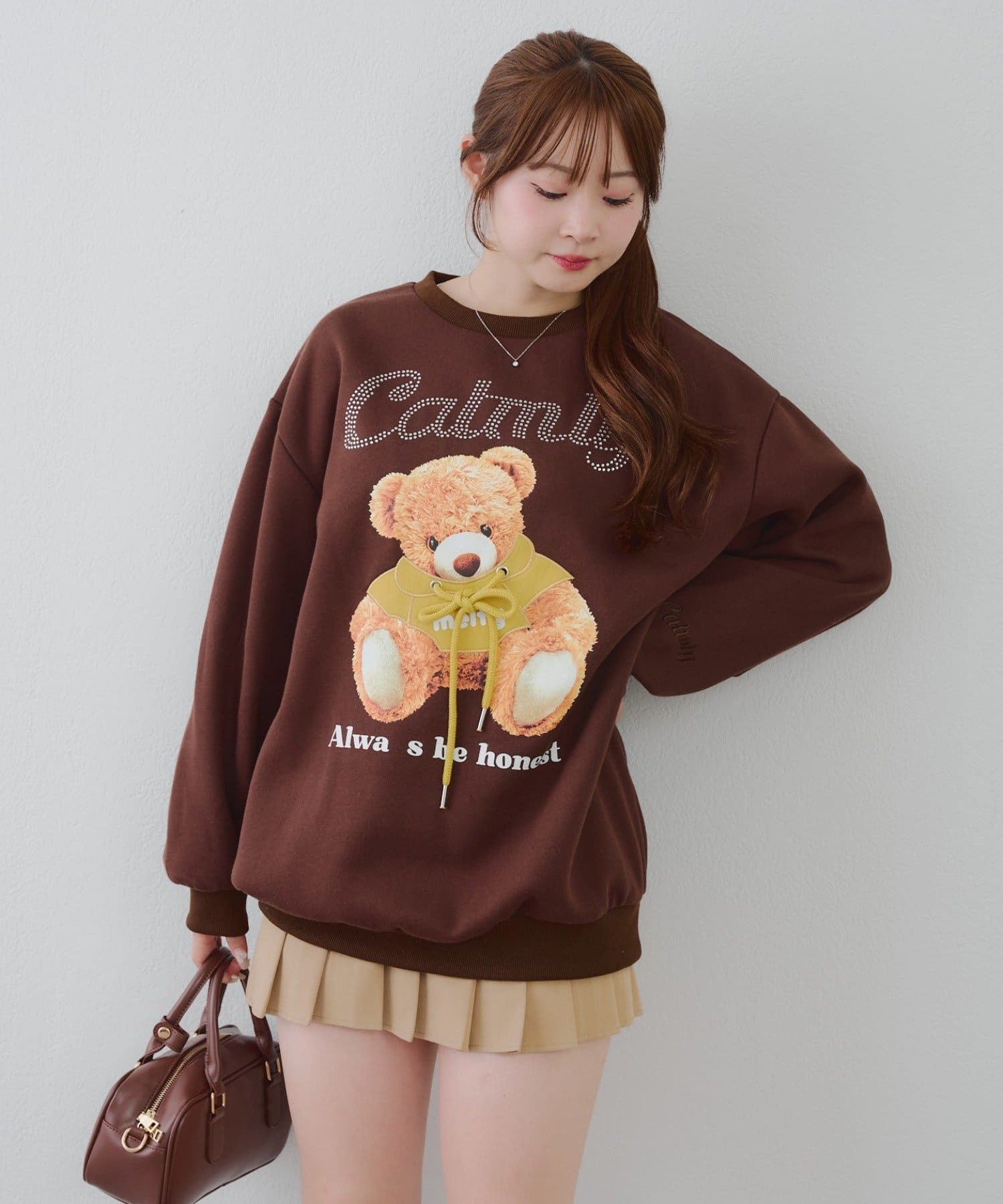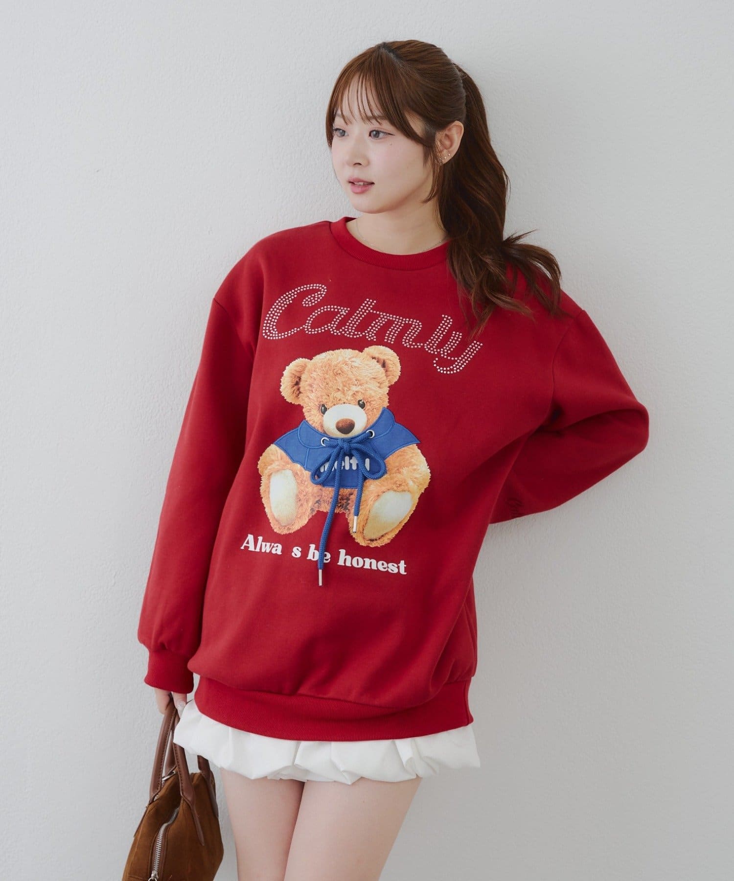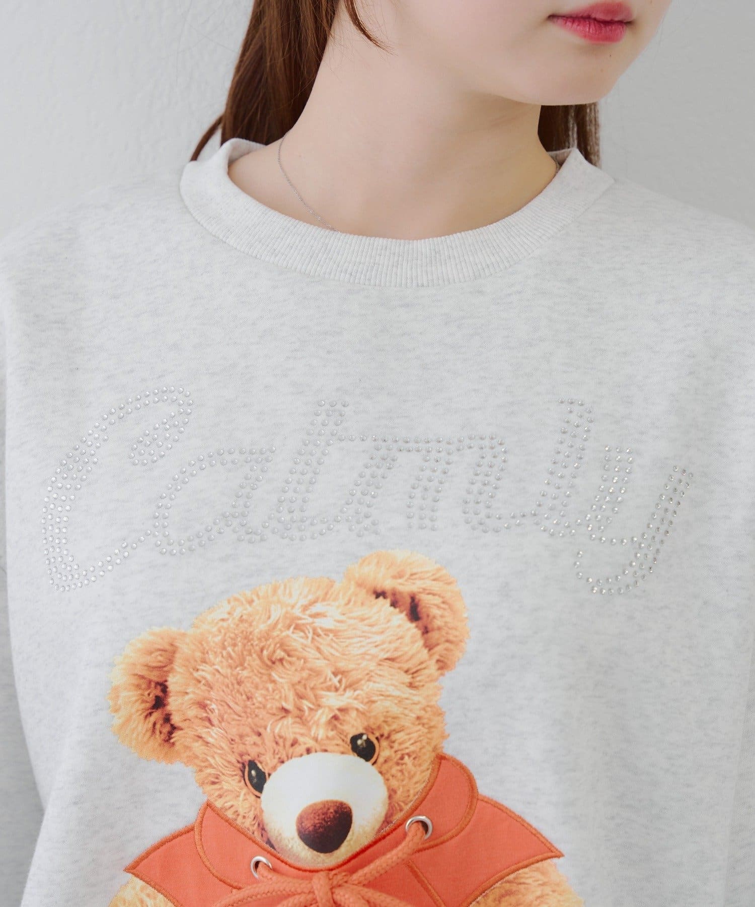 ・くまさんがほっこりした表情で癒されるゆったりしたBIGシルエットのスウェット。