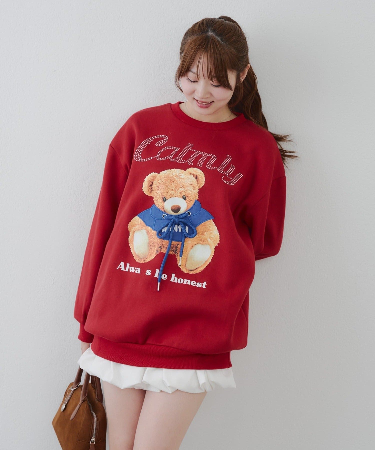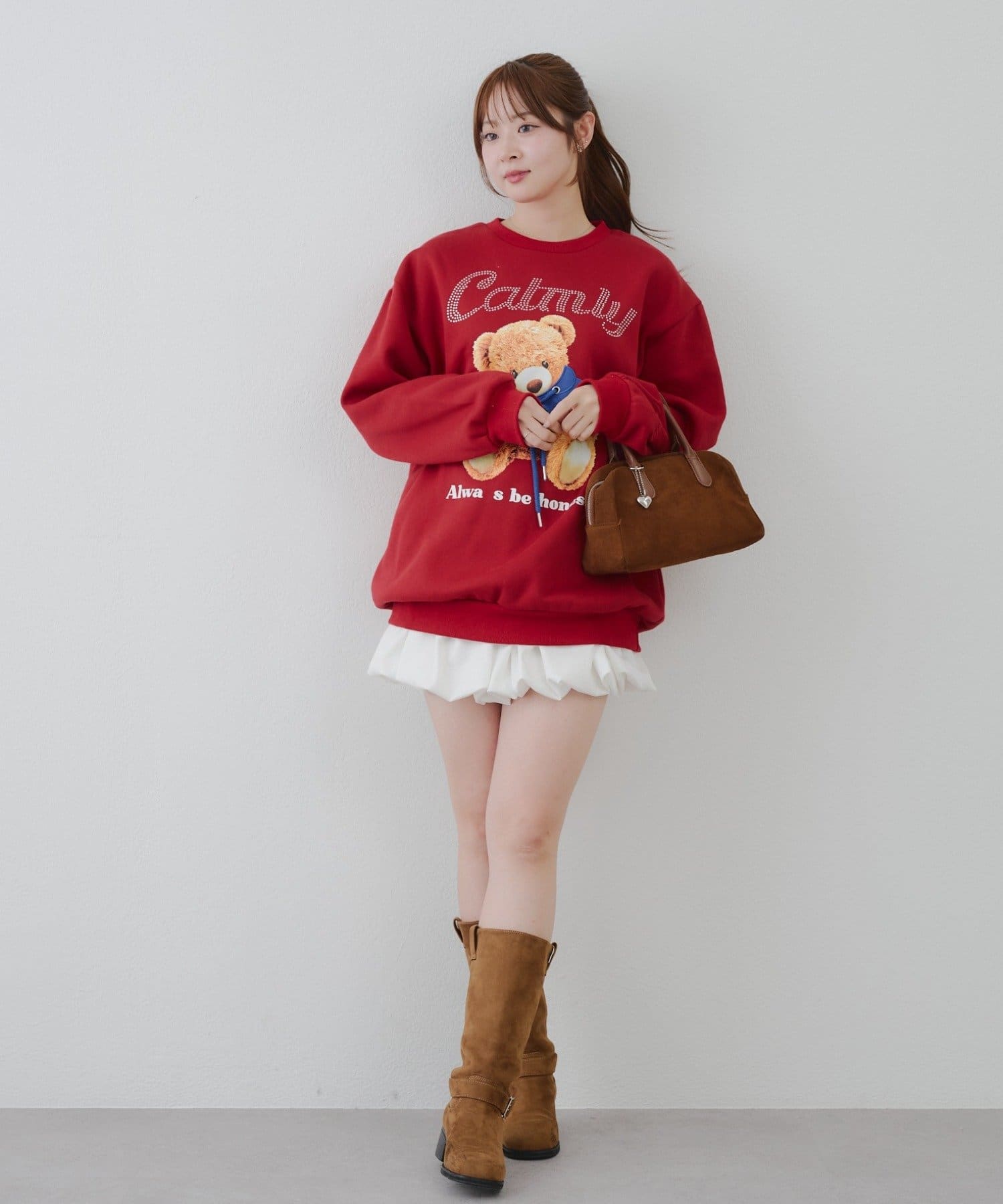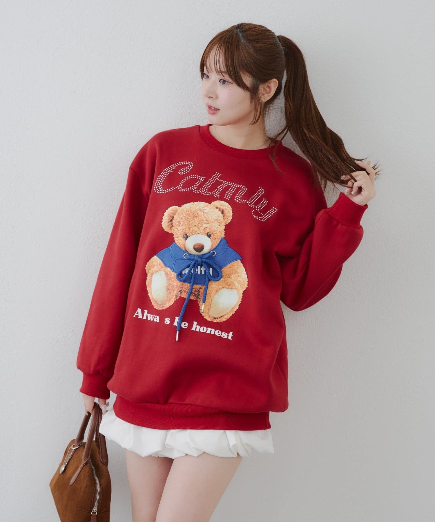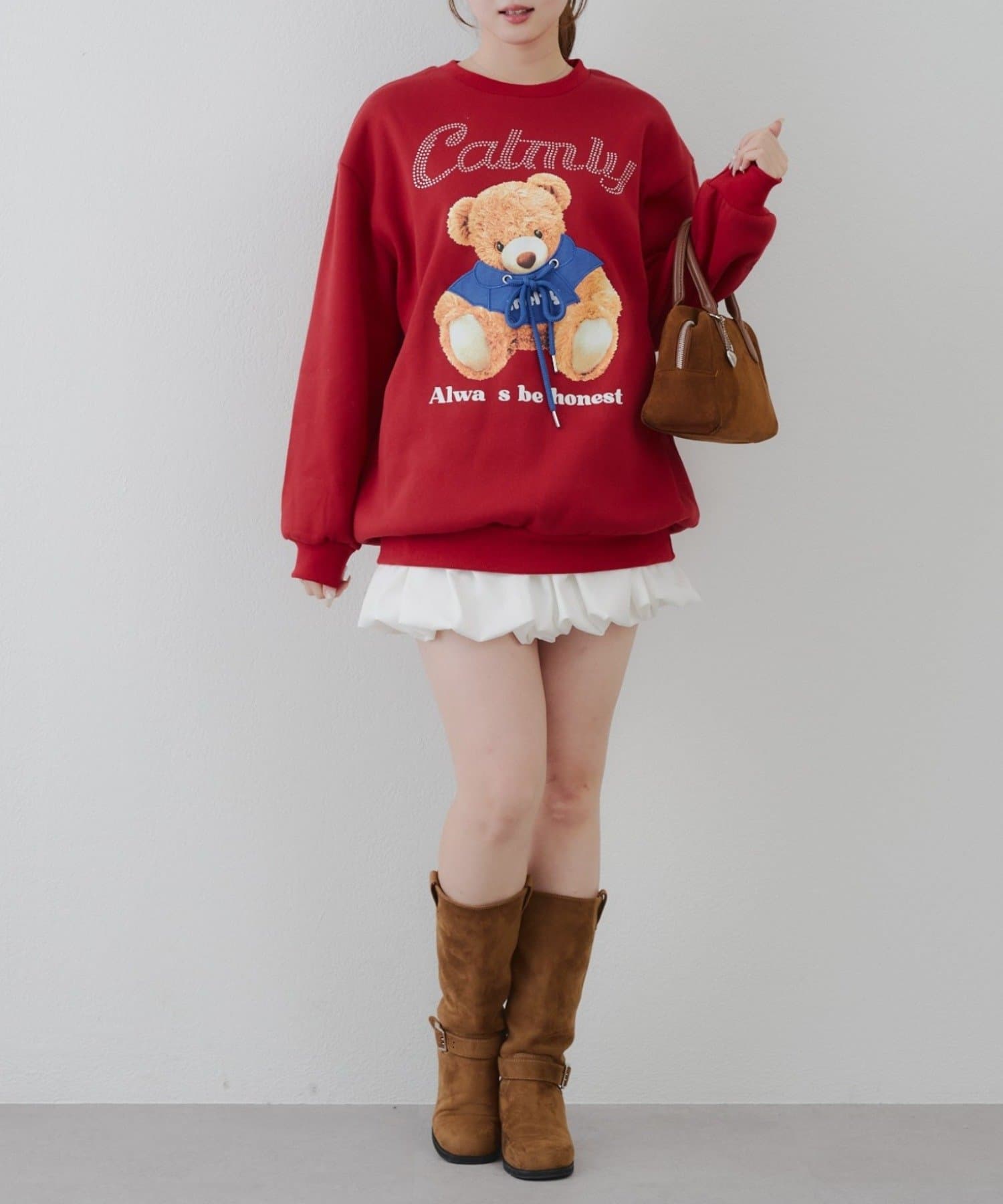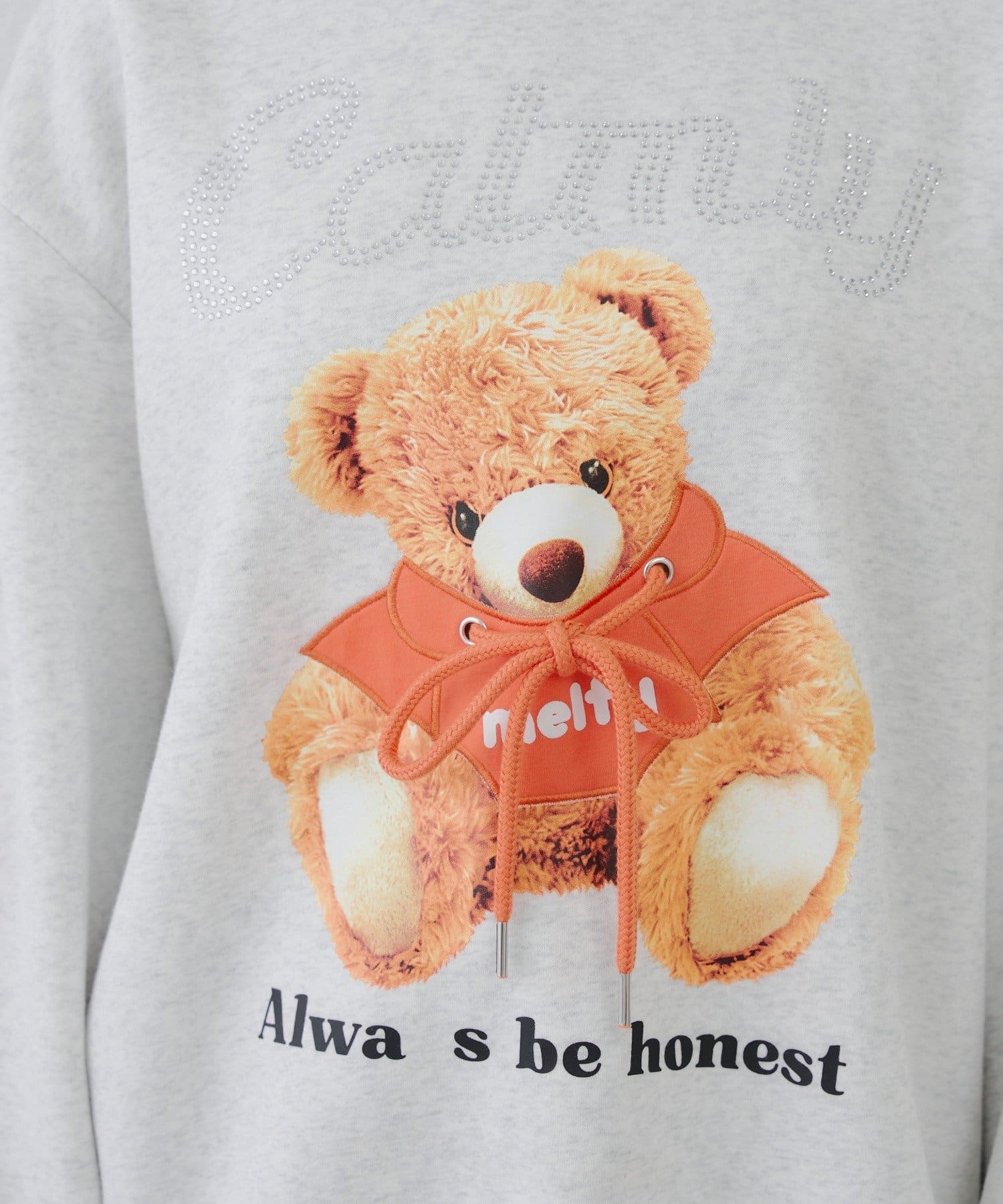 ・くまさんがほっこりした表情で癒されるゆったりしたBIGシルエットのスウェット。