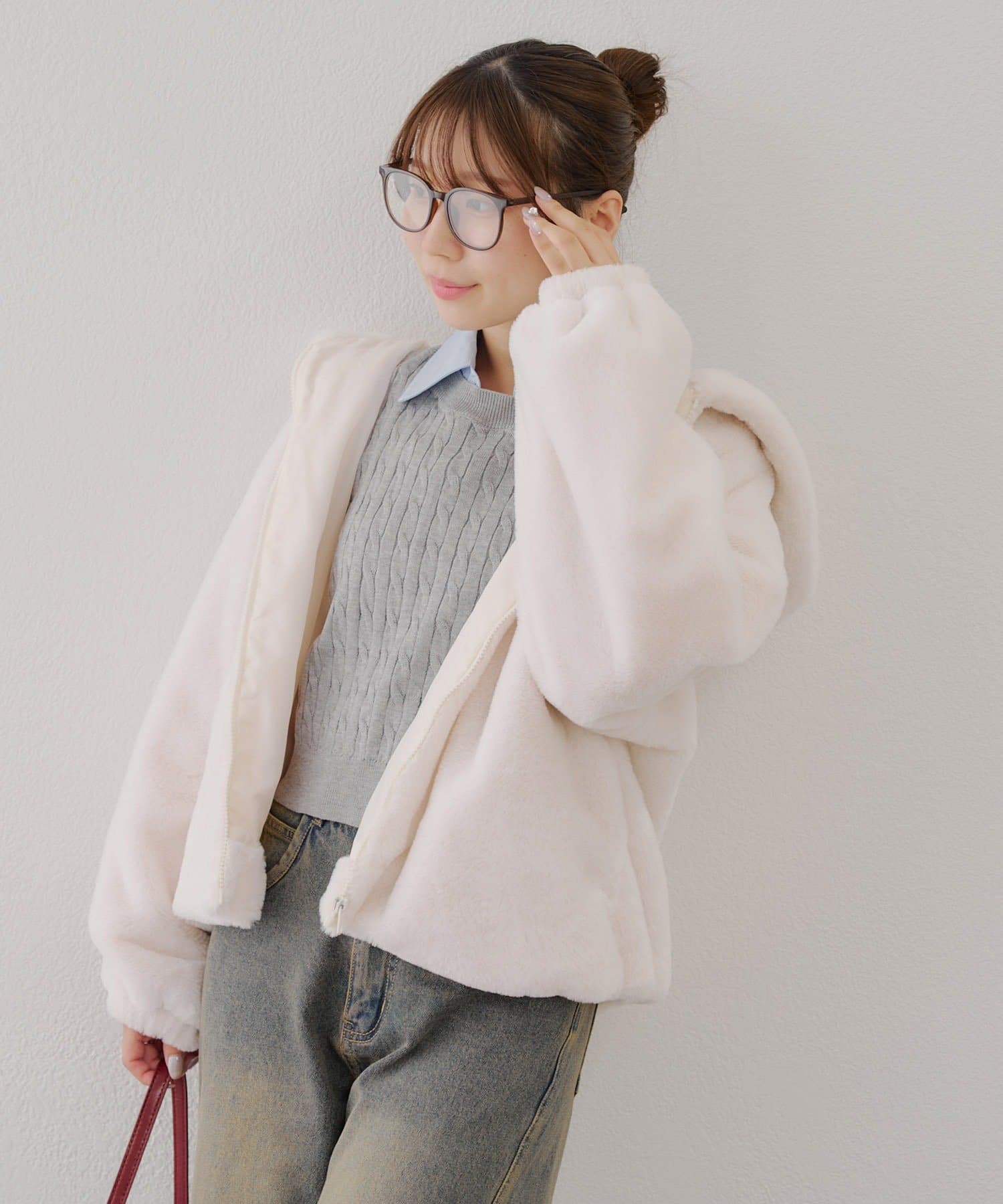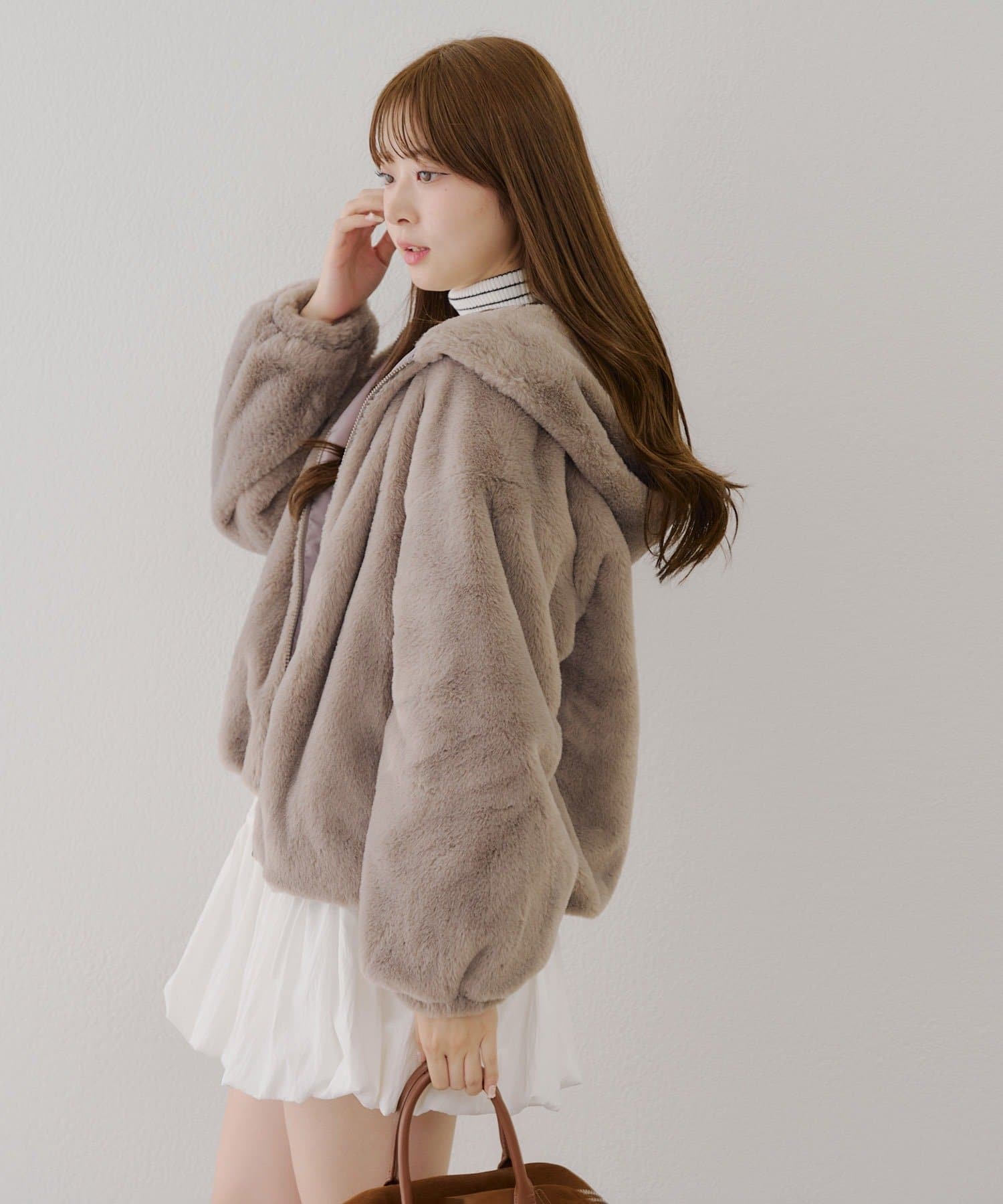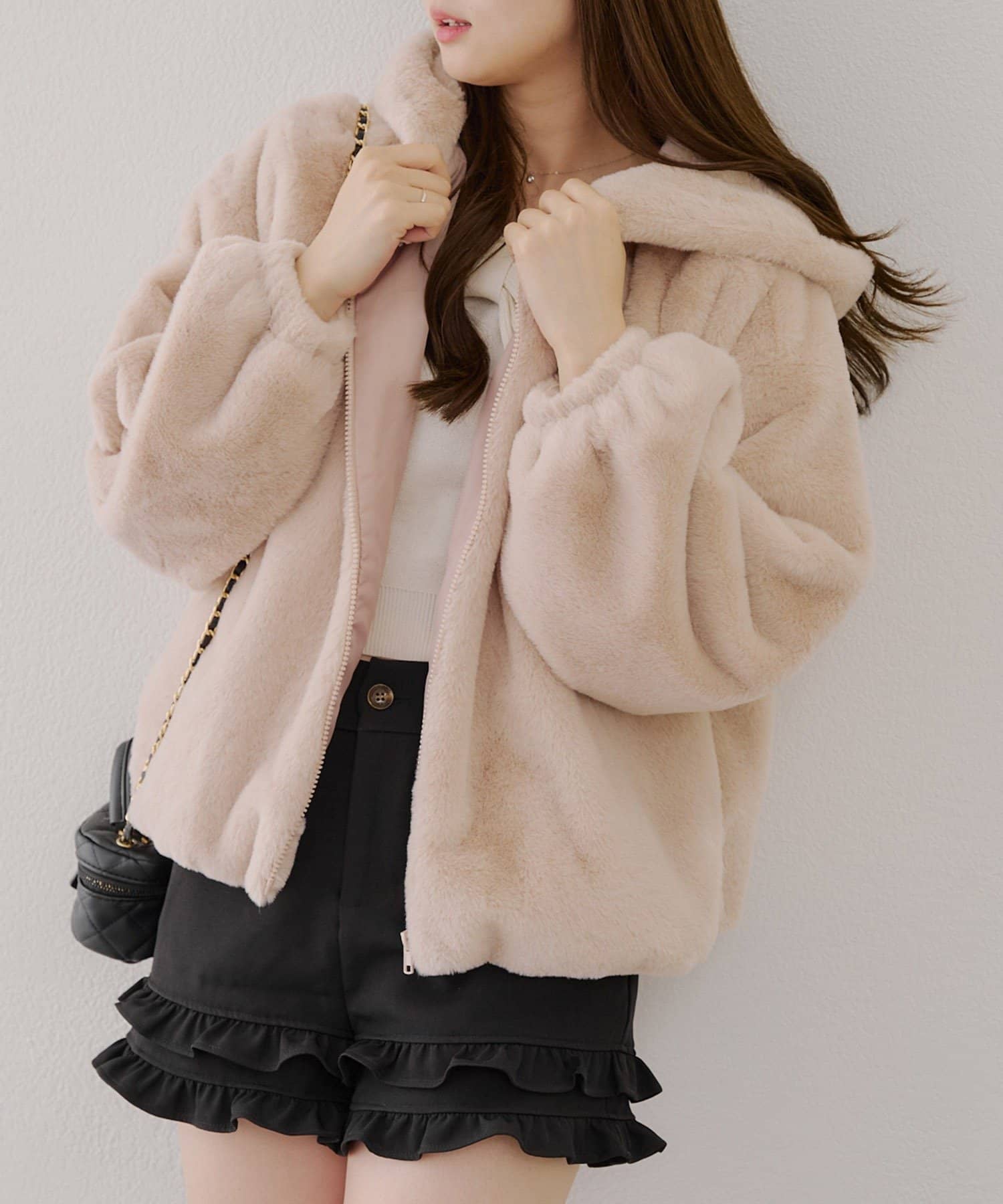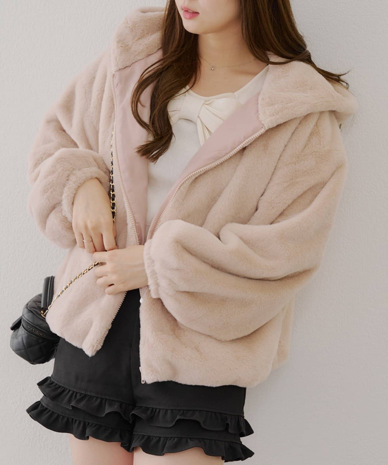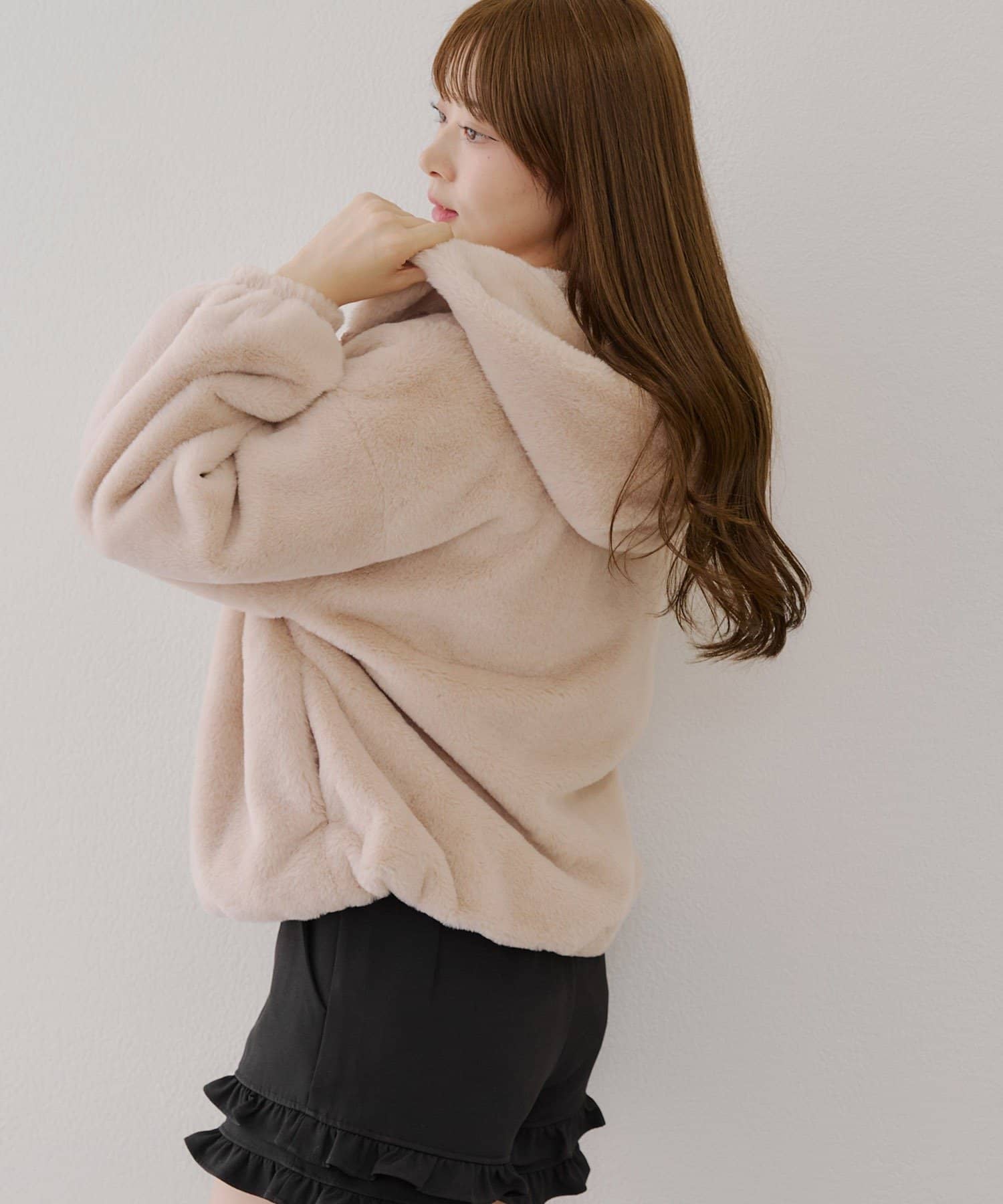 ・寒い時も可愛く防寒♪フード付きファーブルゾン