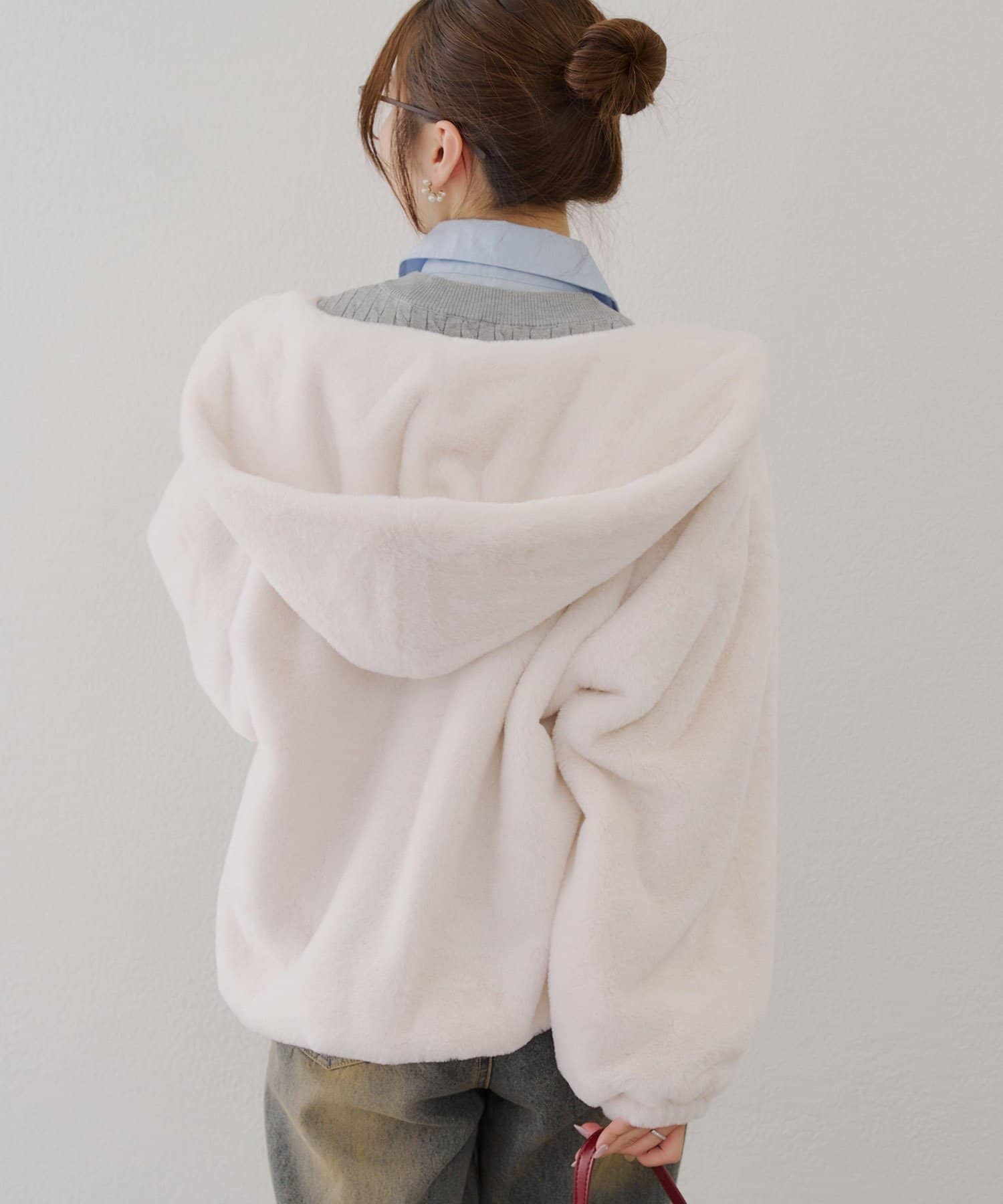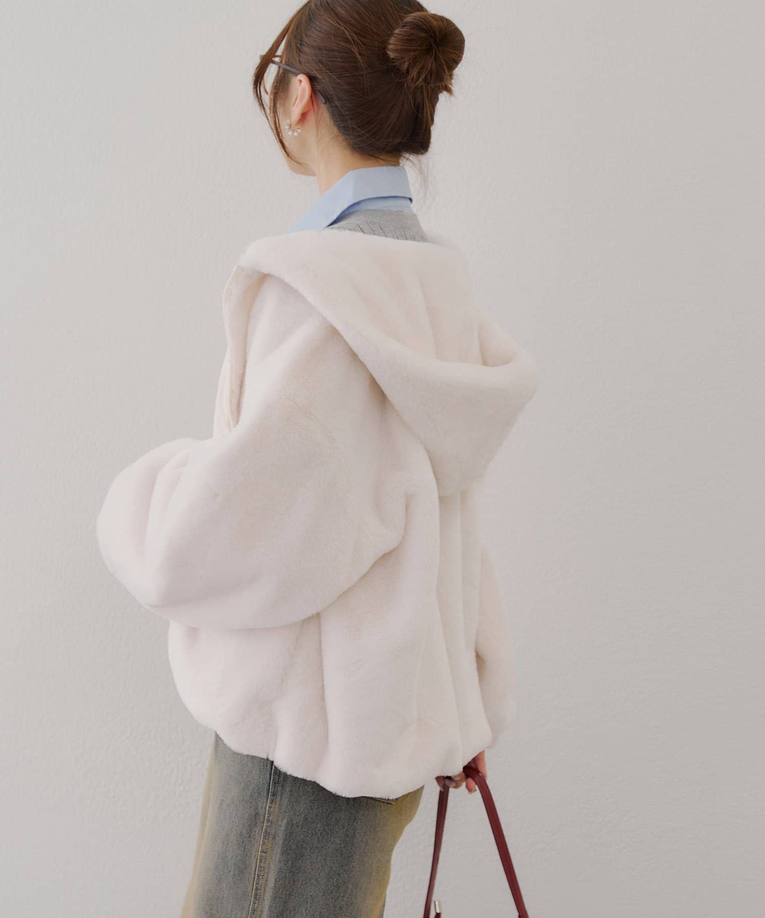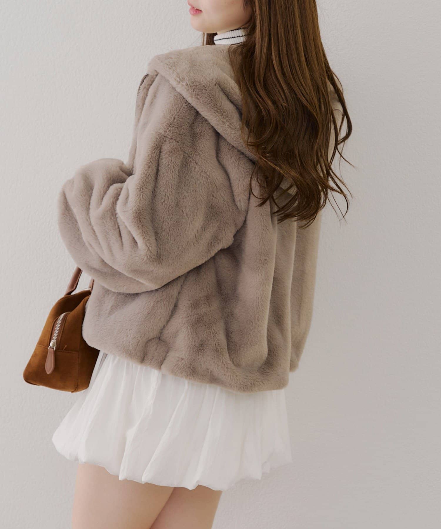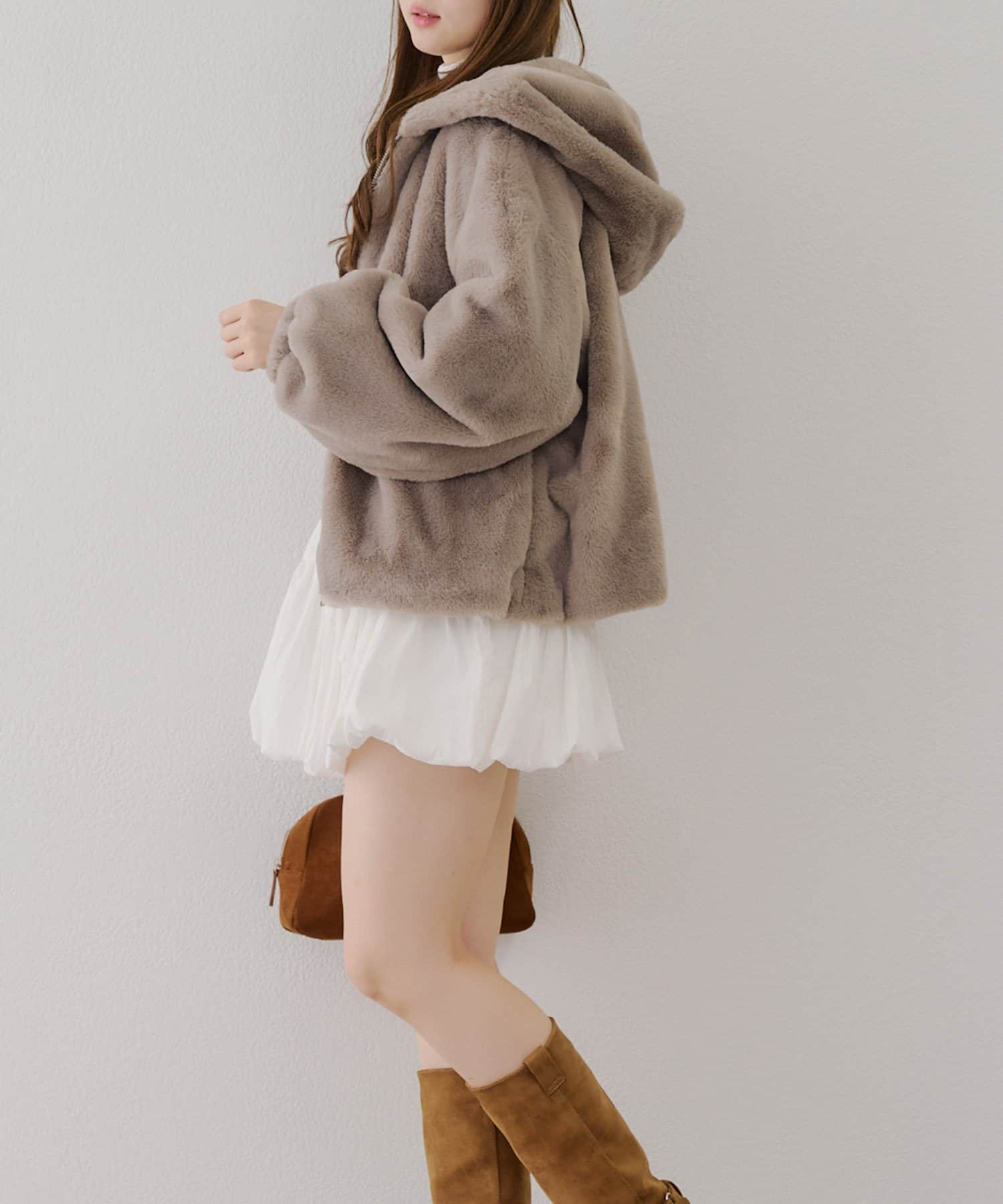 ・寒い時も可愛く防寒♪フード付きファーブルゾン