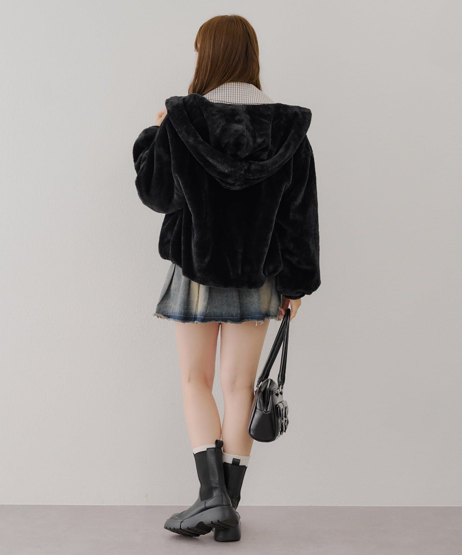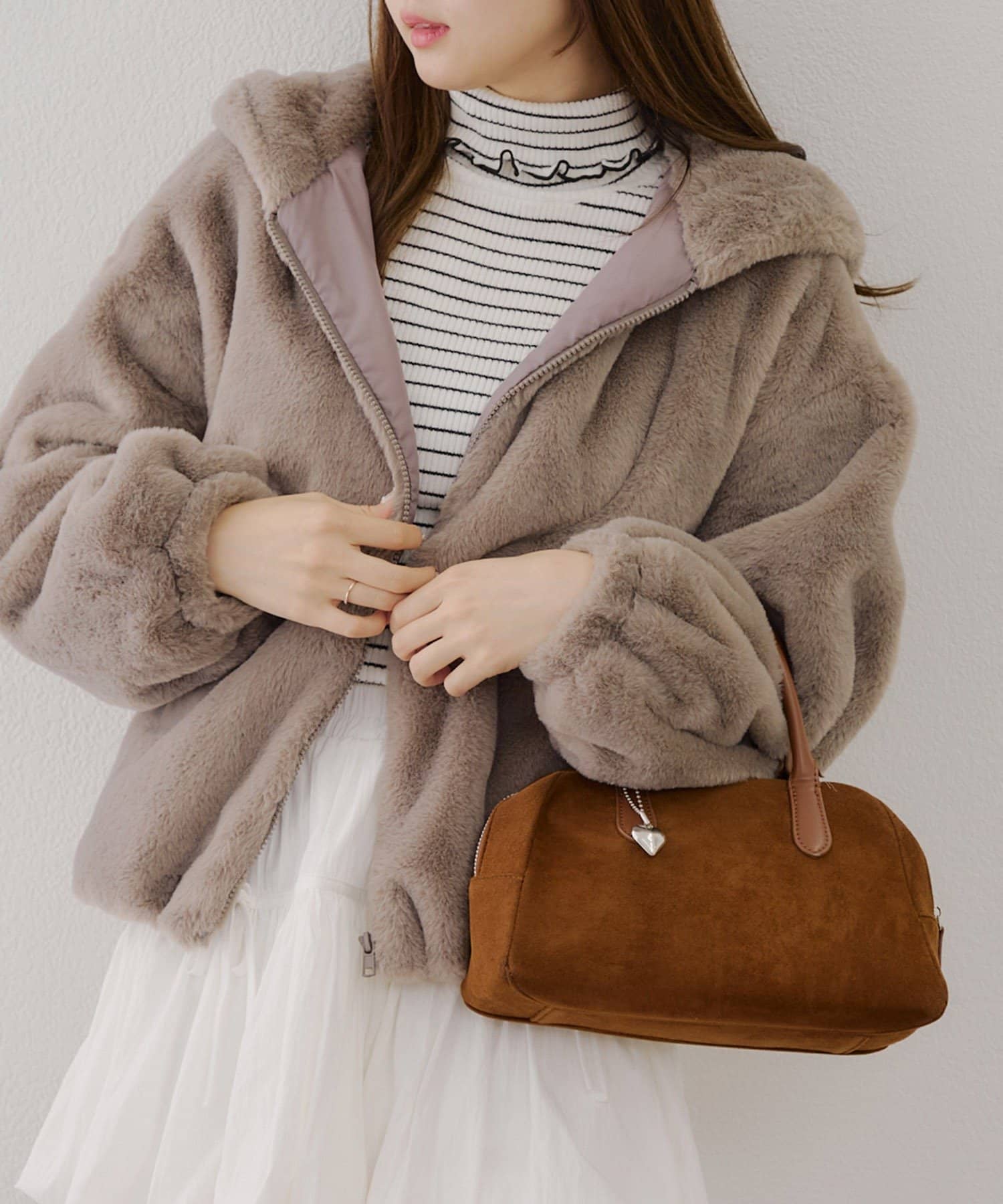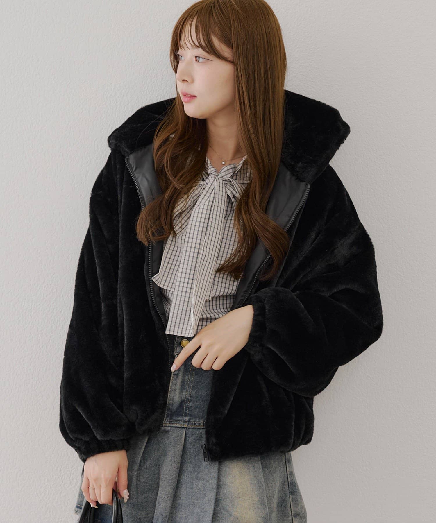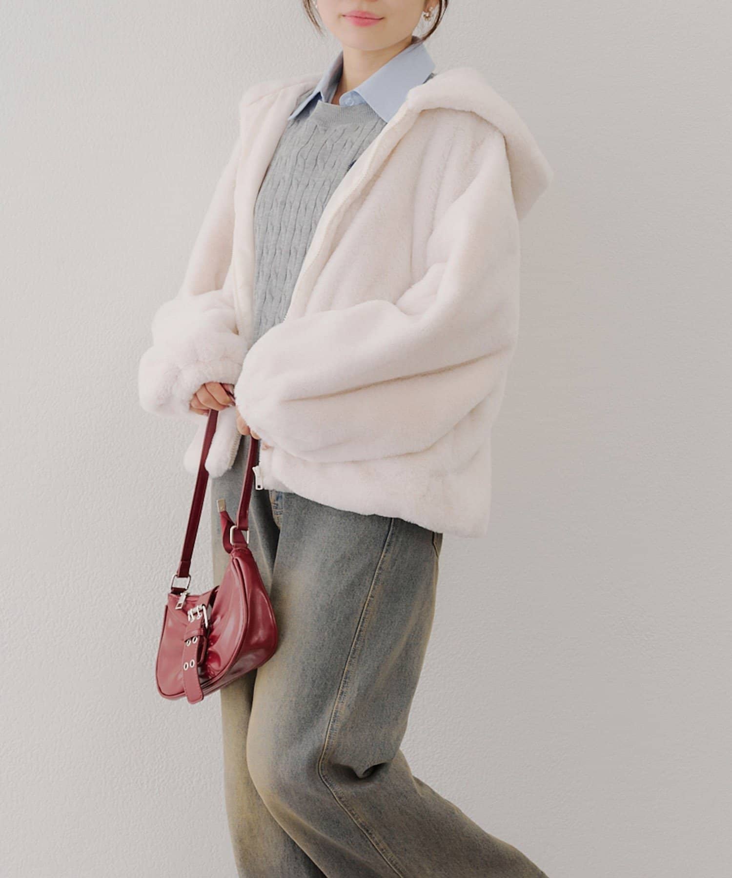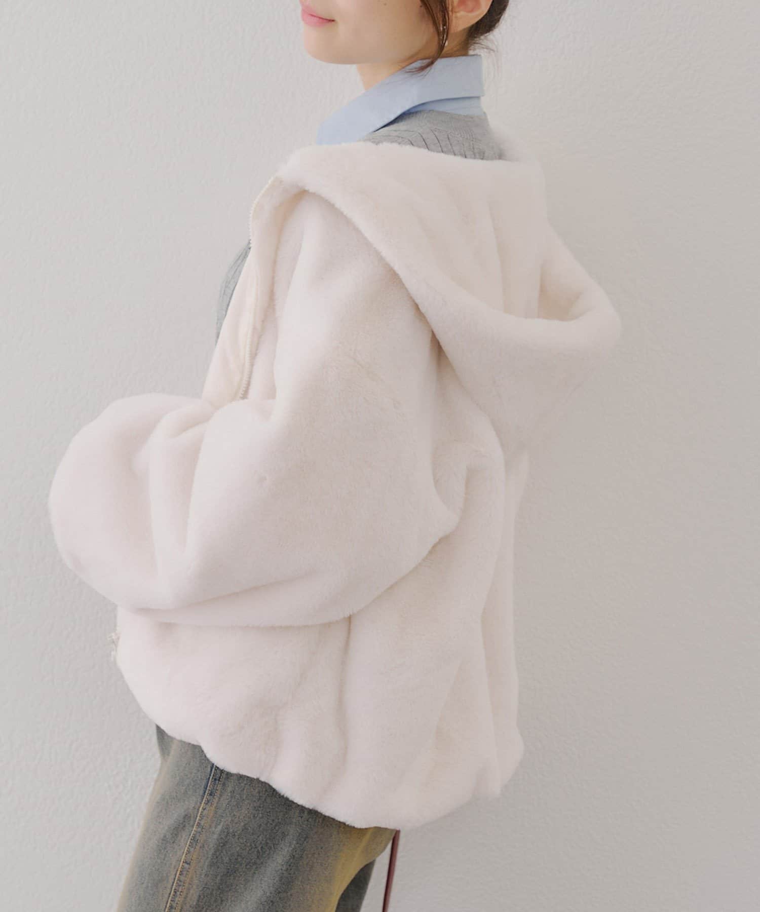 ・寒い時も可愛く防寒♪フード付きファーブルゾン