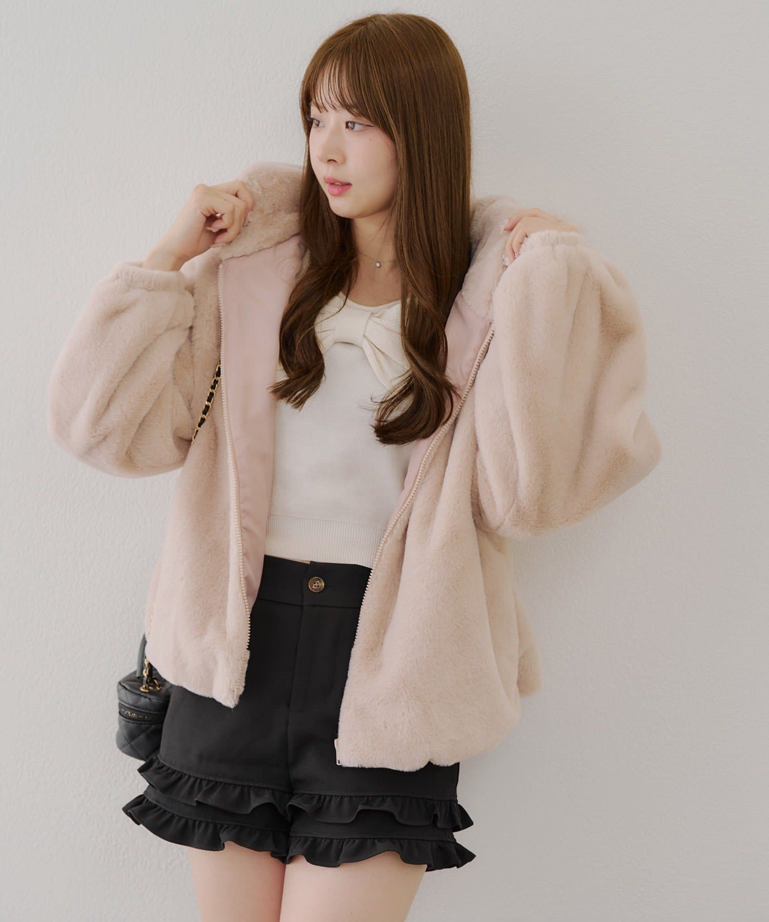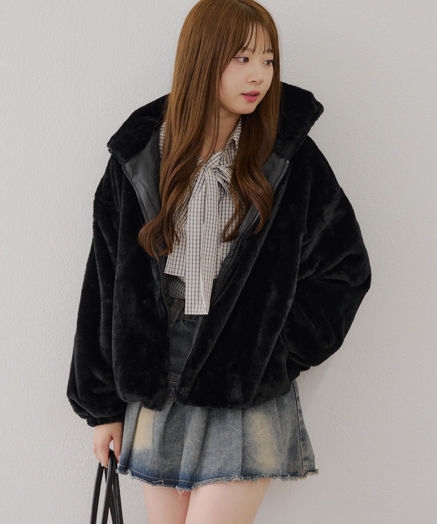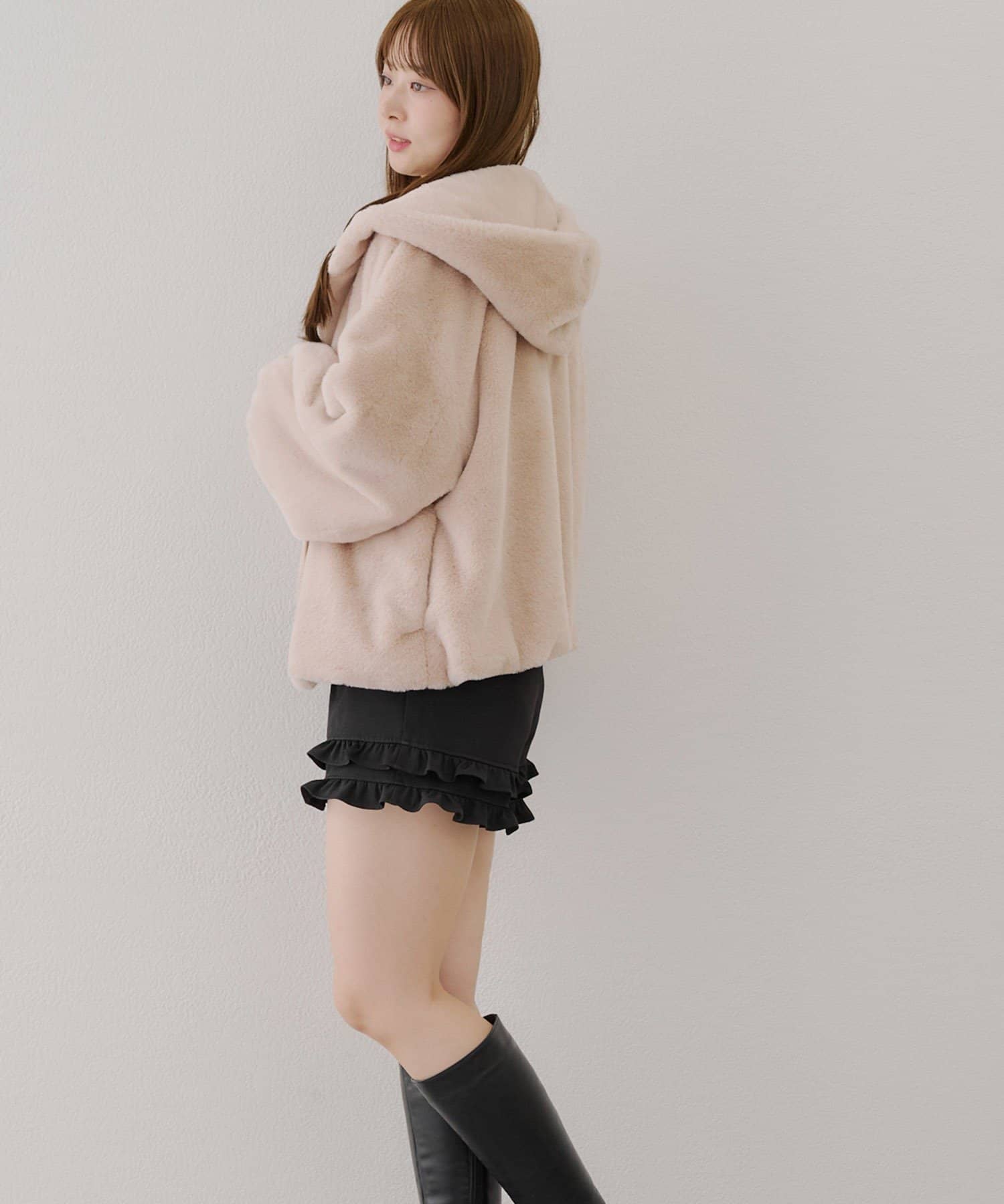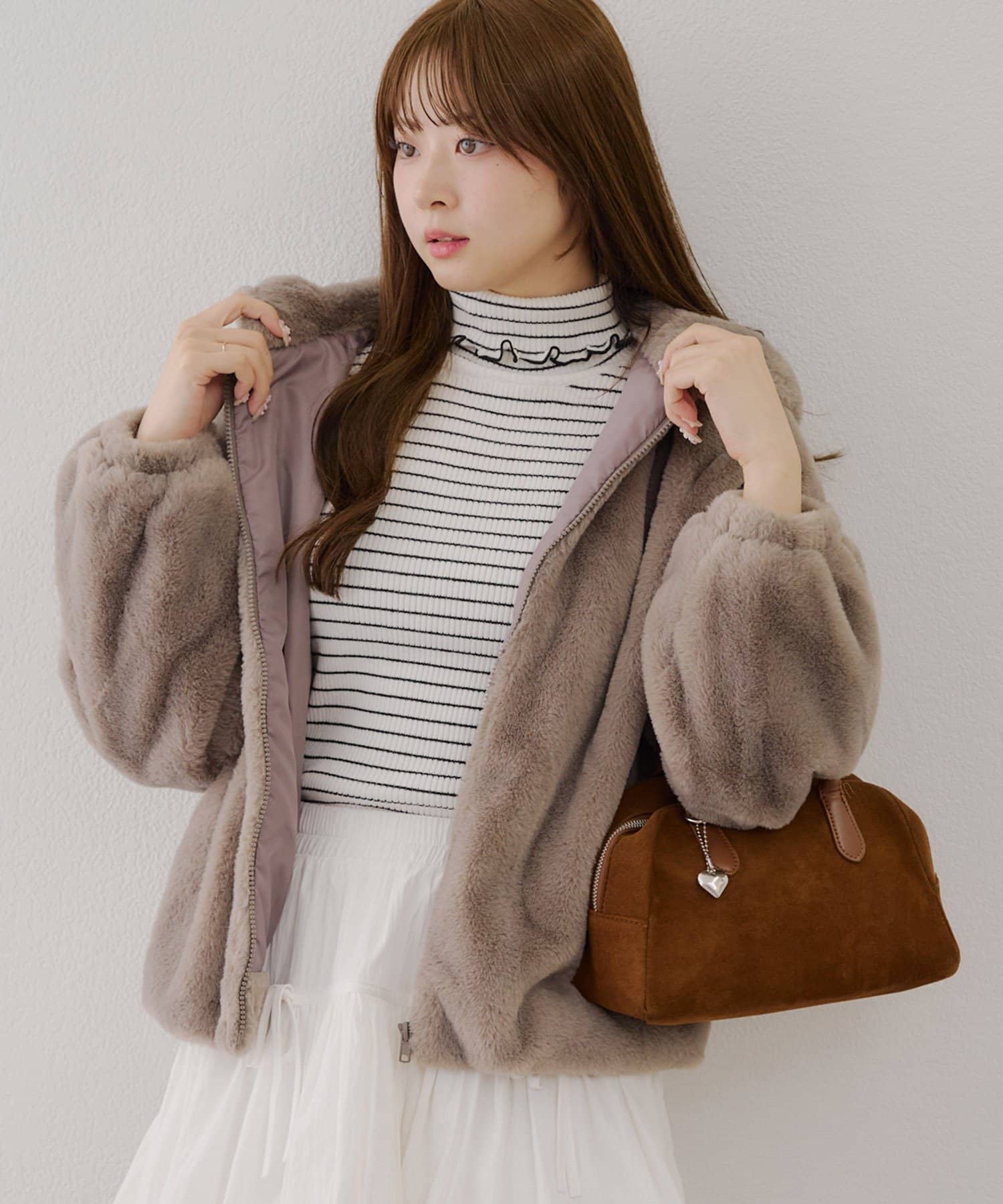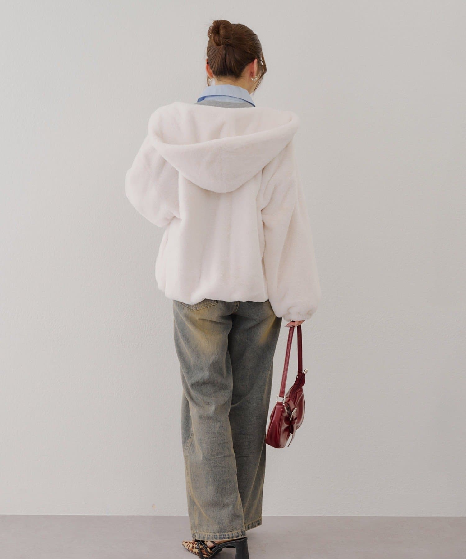 ・寒い時も可愛く防寒♪フード付きファーブルゾン