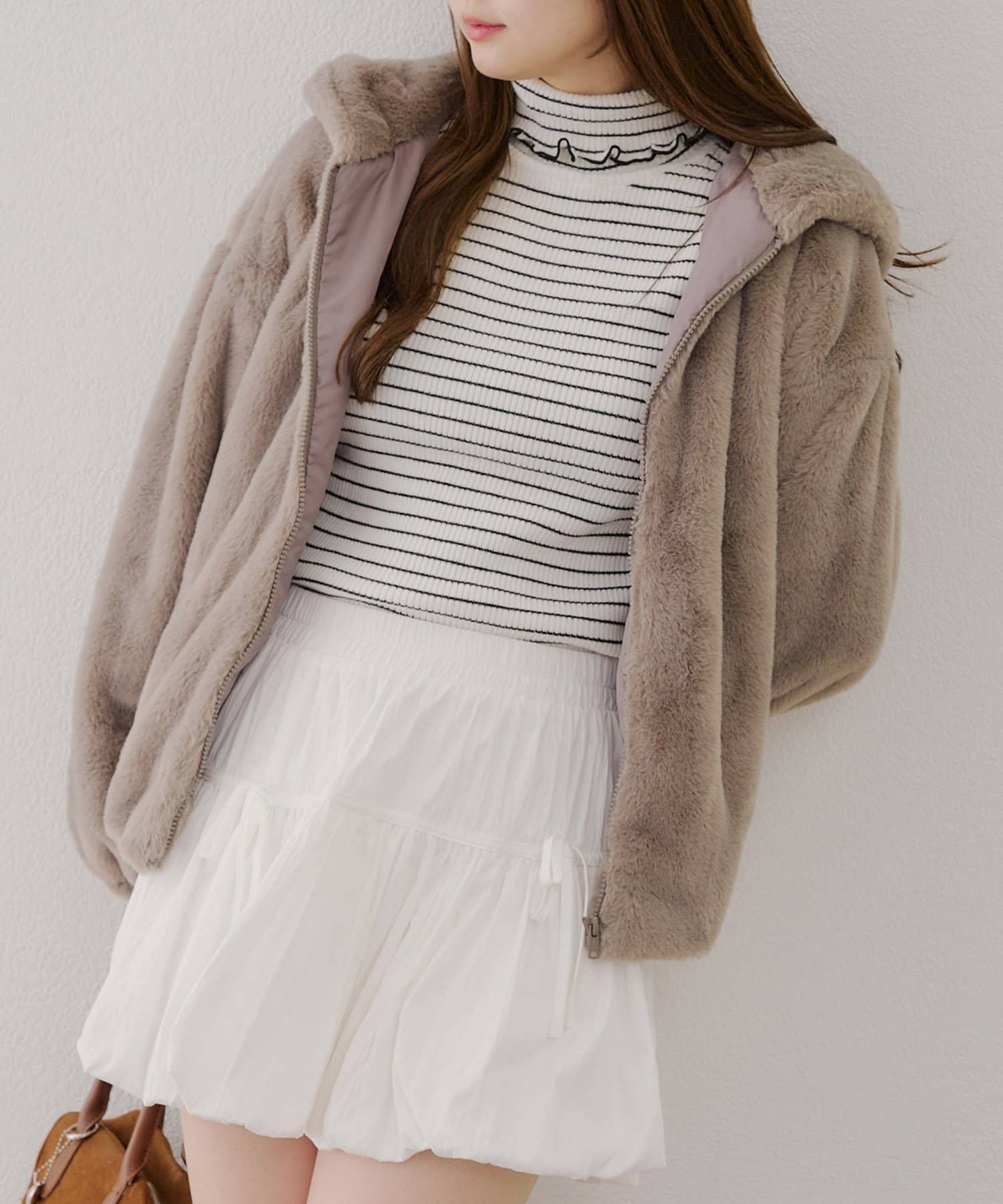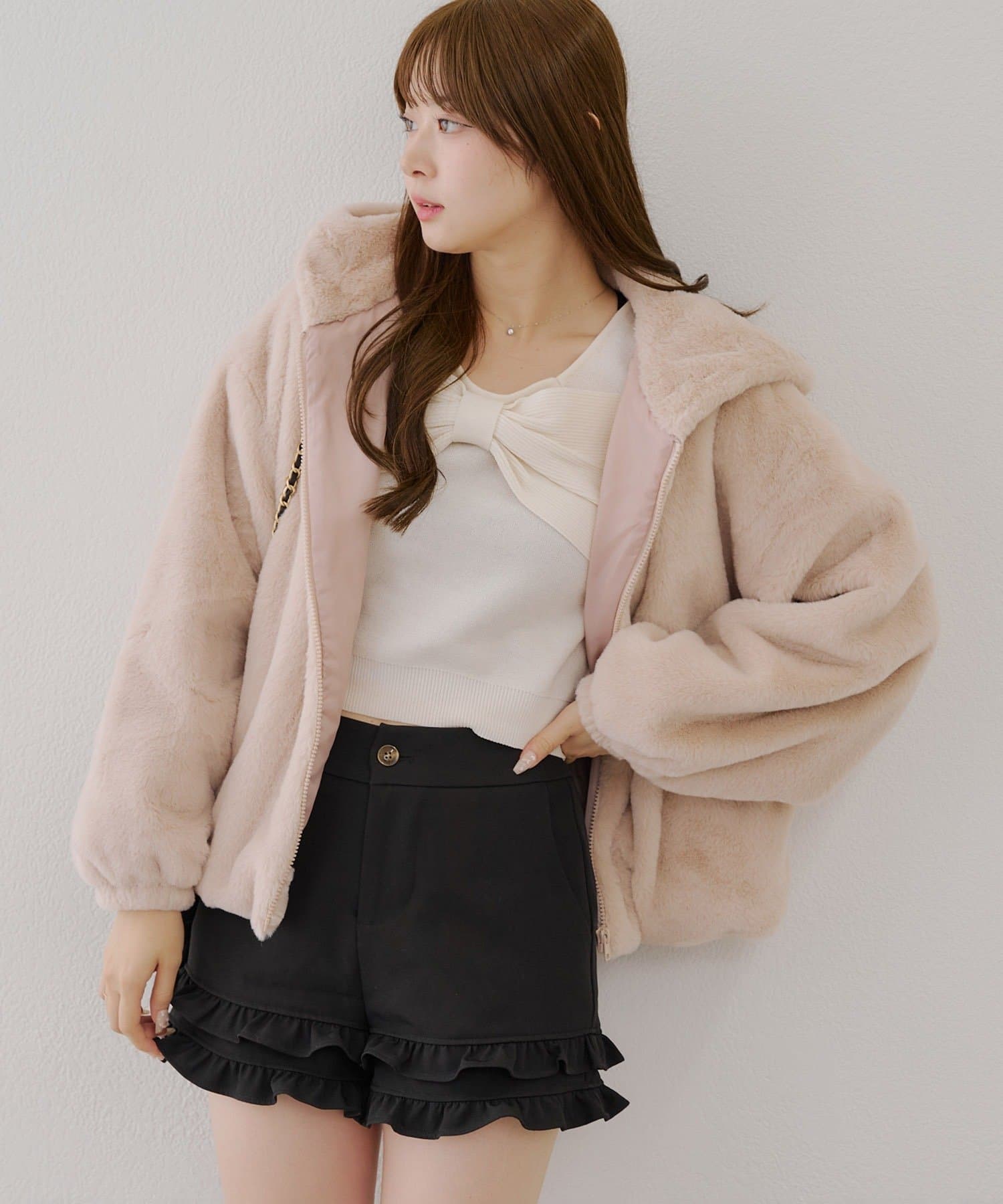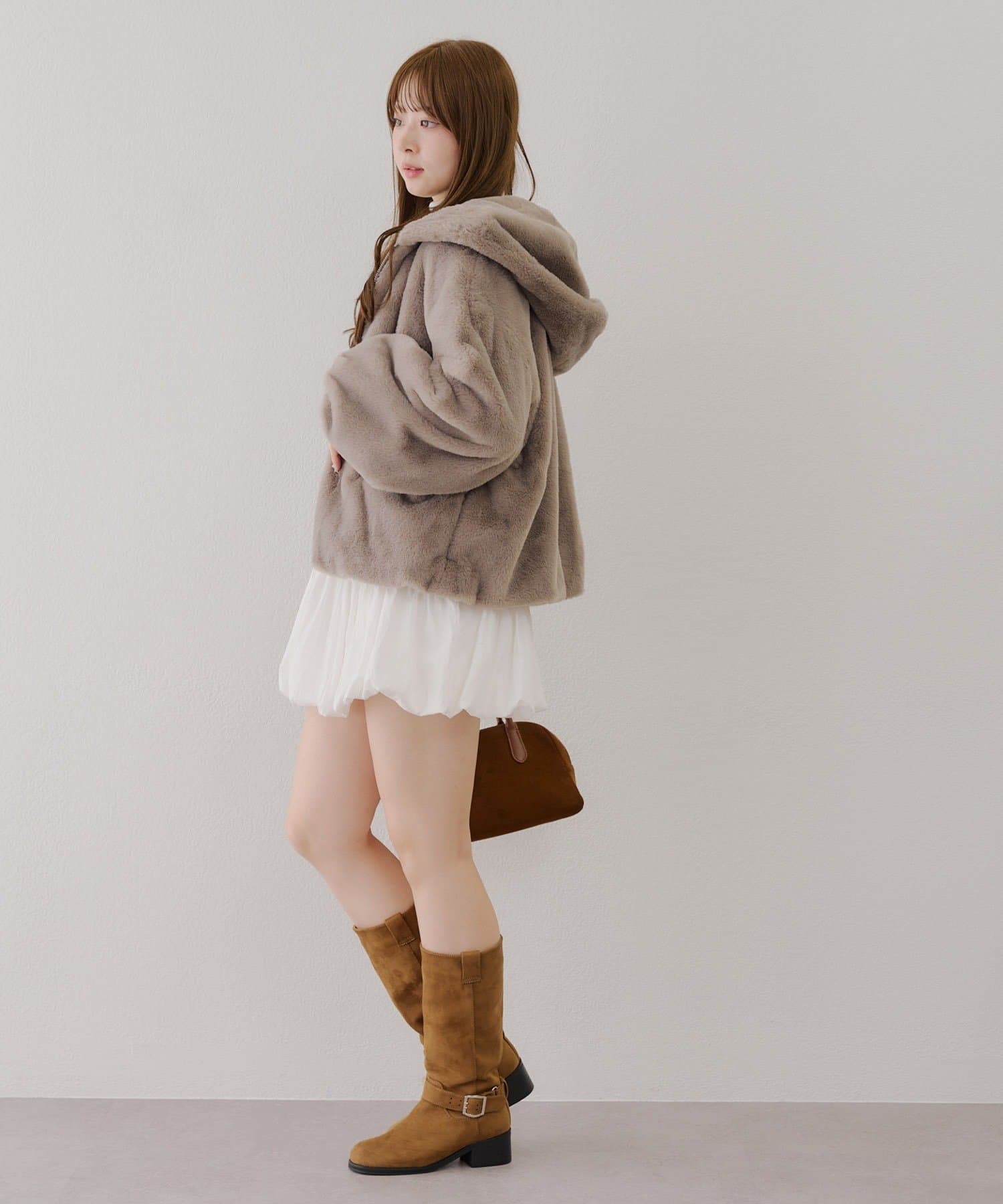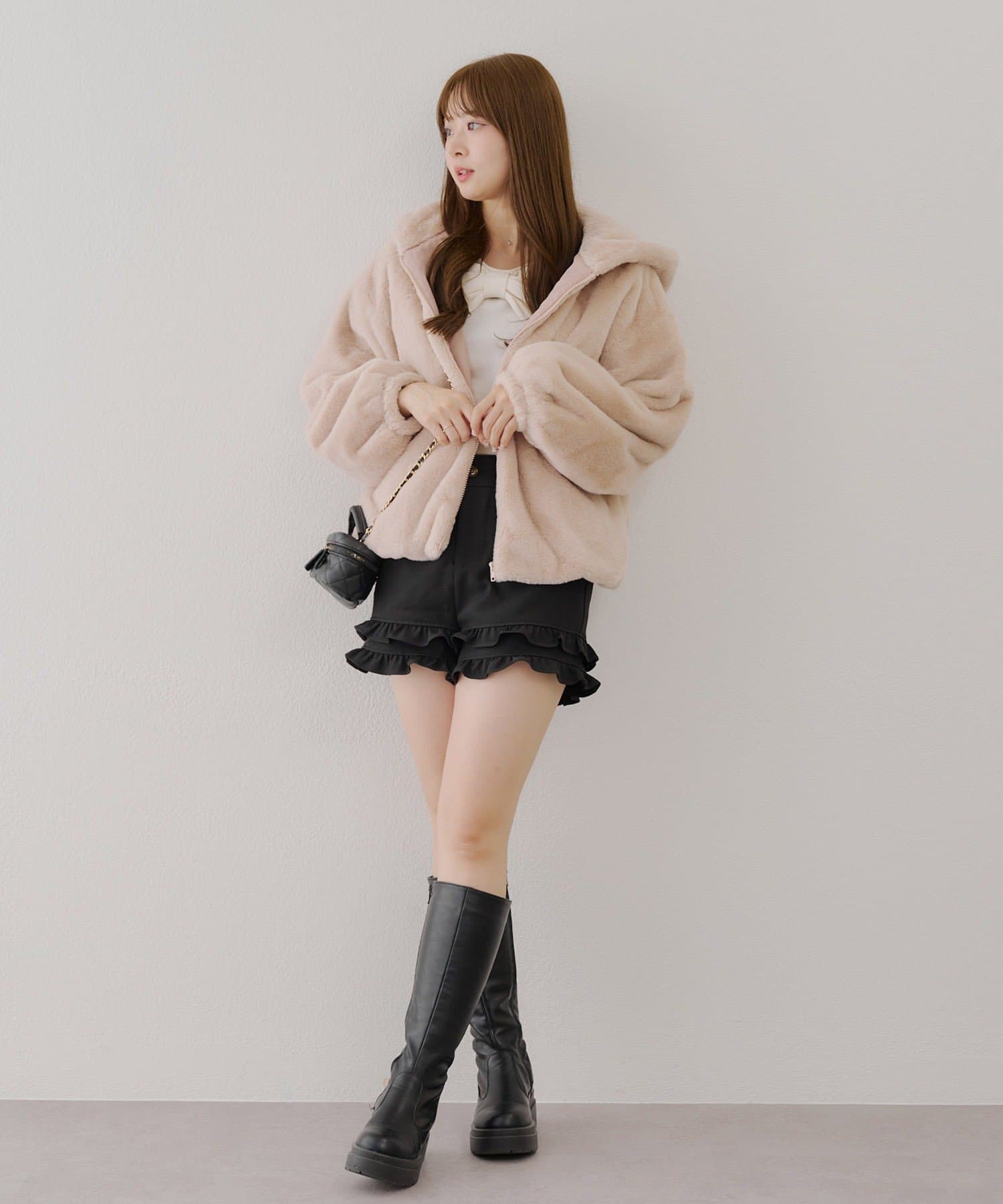 ・寒い時も可愛く防寒♪フード付きファーブルゾン