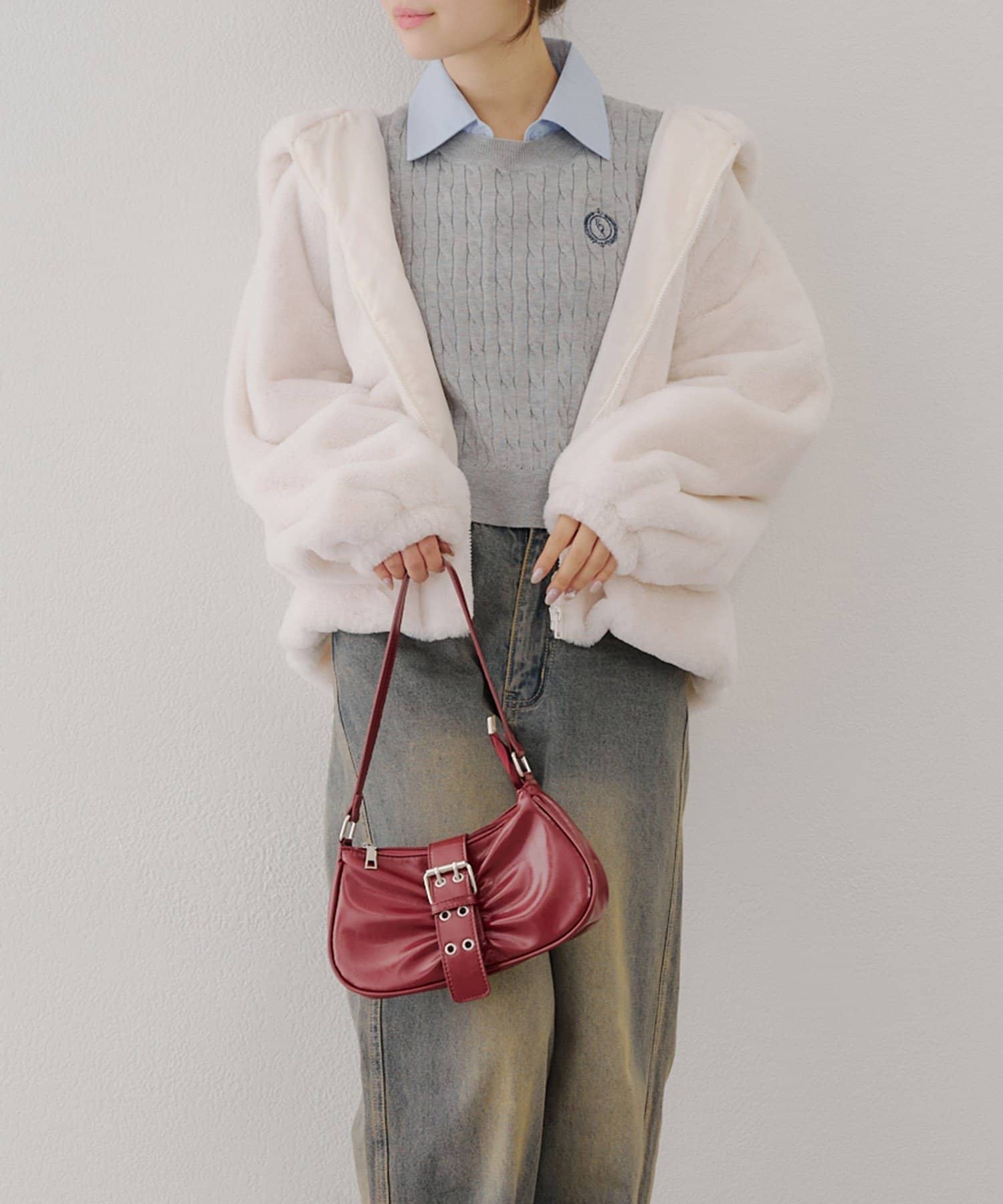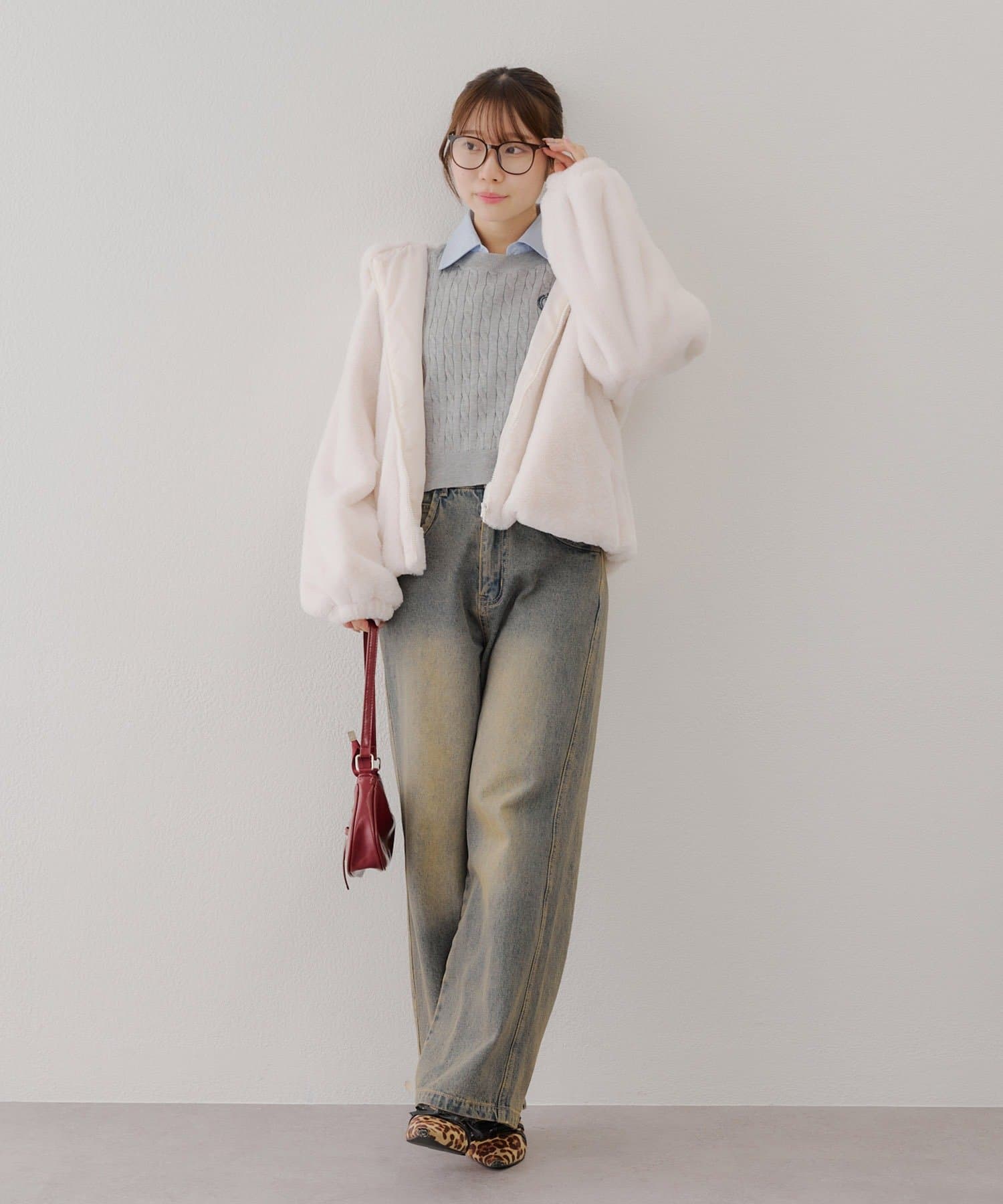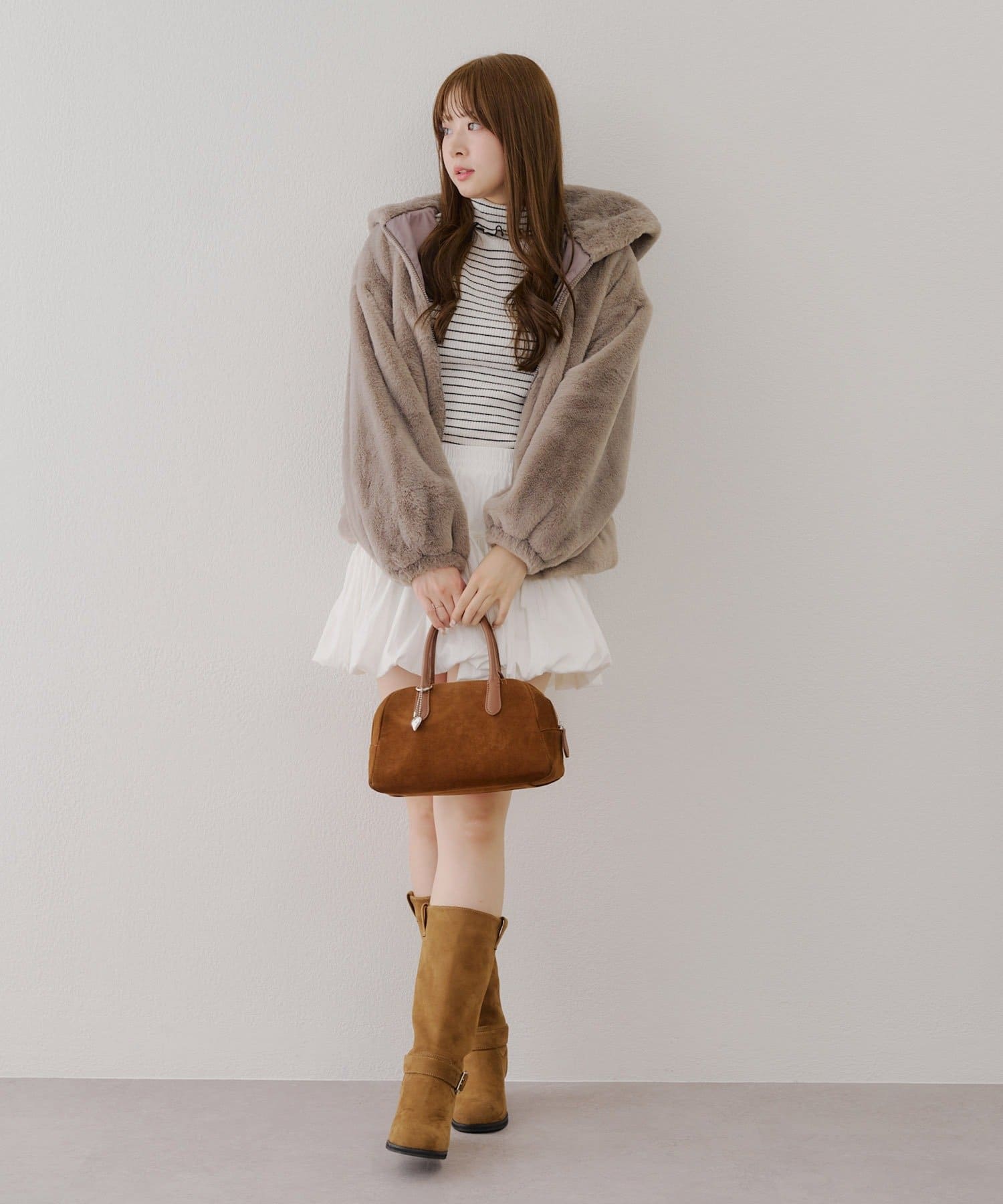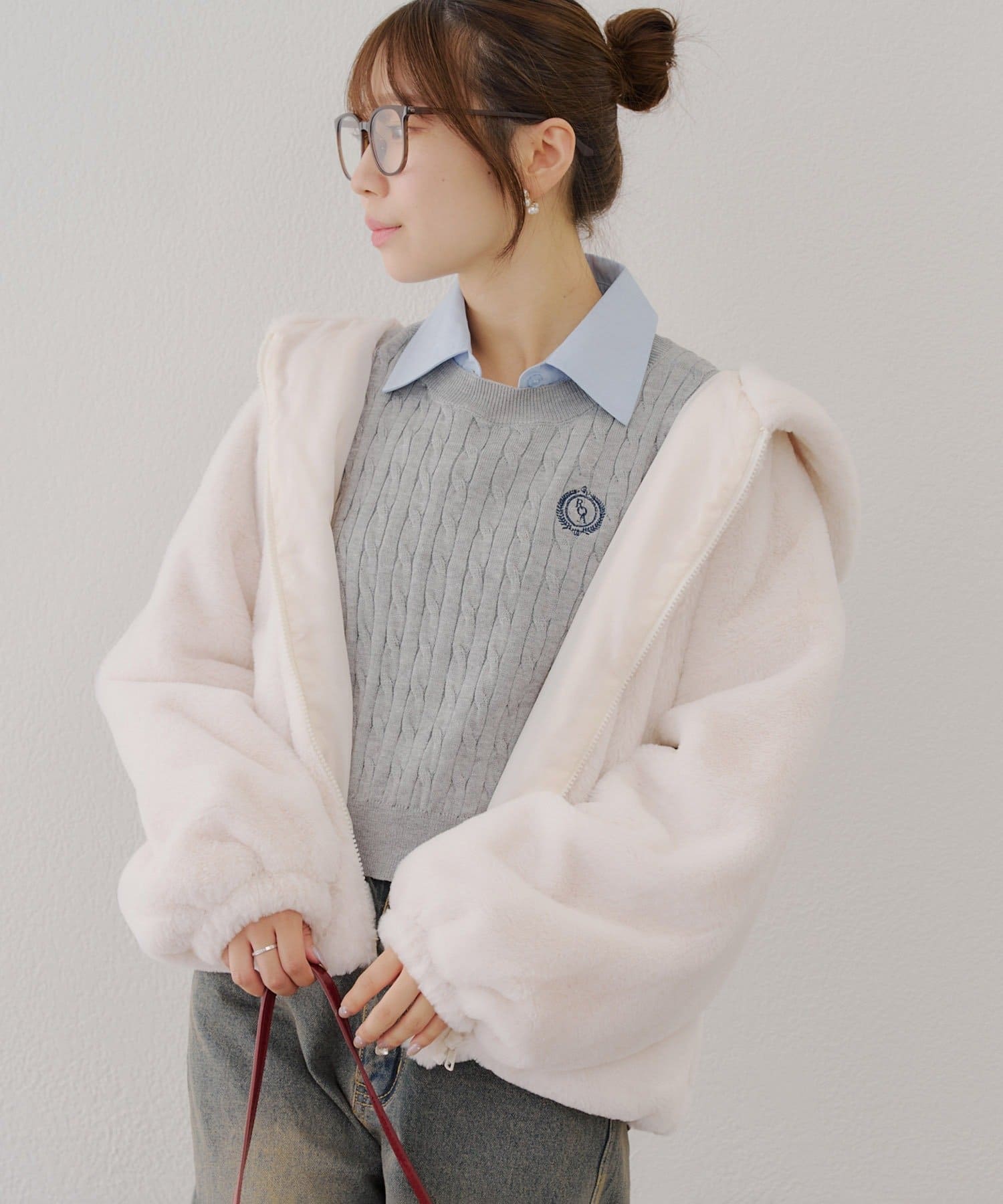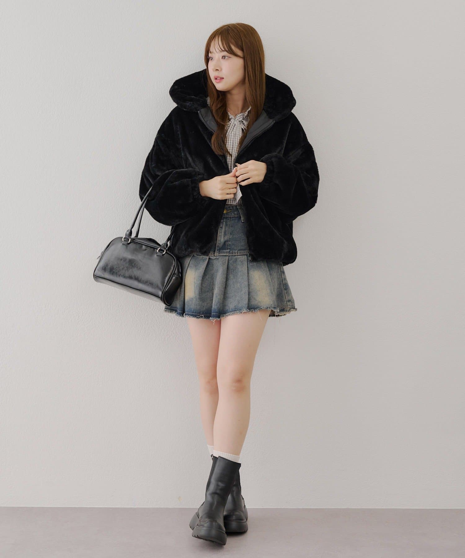 ・寒い時も可愛く防寒♪フード付きファーブルゾン