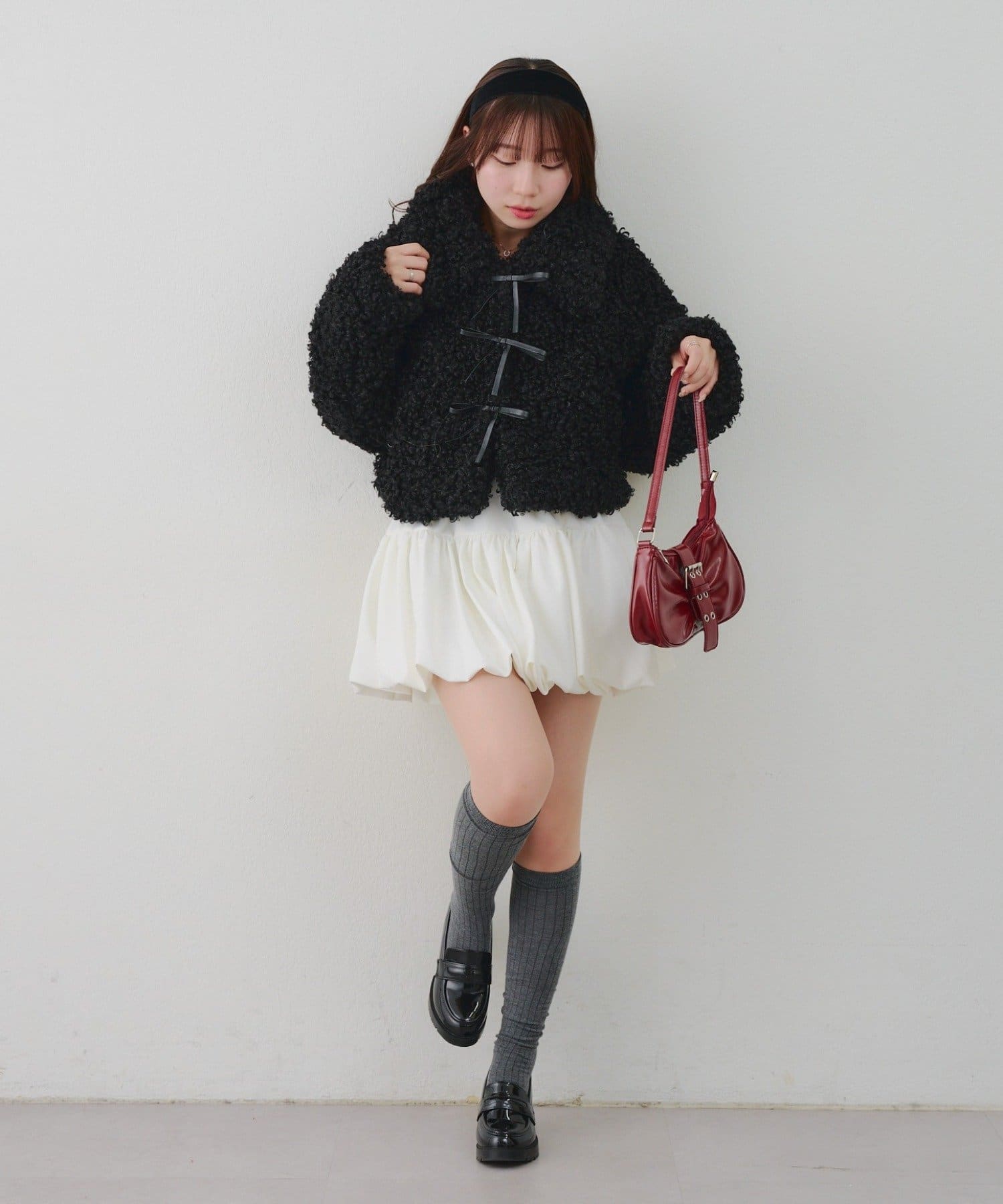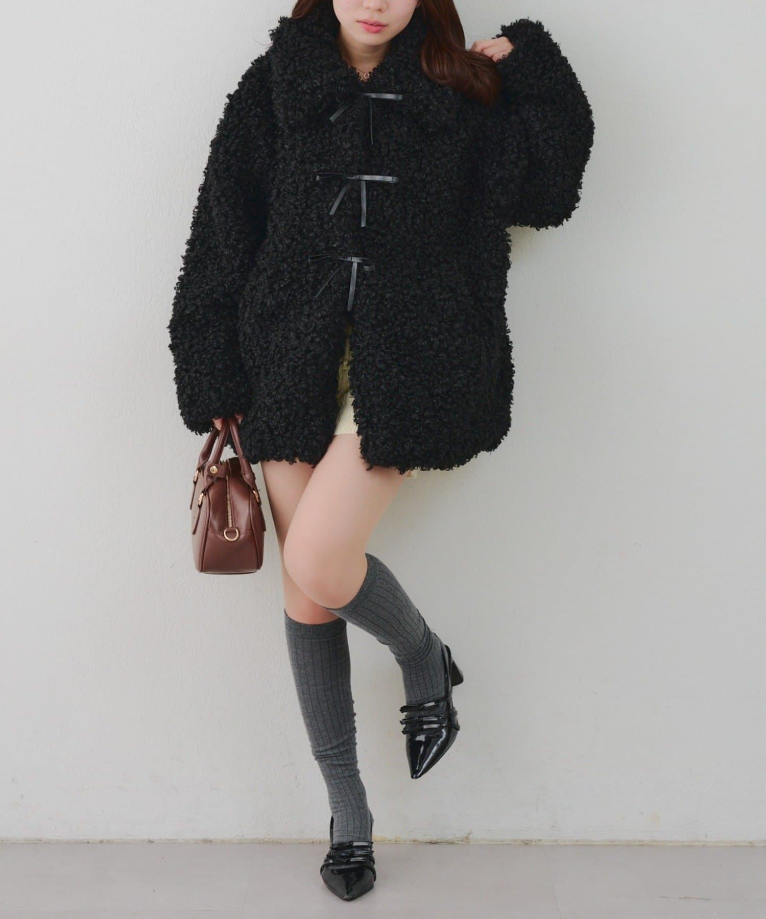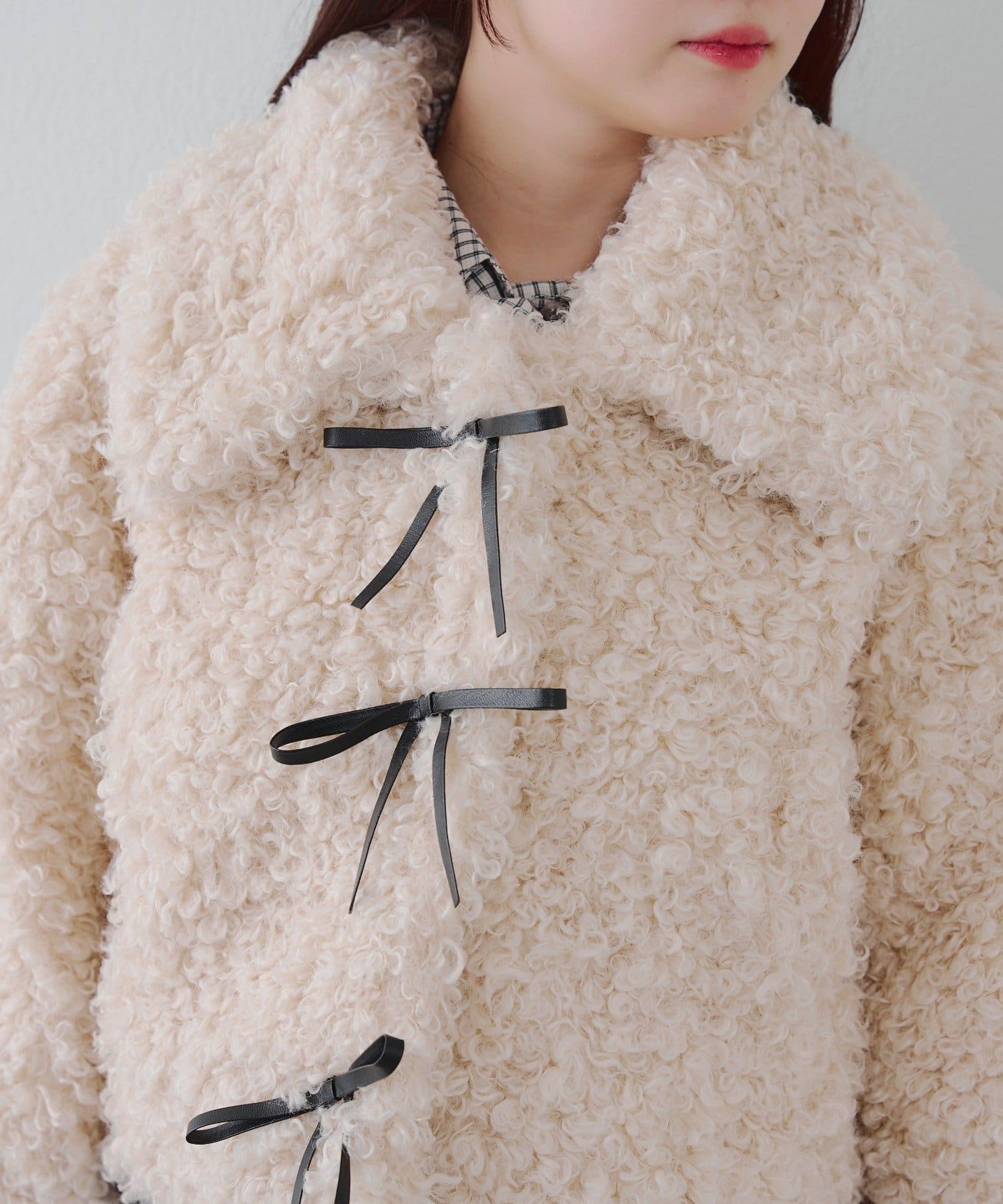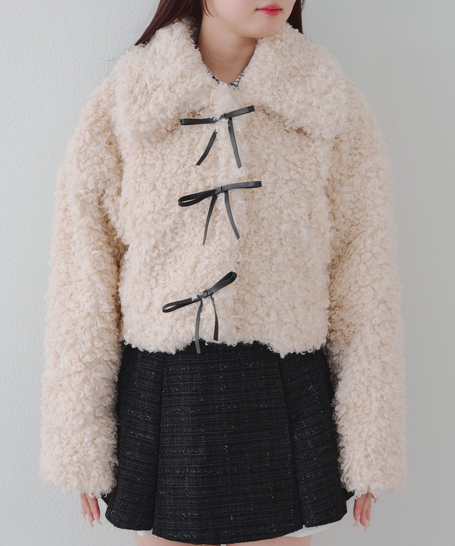 シーズンムードを高めてくれるリボン付プードルジャケットが丈違いの2サイズ展開。