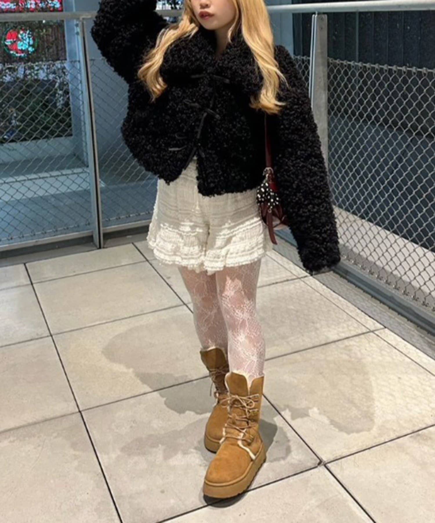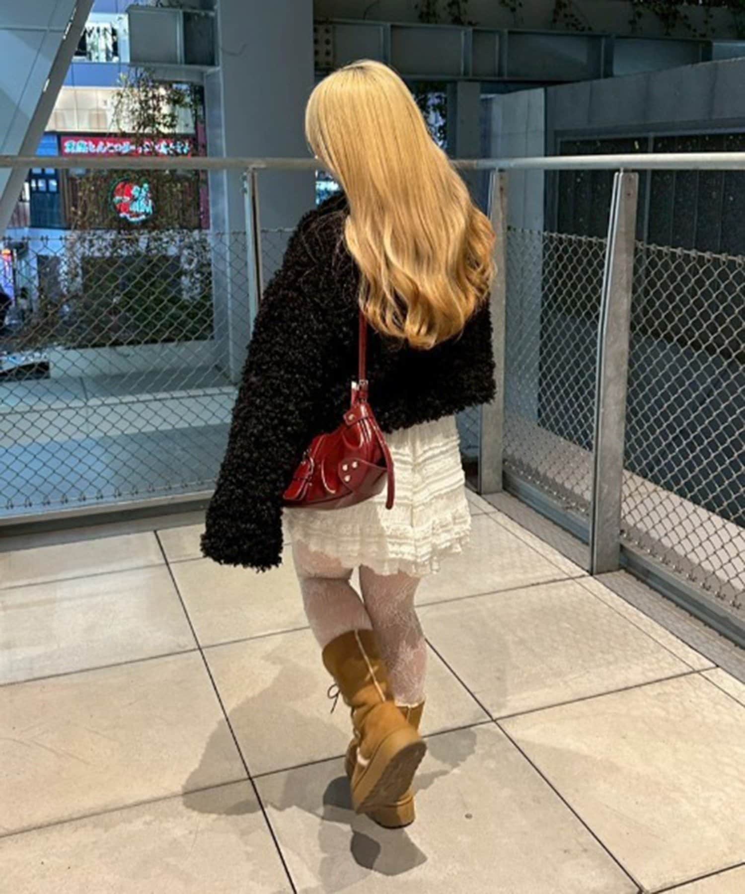 ミニボトム×ロングブーツと相性がいいのでクリスマスなど冬のイベントで大活躍しそうです〇