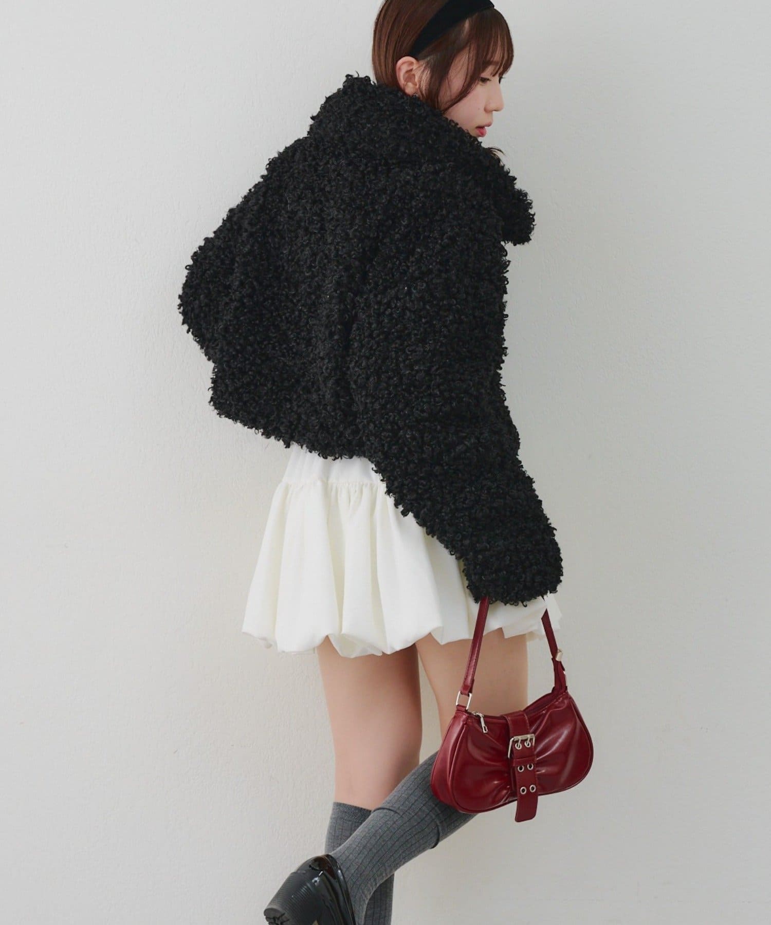・ミドルサイズでは、ミニボトムとの相性が◎ブーツと合わせて大人ガーリーコーデに。