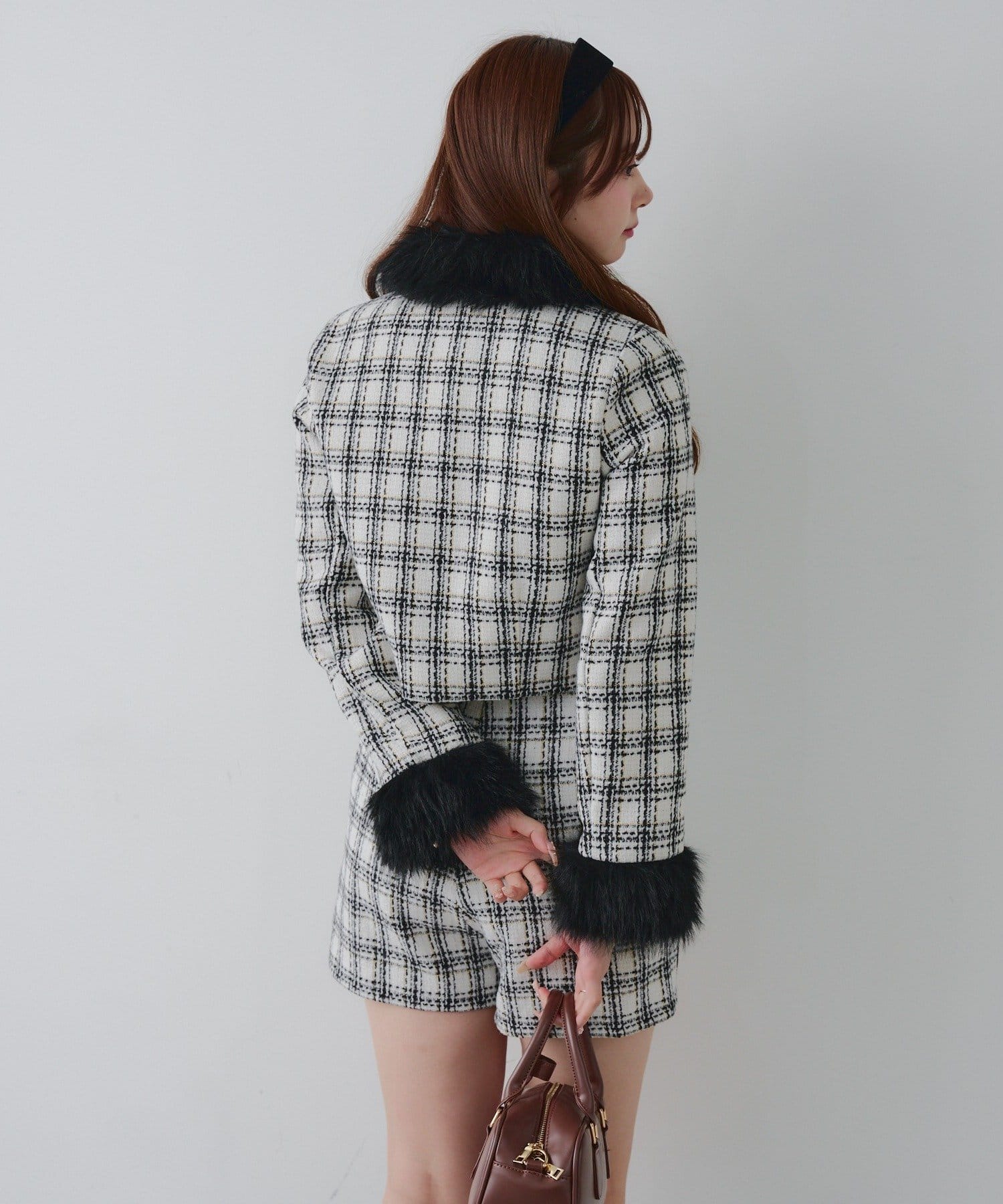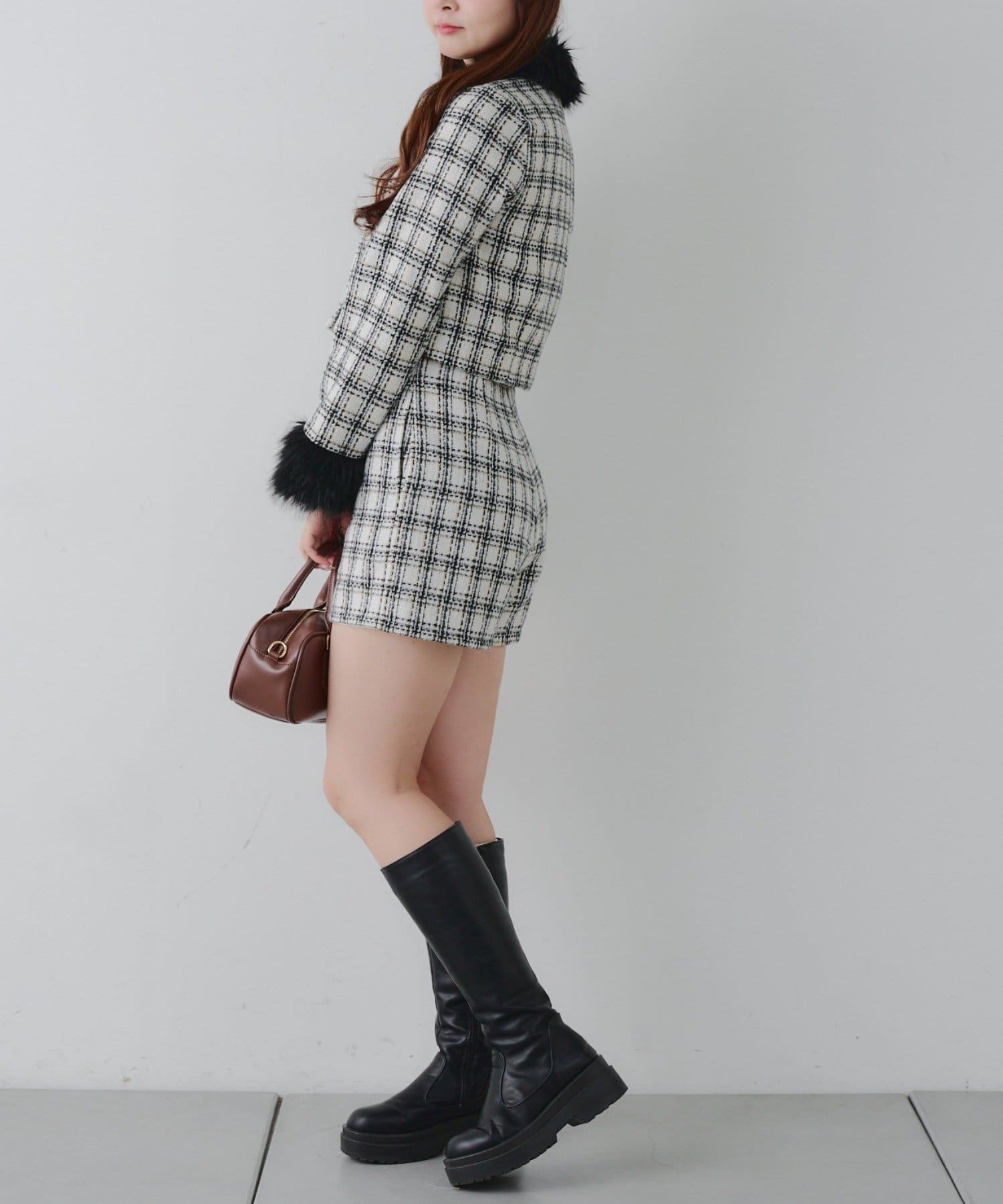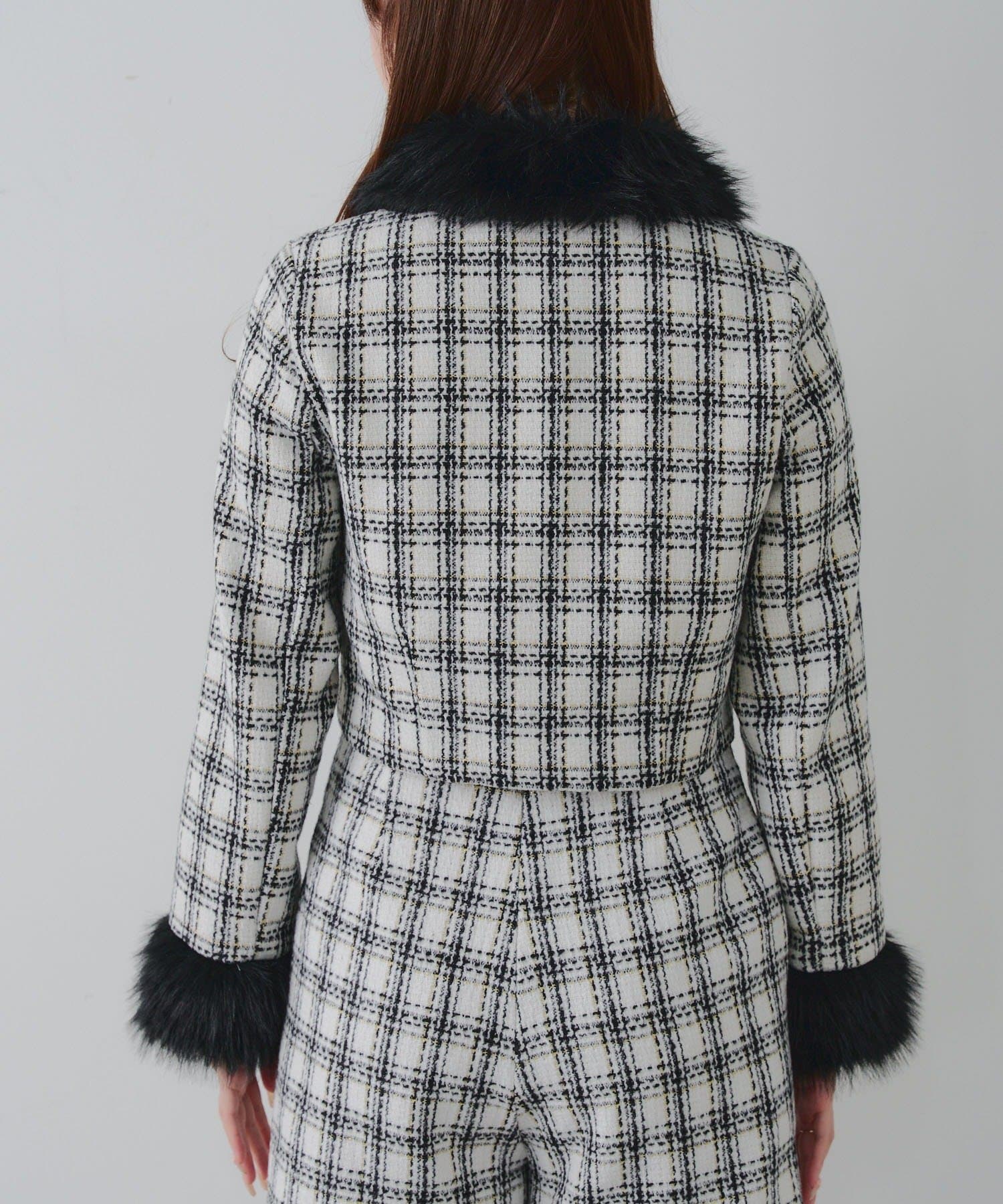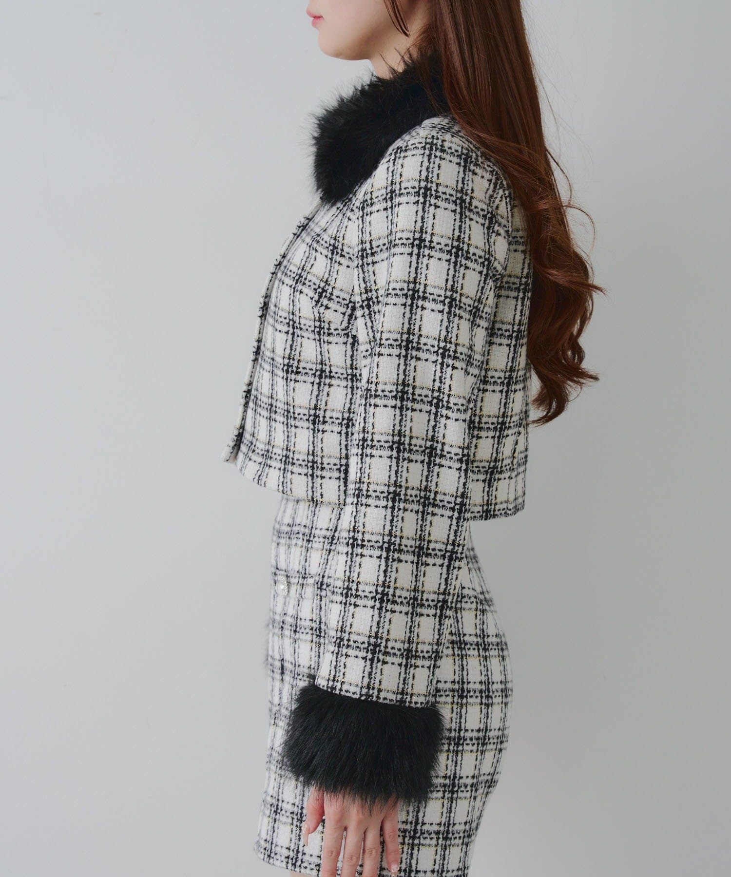 ・スタイルアップ効果抜群のショート丈ツイードジャケット