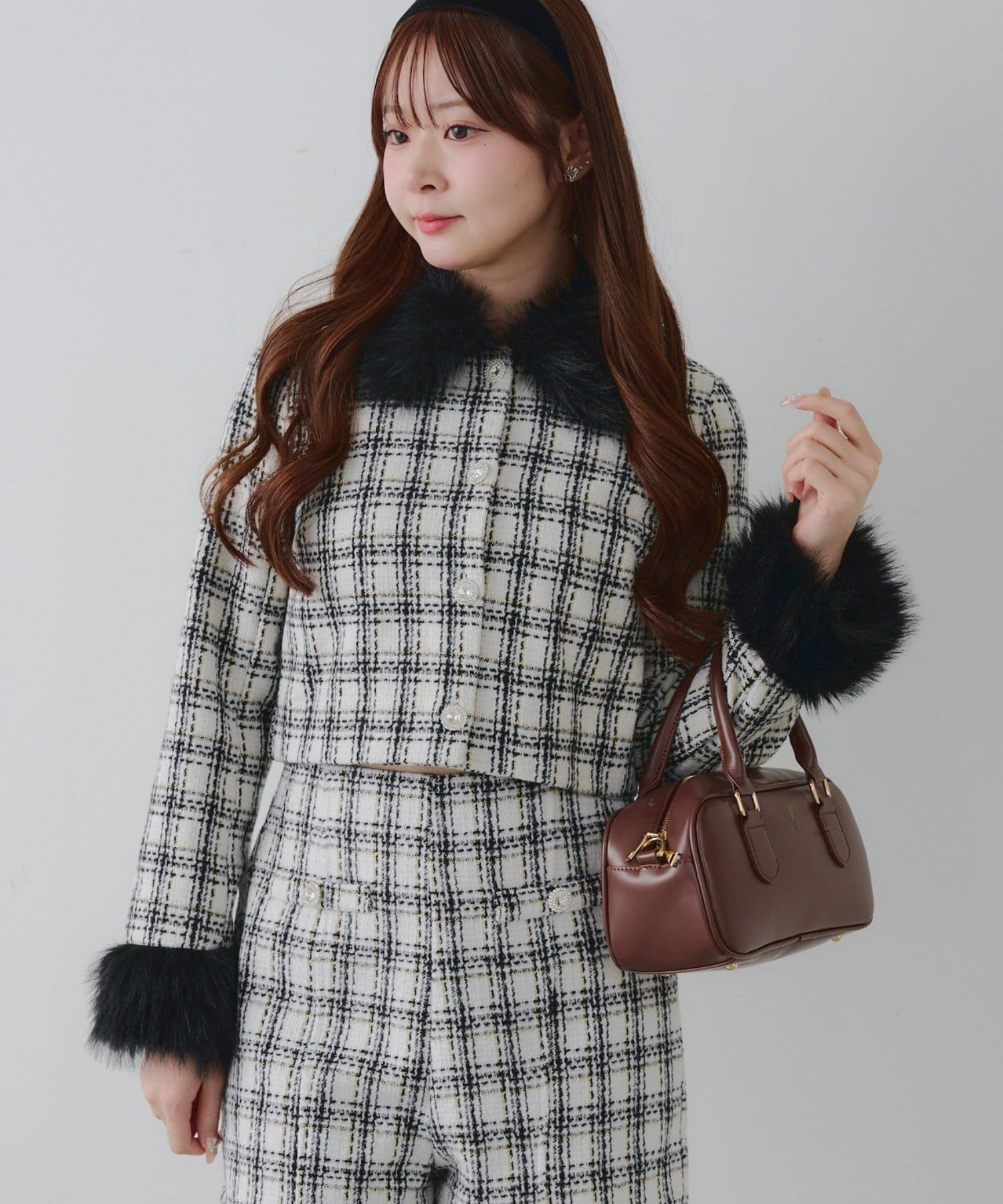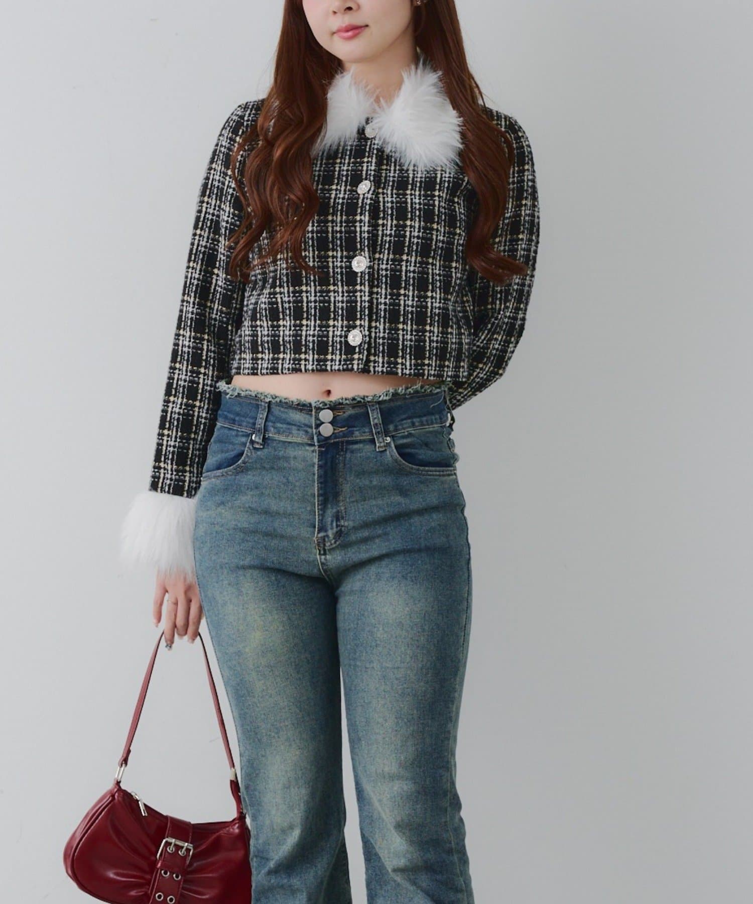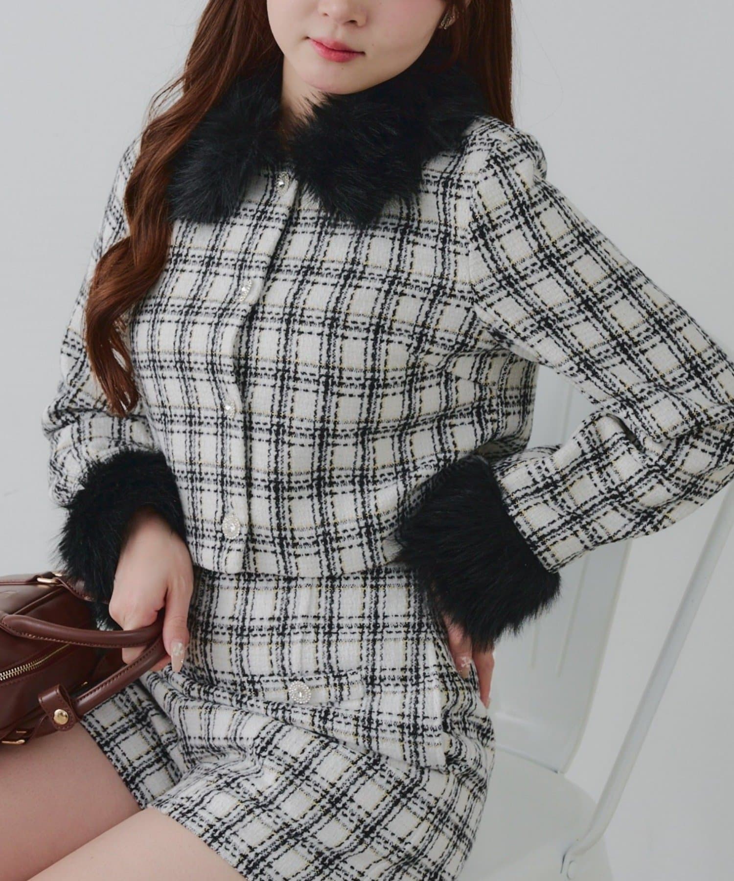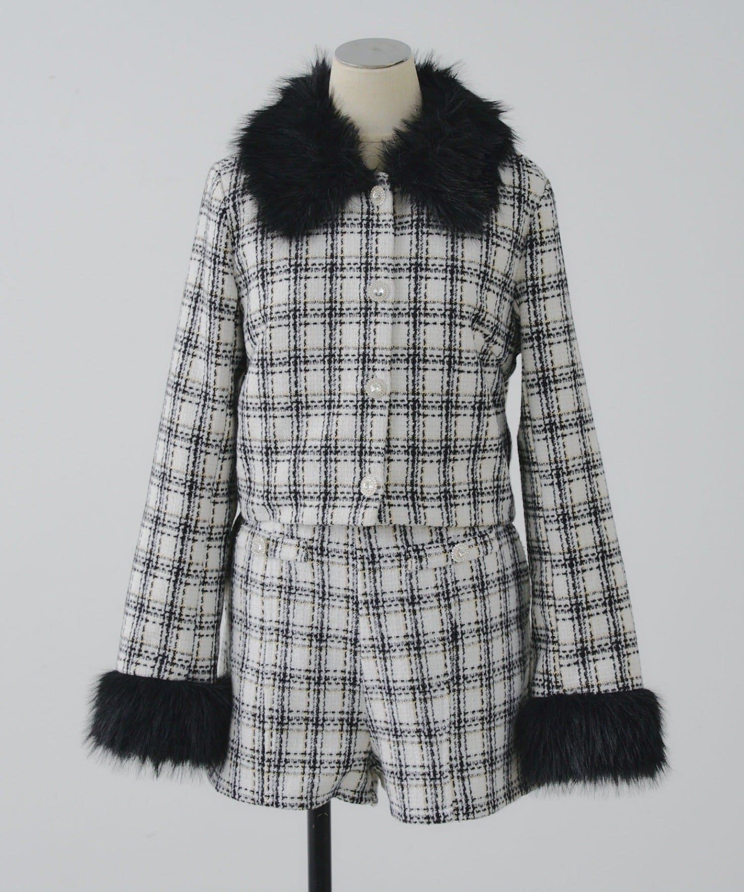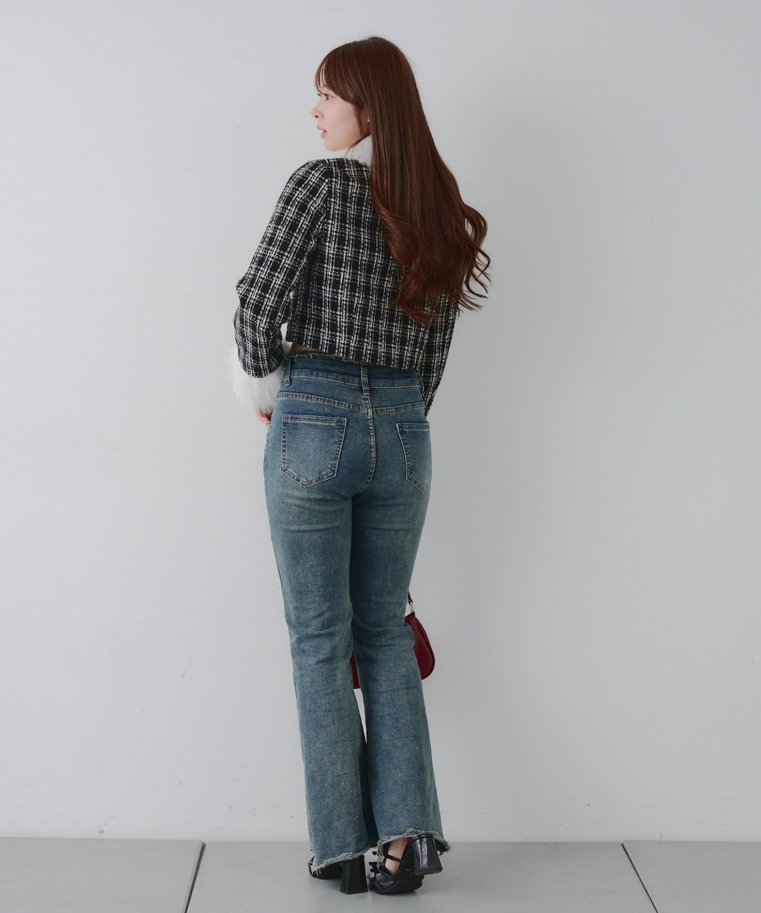 ・スタイルアップ効果抜群のショート丈ツイードジャケット
