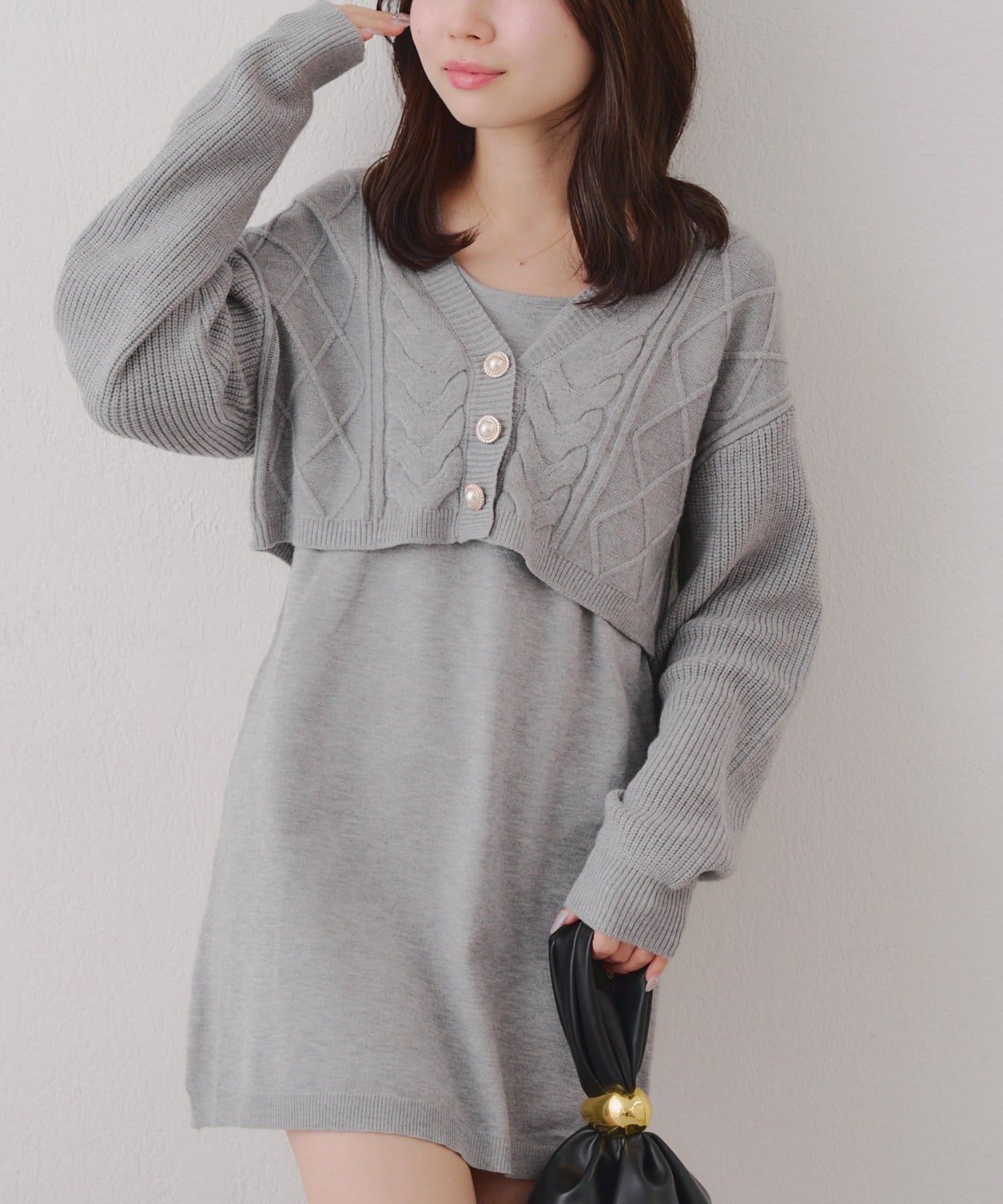 ・ケーブル編みのカーディガンとミニニットワンピースのセットアイテムです。