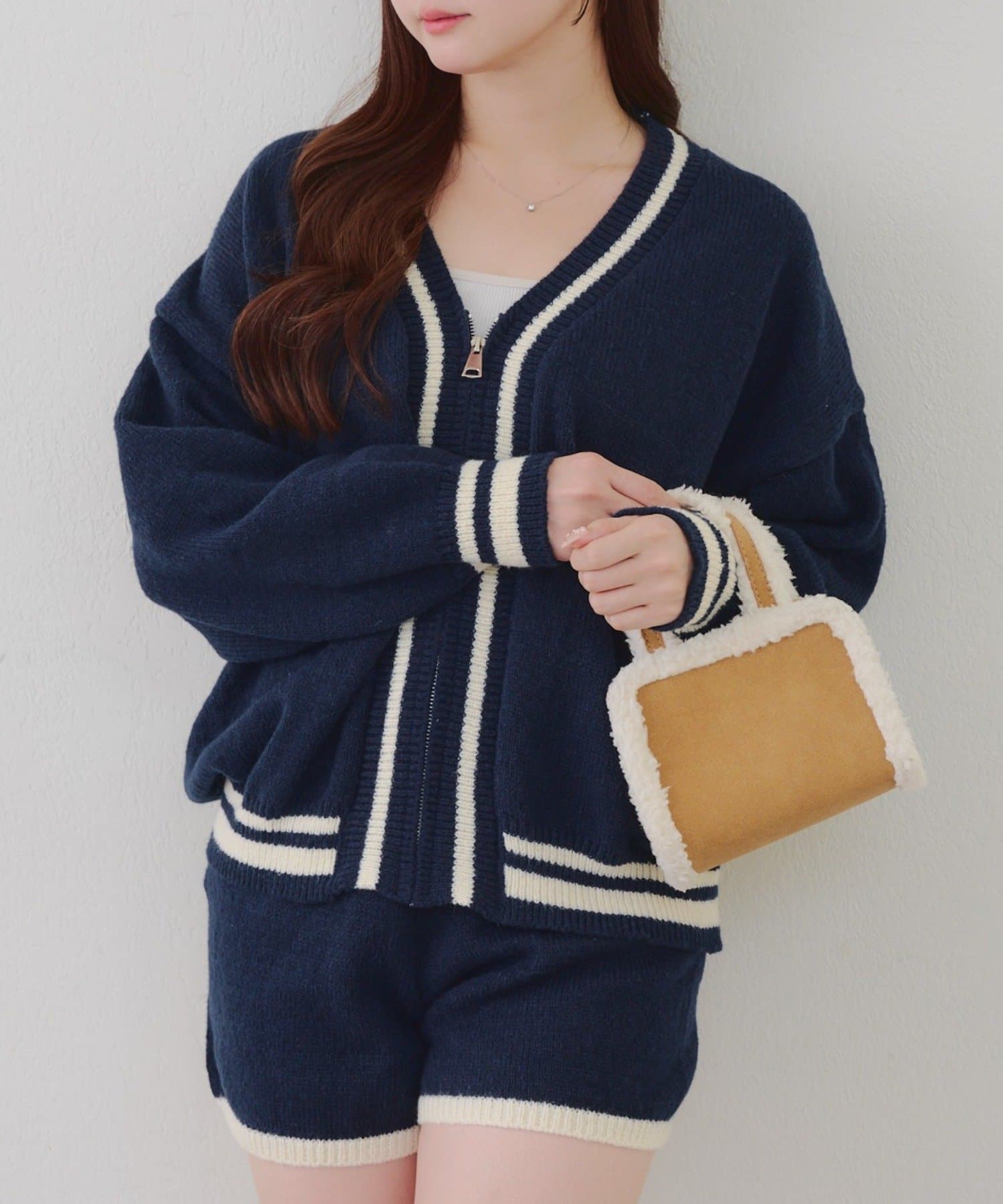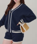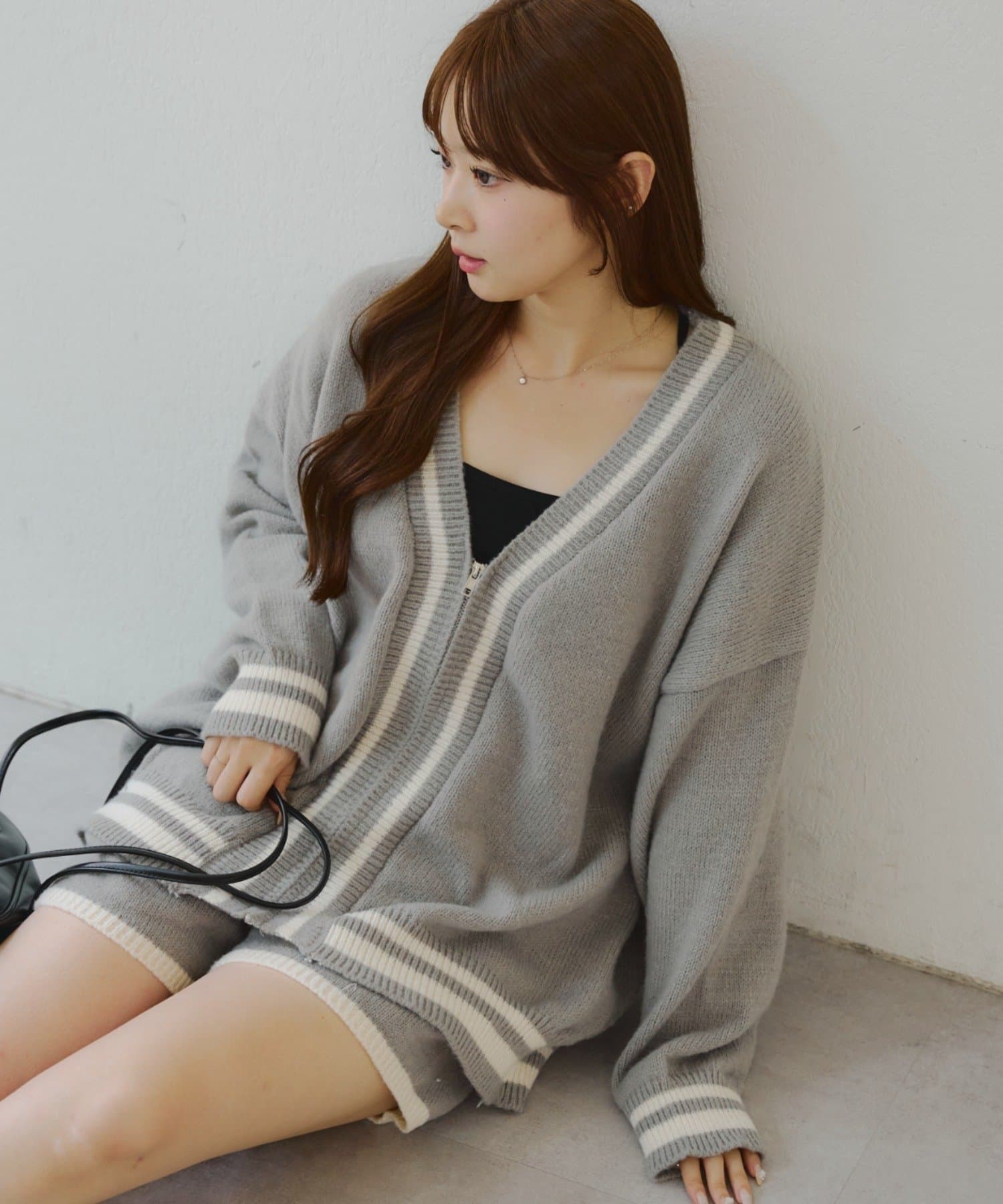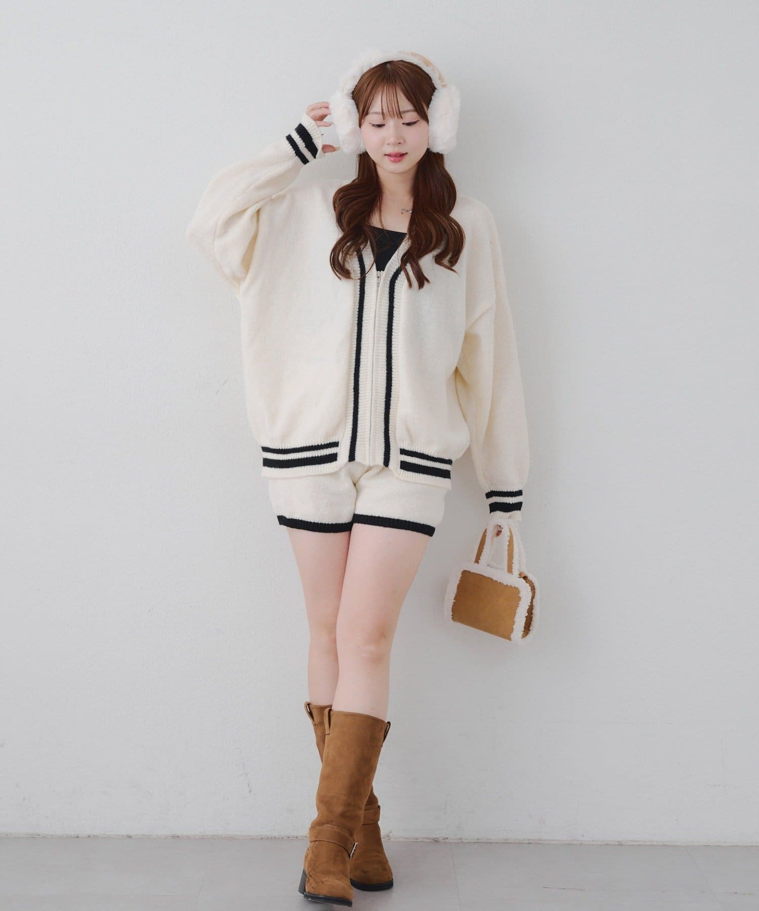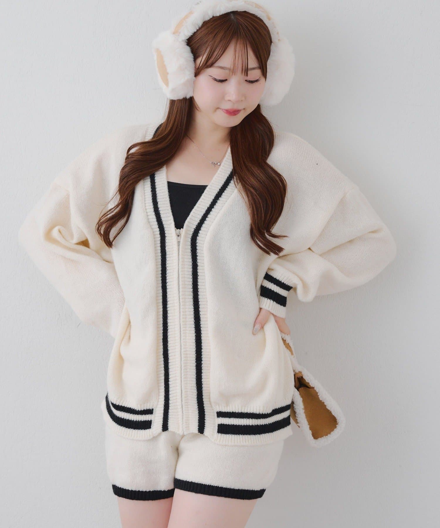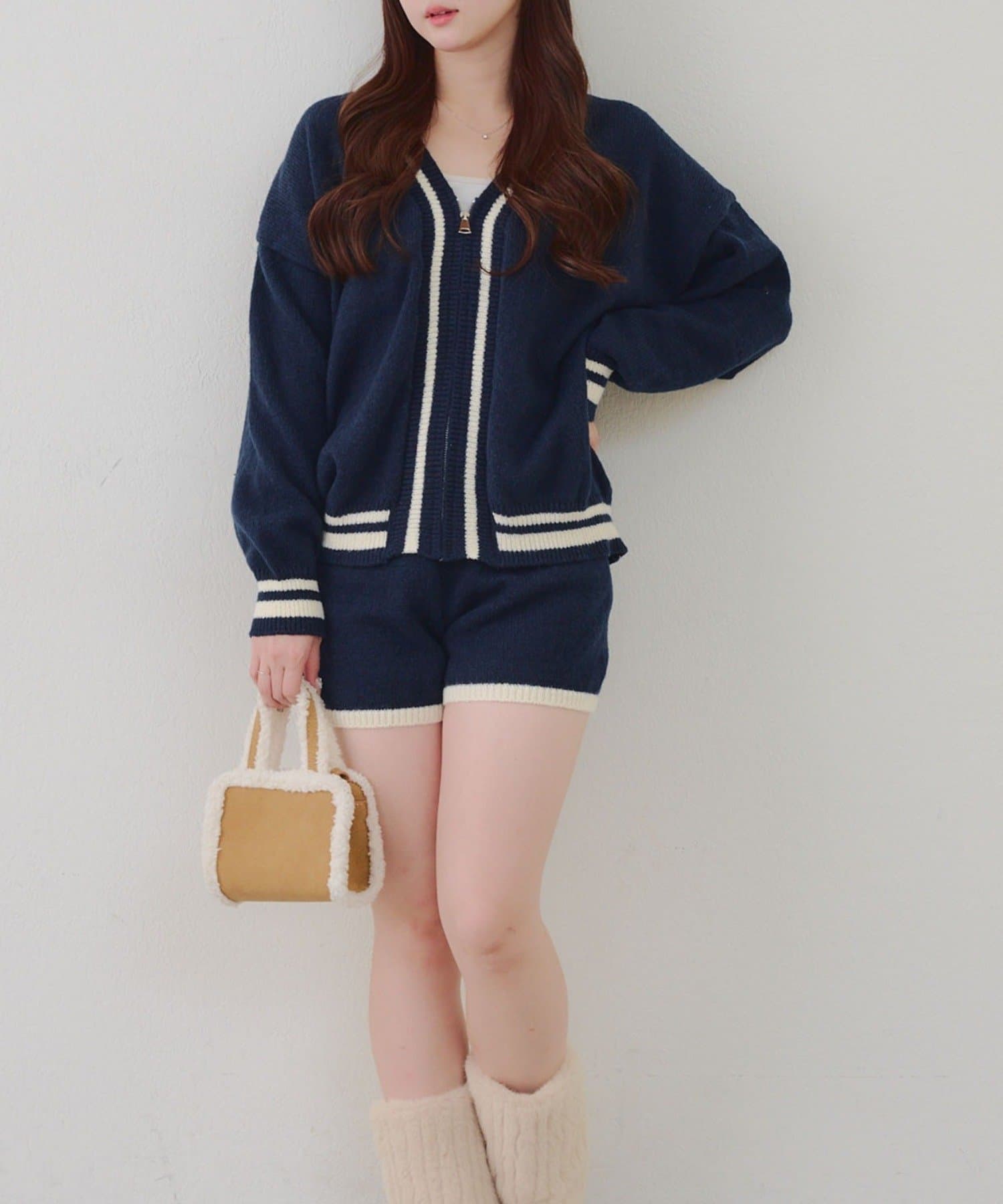 ・ジップデザインが洗練された印象のカーディガンとショートパンツのセットアイテム