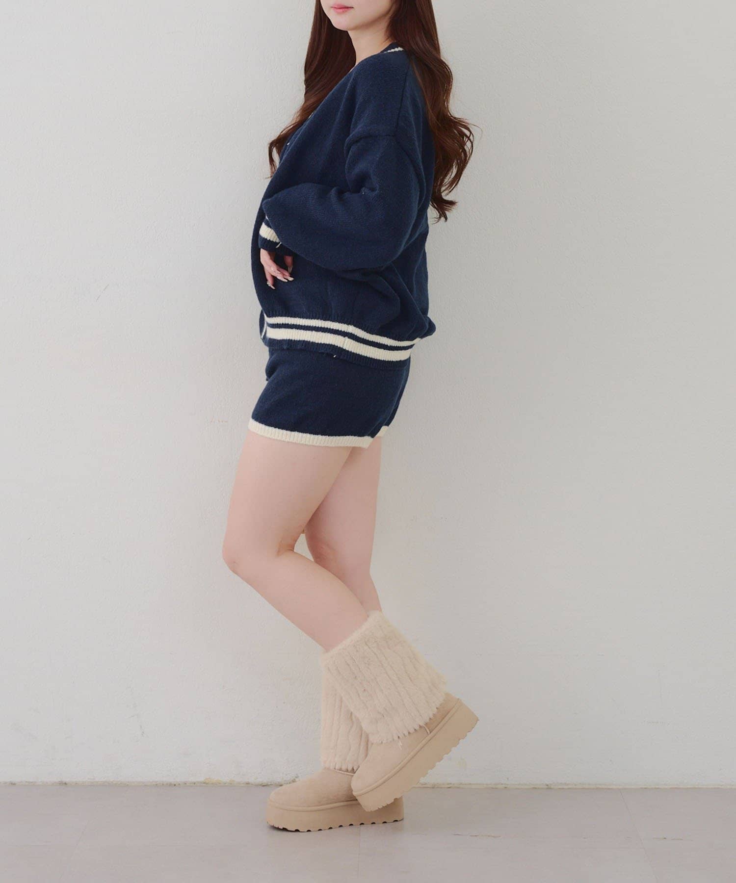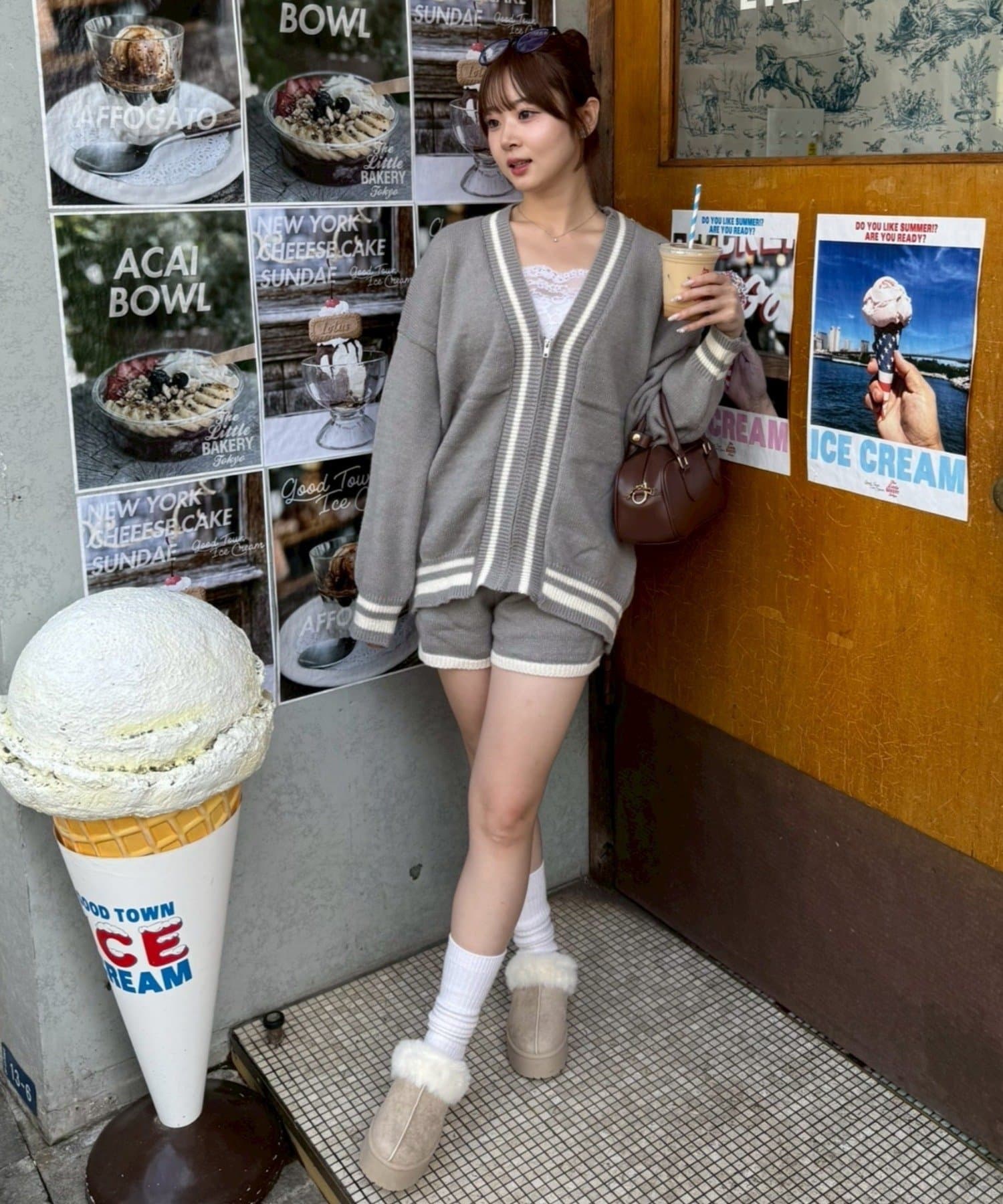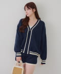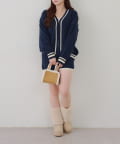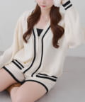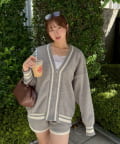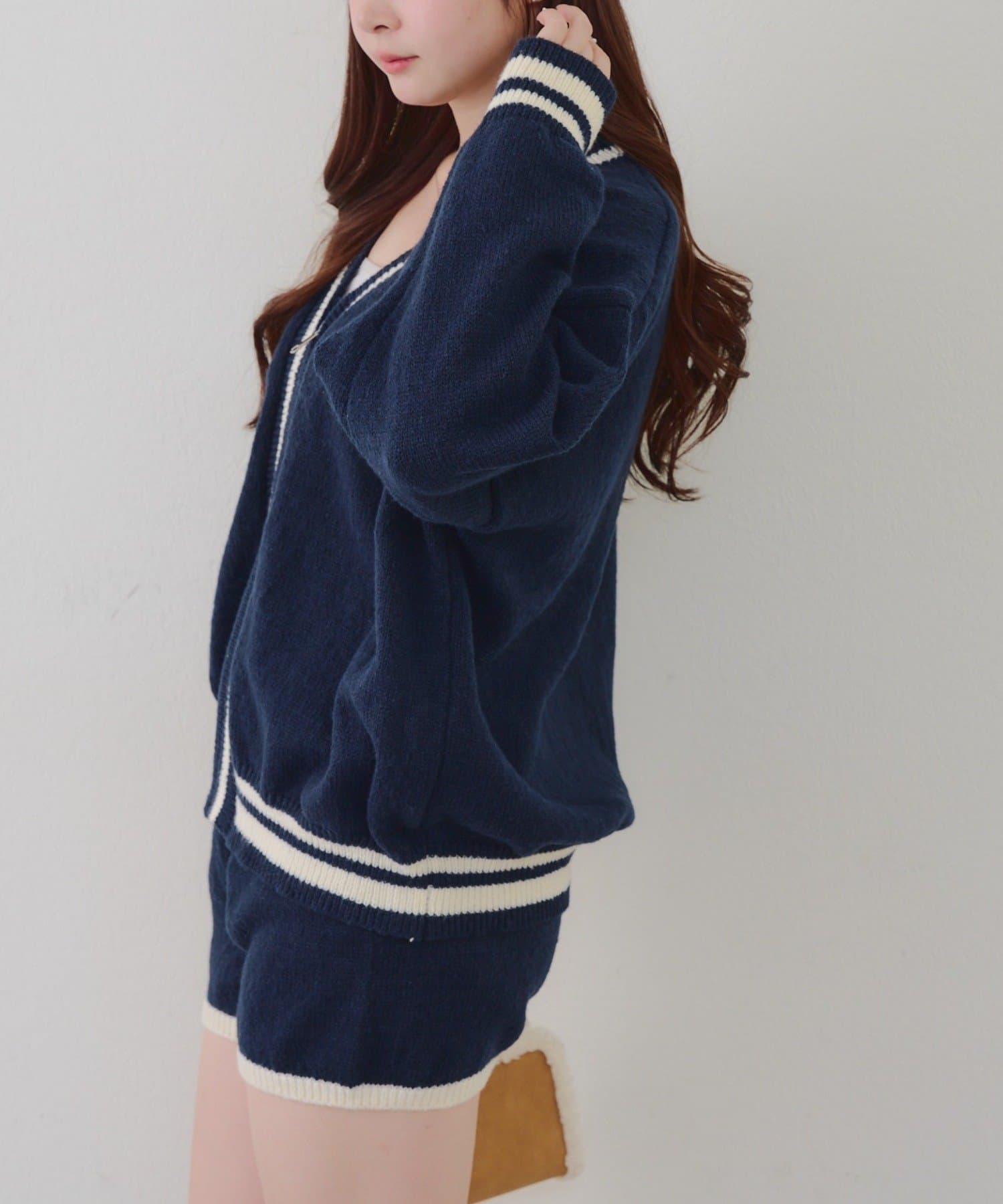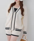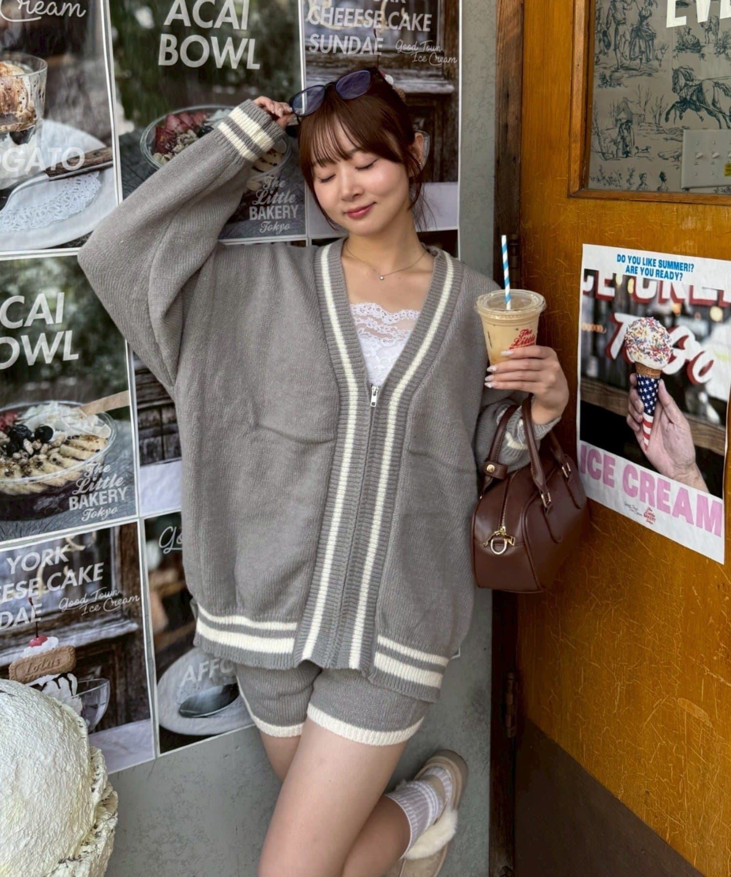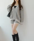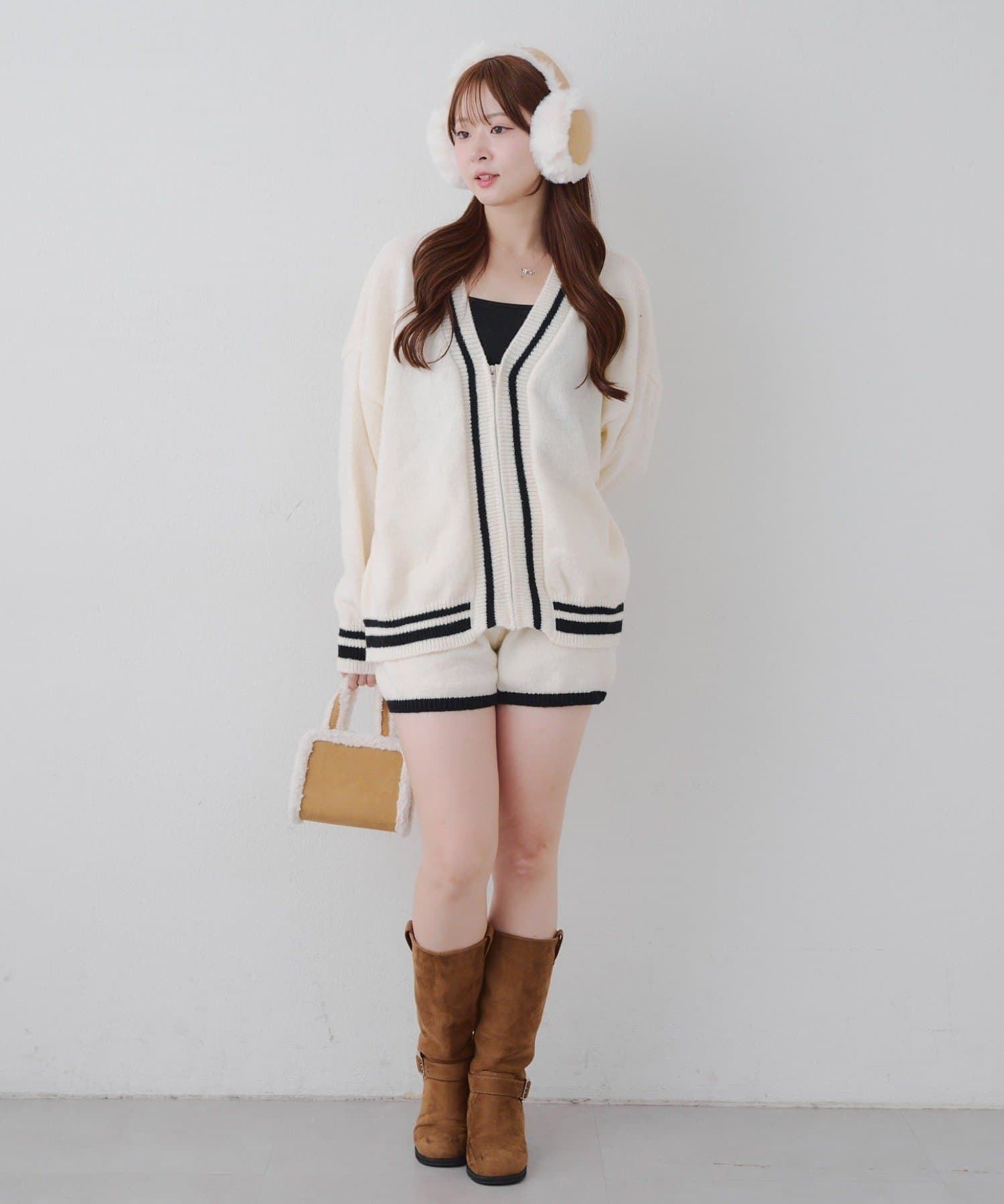 ・ジップデザインが洗練された印象のカーディガンとショートパンツのセットアイテム
