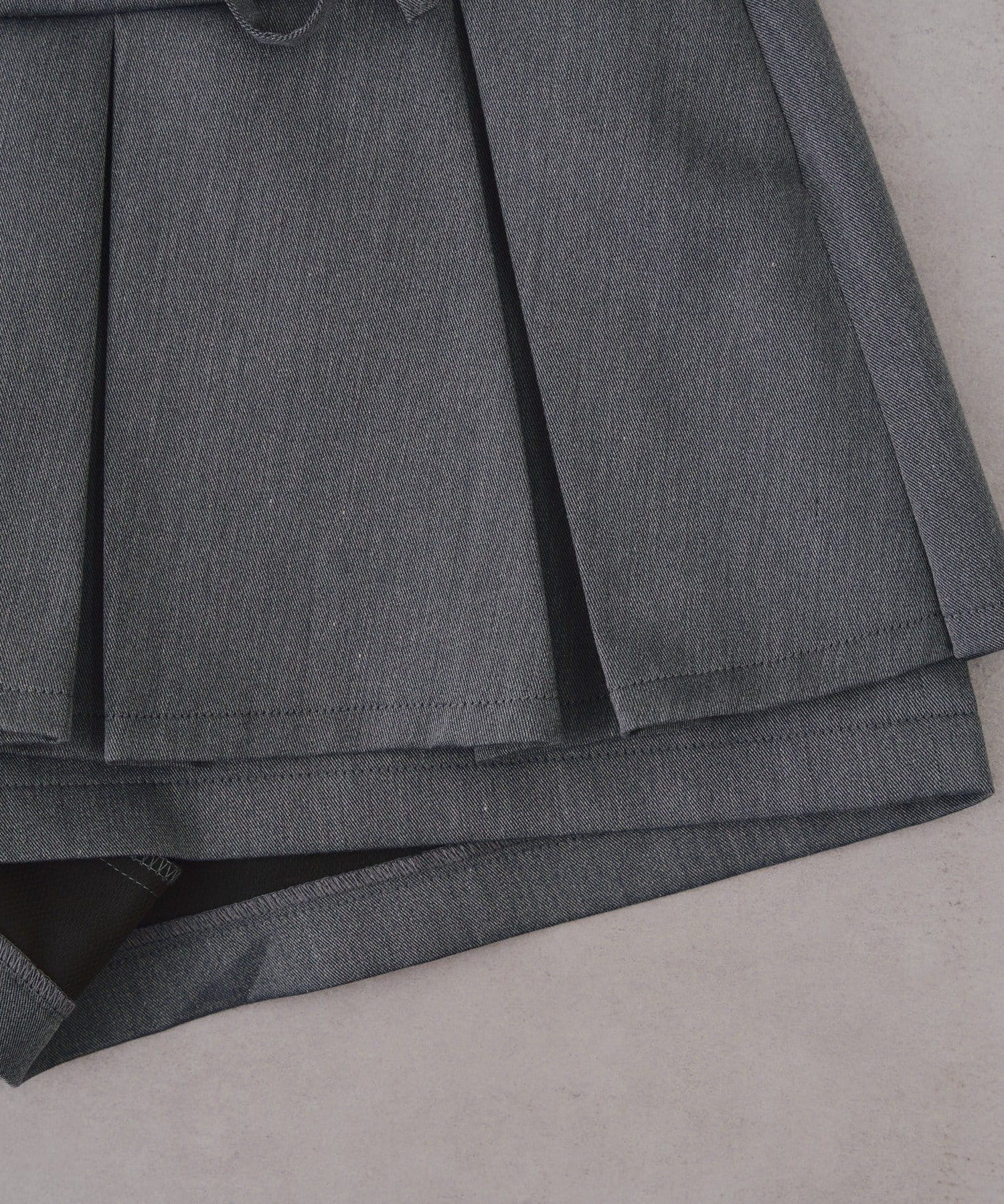 ・ウエストのフロントにあしらったリボンがポイントのミニプリーツスカパン。