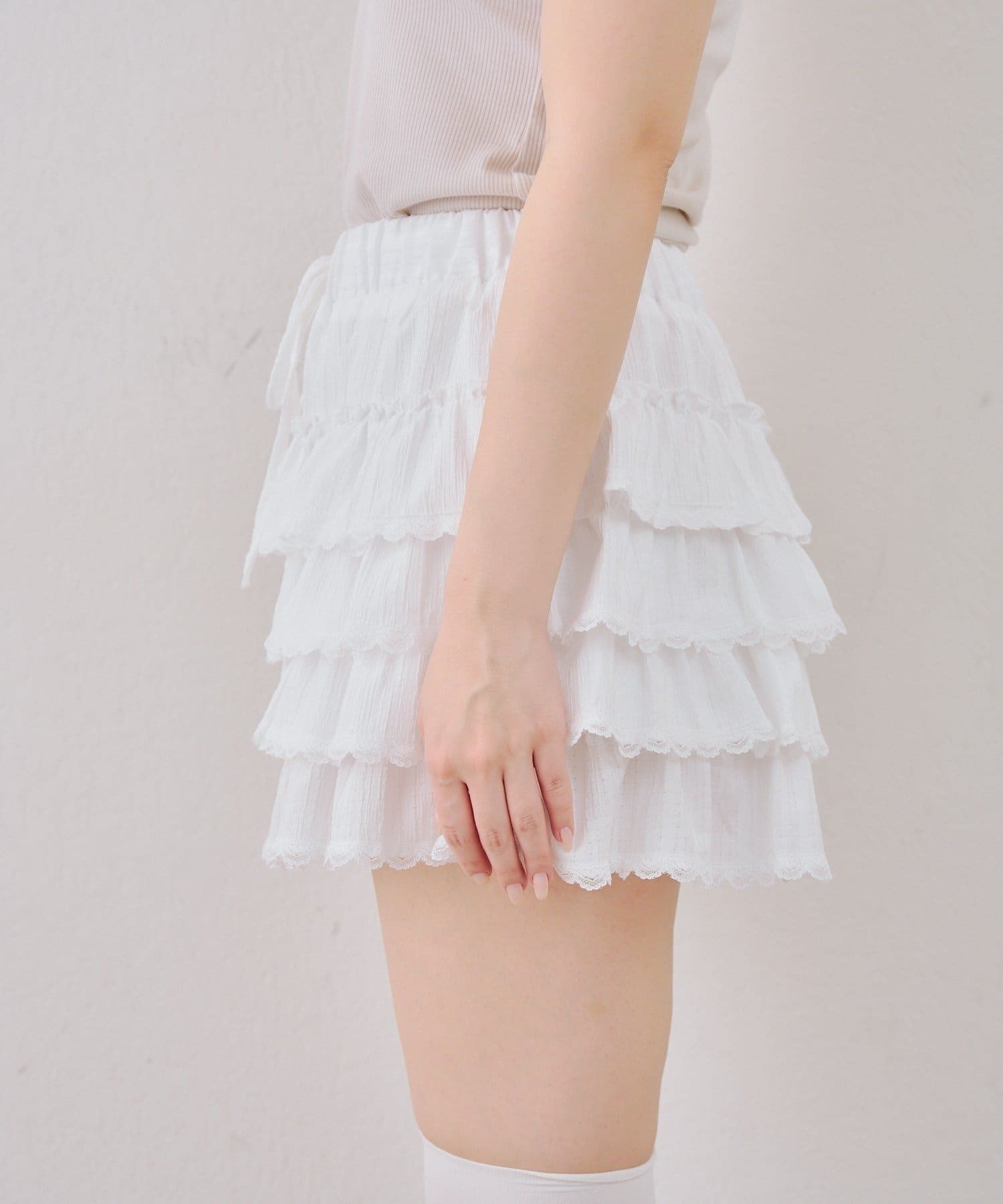 【continuer】ふんわり揺れる、ティアードフリルミニスカート