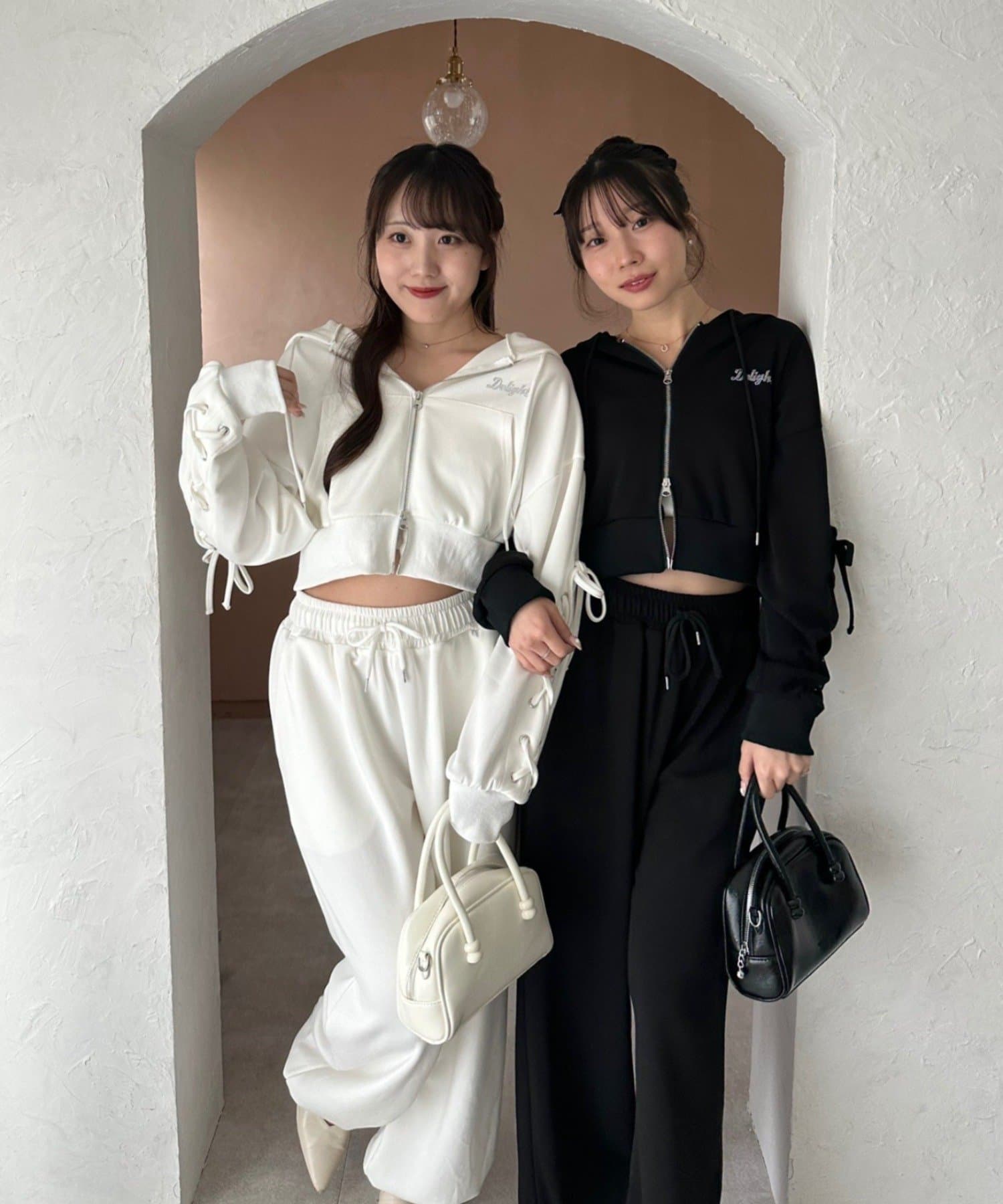 ・ワンポイントのラインストーンがきらめくスウェットパンツ