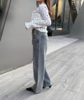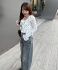 ・フリルブラウスと合わせて、甘さをプラス。足元は黒のレザーシューズで引き締めれば、大人可愛いスタイリングに